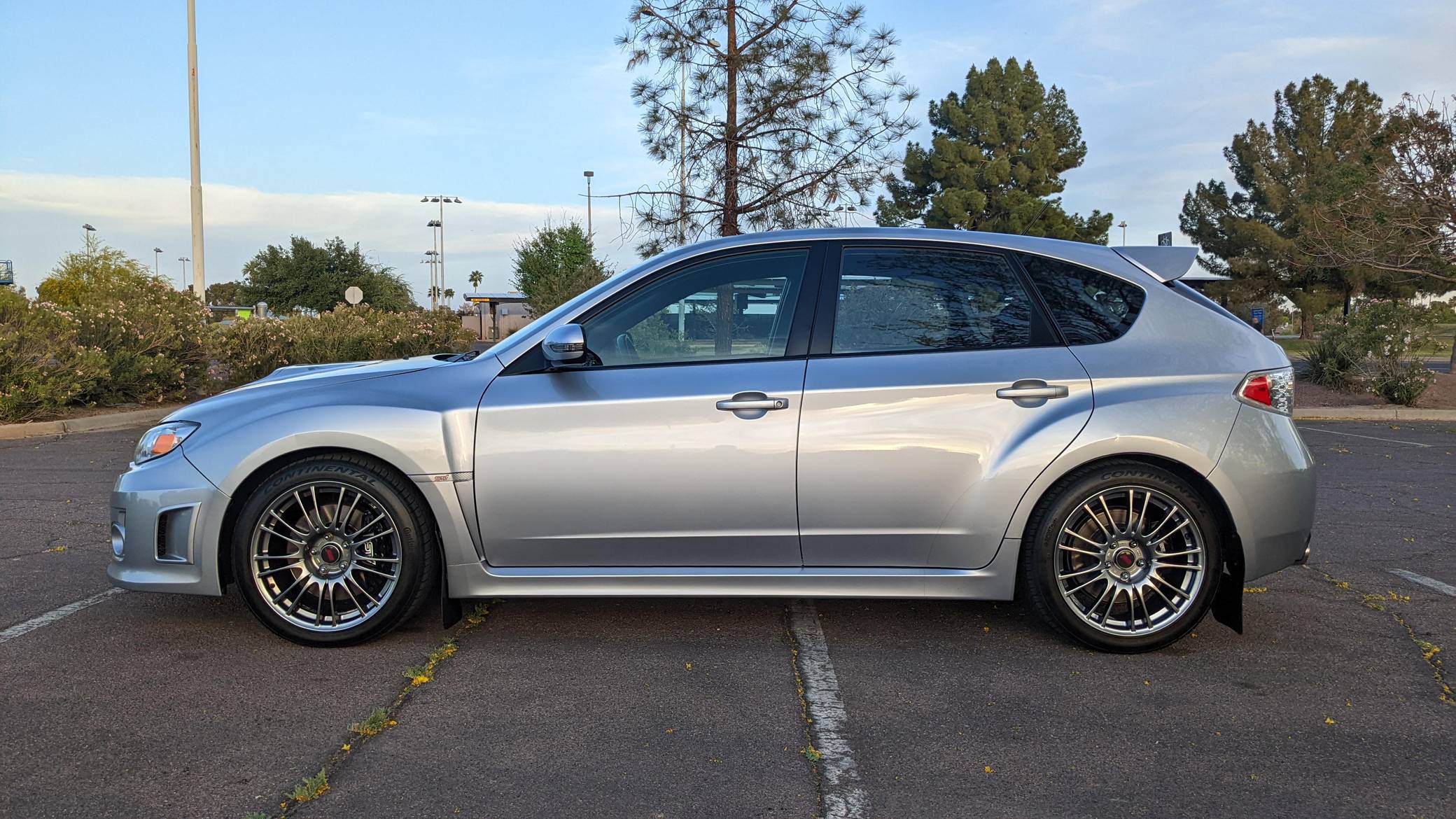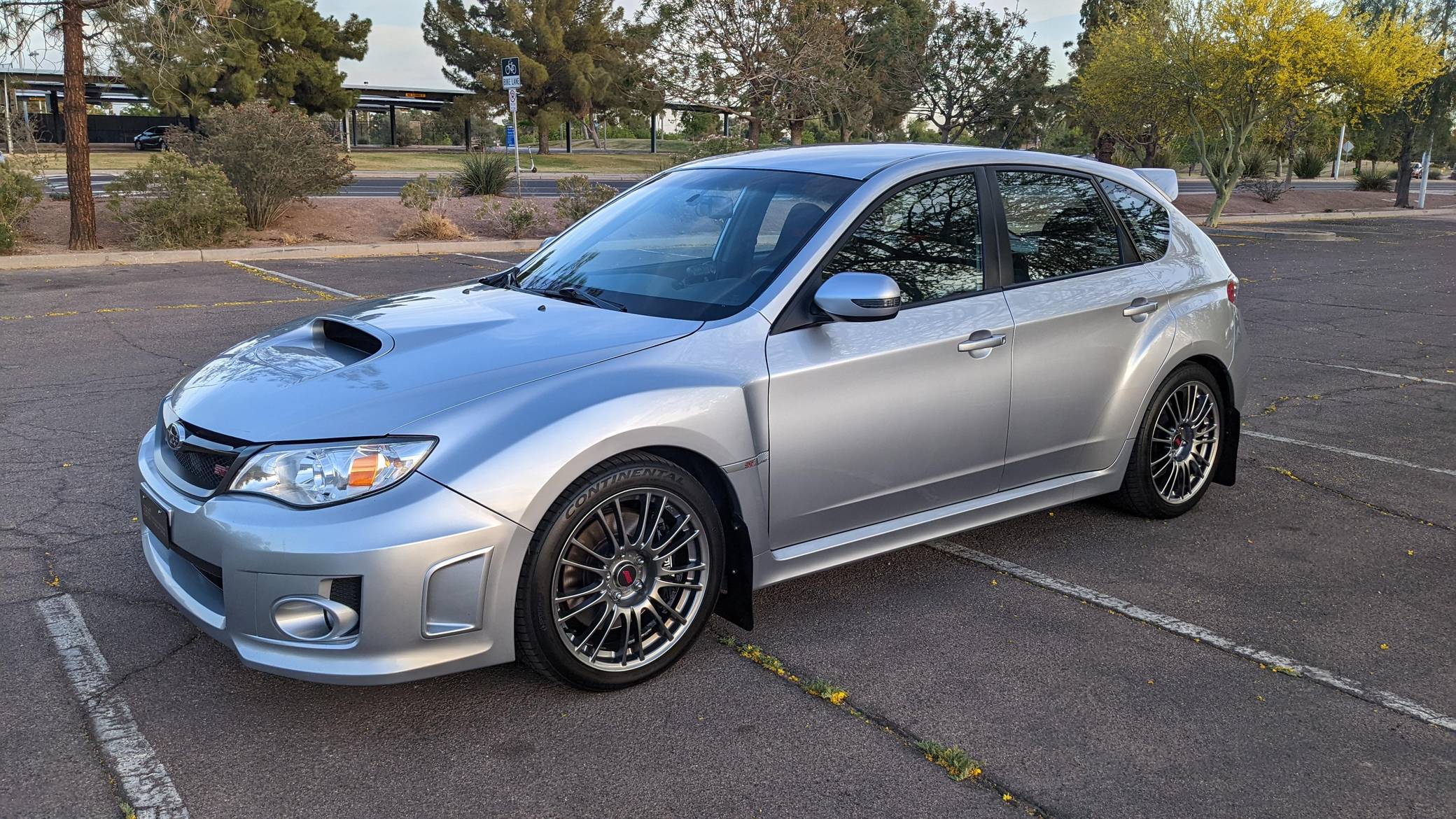 2012 Subaru Impreza WRX STI, finished in Ice Silver Metallic with a black interior. This STI is equipped with a 6-speed manual transmission. A partial list of notable equipment includes 18-inch STI alloy wheels, Subaru Intelligent Drive (SI-Drive), a Driver Controlled Center Differential (DCCD), a rear spoiler, leather and Alcantara upholstery, front sport seats with embroidered STI logos and red contrast stitching, automatic climate control, and more as detailed below. Modifications reported by the seller include a COBB Tuning Stage 2+ ECU tune, downpipe, intake, and airbox, a Nameless Performance axle-back exhaust, a Subaru Performance Tuning (SPT) boost gauge, a shift knob from 2018+ Subaru WRX STI, Rally Armor mud flaps, and a Sony head unit with Apple CarPlay and Android Auto compatibility. Subaru released the rally-bred WRX STI variant of the third-generation Impreza for the 2008 model year. The model received a mid-cycle update for 2011 that brought an overhauled suspension system, visual tweaks on both ends, and a sedan body style sold alongside the hatchback. Production ended in 2014, and Subaru hasn't released another WRX STI hatchback since. Power comes from a turbocharged 2. 5-liter boxer engine, rated at 305 horsepower and 290 lb-ft of torque in stock form. Due to the modifications performed to this WRX STI, it may produce more power, but a dyno sheet was not provided to confirm. Output is sent to all four wheels via a 6-speed manual transmission and Subaru’s Symmetrical All-Wheel Drive system.