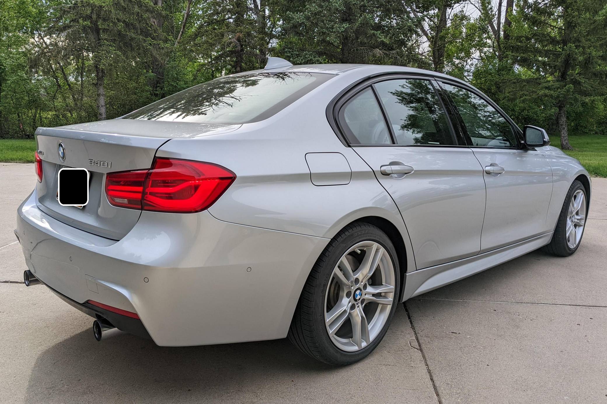 2016 BMW 340i xDrive Sedan, finished in Glacier Silver Metallic with a black interior. The car is equipped with the M Sport, Cold Weather, Technology, and Driving Assistance packages, a performance exhaust, black kidney grilles, a Harman/Kardon sound system, and more as detailed below. The seller reports no modifications. BMW launched the sixth-generation 3 Series for the 2012 model year. Called "F30" internally, it was slightly bigger than its predecessor, and it offered buyers a much more up-to-date interior. 2016 brought a mid-cycle update that included subtle styling tweaks, a widely praised redesigned suspension, and changes to the steering system. Power comes from a 3. 0-liter turbocharged inline-6, which produces 320 horsepower and 330 lb-ft of torque. It spins all four wheels via an 8-speed automatic transmission and BMW's xDrive all-wheel-drive system.