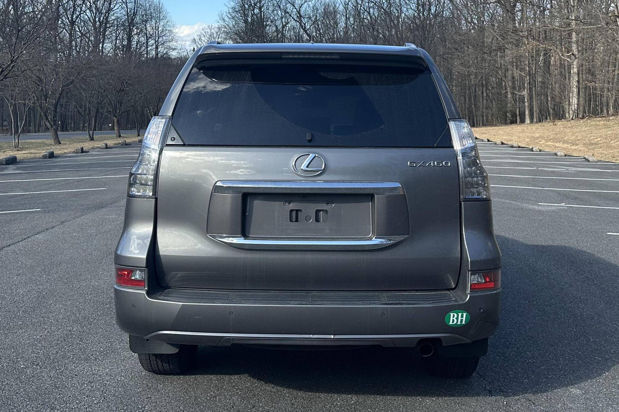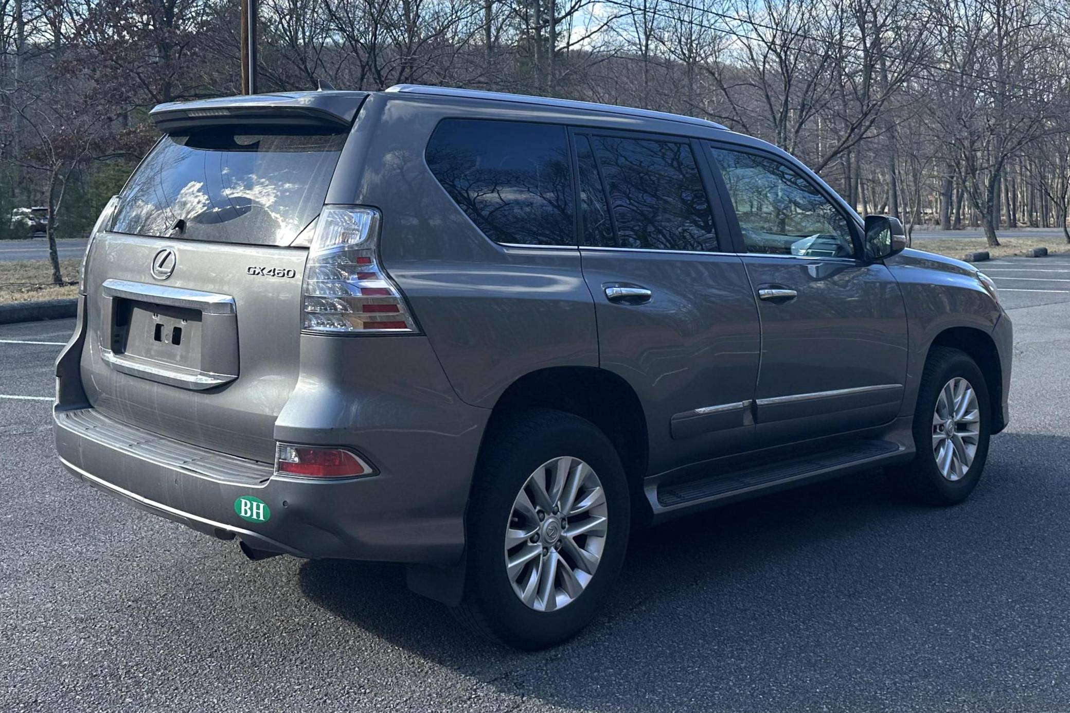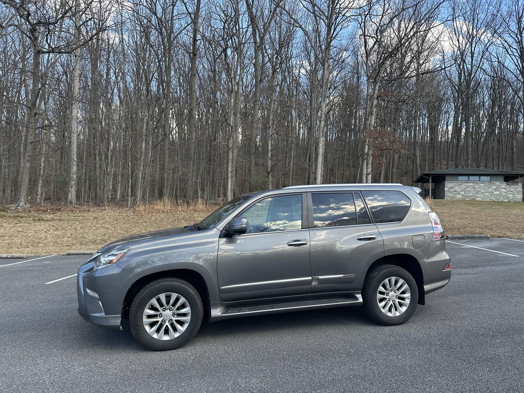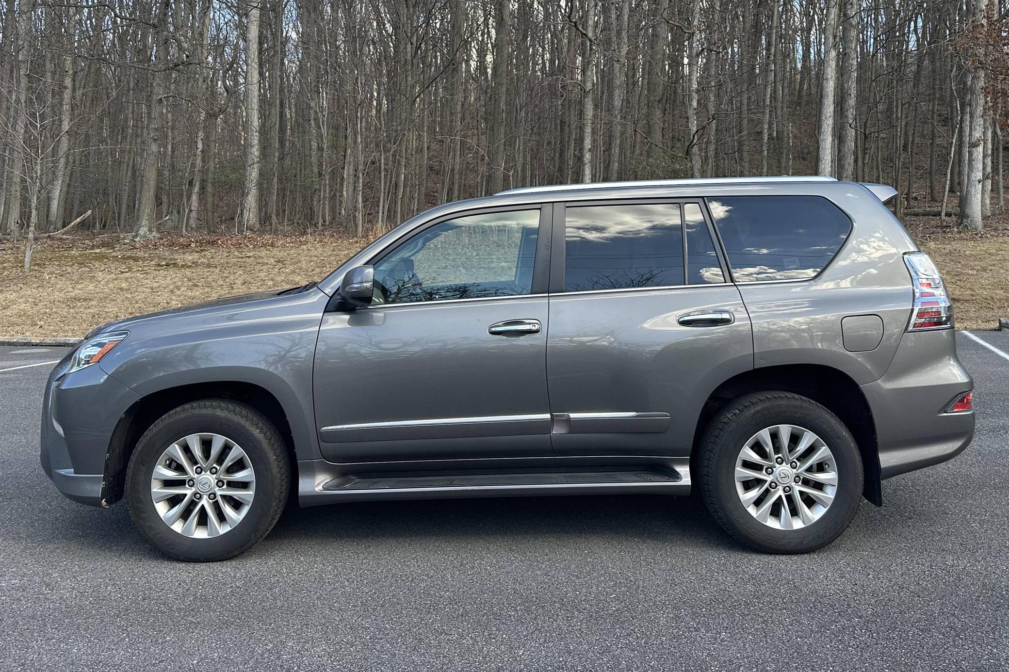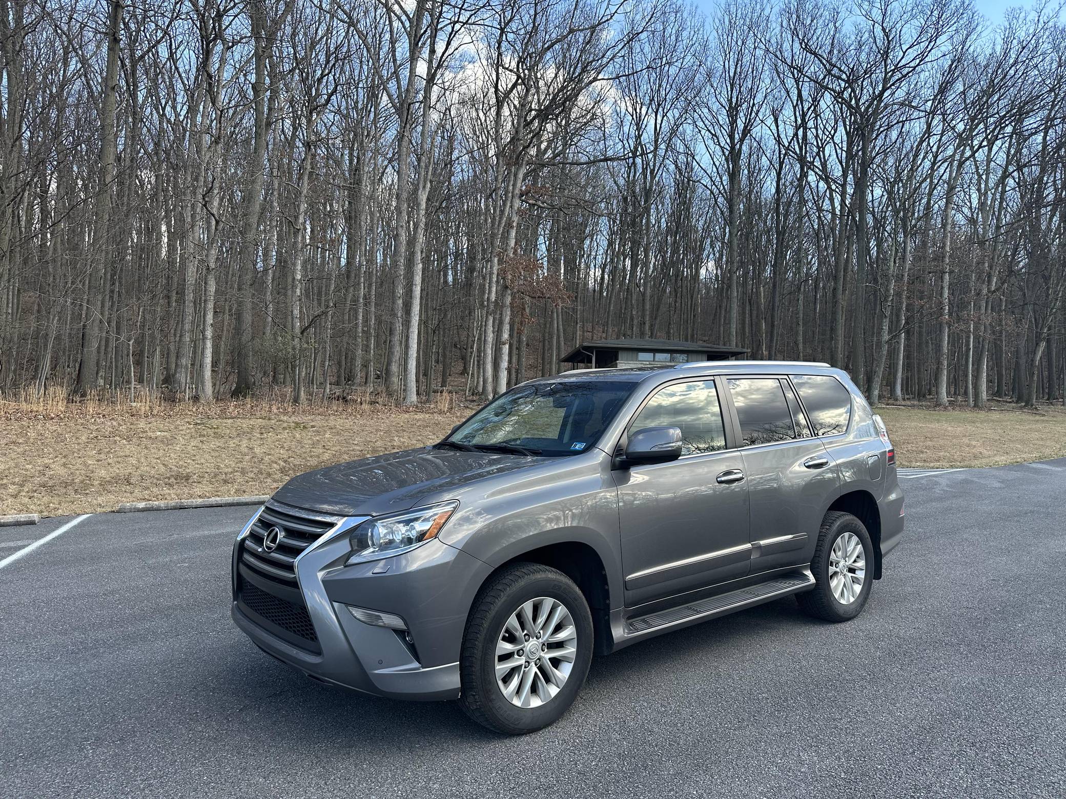 2014 Lexus GX 460, finished in Knights Armor Pearl with a black interior. Equipment includes 18-inch wheels, a locking center differential, KDSS suspension system, a sunroof, leather upholstery, heated and cooled front seats, lane-departure alert, navigation system, a Mark Levinson audio system, and more as detailed below. The seller reports no modifications. The GX is based on the Toyota Land Cruiser Prado sold globally, and it also shares its bones with the Toyota 4Runner. Those siblings share their off-road abilities with the GX, which adds a height-adjustable suspension, Kinetic Dynamic Suspension System hydraulic sway bars that automatically disconnect for off-road articulation, and adaptive dampers. Power comes from a 4. 6-liter V8, rated at 301 horsepower and 329 lb-ft of torque. Output is sent to all four wheels through a 6-speed automatic transmission and a 2-speed transfer case.