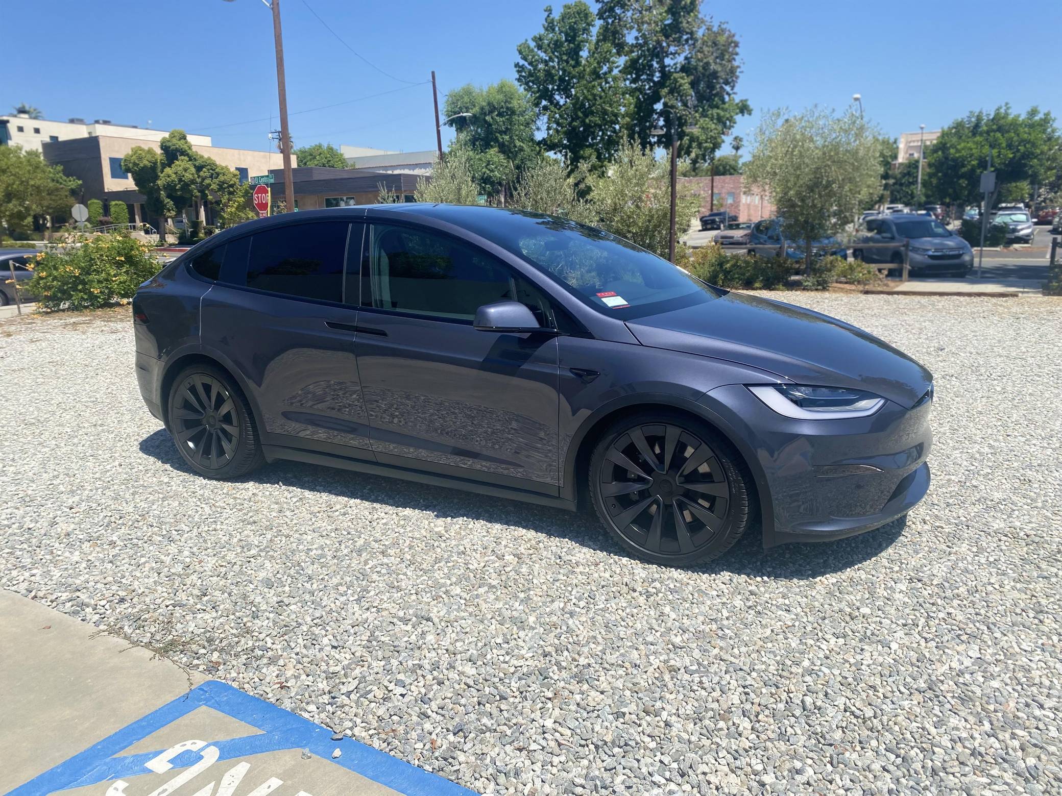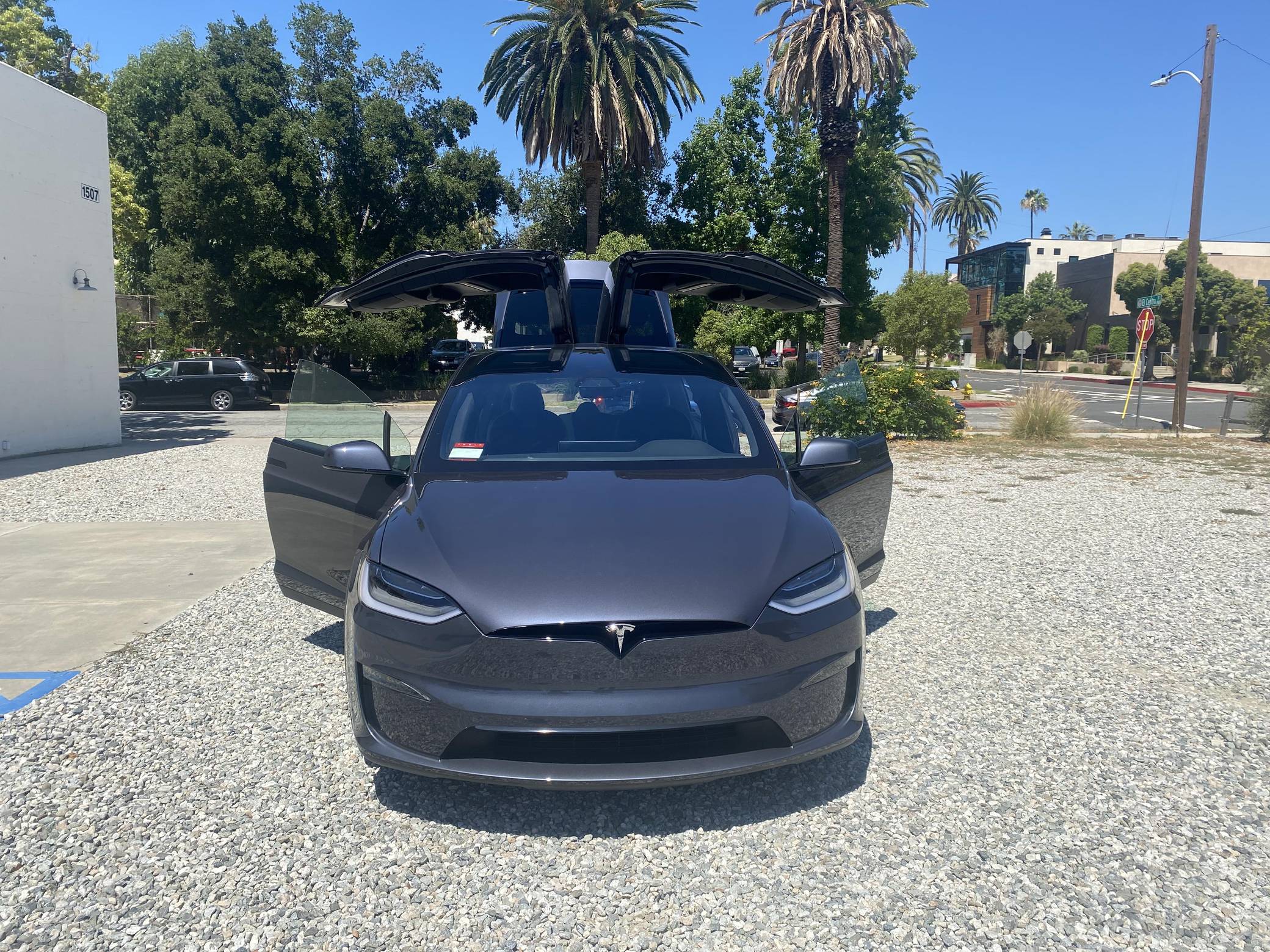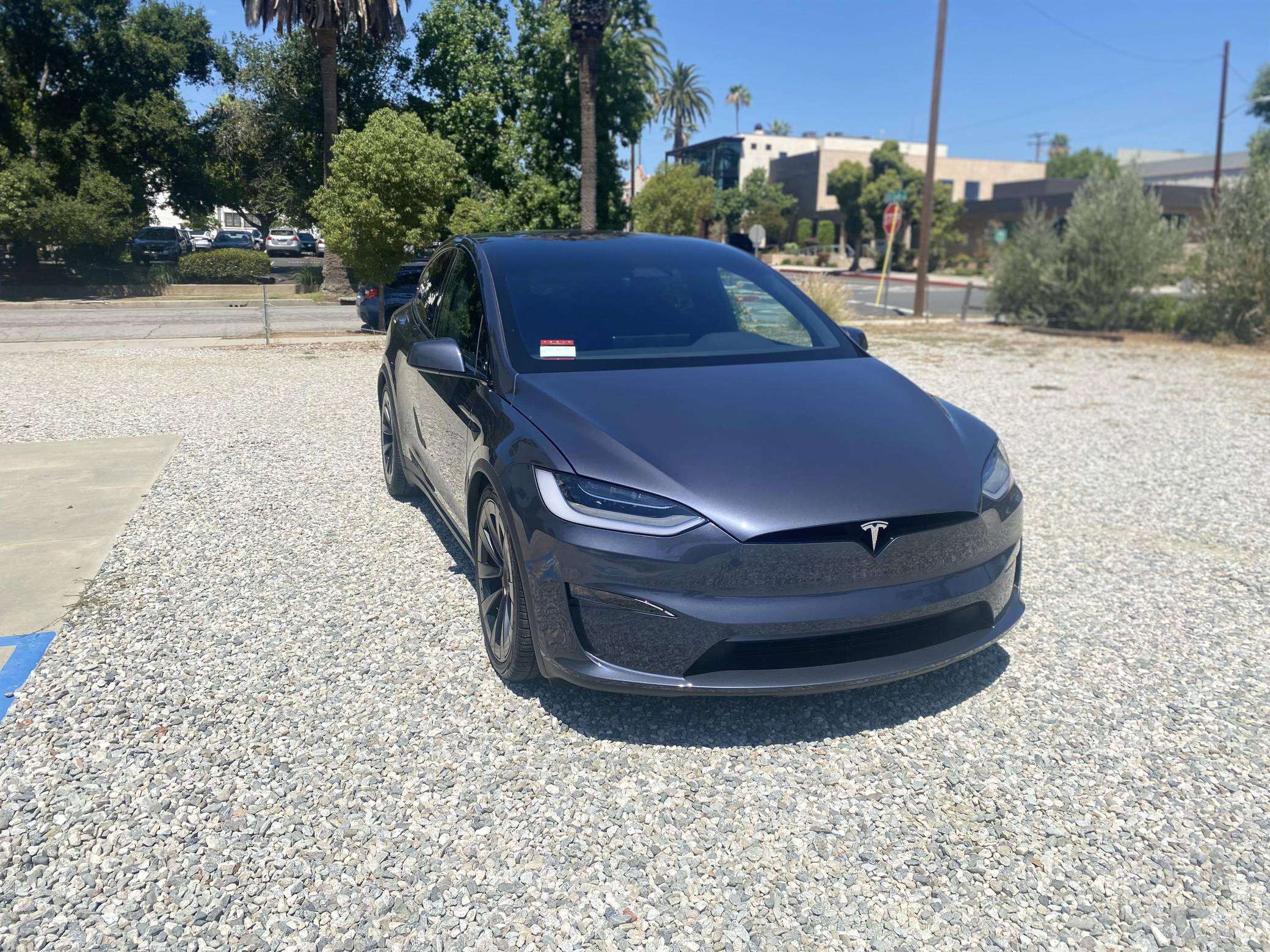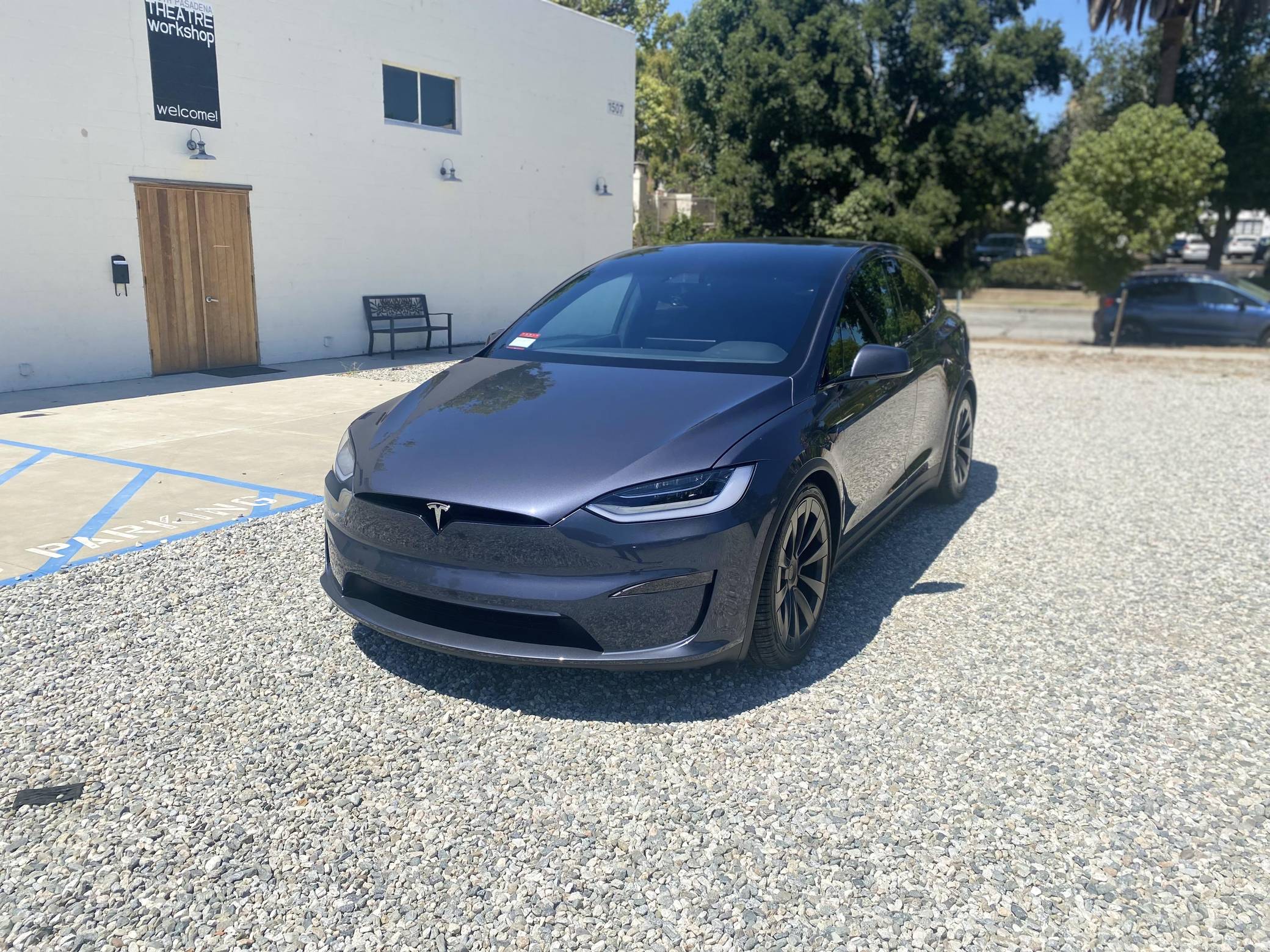 2022 Tesla Model X Long Range, finished in Midnight Silver Metallic with a black interior. Factory equipment includes 22-inch wheels, a rear spoiler, wood interior trim, heated, ventilated, and power-adjustable front seats, heated second-row seats, a yoke steering wheel, two wireless charging pads, and a 22-speaker sound system. The seller reports no modifications. Tesla introduced the Model X for the 2016 model year as a taller, more spacious alternative to the Model S. It stood out from other crossovers with unusual double-hinged falcon rear doors. It has gone through several powertrain and interior evolutions since its launch, and it's still available new today. Power comes from a pair of electric motors, which draw electricity from a 100-kilowatt-hour lithium-ion battery pack to zap the four wheels with 670 horsepower. Fitted with 22-inch wheels, the Model X Long Range's EPA-estimated maximum driving range checks in at 332 miles.