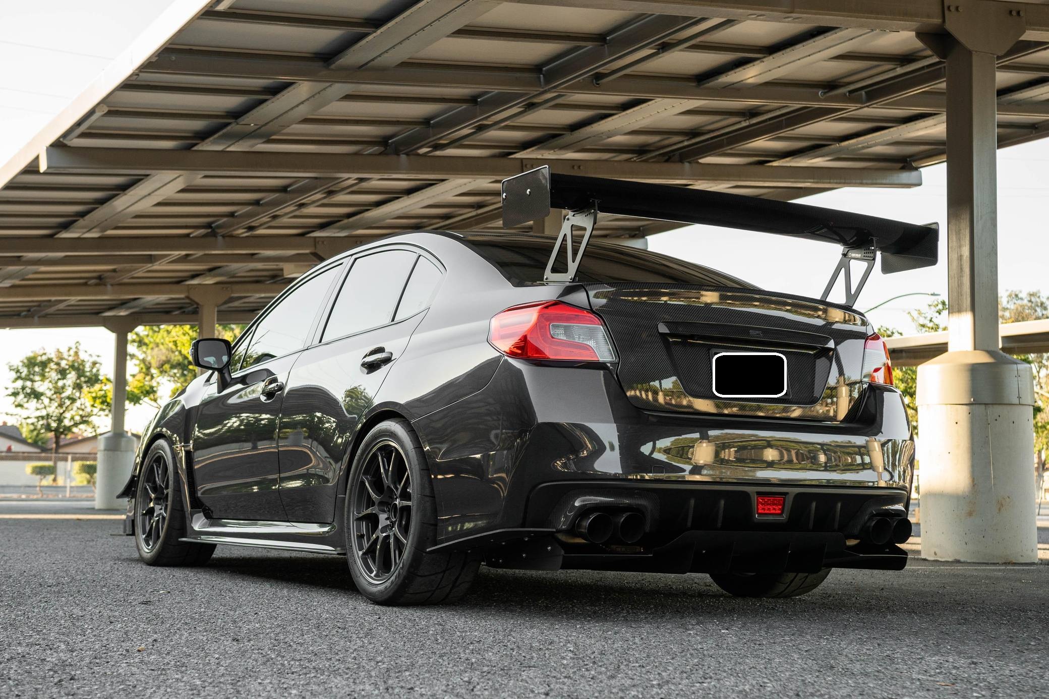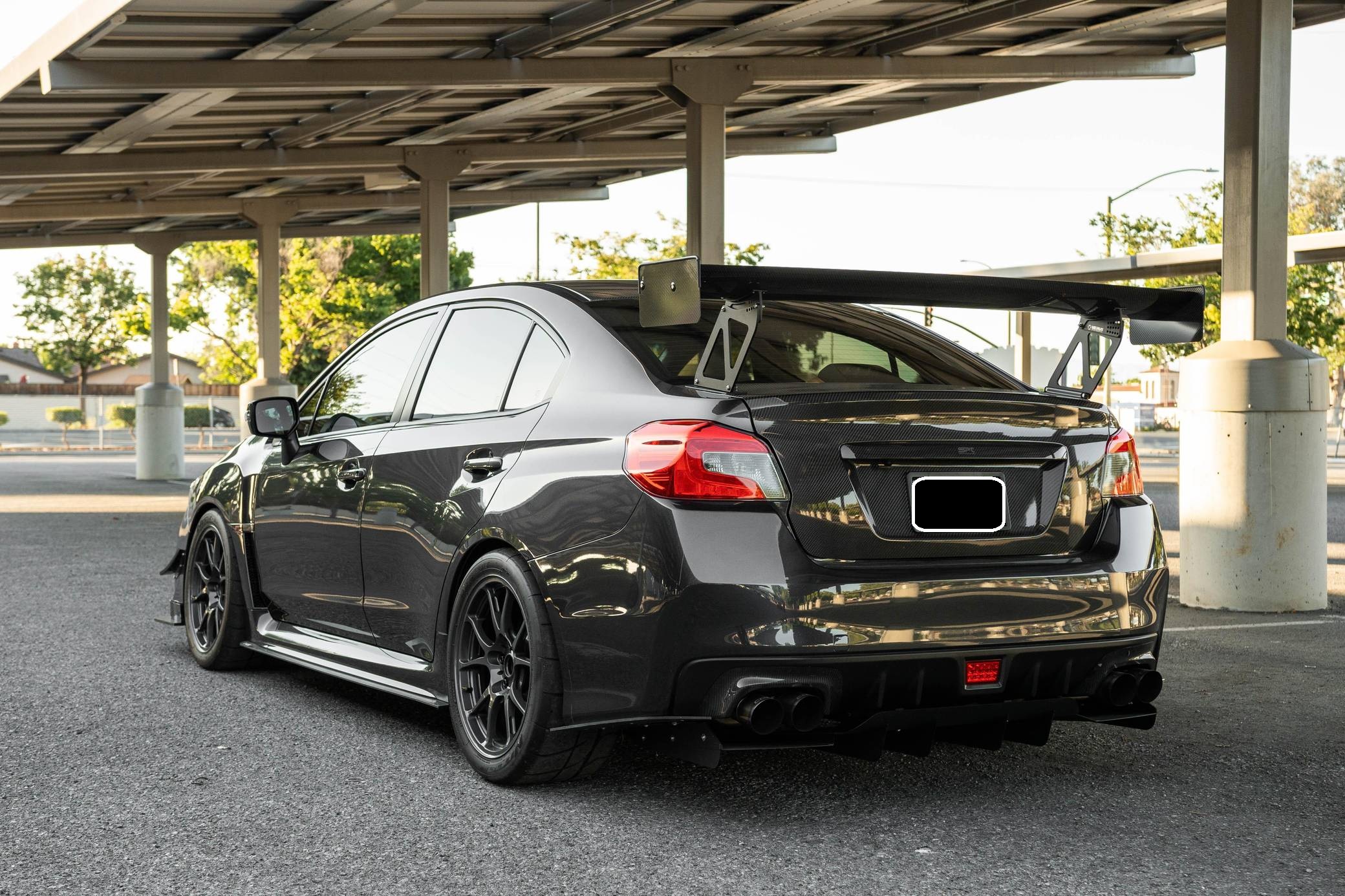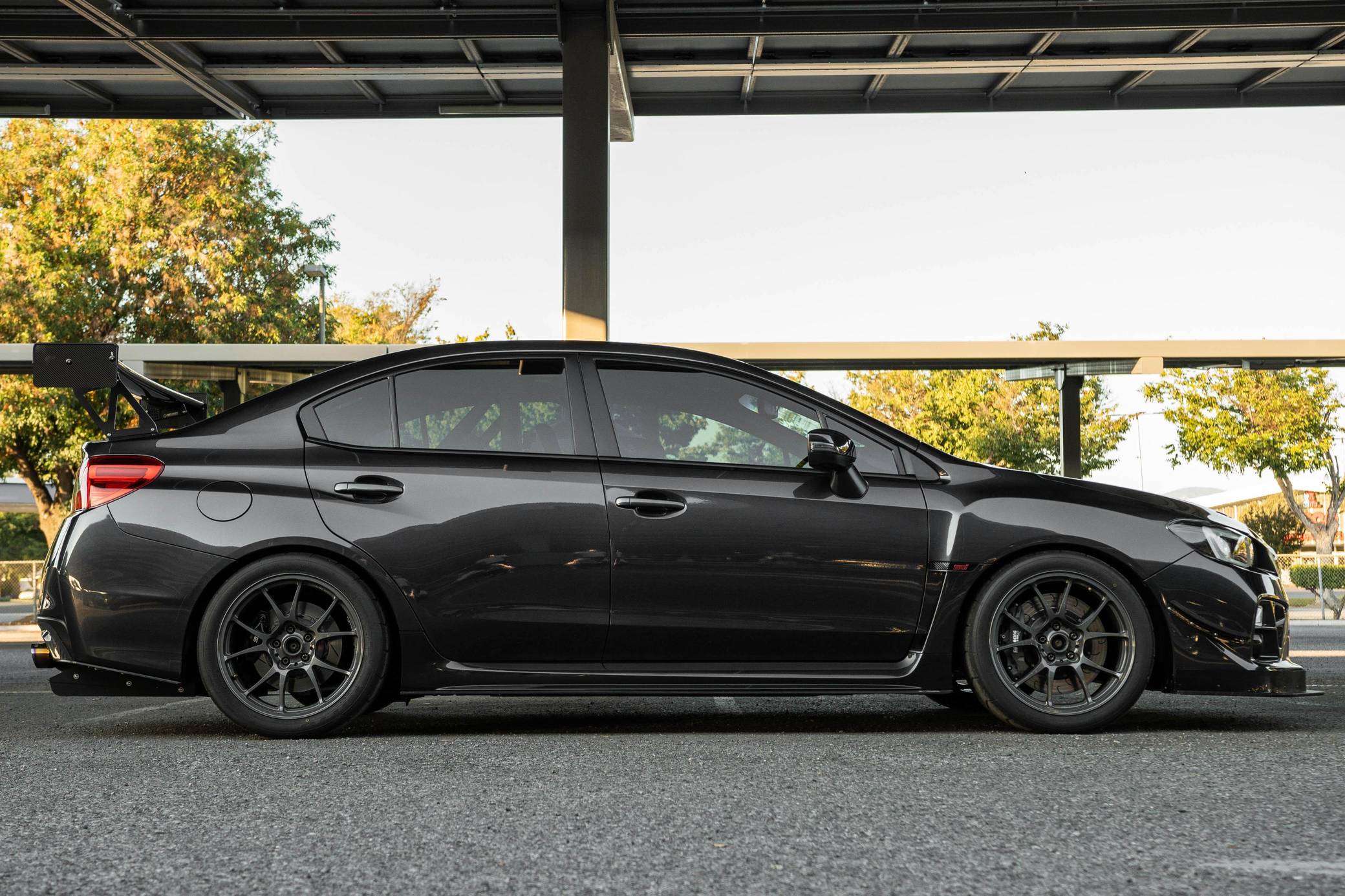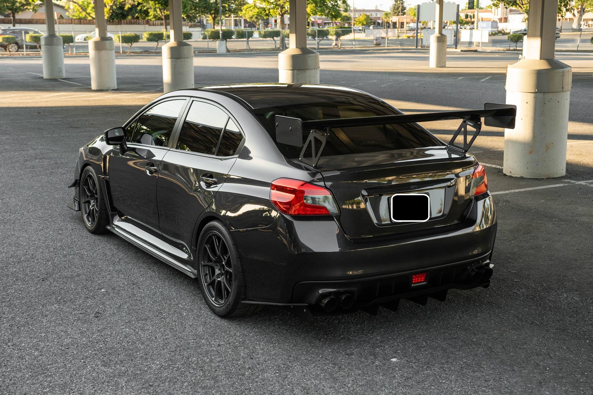 2015 Subaru WRX STI, finished in Dark Gray Metallic with a black interior. This sedan's odometer displays about 21,900 miles. Substantially modified, this WRX STI features a IAG Performance Stage 3 Tuff Closed Deck short block, Manley Performance Products 99. 75 Turbo Tuff pistons, a Killer B Motorsport Spoolinator turbo kit, a COBB Tuning 3-inch titanium exhaust system, 18-inch TWS T66-F wheels, AST Suspension 5200 2-way coilovers, a Verus Engineering body kit, Racetech Manufacturing front seats, and a TC Design roll bar. More details about the aftermarket parts installed on this car are provided below and in the gallery. Subaru's WRX STI began in 1992 as the top performance model in the Impreza lineup. Launched for the 2015 model year, the "VA"-generation WRX and WRX STI were split from the Impreza that they were based on. They became standalone models, not merely sportier evolutions of a compact car, and their new identity was accompanied by a more muscular-looking design plus the assortment of engine and chassis tweaks fans expected. Power comes from a 2. 5-liter turbocharged flat-4, rated at 305 horsepower and 290 lb-ft of torque when left stock. The modifications increase those figures to 577 and 602, respectively, at the wheels, according to a dyno sheet pictured in the gallery. Called "EJ257" internally, the engine spins the four wheels via a 6-speed manual transmission.