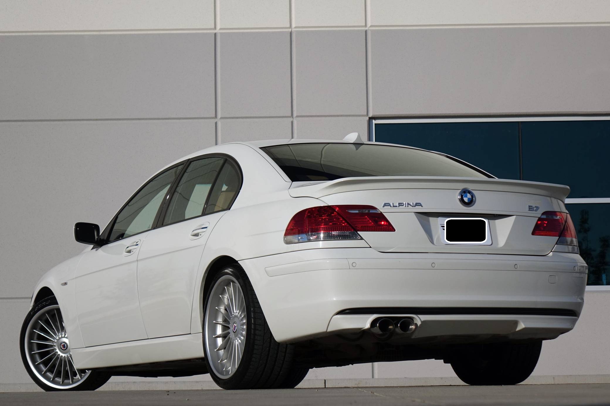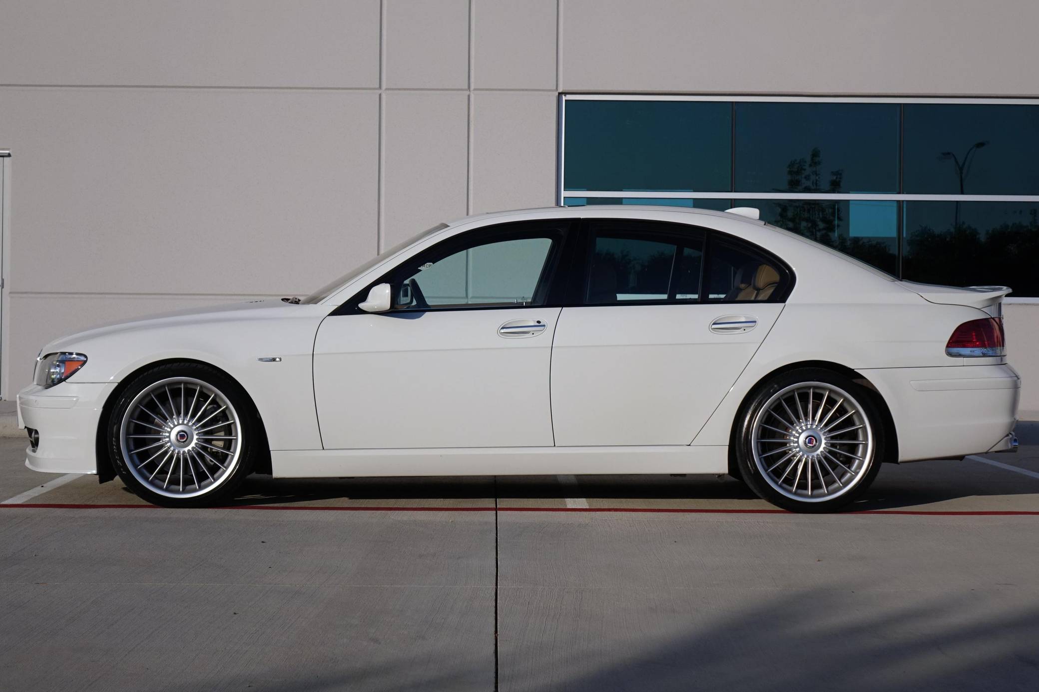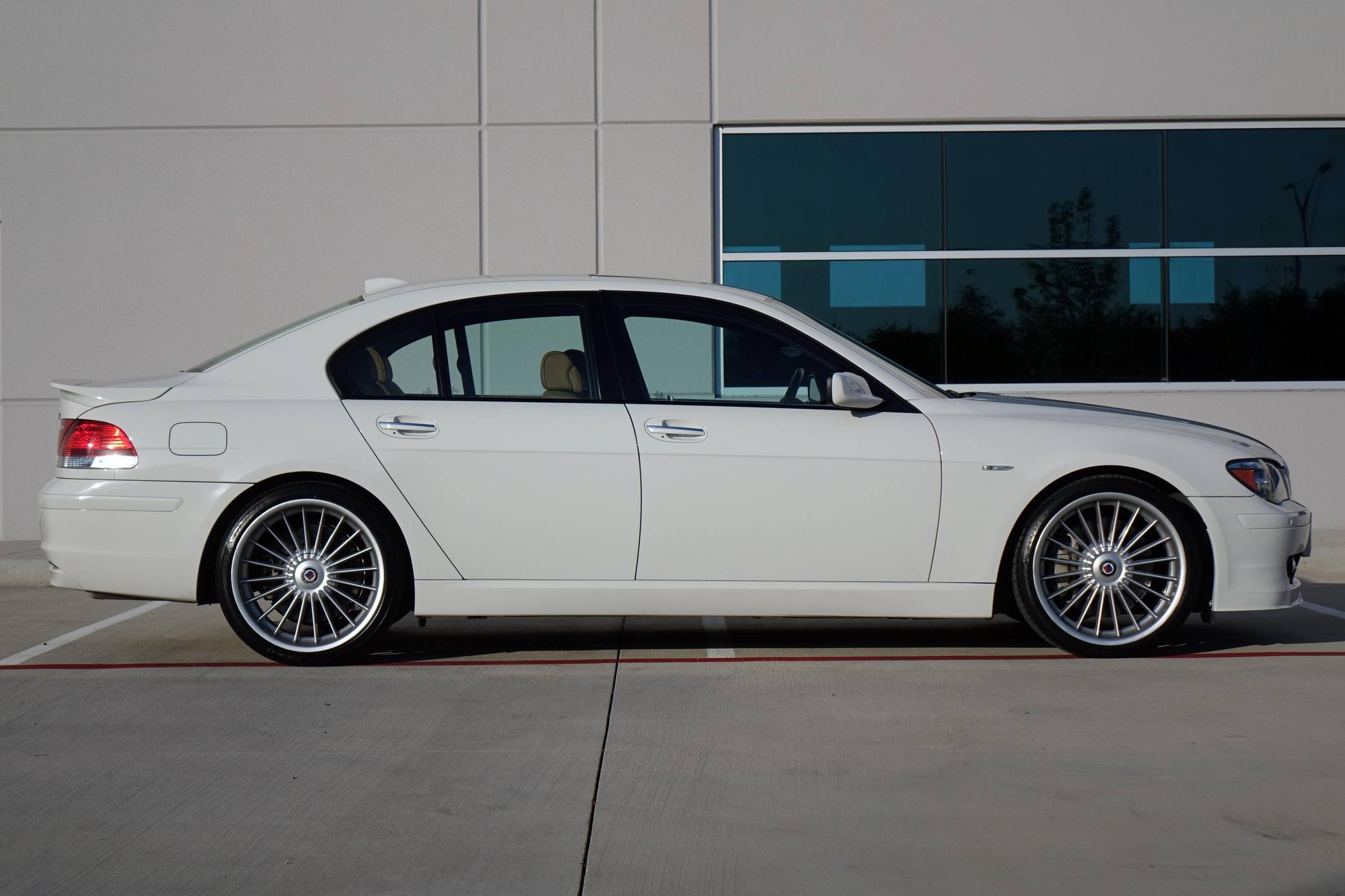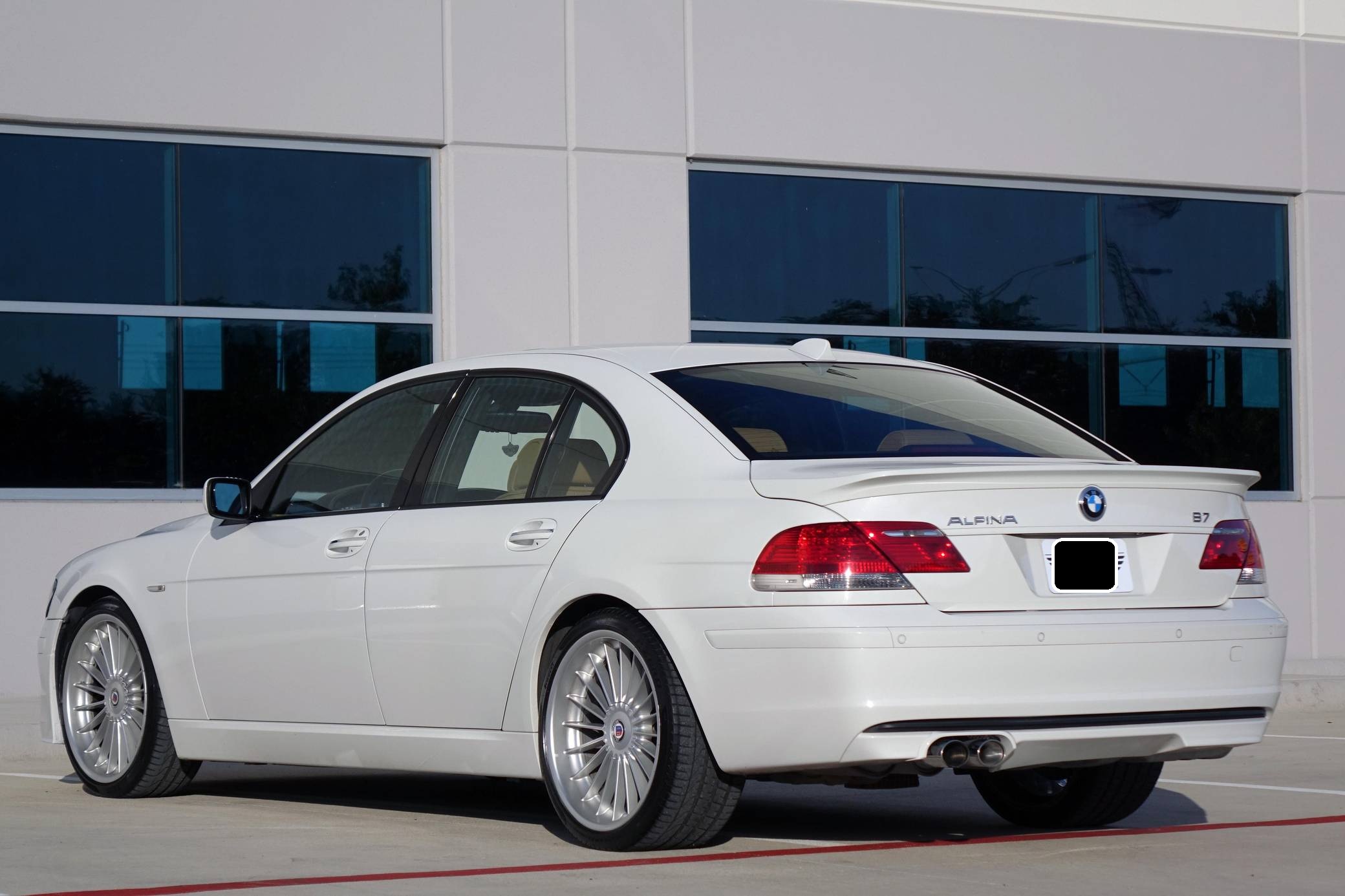 2007 BMW Alpina B7, finished in Alpine White with a Natural Brown interior. The odometer displays approximately 26,800 miles. A build sheet is provided in the photo gallery, and a partial list of equipment includes 21-inch Alpina wheels, an Alpina-specific body kit, soft-close doors, Nasca leather upholstery, heated and ventilated front seats, heated rear seats, a massage function for the driver, a monitor for the rear-seat passengers, and a rear sunshade. The seller reports no modifications. Based on the "E65"-generation BMW 7 Series, the third-generation Alpina B7 made its global debut in 2003 and sales in the United States started for the 2007 model year. Approximately 800 units were sold in North America through BMW dealers until the model retired in early 2008. Power comes from a supercharged 4. 4-liter V8, rated at 500 horsepower and 516 lb-ft of torque. Output is sent to the rear wheels via a 6-speed automatic transmission.