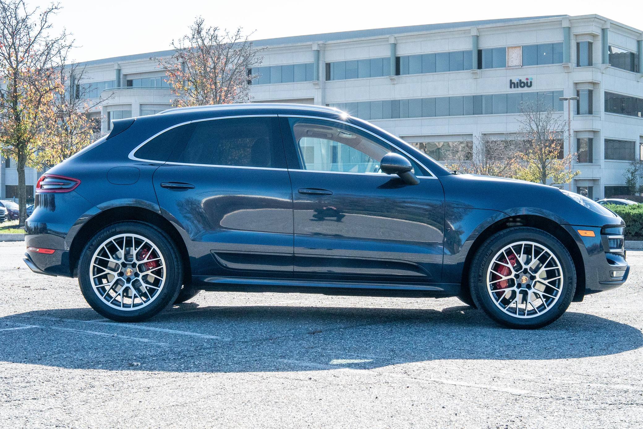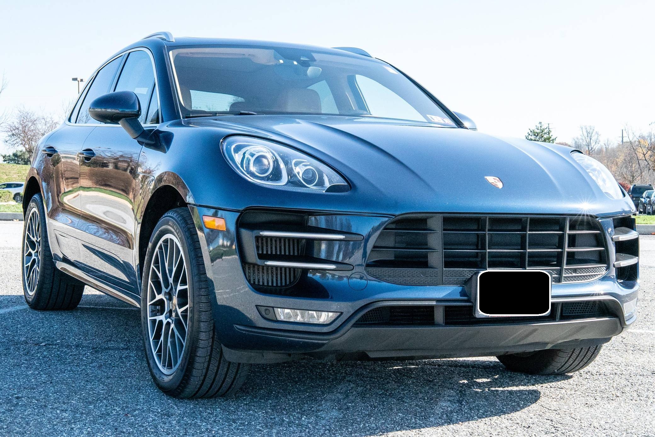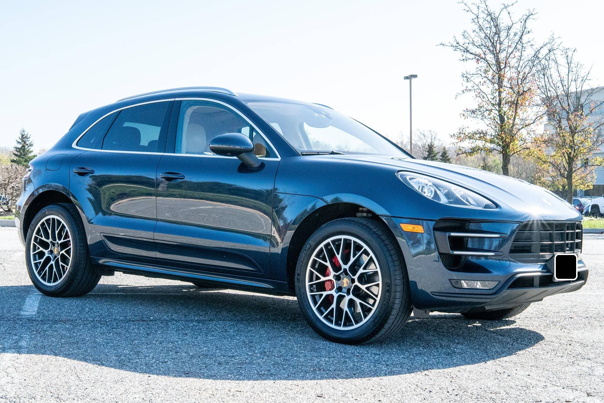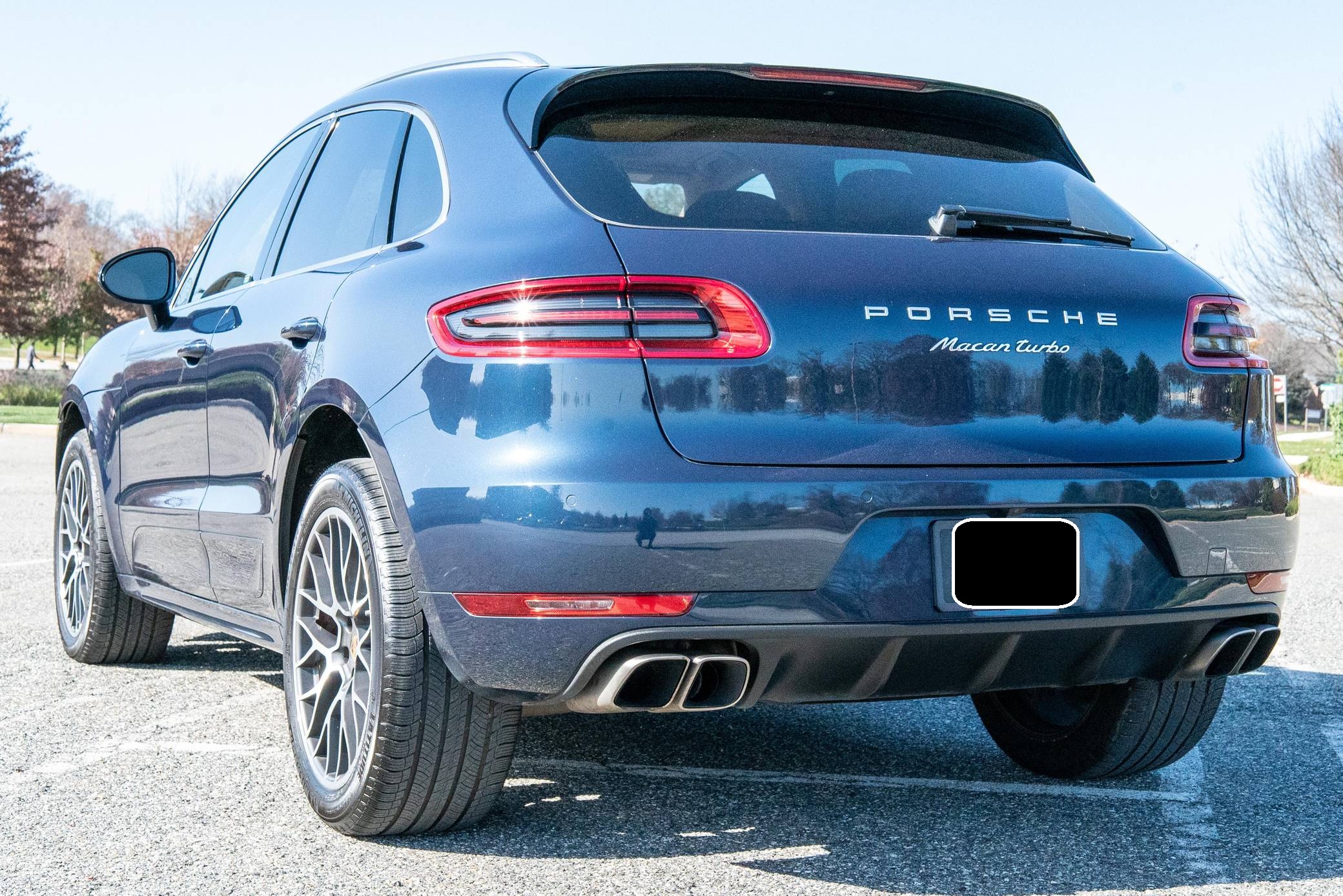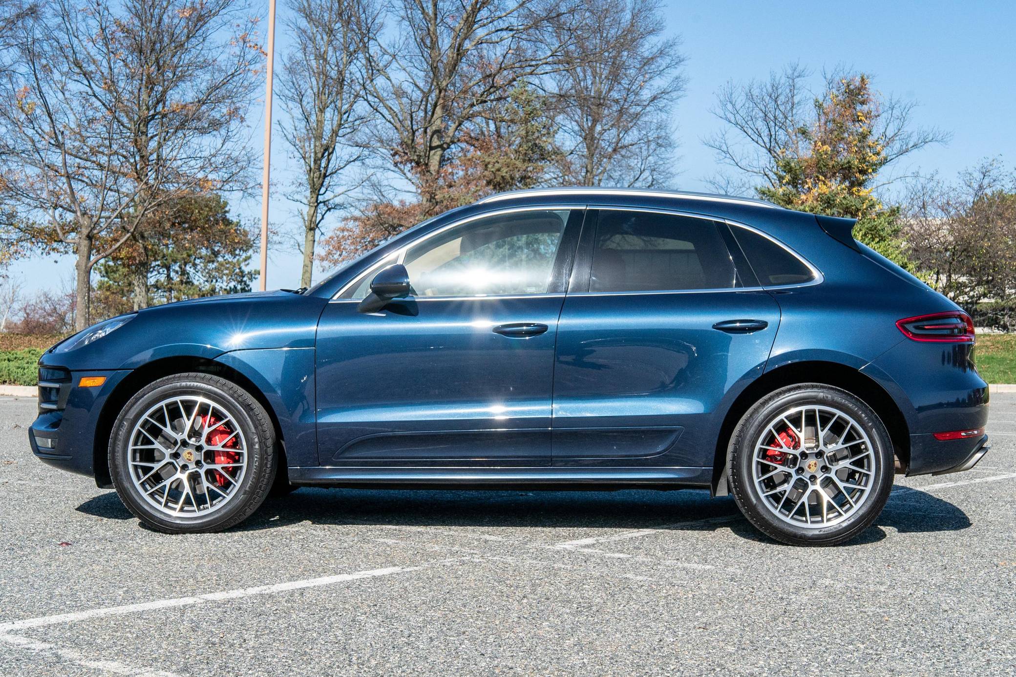 THIS… is a 2015 Porsche Macan Turbo, finished in Dark Blue Metallic with a Luxor Beige interior. A build sheet is provided in the photo gallery, and a partial list of notable equipment includes the Premium Package Plus, the Comfort Lighting Package, 20-inch RS Spyder design wheels, aluminum-finish roof rails, a heated multi-function sport steering wheel in Dark Walnut, Dark Walnut interior trim, and 3-zone climate control. The seller reports no modifications. Encouraged by the Cayenne's success, and eager to tap into one of the biggest segments of the market, Porsche introduced the Macan as its entry-level SUV for 2015. Some of the model's underpinnings came from Audi, but Porsche dialed in a level of performance and handling that's unusual to find in a compact SUV. The Turbo model was positioned at the top of the line-up through the 2021 model year. Power comes from a turbocharged 3. 6-liter V6, rated at 400 horsepower and 406 lb-ft of torque. It spins the four wheels via a 7-speed dual-clutch automatic transmission.