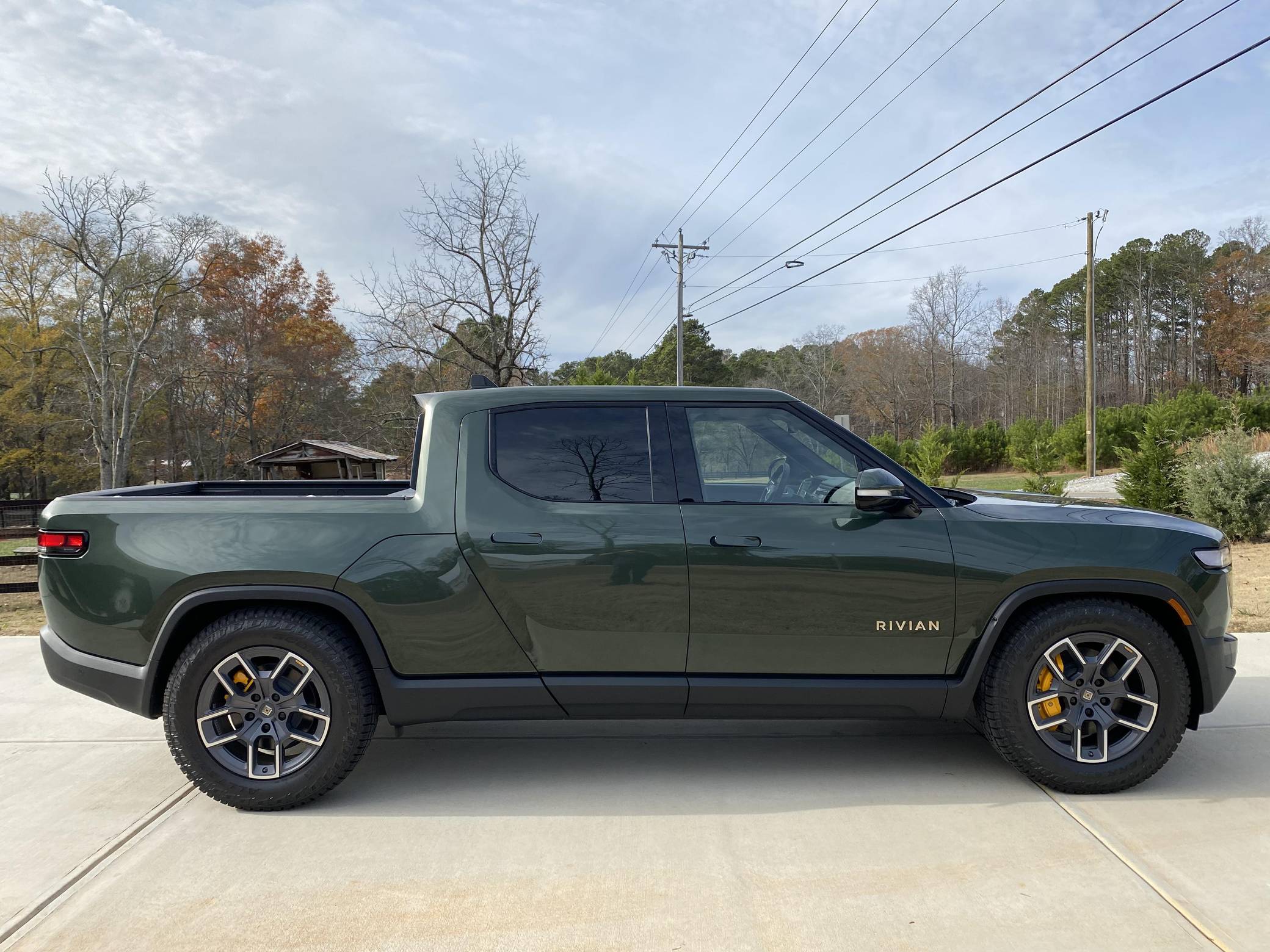 THIS. . . is a 2022 Rivian R1T Adventure Edition, finished in Forest Green with a Black Mountain interior. Factory equipment includes the Adventure Edition Package, 20-inch "All-Terrain" wheels, a reinforced underbody shield, an air suspension system, an air compressor in the cargo box, heated, ventilated, and power-adjustable front seats, a 16-inch touchscreen for the infotainment system, and a Rivian Elevation by Meridian sound system, among other items. The seller reports no modifications. Released for 2022, the R1T has a lot of firsts on its resume. It's notably the first model released by Rivian and the first modern electric pickup to enter production. It was developed on a blank sheet of paper with the outdoors in mind, so it offers several clever features like a Gear Tunnel located between the cargo box and the cab. It's still available new in 2022. Power comes from four electric motors, which draw electricity from a 135-kilowatt-hour lithium-ion battery pack to zap the four wheels with 835 horsepower and 908 lb-ft of torque. The R1T earned a maximum driving range rating of 314 miles from the EPA.