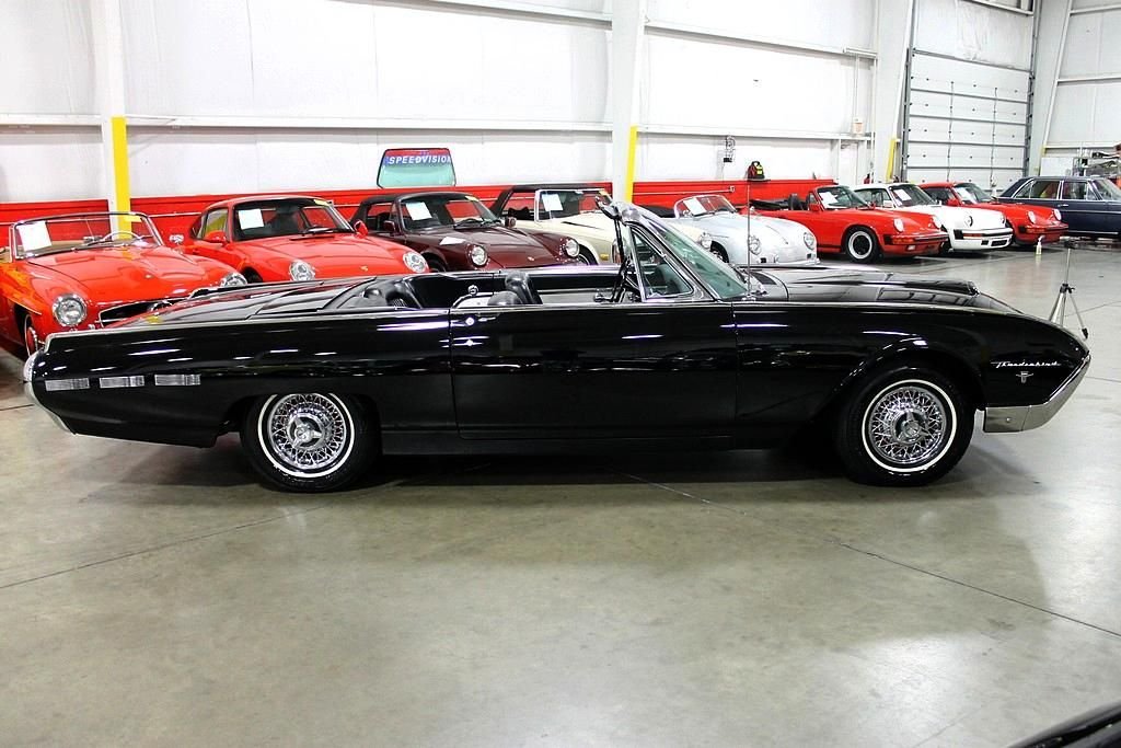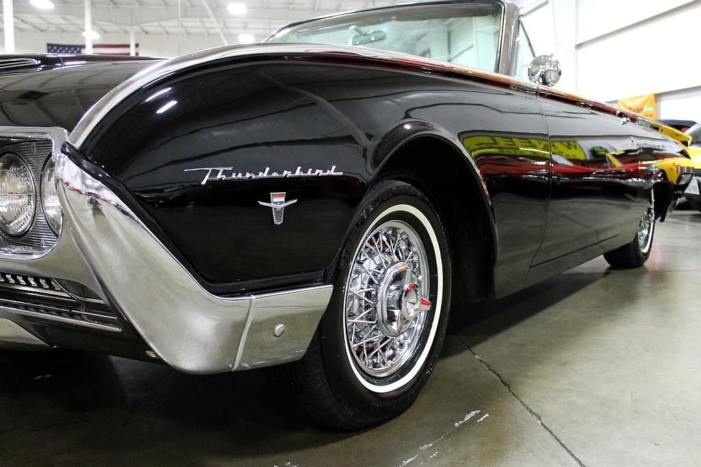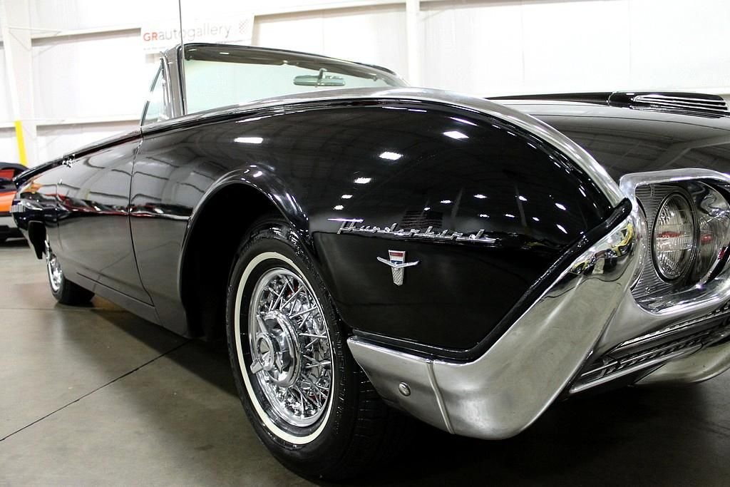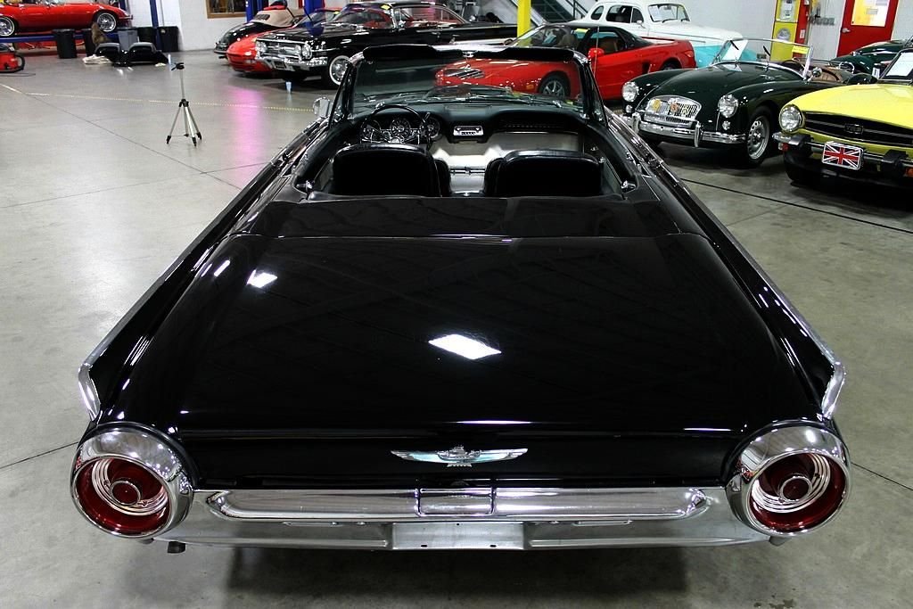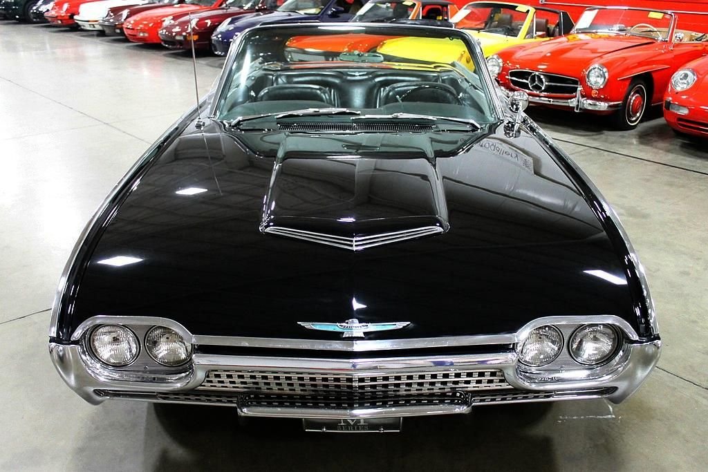 In 1958 Ford made the decision to radically change the very popular Ford Thunderbird 2 seat roadster to a much larger, family oriented vehicle. This decision would prove to be a wise business decision, however it left many motoring enthusiast pining for the sporty, open intension of the first generation birds. In 1962, ford produced a limited variant of their sleeker third generation convertible, the Sports Roadster. The 1962 Thunderbird Sports Roadster models are among the most prized of all Thunderbird with only 1427 total produced. The package consisted of Kelsey Hayes wire wheels with knock off spinners, and most notably a fiberglass tonneau that covering the rear seat creating the 2 seat roadster configuration. Of the 1427 Sports Roadsters produced in 1962, 119 of them were equipped with the desire “M” code 390 / 340 HP engine with tri-power carbs and intake. We are pleased to present this lovely 1962 Ford Thunder Factory “M” Code Sports Roadster for consideration. This car features its factory 390 / 340 hp Tri-power motor mated to an automatic transmission. Options include “M” code package, power convertible top, Kelsey Hayes wire wheels with spinners, power steering, power brakes, power windows, power top (works flawlessly) and “Swing-away” steering column. The car is finished in its original color combination, Raven Black on Black Vinyl interior, White convertible top. Today, the car remains in excellent condition. The 20+ plus year old restoration has held up remarkably well as it has been held in one private collection of classic vehicles since. Mechanically, the car is wonderful to drive possessing a very confident feel coupled with the power of the M-code 340hp motor. 1962 Ford Thunderbird “M” Code Sports Roadsters are highly sought after cars that are often copied. A true Factory example such as this are very rare and an excellent automotive investment.