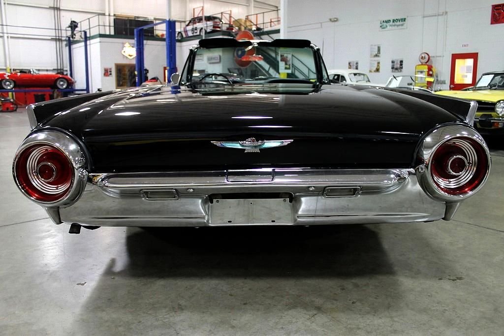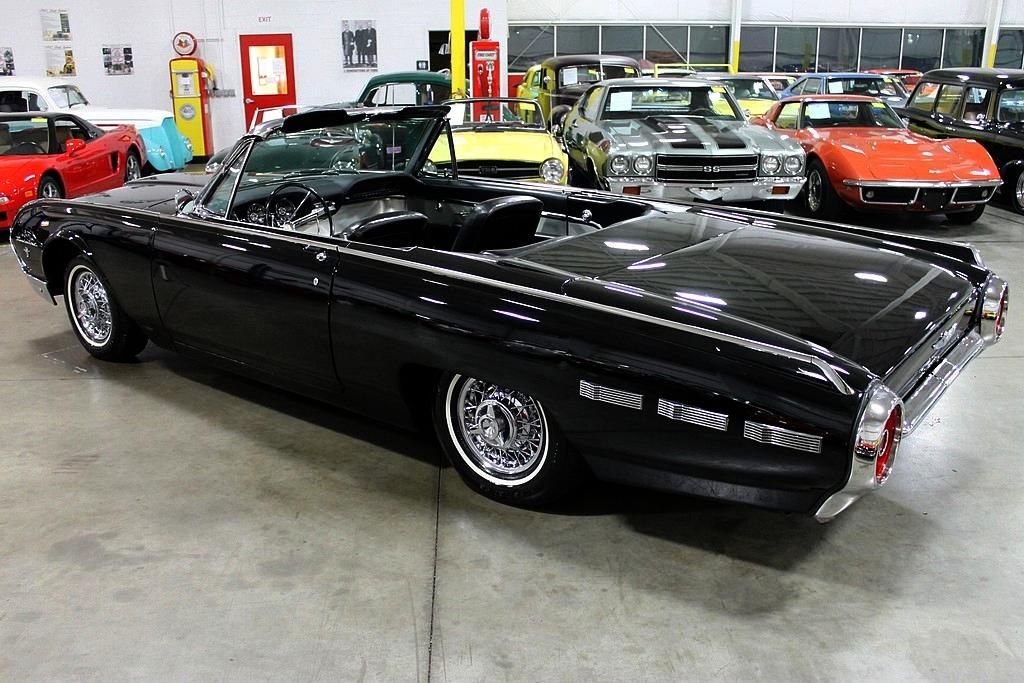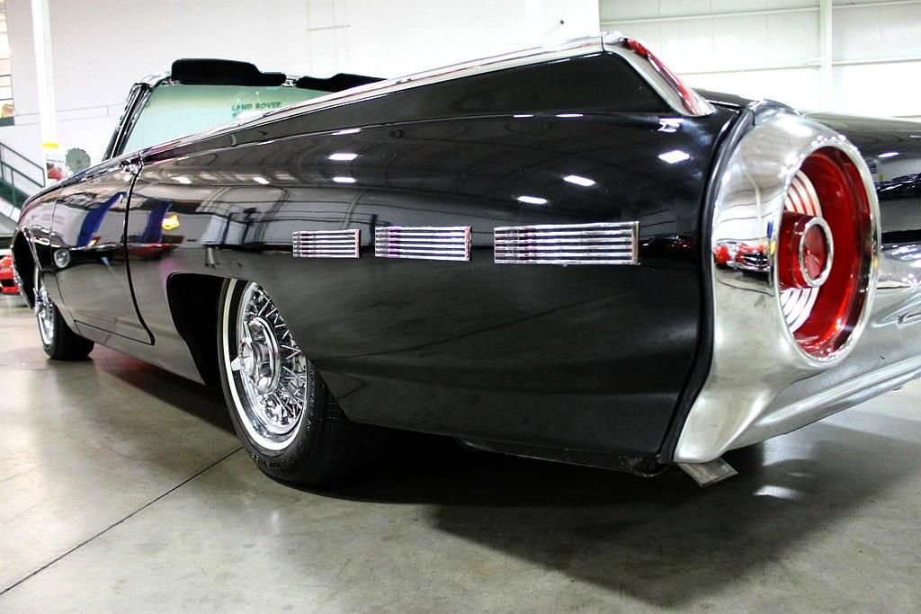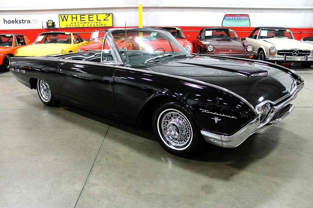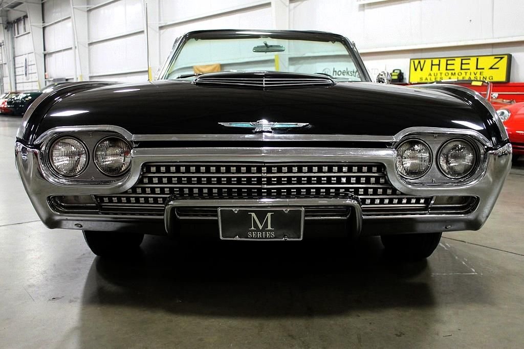 In 1958 Ford made the decision to radically change the very popular Ford Thunderbird 2 seat roadster to a much larger, family oriented vehicle. This decision would prove to be a wise business decision, however it left many motoring enthusiast pining for the sporty, open intension of the first generation birds. In 1962, ford produced a limited variant of their sleeker third generation convertible, the Sports Roadster. The 1962 Thunderbird Sports Roadster models are among the most prized of all Thunderbird with only 1427 total produced. The package consisted of Kelsey Hayes wire wheels with knock off spinners, and most notably a fiberglass tonneau that covering the rear seat creating the 2 seat roadster configuration. Of the 1427 Sports Roadsters produced in 1962, 119 of them were equipped with the desire “M” code 390 / 340 HP engine with tri-power carbs and intake. We are pleased to present this lovely 1962 Ford Thunder Factory “M” Code Sports Roadster for consideration. This car features its factory 390 / 340 hp Tri-power motor mated to an automatic transmission. Options include “M” code package, power convertible top, Kelsey Hayes wire wheels with spinners, power steering, power brakes, power windows, power top (works flawlessly) and “Swing-away” steering column. The car is finished in its original color combination, Raven Black on Black Vinyl interior, White convertible top. Today, the car remains in excellent condition. The 20+ plus year old restoration has held up remarkably well as it has been held in one private collection of classic vehicles since. Mechanically, the car is wonderful to drive possessing a very confident feel coupled with the power of the M-code 340hp motor. 1962 Ford Thunderbird “M” Code Sports Roadsters are highly sought after cars that are often copied. A true Factory example such as this are very rare and an excellent automotive investment.