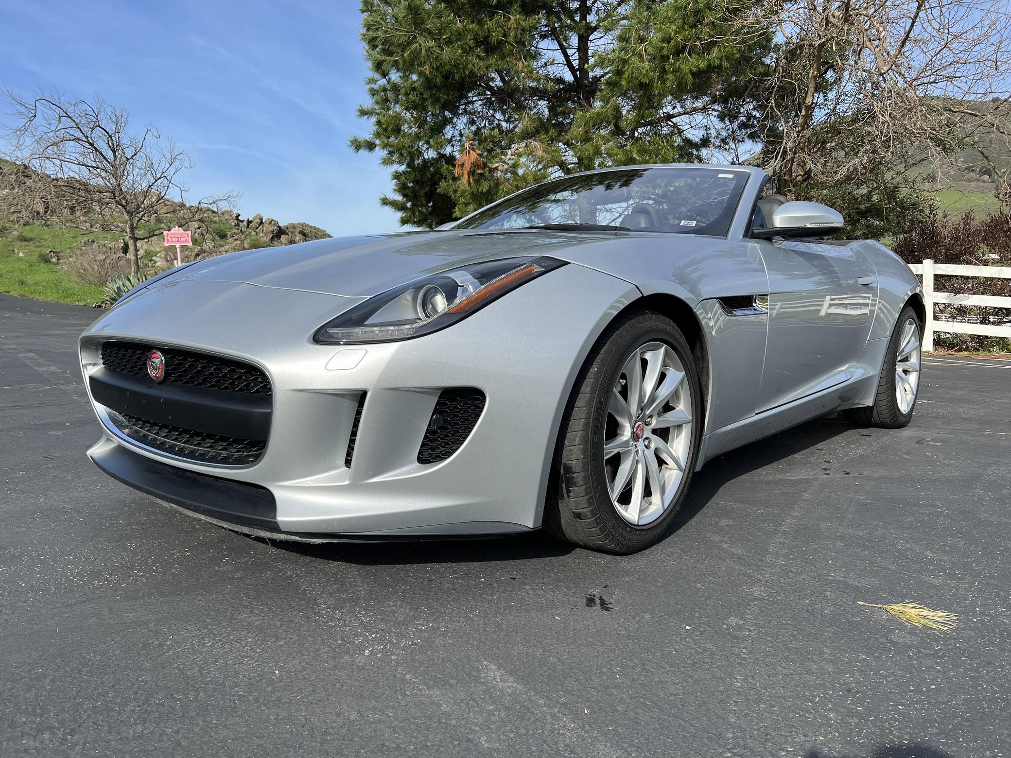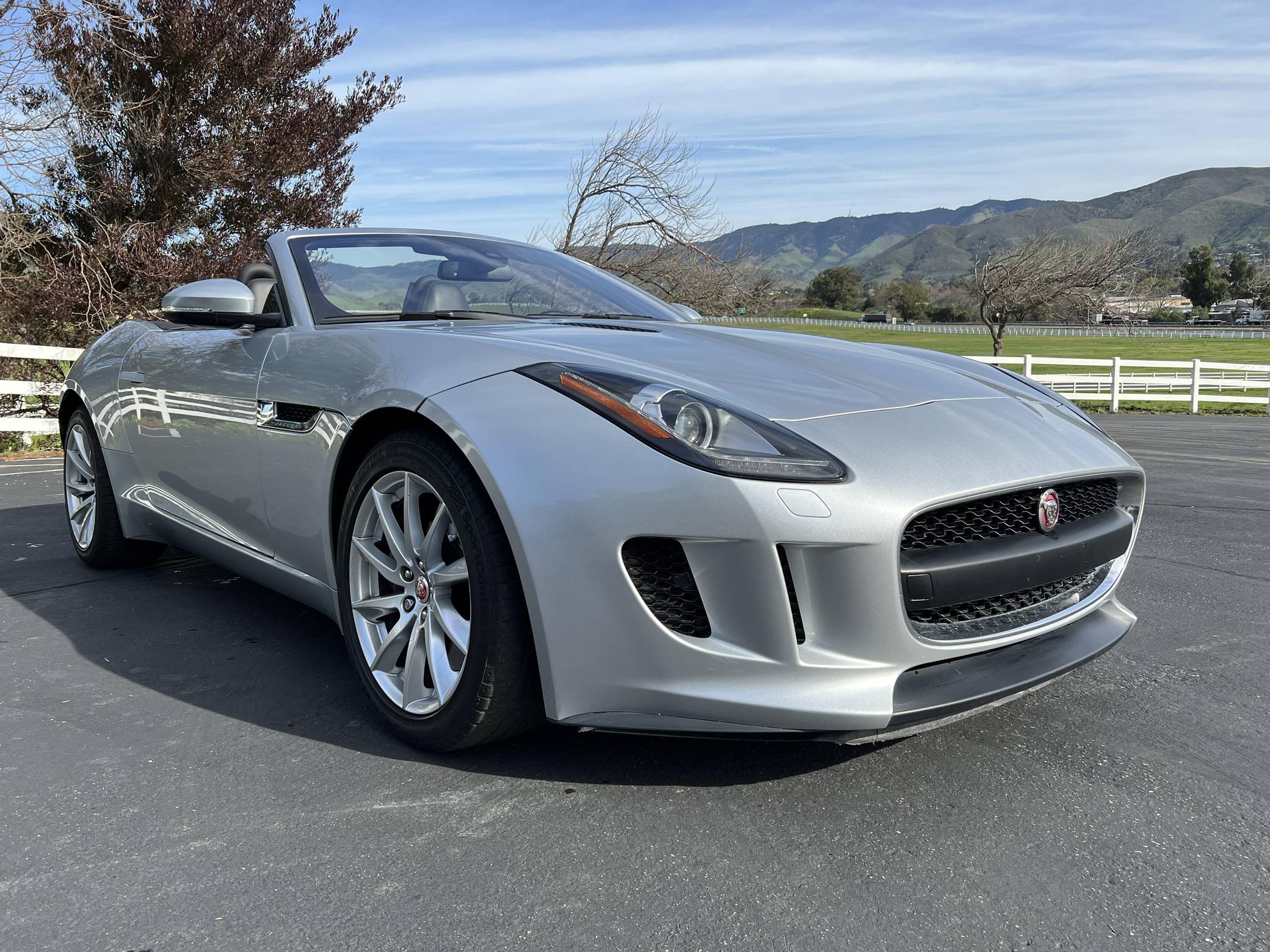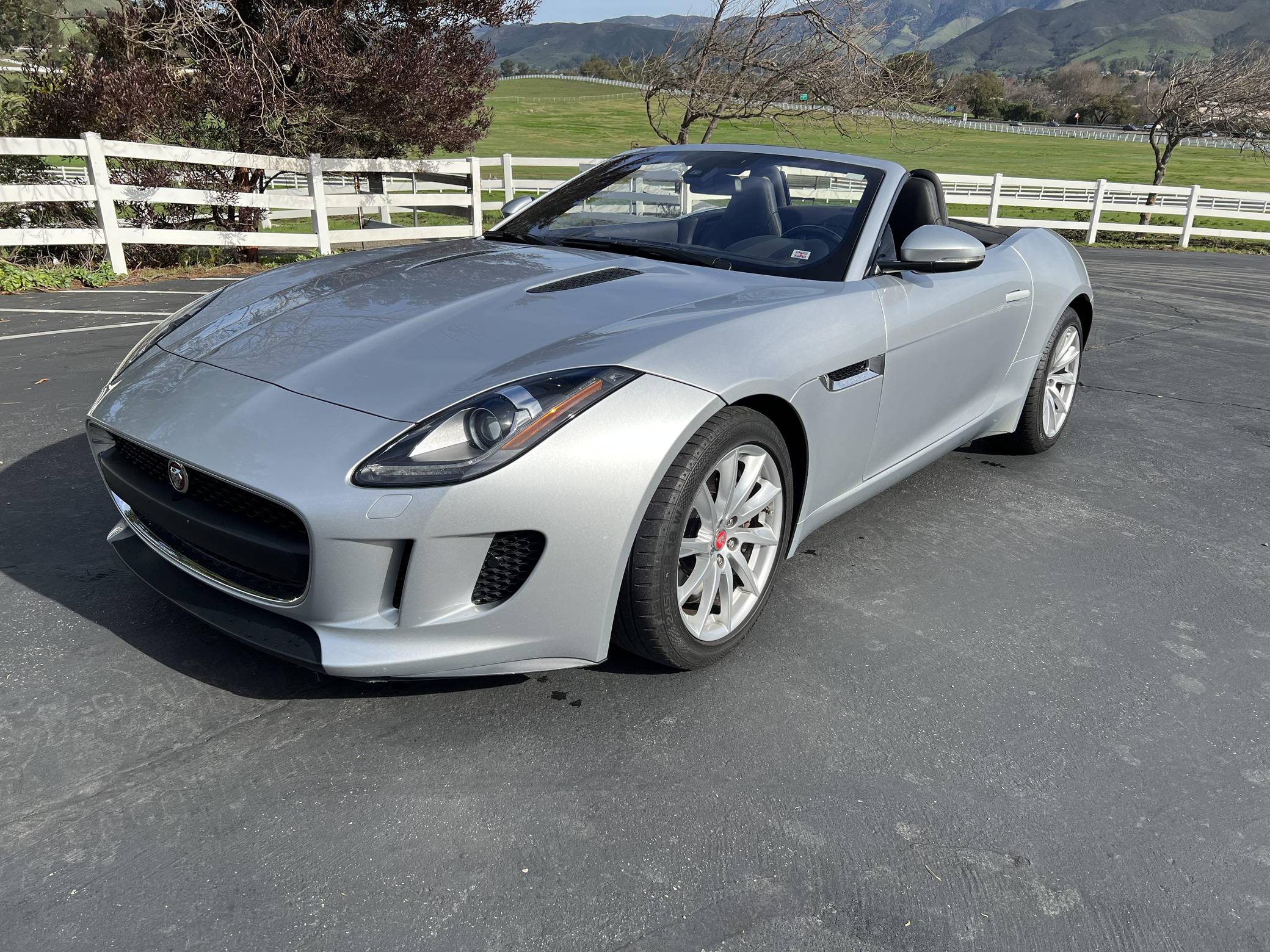 THIS… is a 2017 Jaguar F-Type convertible, finished in Indus Silver Metallic with a black soft top and a black interior. This F-Type's odometer currently displays about 26,800 miles. Factory equipment includes 18-inch wheels, a power-operated soft top, power-operated rear spoiler, leather and Alcantara upholstery, power-adjustable seats, automatic climate control, and a Meridian sound system, among others listed below. The seller reports no modifications. Based on the C-X16 concept from 2011, Jaguar unveiled the hotly-anticipated F-Type for the 2014 model year. Offered as a coupe and as a convertible, the F-Type was presented as the E-Type's spiritual successor, and as an alternative to sports cars like the Porsche 911. This model is the supercharged V6 variant of the F-Type with a top speed of 161 mph and a 0-to-60 mph time of 5. 1 seconds. It was available from 2014 until 2019. Power comes from a 3. 0-liter supercharged V6, rated at 340 horsepower and 332 lb-ft of torque. Output is sent to the rear wheels via an 8-speed automatic transmission.