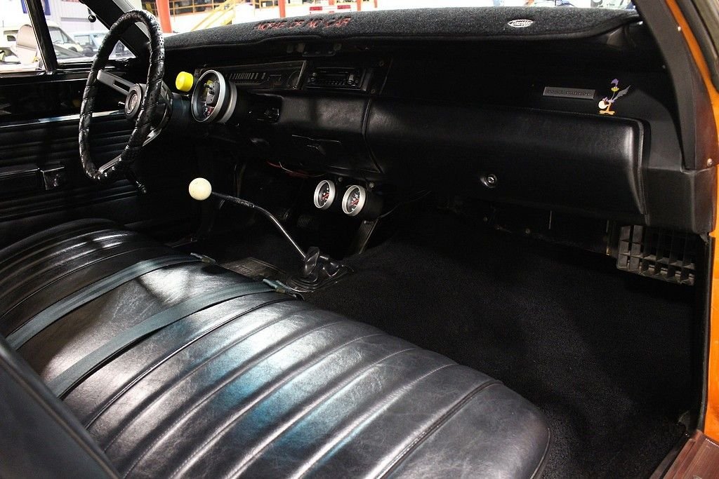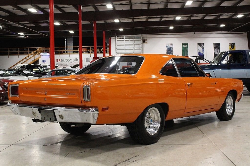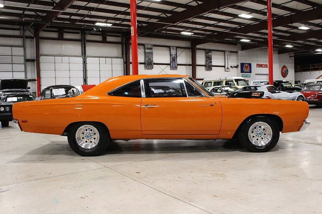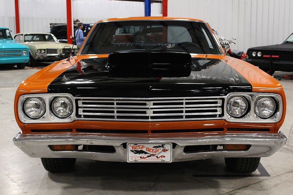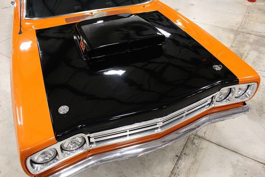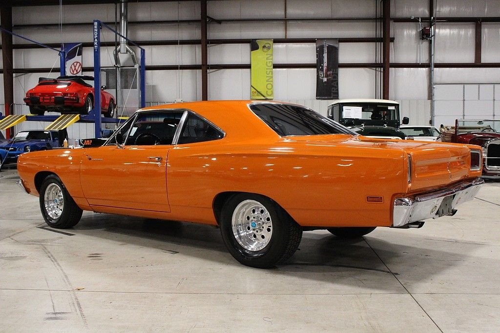 Perhaps no other car defined Mopar Muscle than the 1969 Plymouth Road Runner. Plymouth's “dare to be different” attitude was exemplified with the road runner as in 1968 the paid 50, 000 dollars to Warner Brothers to use the name and likeness of their iconic Road Runner cartoon character and they spent thousands on the development of the cars signature “beep beep” horn. The design and promotional aspect was fun and fresh, however the power and performance of these cars were taken very seriously during development as the muscle car wars were at their height of their popularity in 1969. This Roadrunner is a California car offered for sale publicly for the first time. It is powered by a rebuilt 383ci 6 BBL V8 engine paired with a 4-speed manual transmission. This car features Orange paint, black vinyl interior, aftermarket tachometer, aftermarket radio with remote, a new mat in the trunk, and Hurst shifter. This car is a lot of fun to drive and a great example of vintage Mopar Muscle. The Roadrunner line is one of the most popular of the muscle car era making this body style a timeless head turner and a great investment!