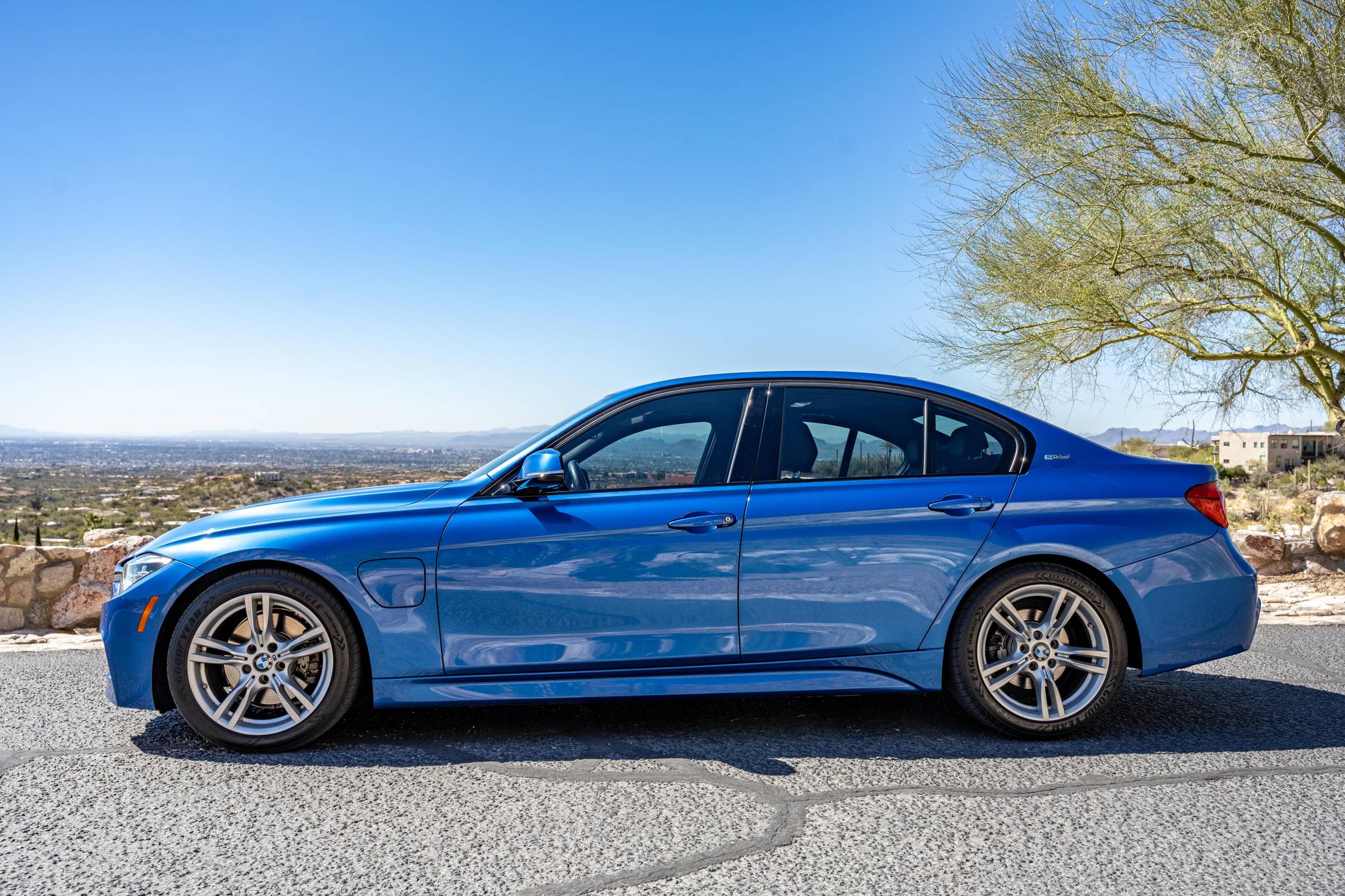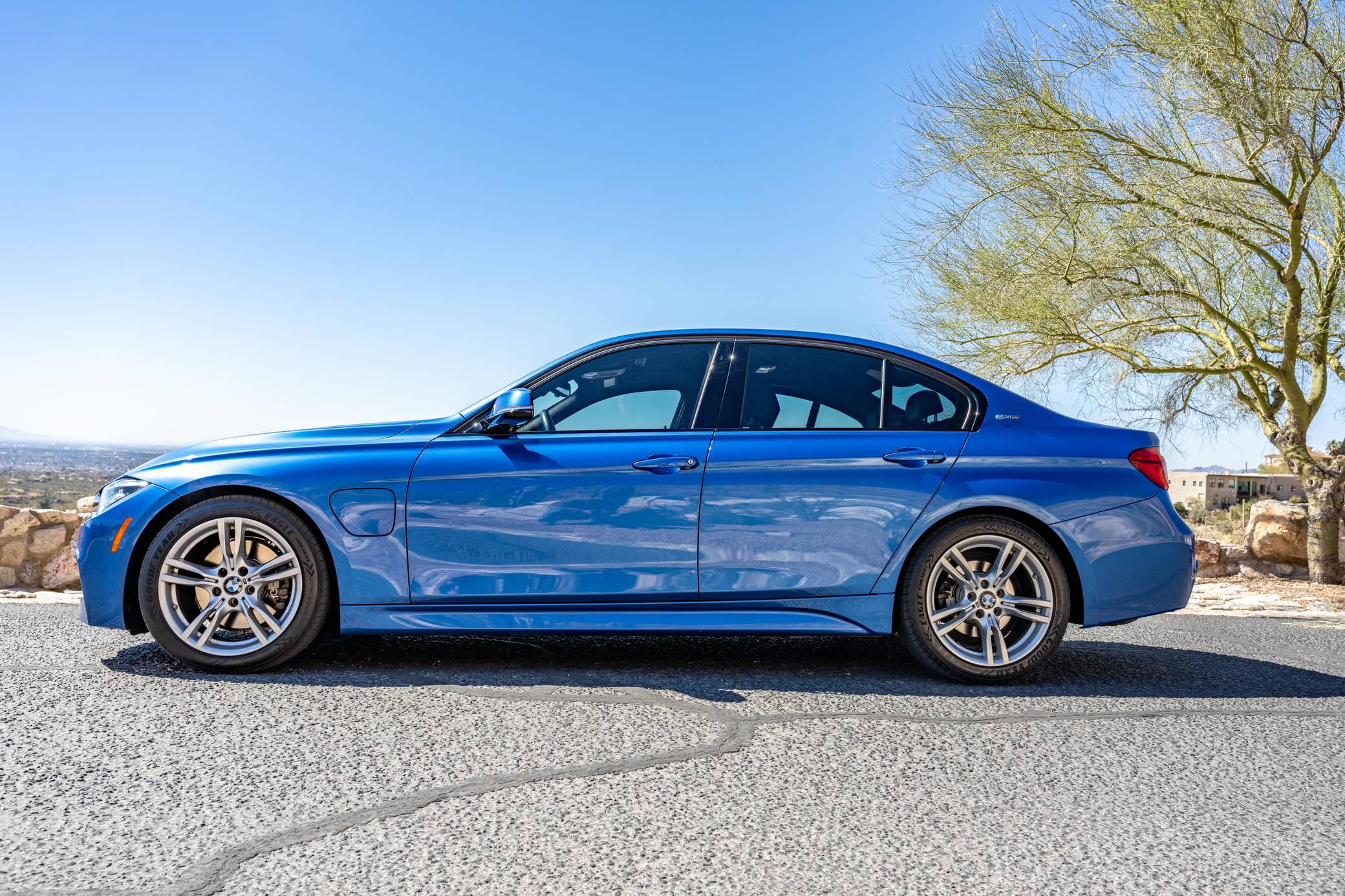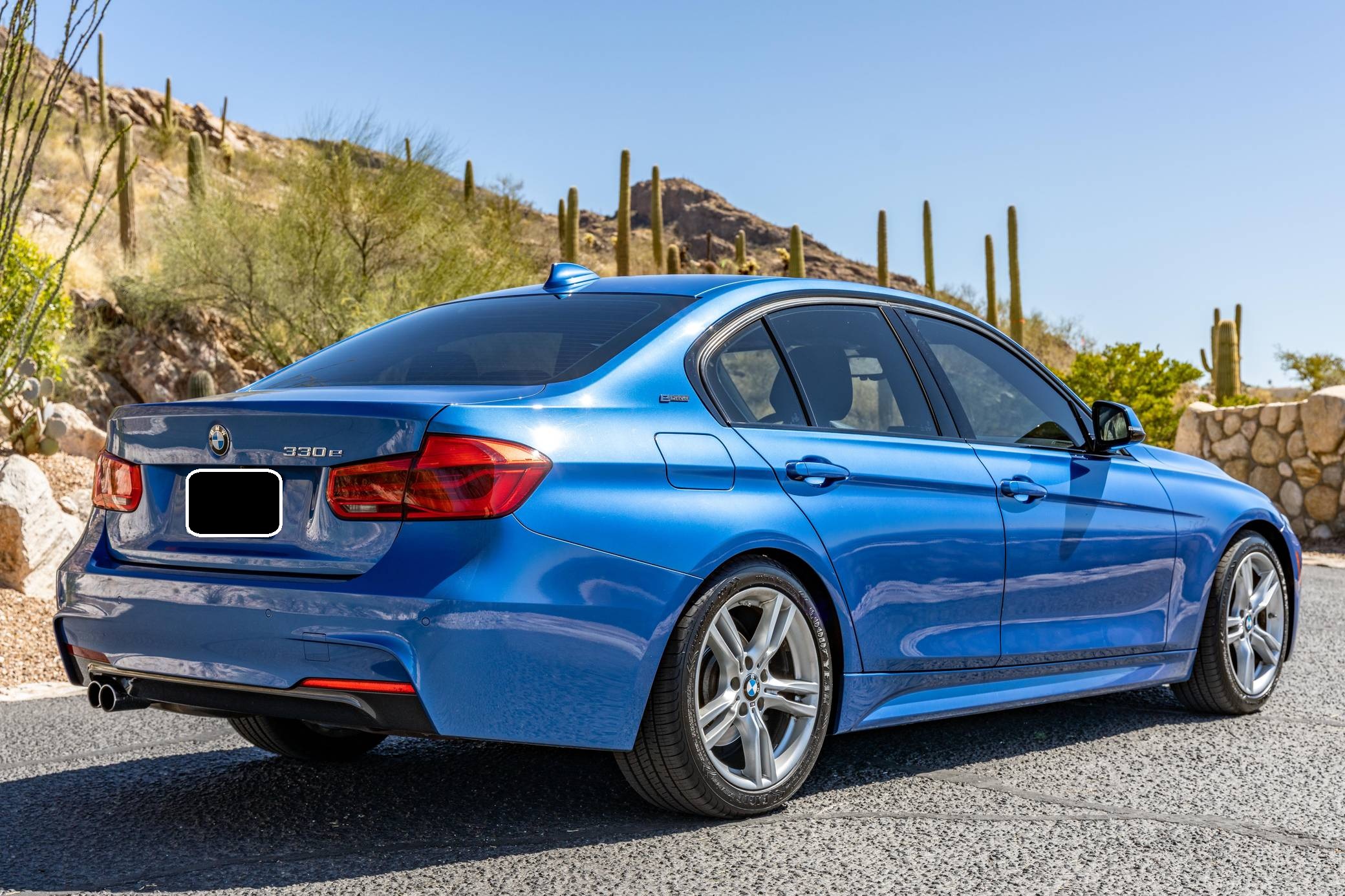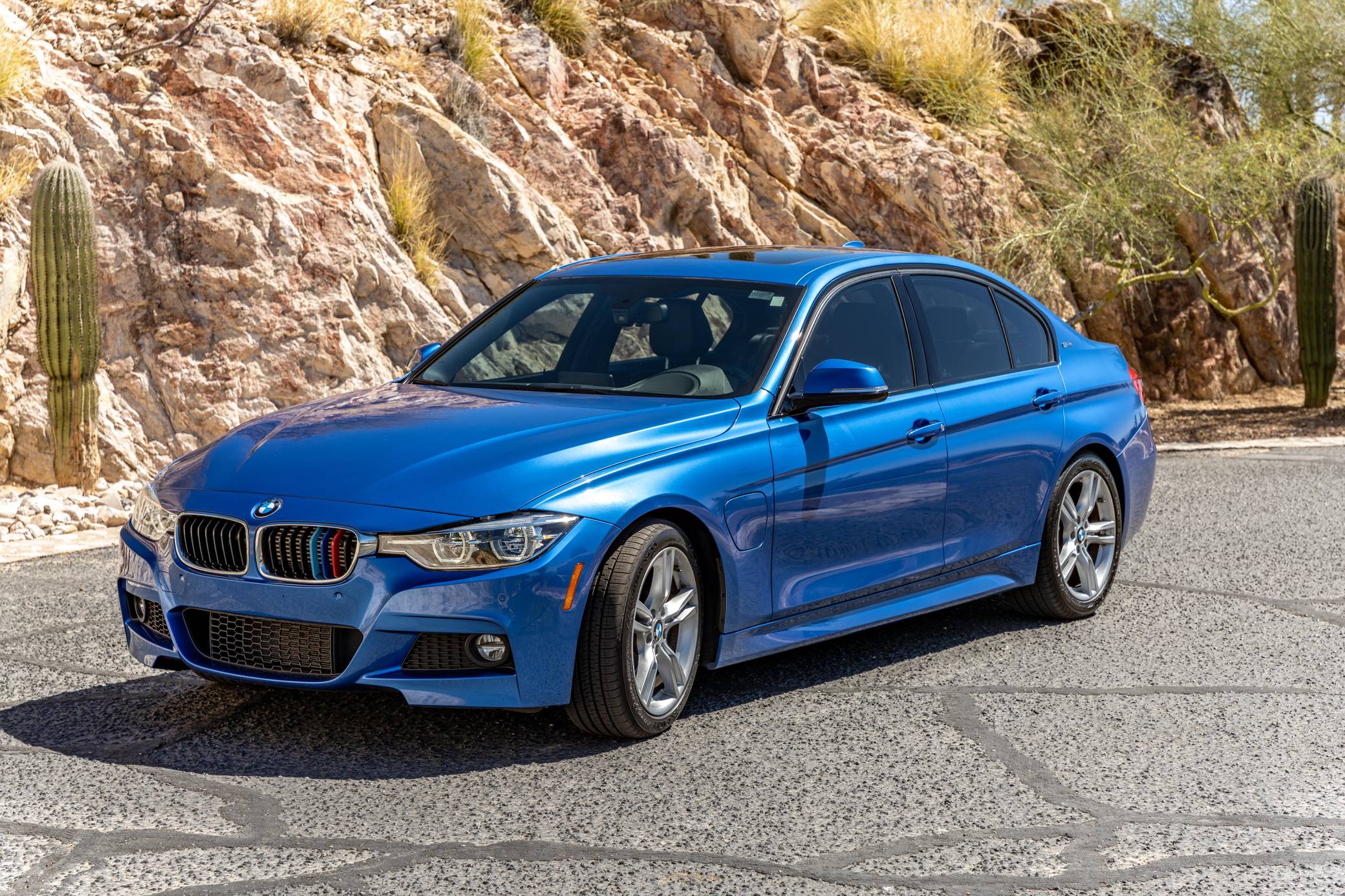 THIS… is a 2016 BMW 330e iPerformance sedan, finished in Estoril Blue Metallic with a black interior. Factory equipment includes the M Sport package, adaptive LED headlights, a power-operated sunroof, leather upholstery, aluminum hexagon interior trim with blue accents, power-adjustable and heated front seats, a navigation system, and more as listed below. Modifications reported by the seller are limited to a ProTuning Freaks Bootmod3 Stage 1 tune and M-themed front grille inserts. BMW launched the sixth-generation 3 Series for the 2012 model year. Called F30 internally, it was slightly bigger and correspondingly more spacious than its predecessor, and it offered buyers a much more up-to-date interior. The plug-in hybrid 330e iPerformance model joined the range in the summer of 2016, offering a pure EV range of around 14 miles at speeds of up to 75 mph. Power comes from a “B48” 2. 0-liter turbocharged inline-4 and an electric motor, carrying a combined rating of 248 horsepower and 310 lb-ft of torque. ProTuning Freaks claim an up to 42% increase in horsepower and up to 46% increase in torque when running on 91 octane fuel, but a dyno sheet was not provided to confirm. Output is sent to the rear wheels via an 8-speed automatic transmission.