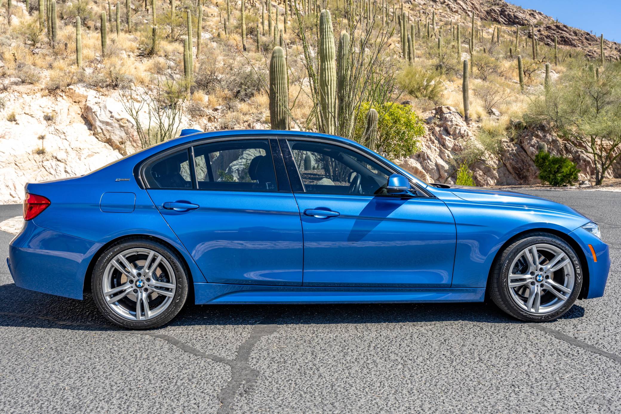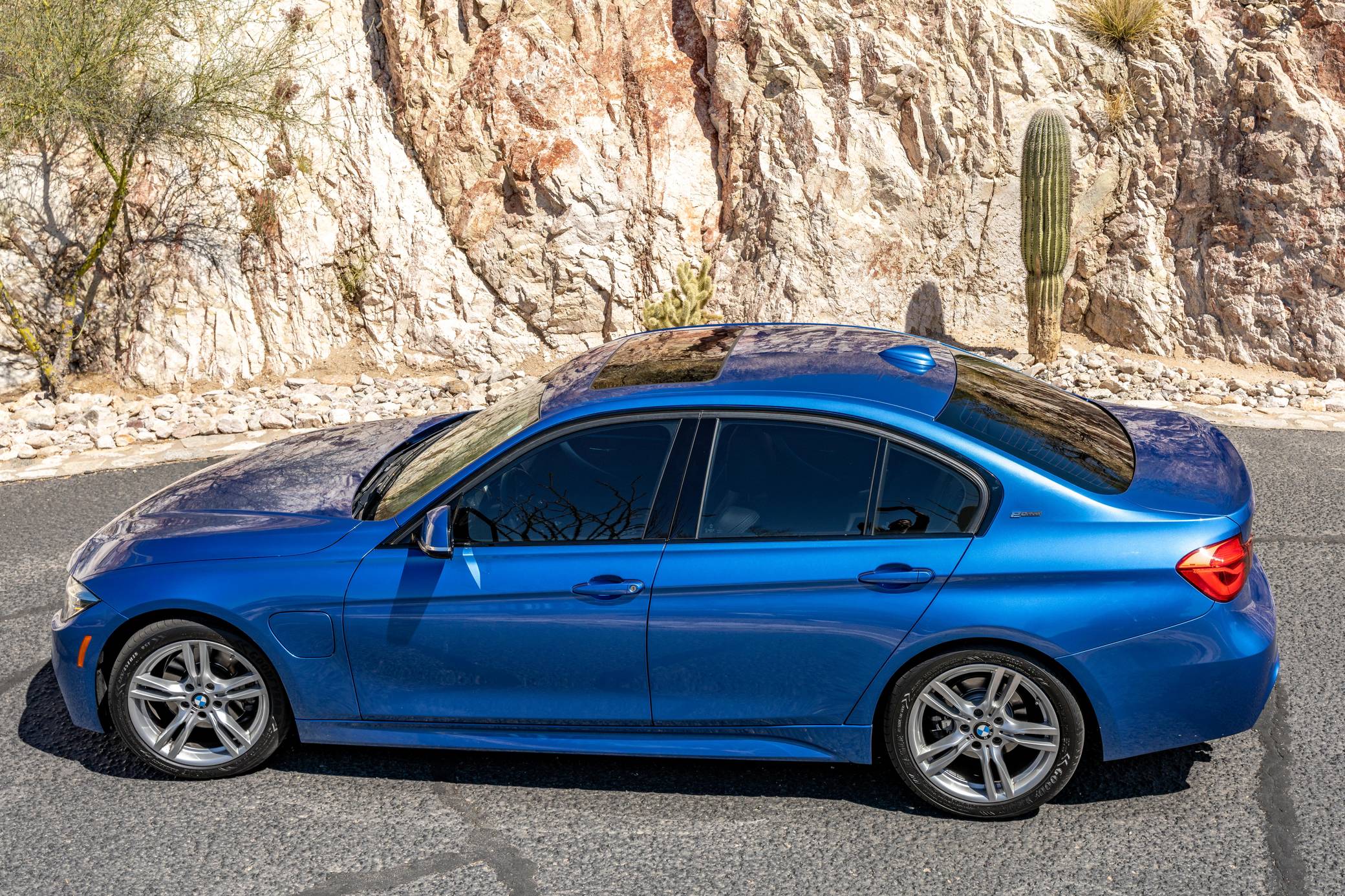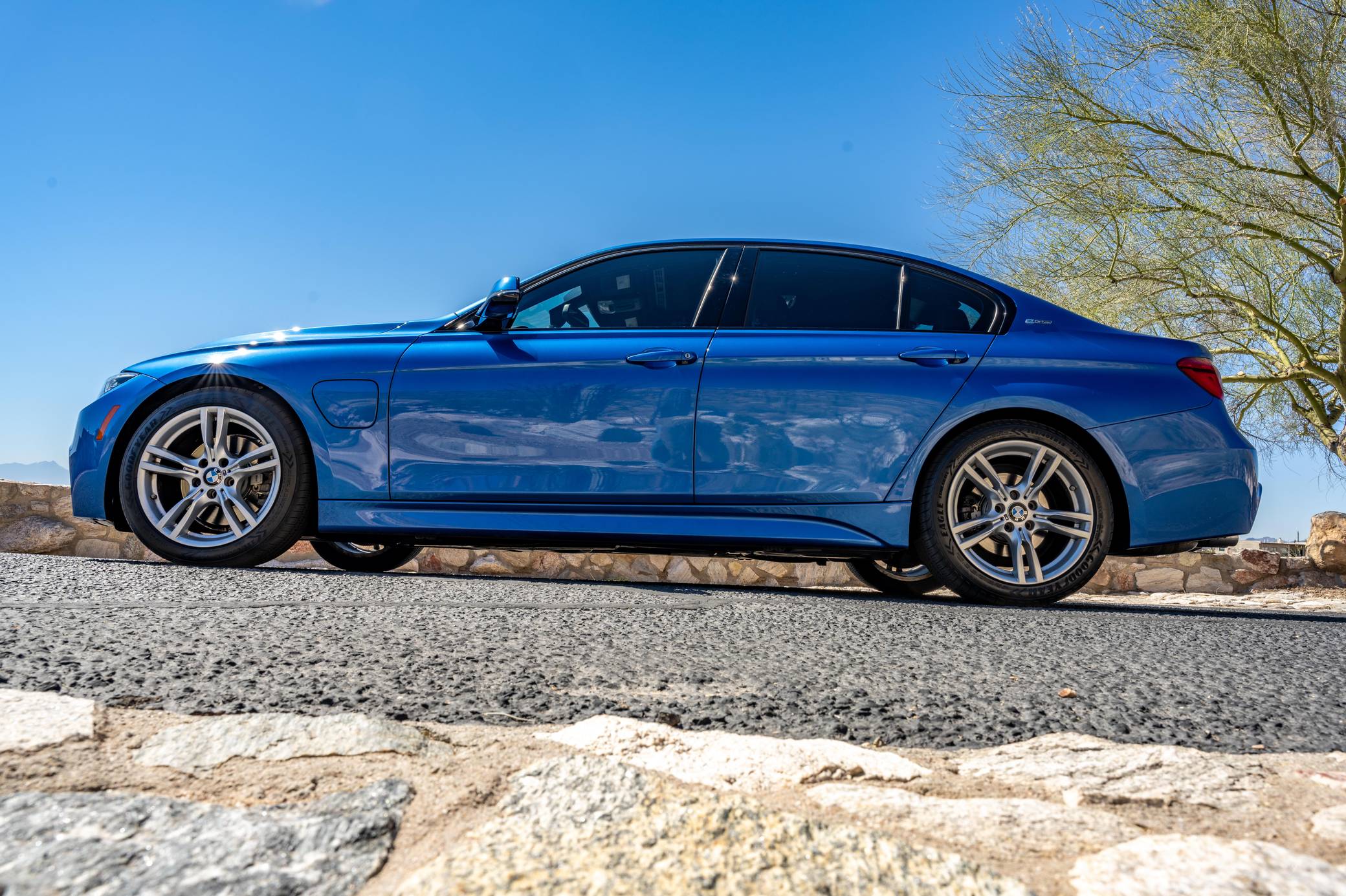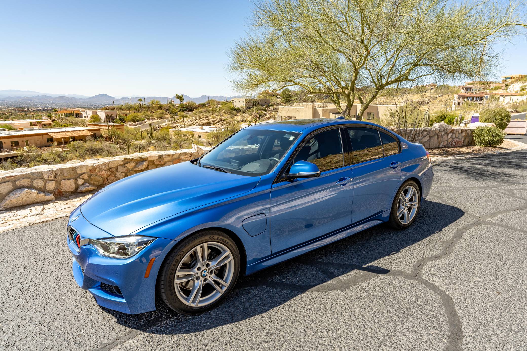 THIS… is a 2016 BMW 330e iPerformance sedan, finished in Estoril Blue Metallic with a black interior. Factory equipment includes the M Sport package, adaptive LED headlights, a power-operated sunroof, leather upholstery, aluminum hexagon interior trim with blue accents, power-adjustable and heated front seats, a navigation system, and more as listed below. Modifications reported by the seller are limited to a ProTuning Freaks Bootmod3 Stage 1 tune and M-themed front grille inserts. BMW launched the sixth-generation 3 Series for the 2012 model year. Called F30 internally, it was slightly bigger and correspondingly more spacious than its predecessor, and it offered buyers a much more up-to-date interior. The plug-in hybrid 330e iPerformance model joined the range in the summer of 2016, offering a pure EV range of around 14 miles at speeds of up to 75 mph. Power comes from a “B48” 2. 0-liter turbocharged inline-4 and an electric motor, carrying a combined rating of 248 horsepower and 310 lb-ft of torque. ProTuning Freaks claim an up to 42% increase in horsepower and up to 46% increase in torque when running on 91 octane fuel, but a dyno sheet was not provided to confirm. Output is sent to the rear wheels via an 8-speed automatic transmission.