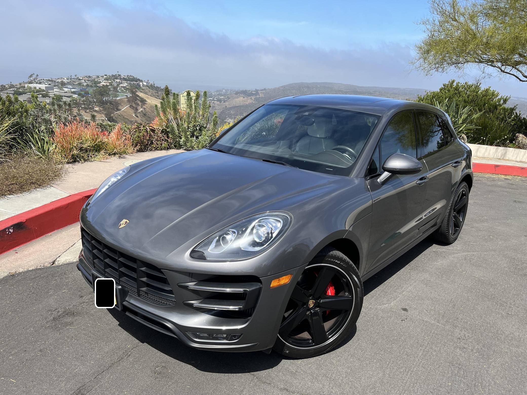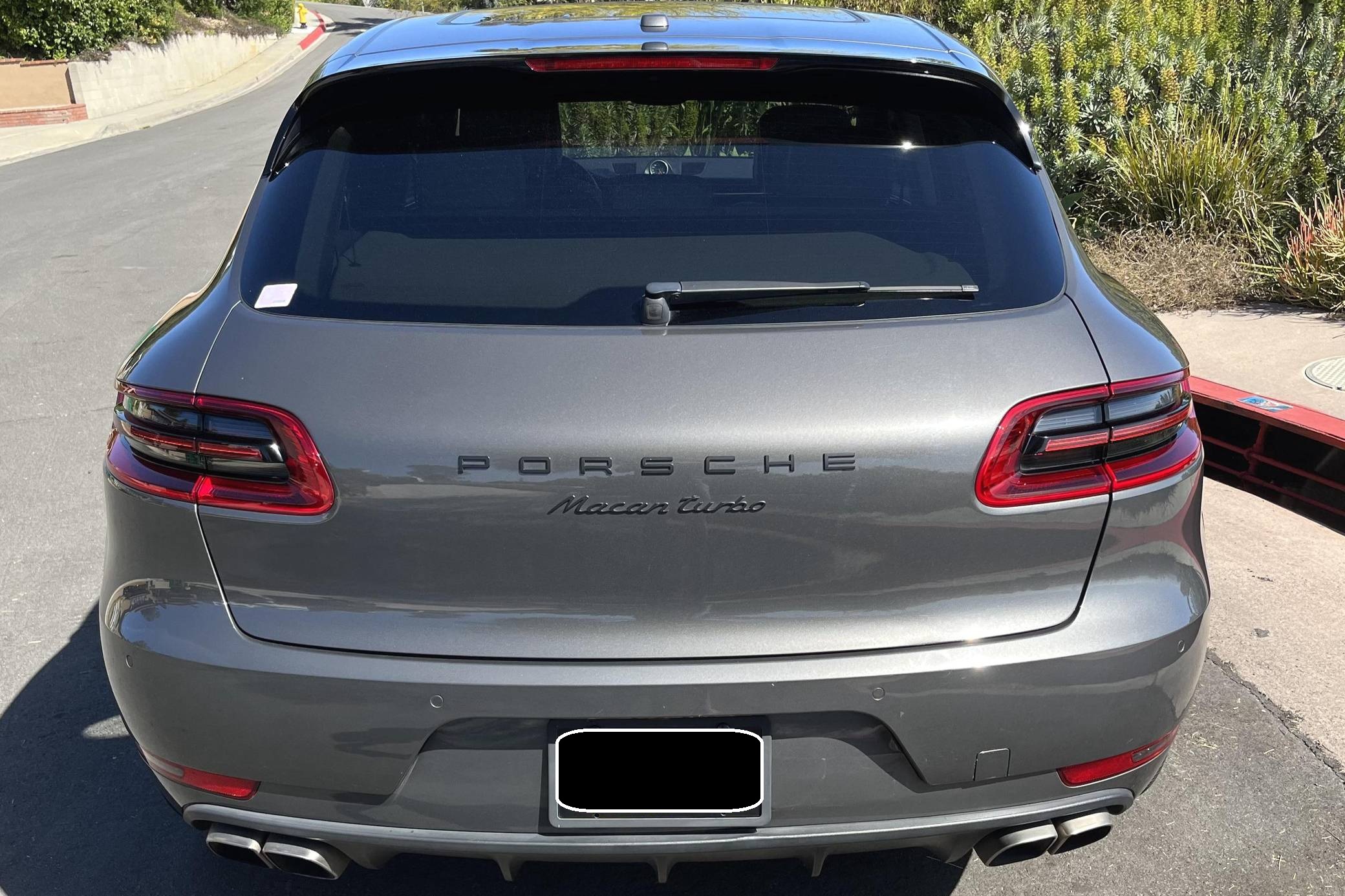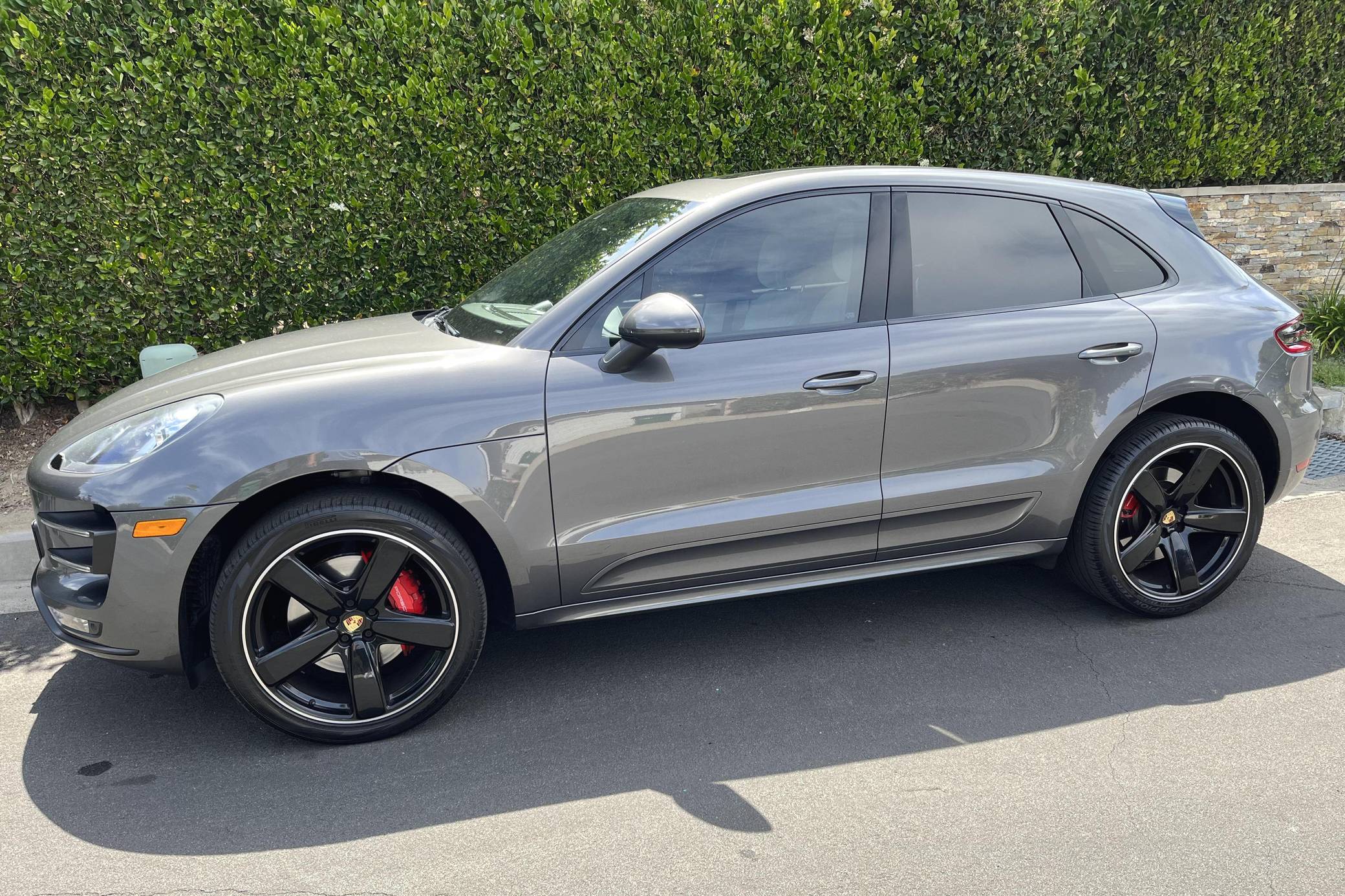 2016 Porsche Macan Turbo, finished in Agate Grey Metallic with an Agate Grey and Pebble Grey interior. A Monroney Label is provided in the photo gallery, and a partial list of notable equipment includes the Sport Chrono, Premium Plus, Monochrome High-Gloss Black Exterior, Black High-Gloss Finish Interior Package, and Light Comfort packages, 21-inch black Sport Classic wheels, air suspension with Porsche Active Suspension Management (PASM), leather upholstery, leather dashboard trim, a center touchscreen infotainment display, and a rear-view camera with front and rear park assist. Modifications reported by the seller are limited to black rear badges. Encouraged by the Cayenne's success, and eager to tap into one of the biggest segments of the market, Porsche introduced the Macan as its entry-level SUV for 2015. Some of the model's underpinnings came from Audi, but Porsche dialed in a level of performance and handling that's unusual to find in a compact SUV. The Turbo model was positioned at the top of the line-up through the 2021 model year. Power comes from a turbocharged 3. 6-liter V6, rated at 400 horsepower and 406 lb-ft of torque. Output is sent to all four wheels via a 7-speed PDK dual-clutch automatic transmission.