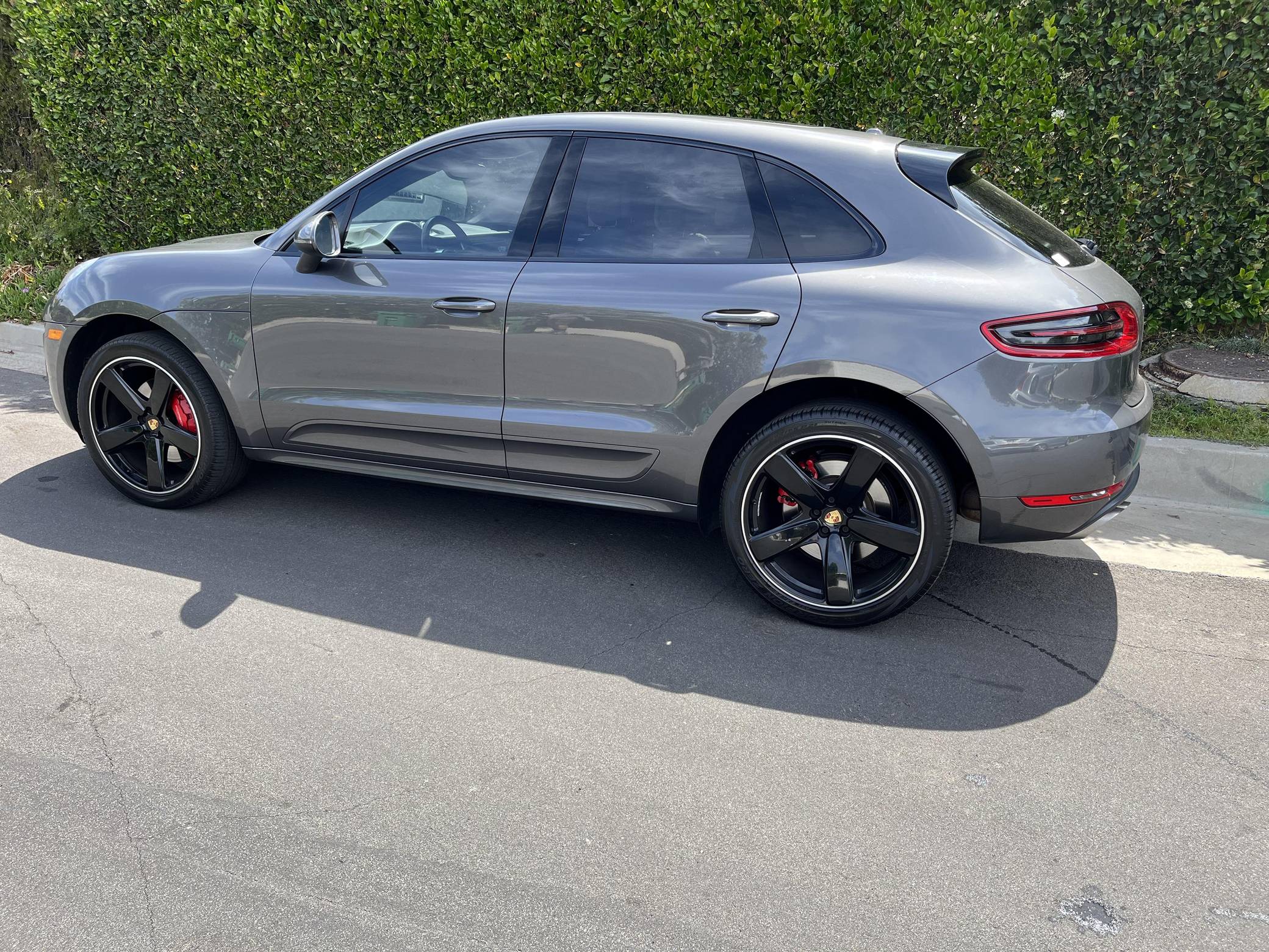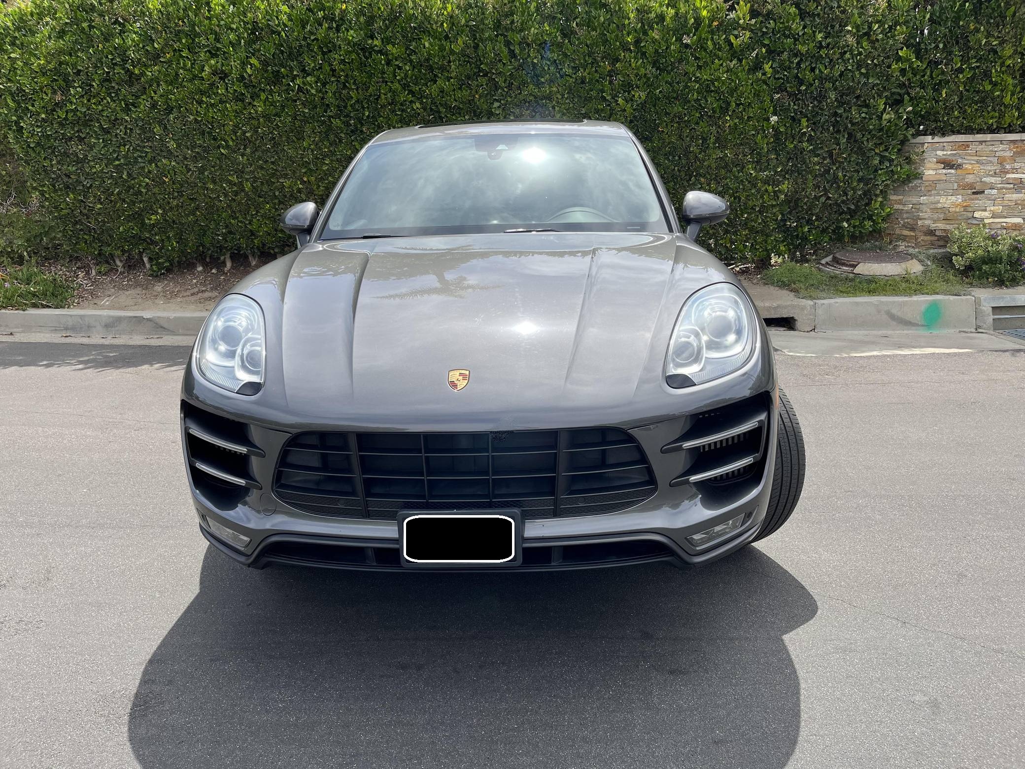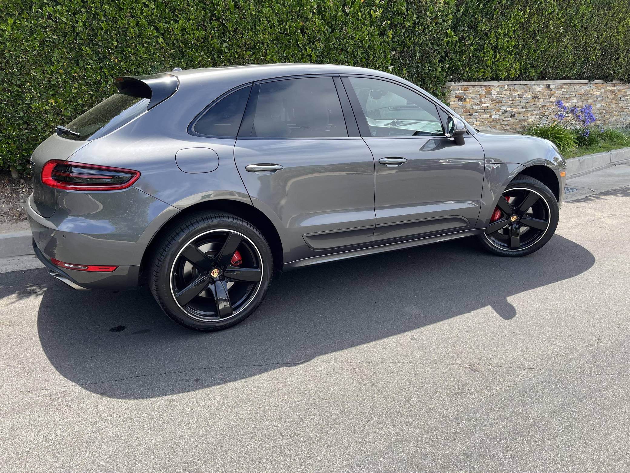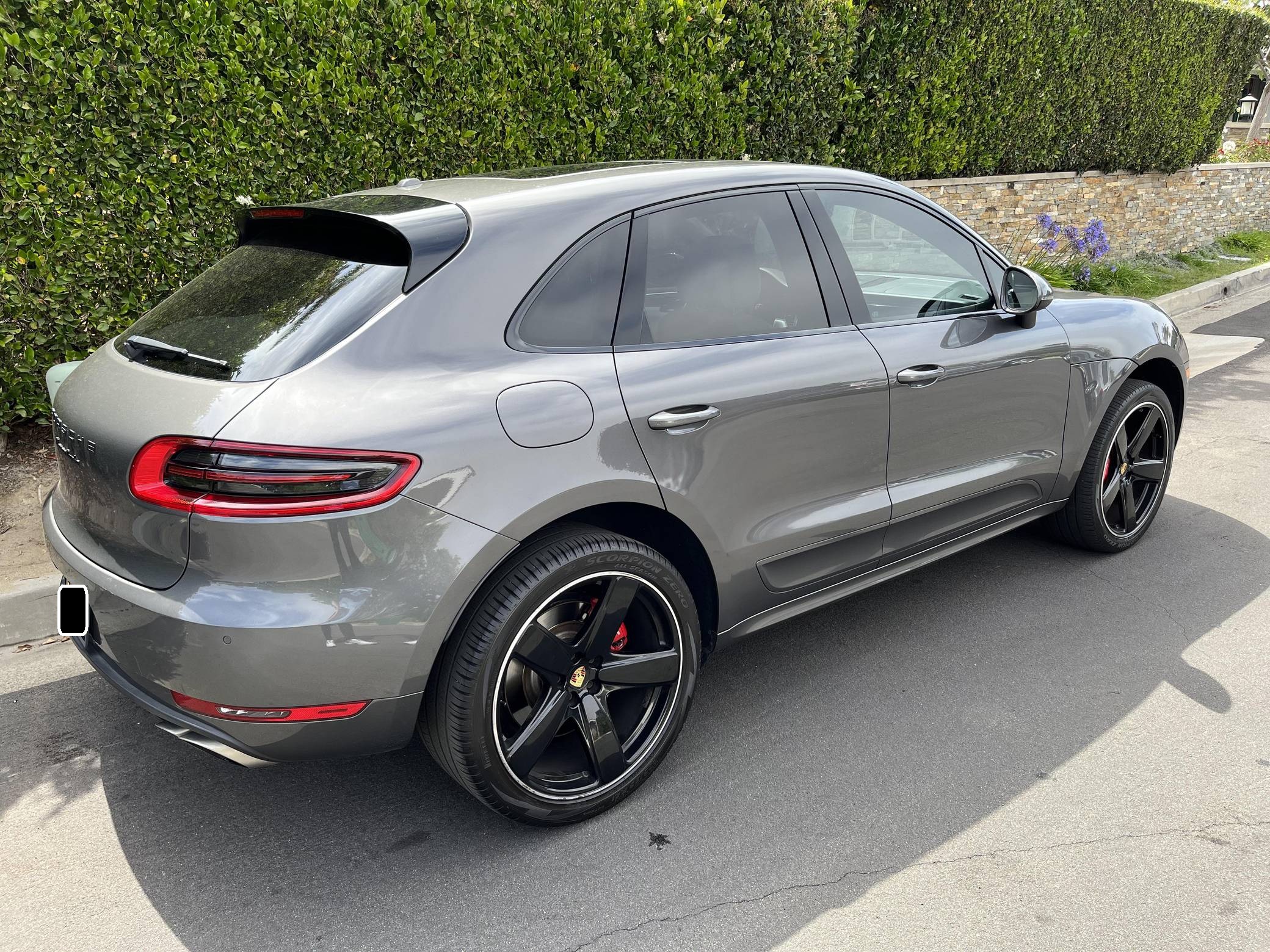 2016 Porsche Macan Turbo, finished in Agate Grey Metallic with an Agate Grey and Pebble Grey interior. A Monroney Label is provided in the photo gallery, and a partial list of notable equipment includes the Sport Chrono, Premium Plus, Monochrome High-Gloss Black Exterior, Black High-Gloss Finish Interior Package, and Light Comfort packages, 21-inch black Sport Classic wheels, air suspension with Porsche Active Suspension Management (PASM), leather upholstery, leather dashboard trim, a center touchscreen infotainment display, and a rear-view camera with front and rear park assist. Modifications reported by the seller are limited to black rear badges. Encouraged by the Cayenne's success, and eager to tap into one of the biggest segments of the market, Porsche introduced the Macan as its entry-level SUV for 2015. Some of the model's underpinnings came from Audi, but Porsche dialed in a level of performance and handling that's unusual to find in a compact SUV. The Turbo model was positioned at the top of the line-up through the 2021 model year. Power comes from a turbocharged 3. 6-liter V6, rated at 400 horsepower and 406 lb-ft of torque. Output is sent to all four wheels via a 7-speed PDK dual-clutch automatic transmission.