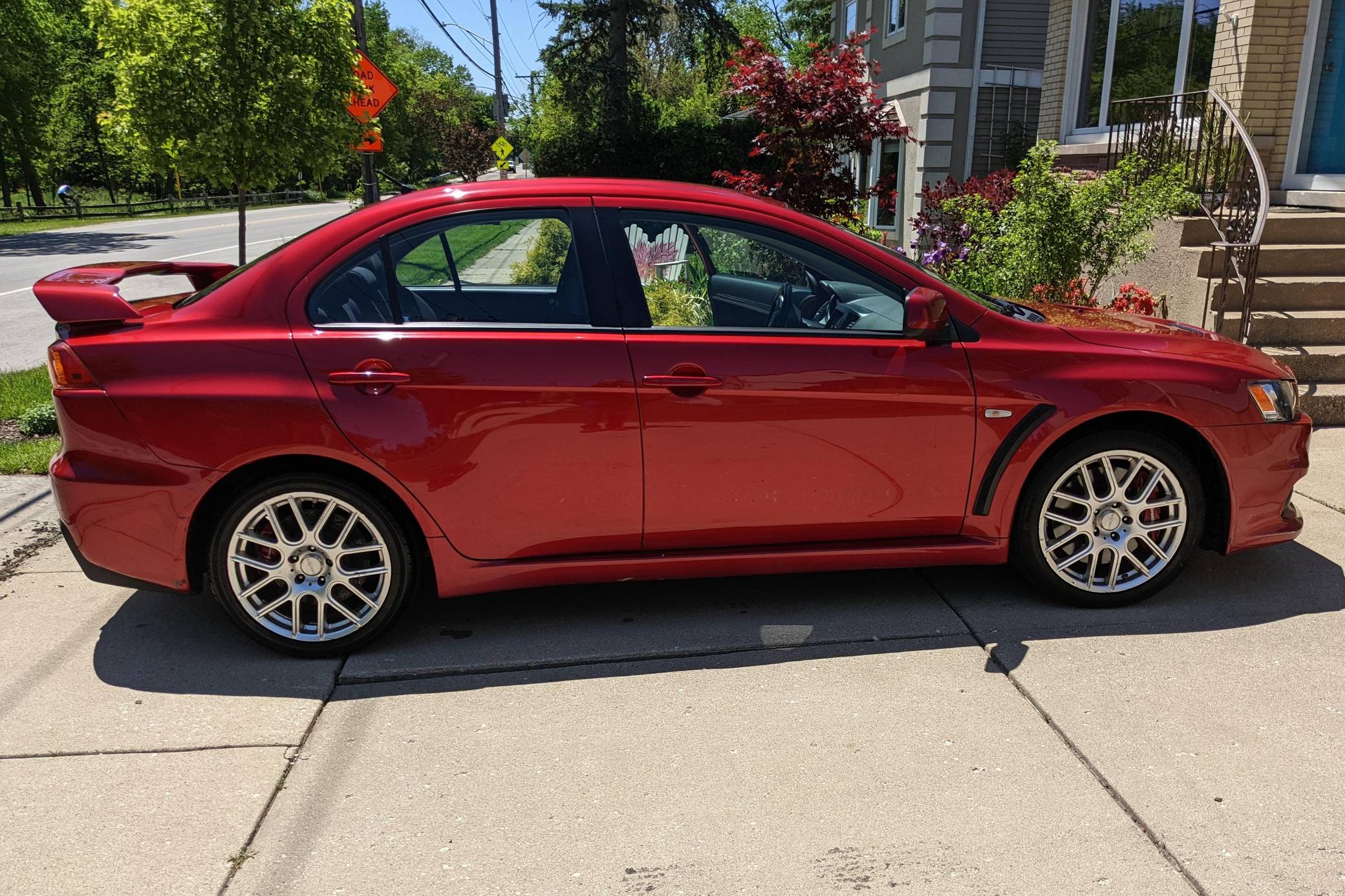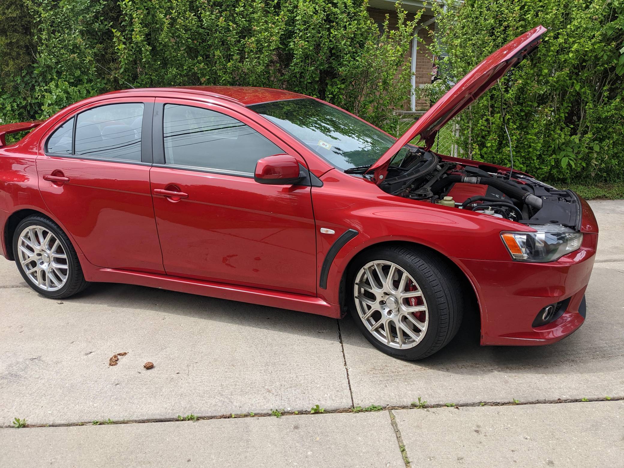 2008 Mitsubishi Lancer Evolution X GSR, finished in Rally Red Metallic with a black interior. This sedan is equipped with the desirable 5-speed manual transmission. It's equipped with the Interior Sport Package, a Brembo braking system, an Evolution-specific body kit, cloth upholstery, Recaro front sport seats, and a 6-speaker sound system, among other features. Modifications reported by the seller are limited to 18-inch Vision wheels and a JVC head unit. Mitsubishi's 10th and final Lancer Evolution arrived for 2008. It gained a new, more powerful engine, a revised suspension system, and a design inspired by sharks and fighter jets, according to the company. MR denoted an automatic transmission; stick-shifted variants were called GSR. Mitsubishi canceled the Lancer Evolution in 2016, and it all but confirmed the model will not return in the foreseeable future. Power comes from a 2. 0-liter turbocharged 4-cylinder engine, rated at 291 horsepower and 300 lb-ft of torque. It spins the four wheels via a 5-speed manual transmission, limited-slip front and rear differentials, and Mitsubishi's permanent Super All-Wheel Control (S-AWC) all-wheel-drive system.