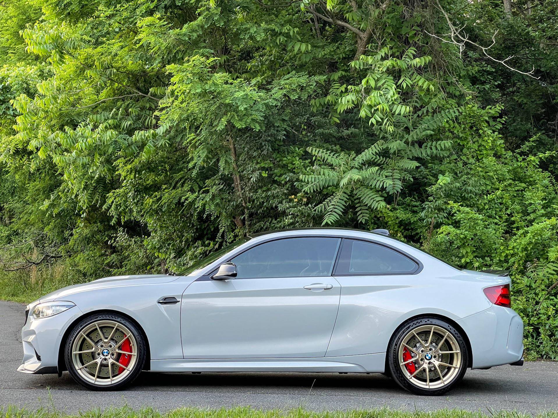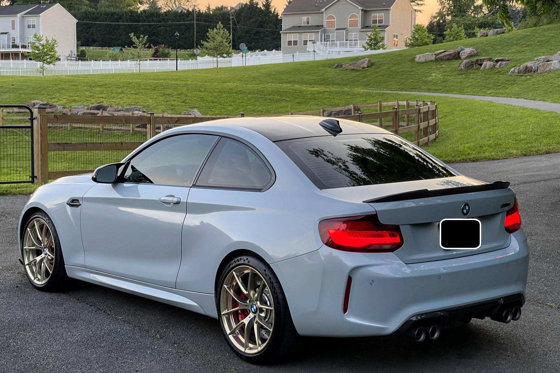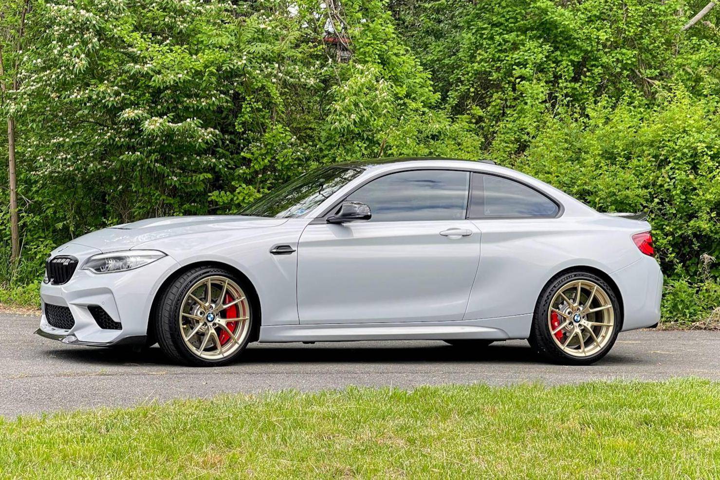 2020 BMW M2 CS, finished in Hockenheim Silver Metallic with a black interior. This BMW M2 CS is equipped with the desirable 6-speed manual transmission, and its odometer currently displays approximately 7,900 miles. Factory equipment includes the ConnectedDrive Package, 19-inch Style 763M gold wheels finished in gold, an Active M differential, an adaptive M suspension, a carbon fiber roof panel and hood, adaptive full LED headlights, M Competition heated and power-adjustable front seats, and more as listed below. Modifications include a dealer-installed M Performance exhaust system with carbon fiber tips, Ground Control camber plates, PPF, tinted windows, and IND painted front reflectors, key holes, and red steering wheel buttons. BMW introduced the F87 M2 for the 2016 model year as a high-performance evolution of the "F22"-generation 2 Series. Developed to replace the vaunted 1 Series M Coupe, it was celebrated as one of BMW M's greatest modern hits. It stood out from the 2 Series thanks to a more powerful engine, a revised chassis, M-specific suspension with aluminum components, and a more muscular-looking exterior design. This BMW M2 is a limited-edition CS model, reportedly one of 466 examples offered in the U. S. market. It’s the most hardcore version of the F87 M2, featuring more power, a re-tuned chassis, less weight, and improved aerodynamics over the M2 Competition. Power comes from the twin-turbocharged “S55” 3. 0-liter straight-6 engine, rated at 444 horsepower and 406 lb-ft of torque. Output is sent to the rear wheels via a 6-speed manual transmission.