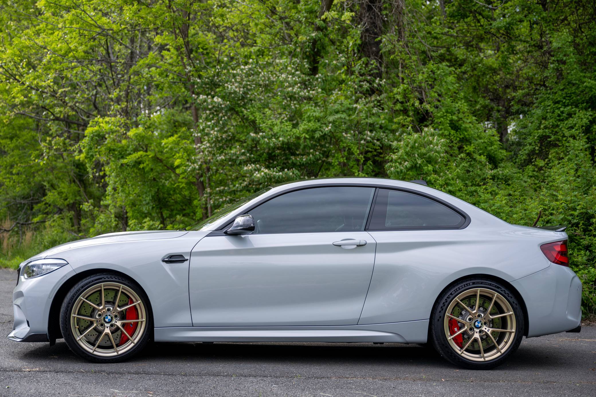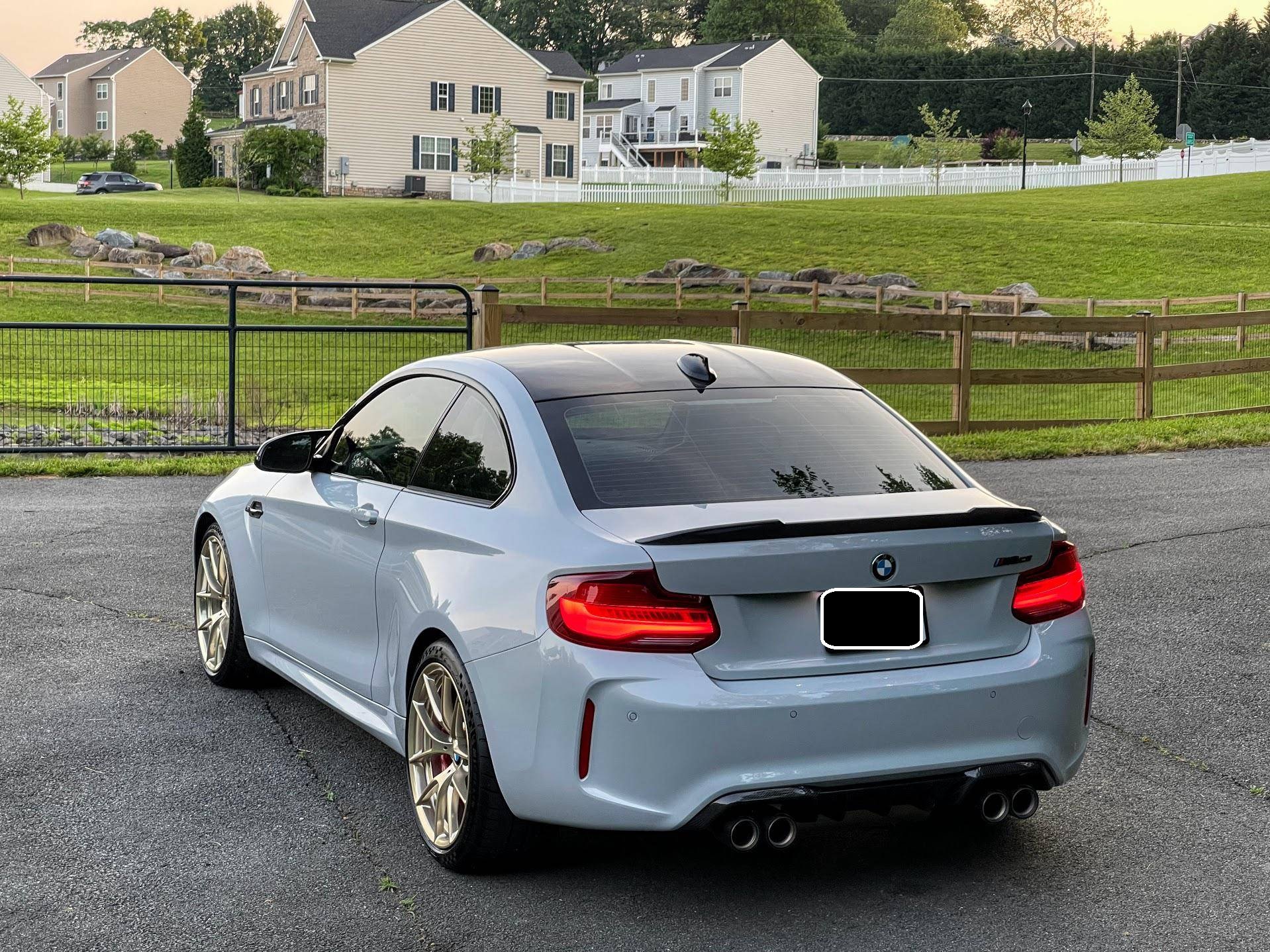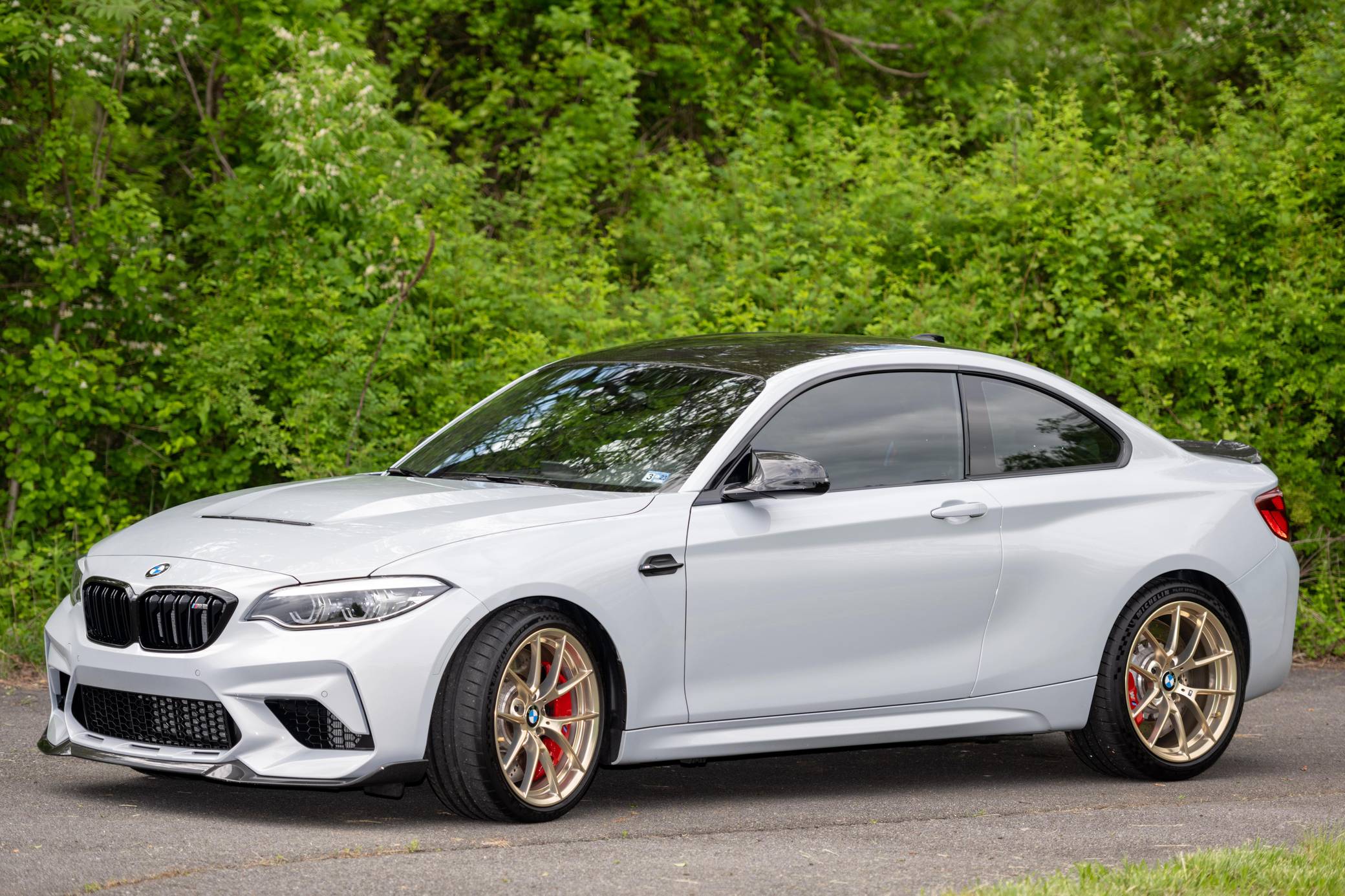 2020 BMW M2 CS, finished in Hockenheim Silver Metallic with a black interior. This BMW M2 CS is equipped with the desirable 6-speed manual transmission, and its odometer currently displays approximately 7,900 miles. Factory equipment includes the ConnectedDrive Package, 19-inch Style 763M gold wheels finished in gold, an Active M differential, an adaptive M suspension, a carbon fiber roof panel and hood, adaptive full LED headlights, M Competition heated and power-adjustable front seats, and more as listed below. Modifications include a dealer-installed M Performance exhaust system with carbon fiber tips, Ground Control camber plates, PPF, tinted windows, and IND painted front reflectors, key holes, and red steering wheel buttons. BMW introduced the F87 M2 for the 2016 model year as a high-performance evolution of the "F22"-generation 2 Series. Developed to replace the vaunted 1 Series M Coupe, it was celebrated as one of BMW M's greatest modern hits. It stood out from the 2 Series thanks to a more powerful engine, a revised chassis, M-specific suspension with aluminum components, and a more muscular-looking exterior design. This BMW M2 is a limited-edition CS model, reportedly one of 466 examples offered in the U. S. market. It’s the most hardcore version of the F87 M2, featuring more power, a re-tuned chassis, less weight, and improved aerodynamics over the M2 Competition. Power comes from the twin-turbocharged “S55” 3. 0-liter straight-6 engine, rated at 444 horsepower and 406 lb-ft of torque. Output is sent to the rear wheels via a 6-speed manual transmission.