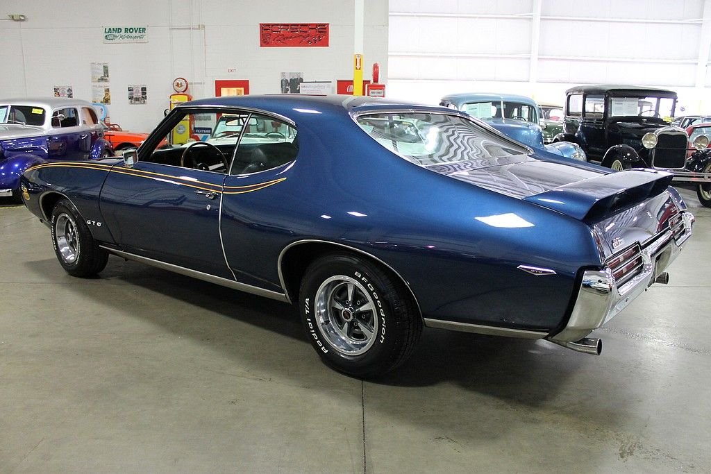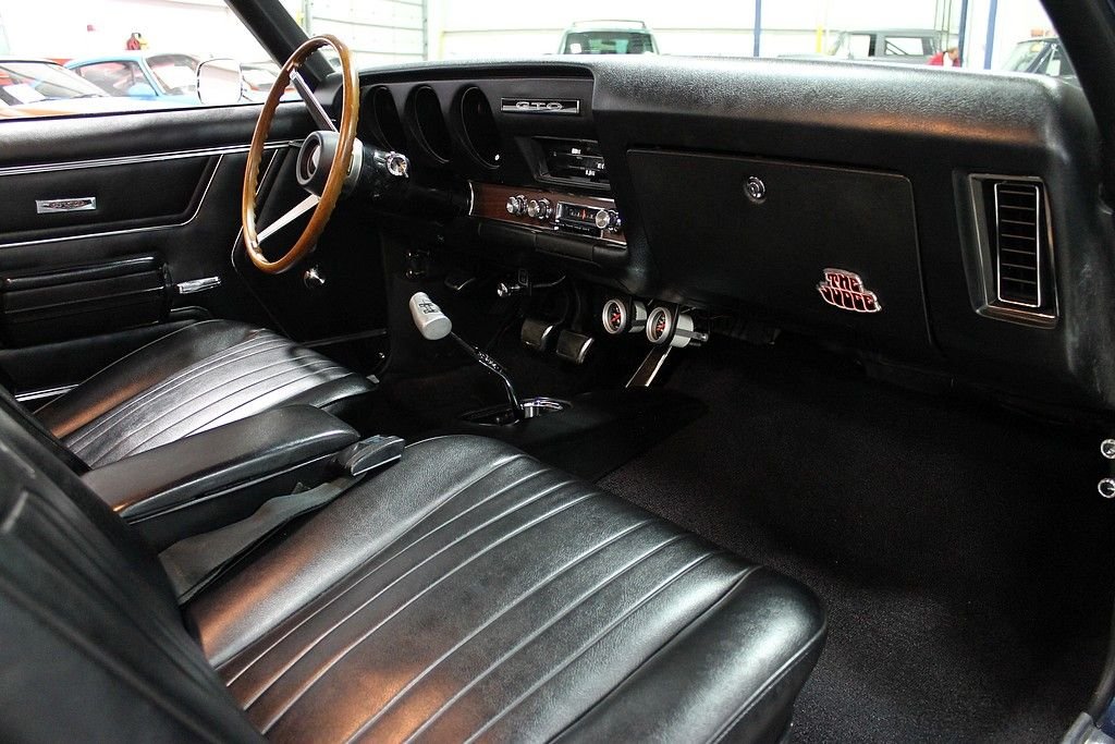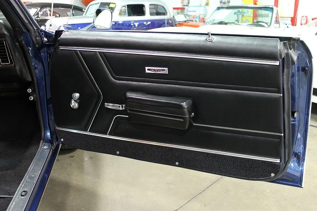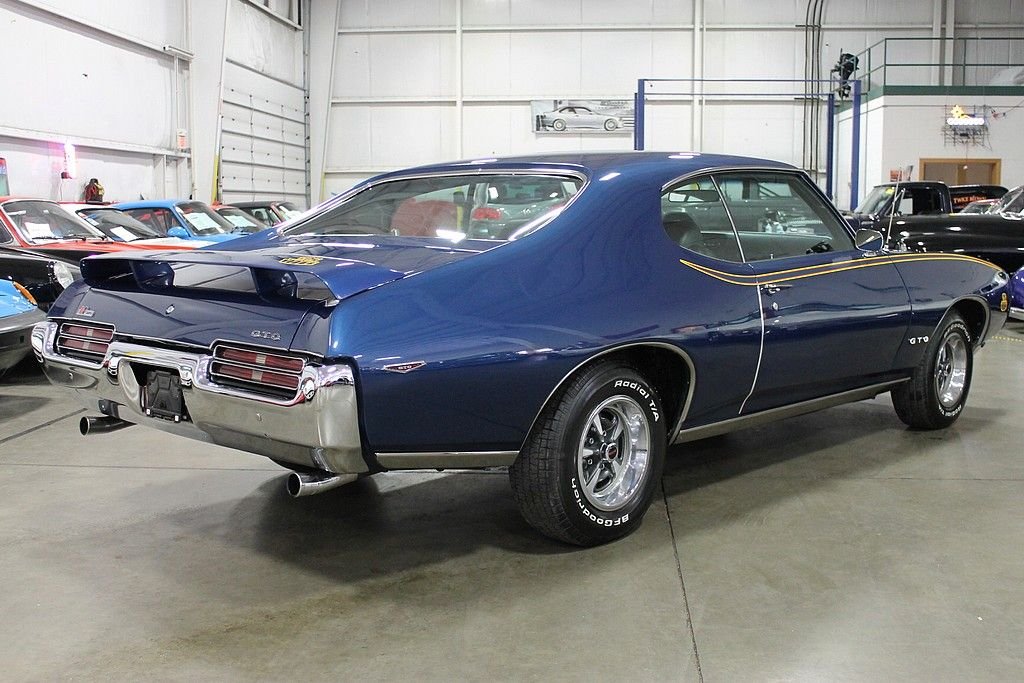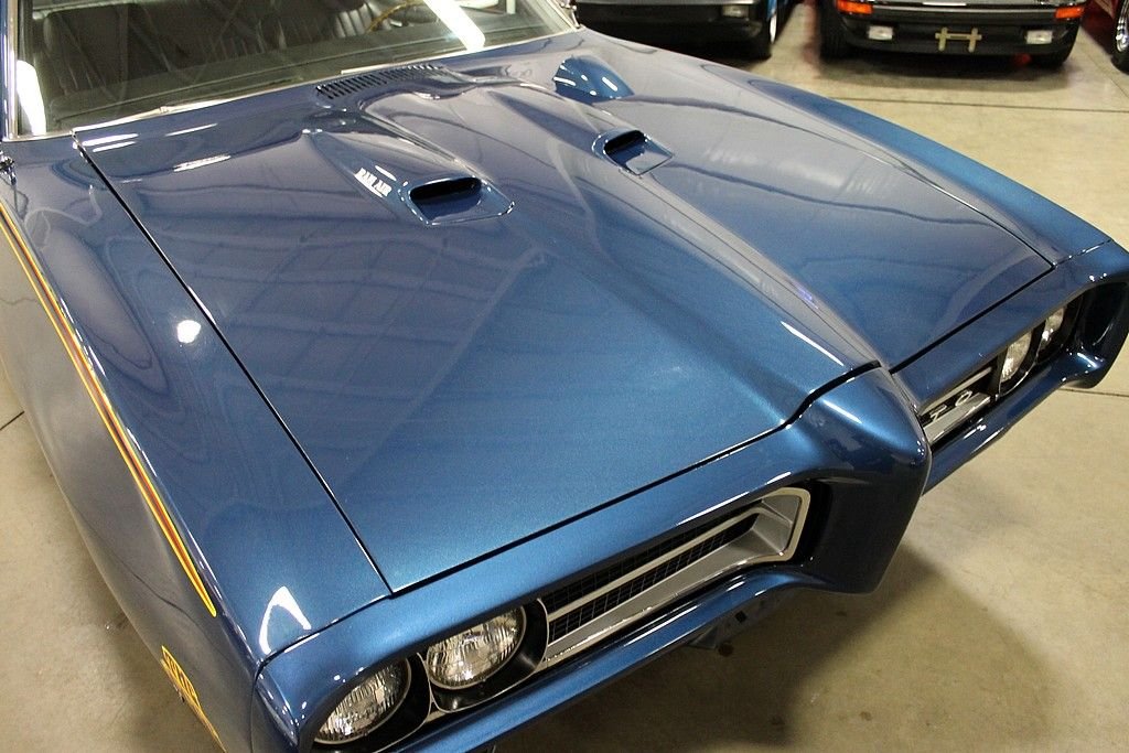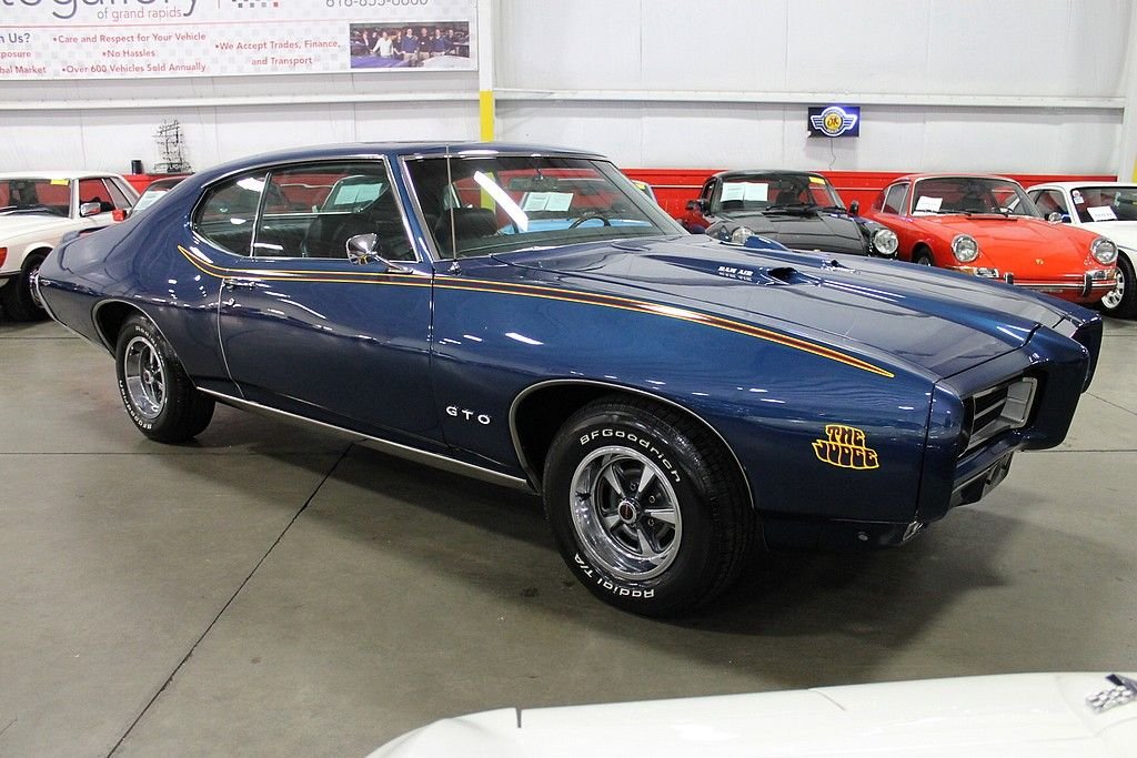 The Pontiac GTO is considered by many as the pioneer of the muscle car. In 1964, Pontiac came up with this simple formula: take a large, high performance engine and place it into the smallest body offered at the time. This basic formula was soon copied by every American auto manufacturer igniting the “Horsepower Wars” that dominated the 60's. Pontiac's rich competition history was revered by many and fueled the “Pontiac Performance” campaign as well as generating GTO sales around the country. In 1969, “The Judge” performance and appearance package took the GTO to a new level. The Ram Air Performance and the not so subtle graphic's gave performance that people could hear, feel and see. The 1969 Pontiac GTO Judge Tribute offered here has been the recipient of a full, ground up style restoration completed in 2012. The car is finished in its original color combination of Liberty Blue over black interior. The car is powered by a healthy 400 CID V8, Fed by functional Ram Air. According to the PHS , the car came delivered with the following options: 4-speed transmission, Safe-t-track, Push button radio, console, Power steering, S / R Glass, Head restraints, and Floor mats. At the time of restoration, a Ram Air intake was installed, along with the functional hood tach, polished Edlebrock intake, power brakes, polished alternator, traction bars, and the Judge appearance packaged. Documentation includes: PHS documents, owners manual, original Pontiac Literature, Warranty Protection pamphlet, and parts receipts. This GTO is sure to deliver the performance demanded by muscle car enthusiasts.