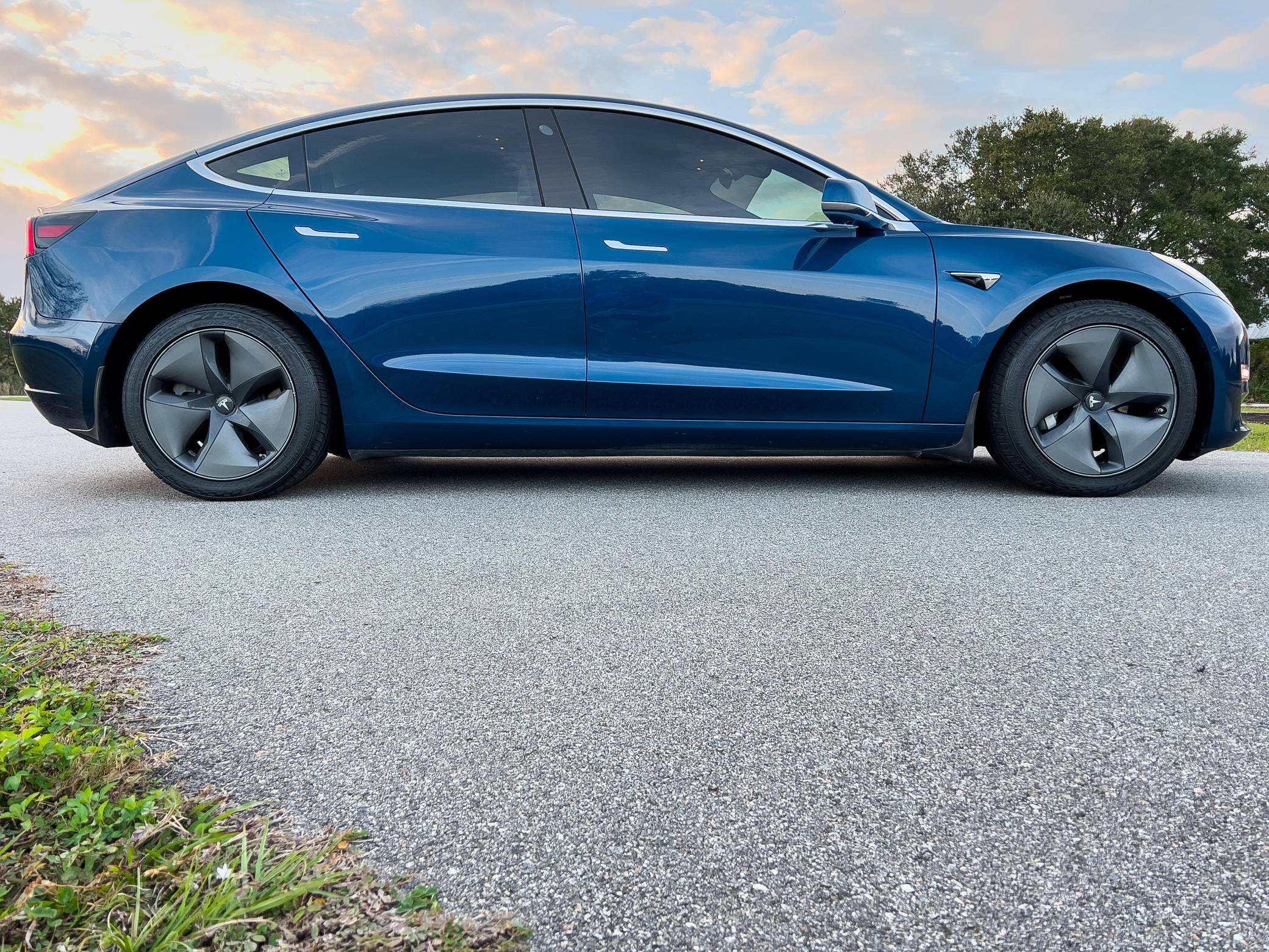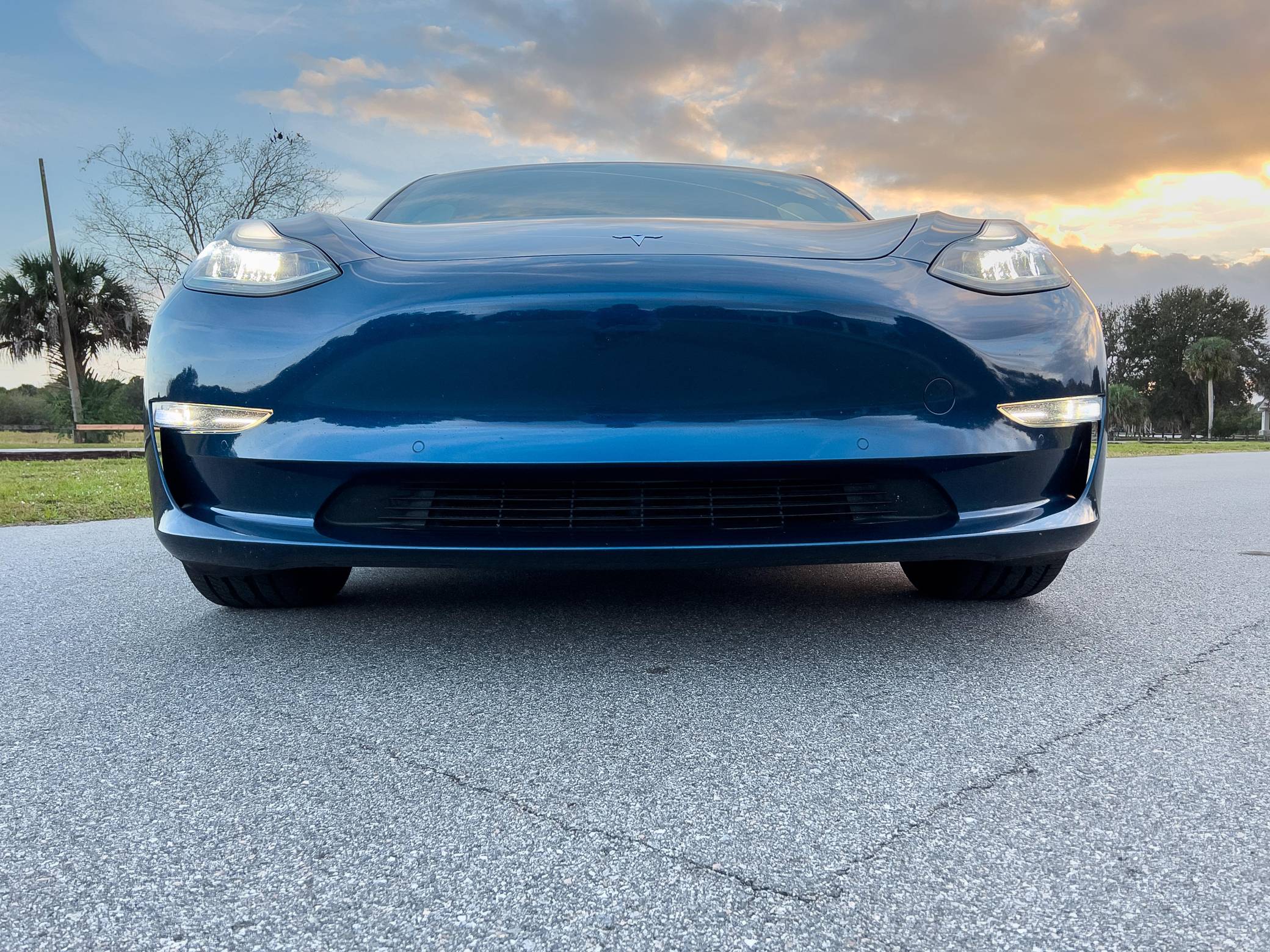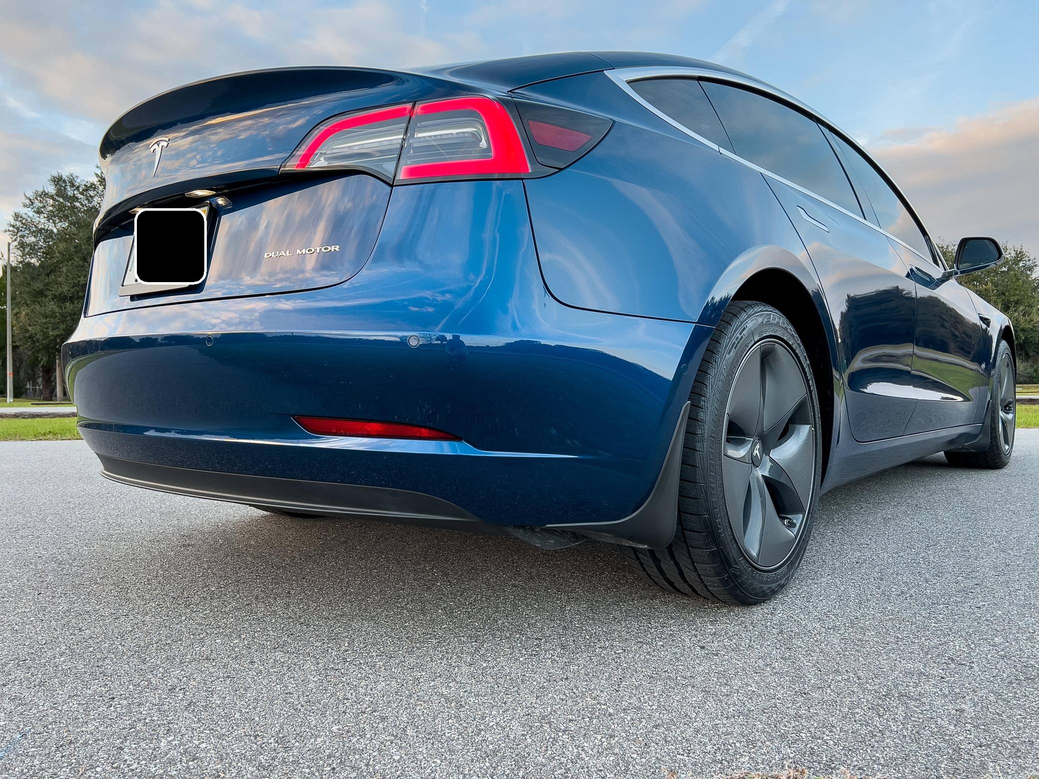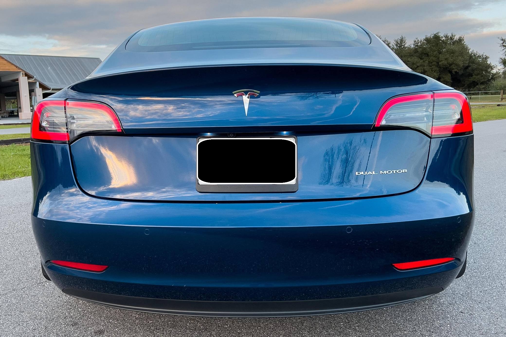 2019 Tesla Model 3 Long Range AWD, finished in Deep Blue Metallic with a white and black interior. Factory equipment includes Full Self-Driving Capability, 18-inch wheels, a panoramic roof, heated and power-adjustable front seats, heated rear seats, a 15-inch touchscreen, and Autopilot technology. Modifications reported by the seller include tinted windows, a kit that lets the driver tilt the infotainment system's touchscreen, and an anti-glare touchscreen protector. At launch, the Model 3 was presented as a premium EV with a usable driving range and respectable performance, all at a reasonably attainable price. It was Tesla's entry-level car. It's still available today, and it has gone through several evolutions (including many software updates) since its introduction. Power comes from a pair of electric motors that draw electricity from a 75-kilowatt-hour lithium-ion battery pack to zap the four wheels with 346 horsepower and 389 lb-ft of torque, according to third-party estimates. In 2019, the Long Range received a maximum driving range rating of 310 miles from the EPA, though the seller states that real-world range is closer to 290 miles.