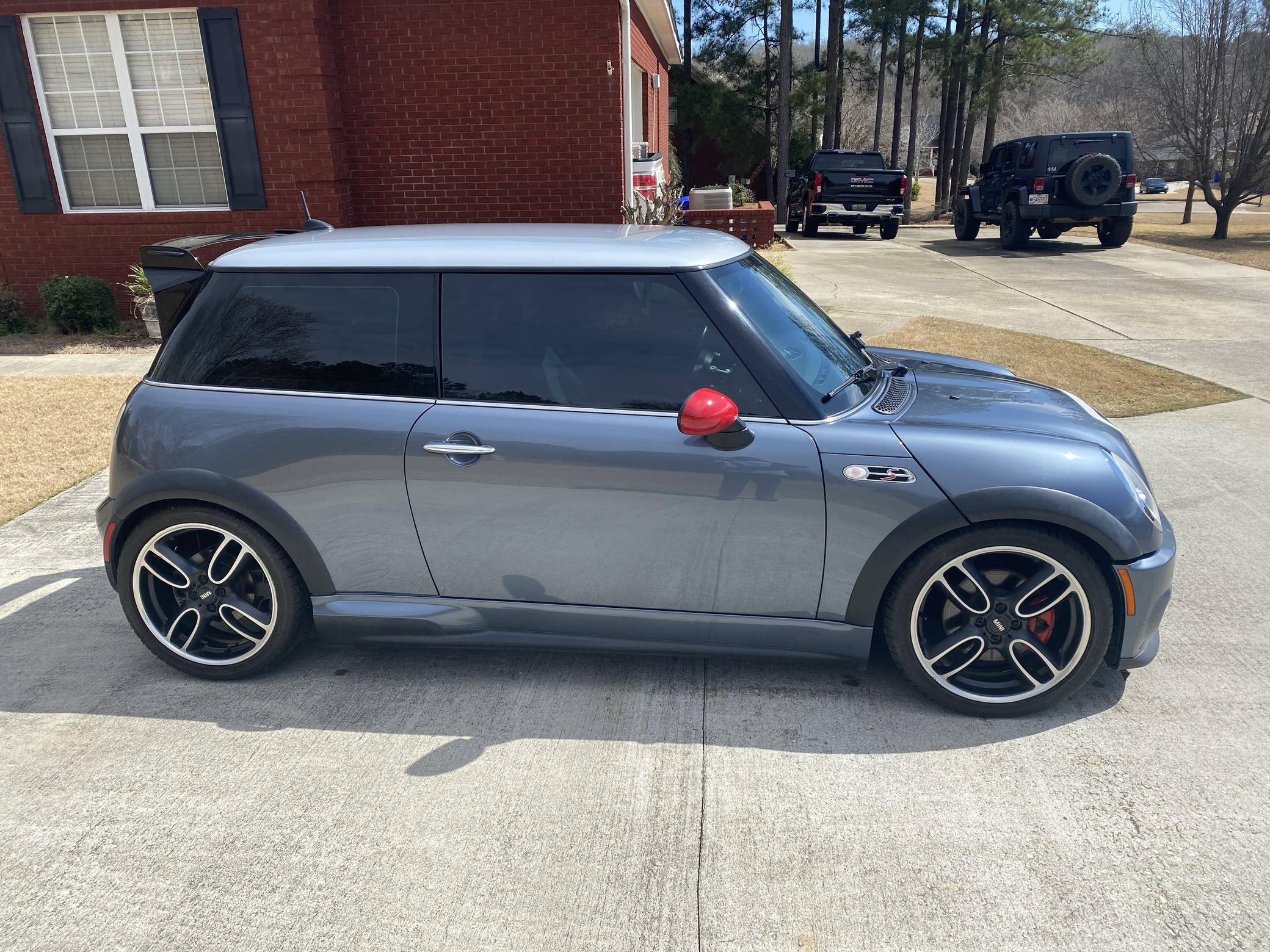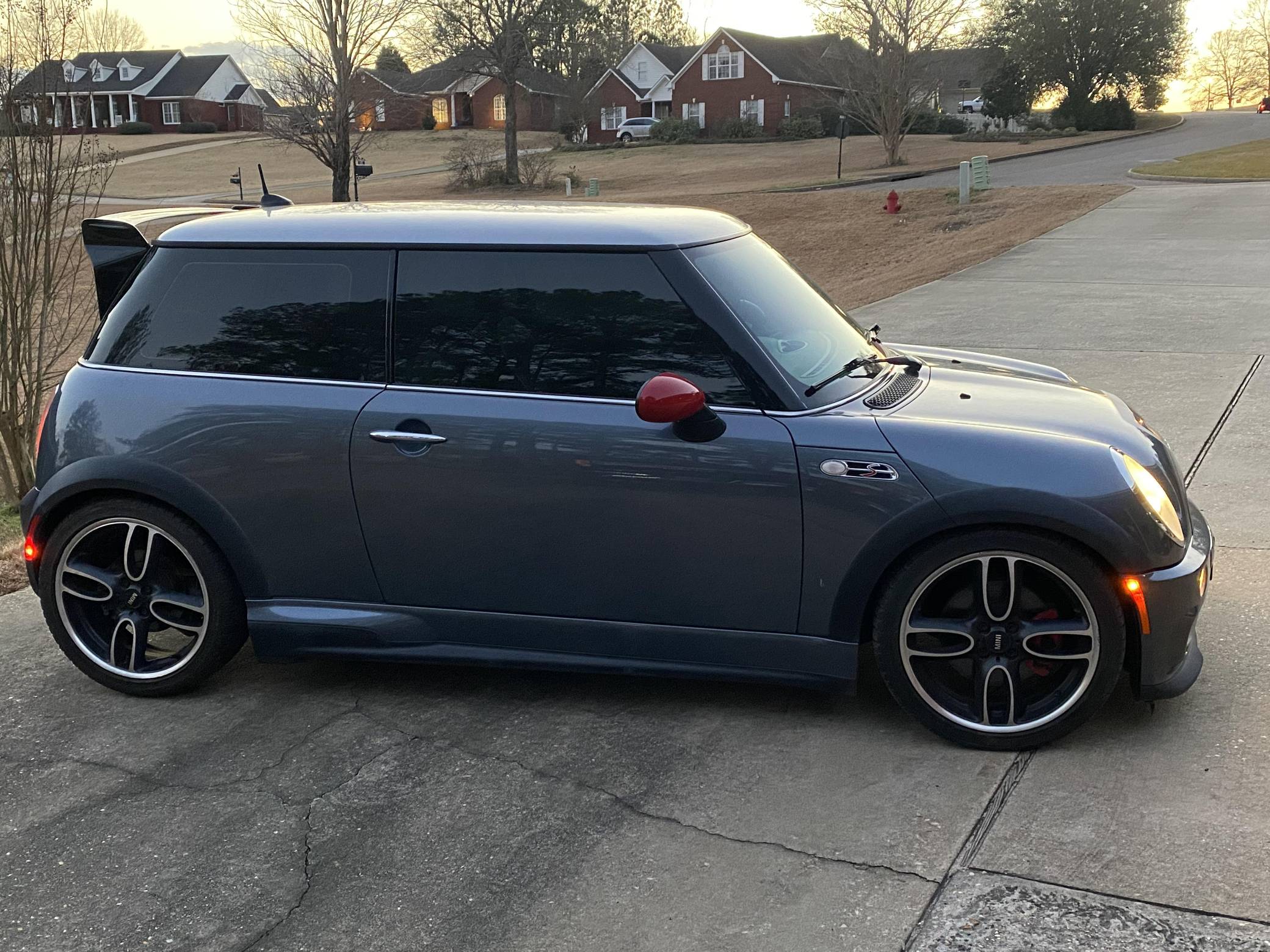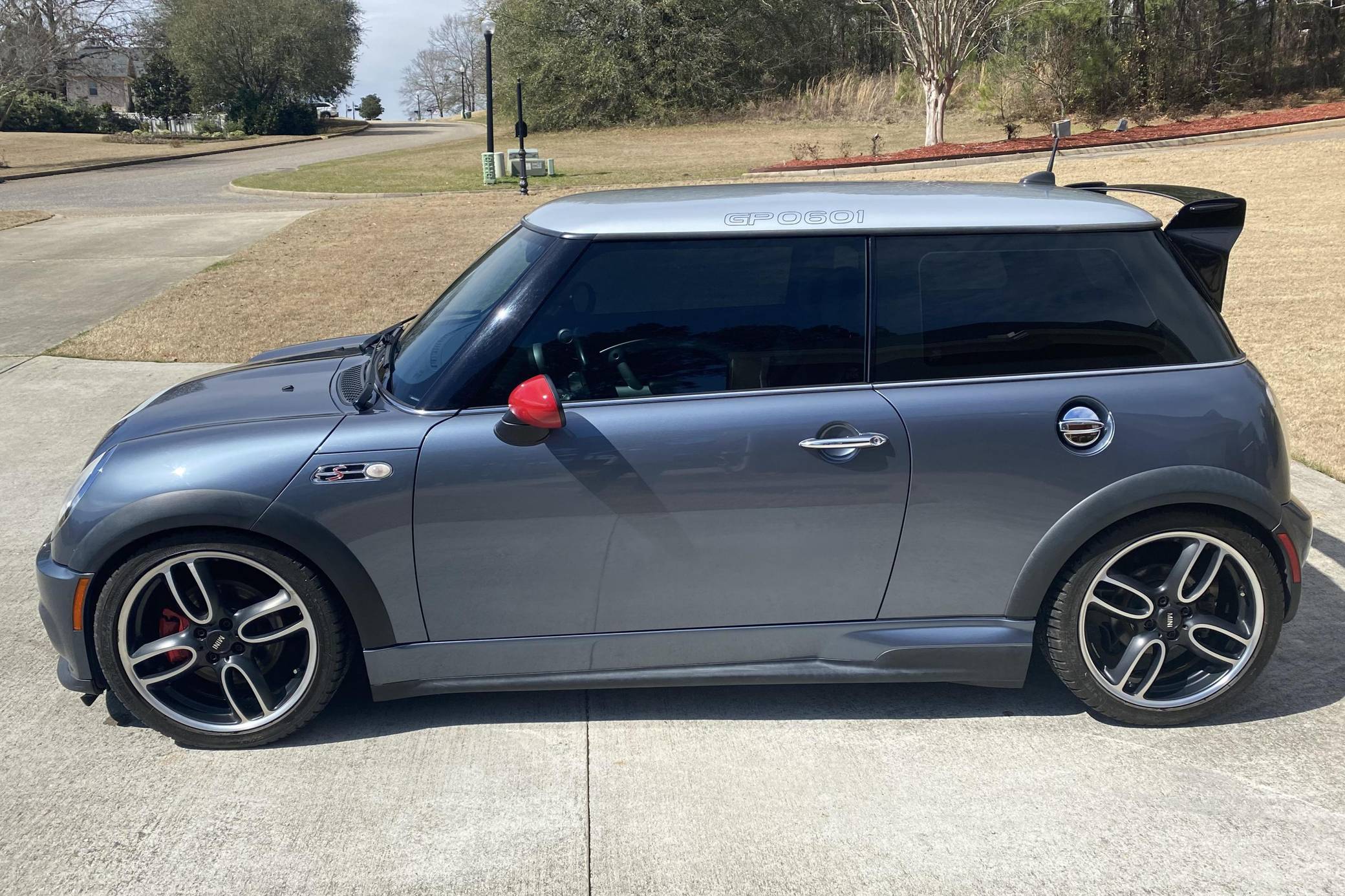 2006 Mini Cooper John Cooper Works GP, finished in Thunder Blue Metallic with a black and gray interior. This Mini GP is equipped with the desirable 6-speed manual transmission, and its odometer indicates about 63,100 miles. Equipment includes 18-inch GP Design alloy wheels, a limited-slip differential, a John Cooper Works Aero Kit, checkmate cloth and leather seats, heated front seats, and more as detailed below. Modifications reported by the seller include a PRW FluidGel crank pulley, Way Motor Works strut tower brace, a black honeycomb front grille, a Valeo clutch and single-mass flywheel, and more listed below. The Mini GP is a race-inspired hot hatch with a limited production run of 2,000 cars, only 415 of which were imported to America. Mini tasked Bertone in Italy with final assembly of the GP -- which, as the most hardcore R53 ever created, had the rear seats removed (with a brace taking their place), and gained a mechanical limited-slip differential, lowered suspension, a more powerful engine, and a special body kit to help it stand out. This GP is reported to be #601 of 2,000. Power comes from a 1. 6-liter inline-4 engine, rated at 214 horsepower and 184 lb-ft of torque. Output is sent to the front wheels via a 6-speed manual transmission.