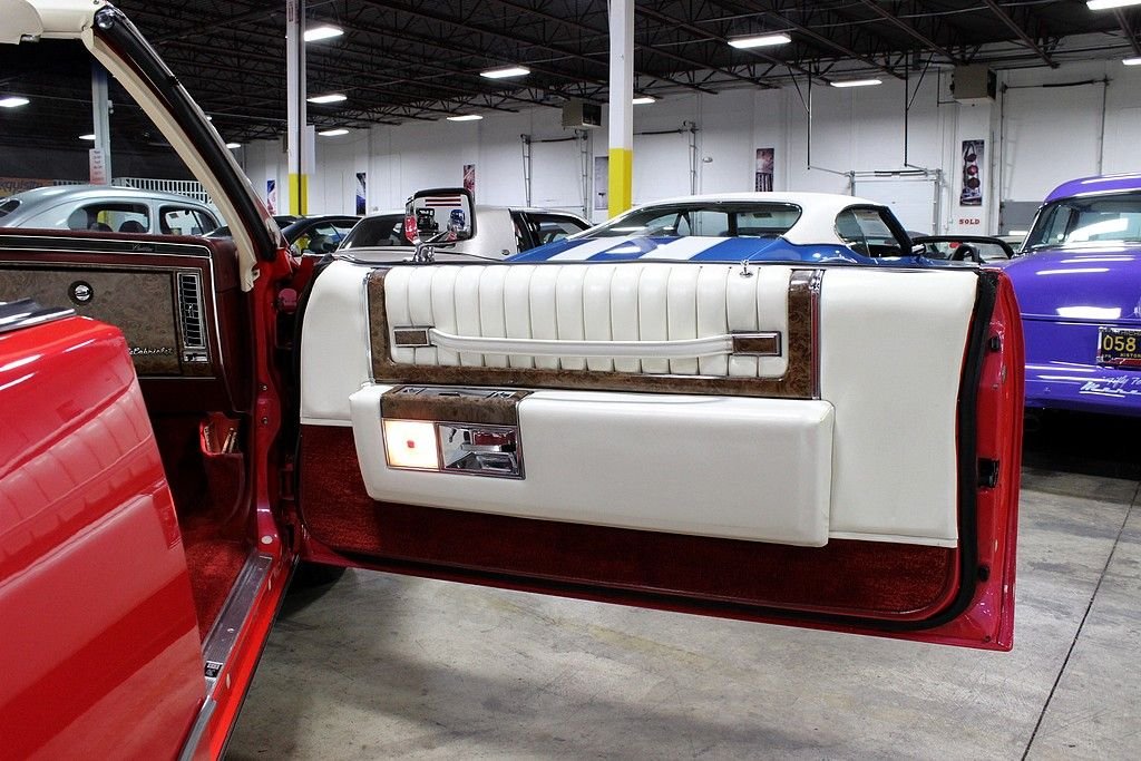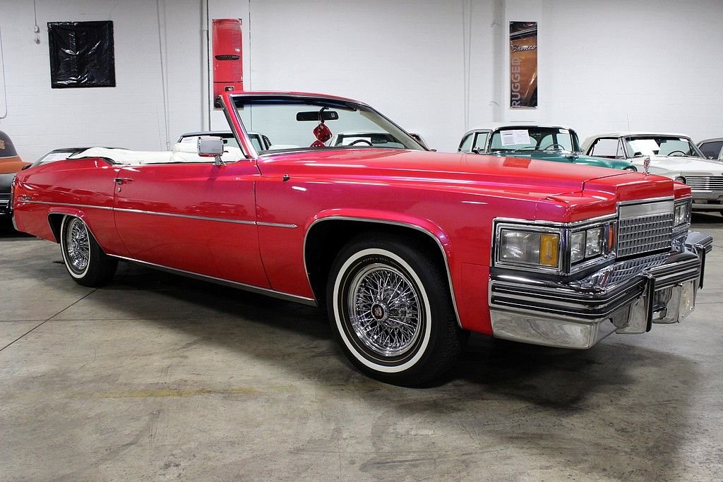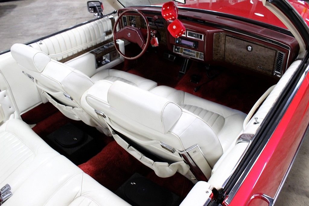 Cadillac first came out with the de Ville as a trim level on their 1949 Series 62 Coupe but later turned this nametag into a model all in of its own. The 2005 Cadillac DeVille was the final model to be named as such and was renamed the DTS which stands for Deville Touring Sedan. Although many different shapes and sizes of Cadillacs hosted this name, it was always a prestige trim level or model within their lineup. In 1977, Cadillac had hit its 75th anniversary and saw its first introduction of the downsized De Ville coupes and sedans. Now over nine inches shorter and even four inches narrower, the new design was over a half tone lighter but with larger trunk , head and leg room than before. This also brought a change of marketing ploy as Cadillac has yet to build a convertible from the factory since thee 1976 Cadillac Eldorado. This change brought many to try and crack into the aftermarket opportunity of convertible top installations. Few were successful and, those who were able to do so, found the upfit to cost more than the sticker of the actual vehicles making this an even more rare option found. This extraordinary example of the 1979 Cadillac Deville “La Cabriolet” is a one-owner, Hess & Eisenhardt Company convertible installation completed and sold as a package from Audette Cadillac in West Bloomfield, MI and has a great deal of documentation to back it! With an original window sticker provided to us, we find that the package was sold with a “Convertible customization” package completed by the most respected convertible companies of their time. This model also shows to have most every upgrade available at the time such as the premium leather group, premium AM/FM/Cassette with digital display and Citizens band audio system, tilt and telescoping steering wheel, cruise control and even the electric powered outside mirrors which include the illuminated thermometer on left hand mirror! With a great deal of life left, the odometer has rolled over but we are told it is only at a true 112,826 miles today and the many receipts of maintenance and repair work completed goes to show the care this vehicle was shown through its life. A very unique and well completed re-paint in 1996 was completed and we are told that the custom paint incudes a fire engine red and a blue pearl overtop which really shines and changes color depending on angle and lighting. Included in the sale of this fine ride are all the original receipts from the convertible top installation, brochure, window sticker, even a set of windows for this model were purchased but never needed and come packaged for the next owner just in case!