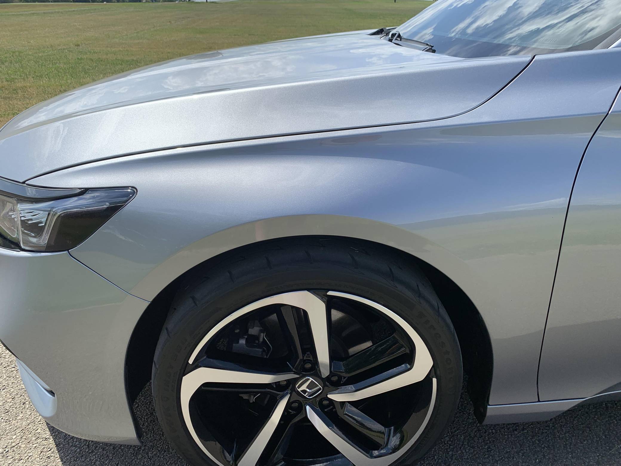 2018 Honda Accord 2. 0T Sport, finished in Lunar Silver Metallic with a black interior. This Accord features the desirable 6-speed manual transmission. Modifications to this Accord are extensive, and the full list is detailed below. include a custom tune by Derek Robinson of Innovative MotorWorks, a Honda FK8 Civic Type R turbo, a PRL Motorsports flex fuel kit, intercooler, front pipe, charge pipe, and catted downpipe, an ACUITY Stage 1 shifter kit, a Honda Sport Accessories grille, Firestone Firehawk Indy 500 front tires, and a ceramic window tint. Factory equipment includes the Honda Sensing suite, 19-inch alloy wheels, a power-operated sunroof, a power-adjustable driver's seat, Apple CarPlay and Android Auto compatibility, and more as detailed below. Honda's tenth-generation Accord was introduced for the 2018 model year, and it was the first model in the long-running nameplate to only be offered with 4 doors. In addition to a number of safety improvements and tech upgrades, the newest Accord also made extensive use of aluminum in its construction resulting in significant weight savings over the outgoing model. Power for this comes from a 2. 0-liter turbocharged DOHC inline-4, rated at 252 horsepower and 273 torque in stock form. According to the dyno sheet pictured in the gallery, it now produces 358 horsepower and 355 torque at the wheels on 93 octane fuel, and 395 horsepower and 377 torque at the wheels with an Ethanol blend. Output is sent to the front wheels via a 6-speed manual transmission.