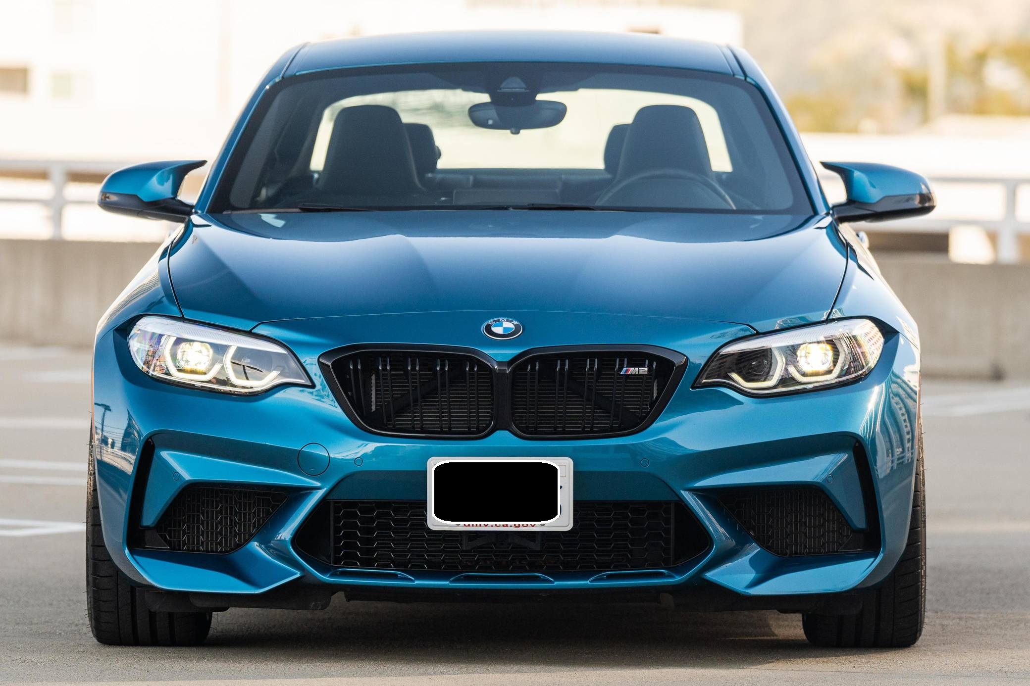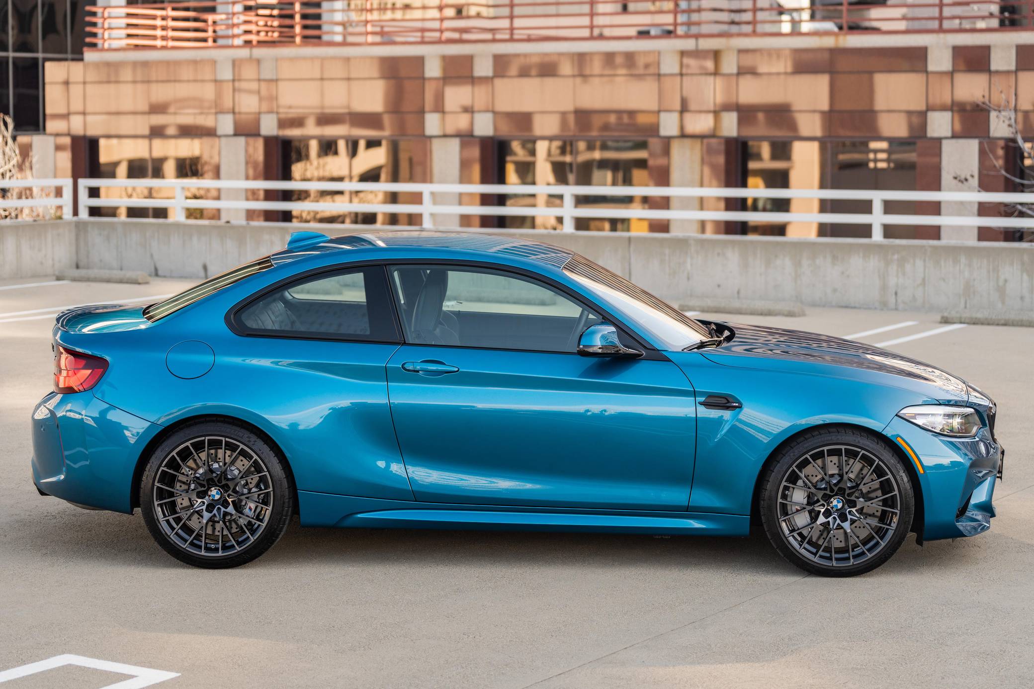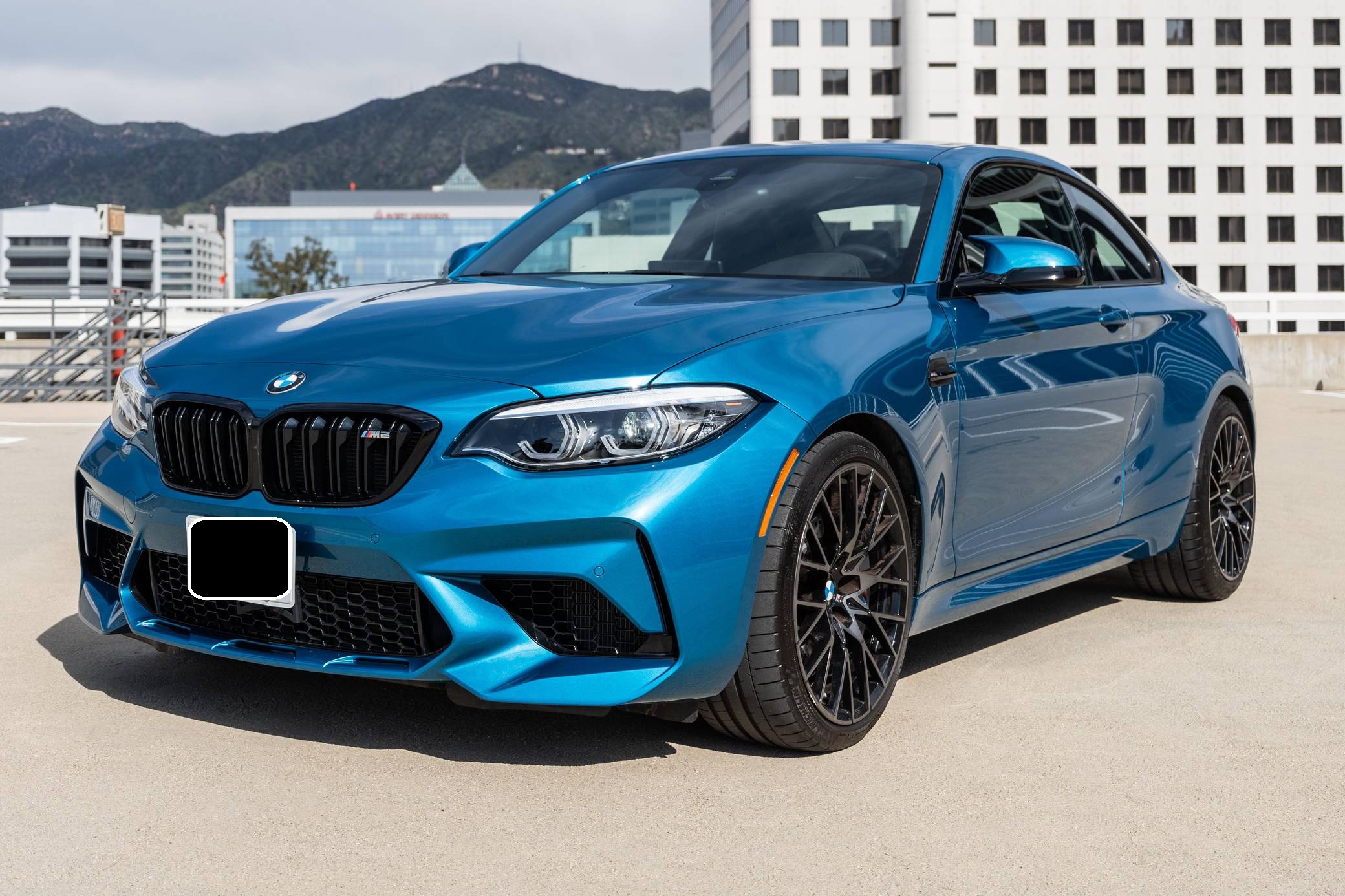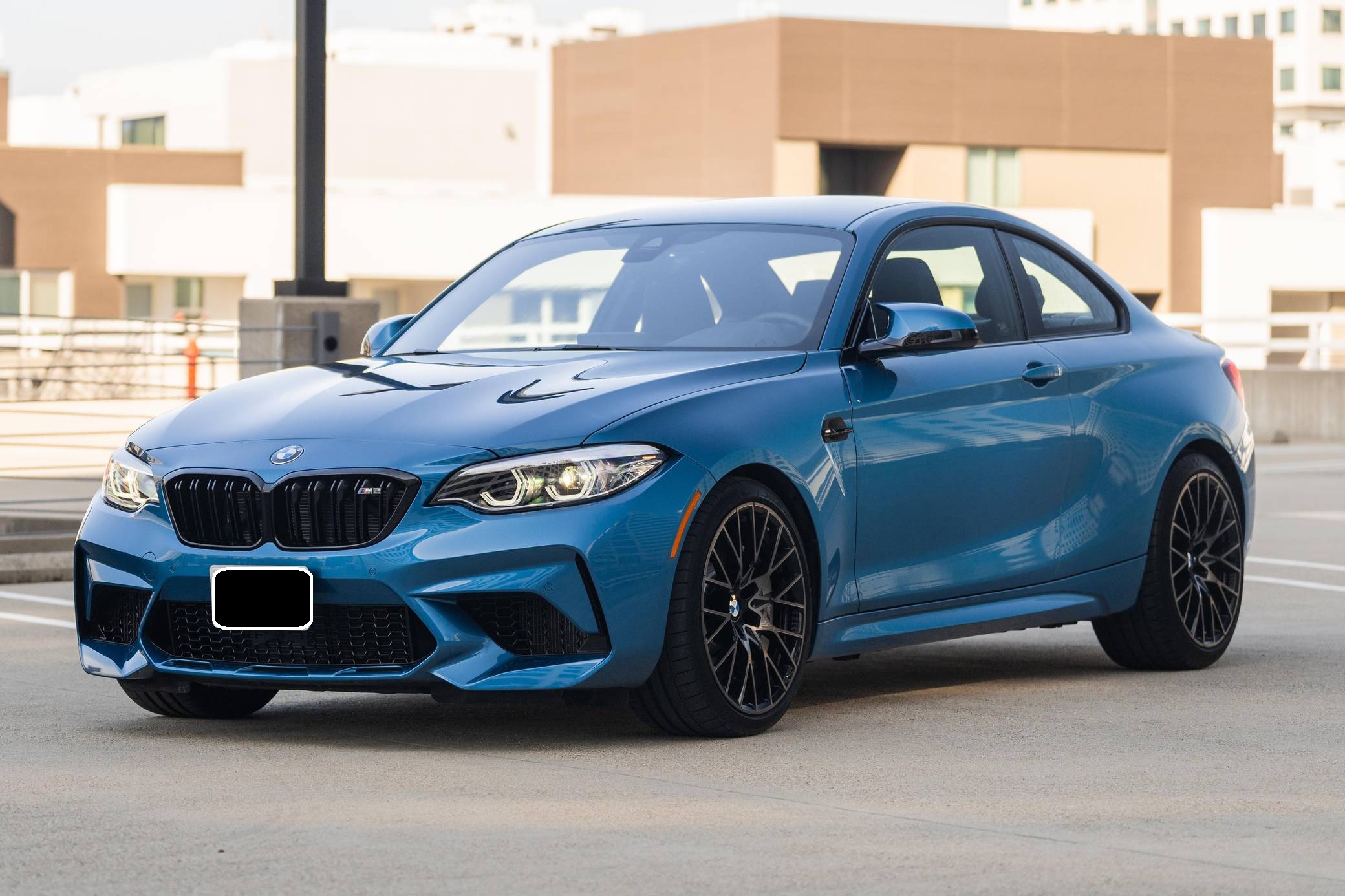 THIS. . . is a 2021 BMW M2 Competition, finished in Long Beach Blue Metallic with a black interior with blue stitching. This M2 is equipped with the desirable 6-speed manual transmission, and its odometer displays approximately 6,000 miles. According to the build sheet provided in the gallery, factory equipment includes the Executive Package, 19-inch Style 788M alloy wheels, M sport brakes, M-tuned exhaust with quad tailpipes, Dakota leather upholstery, and a Harman/Kardon premium audio system, among others listed below. The seller reports no modifications. BMW introduced the "F87" M2 for the 2016 model year as a high-performance evolution of the "F22"-generation 2 Series. Developed to replace the vaunted 1 Series M Coupe, it was celebrated as one of BMW M's greatest modern hits. The more hardcore Competition evolution of the M2 was released for 2019 with a more powerful engine and performance parts borrowed from the bigger M3/M4 duo. It also notably received the M4 Competition's cooling system and a carbon fiber strut brace. Power comes from an "S55" twin-turbocharged 3. 0-liter inline-6, rated at 405 horsepower and 406 lb-ft of torque. Output is sent to the rear wheels via a 6-speed manual transmission.