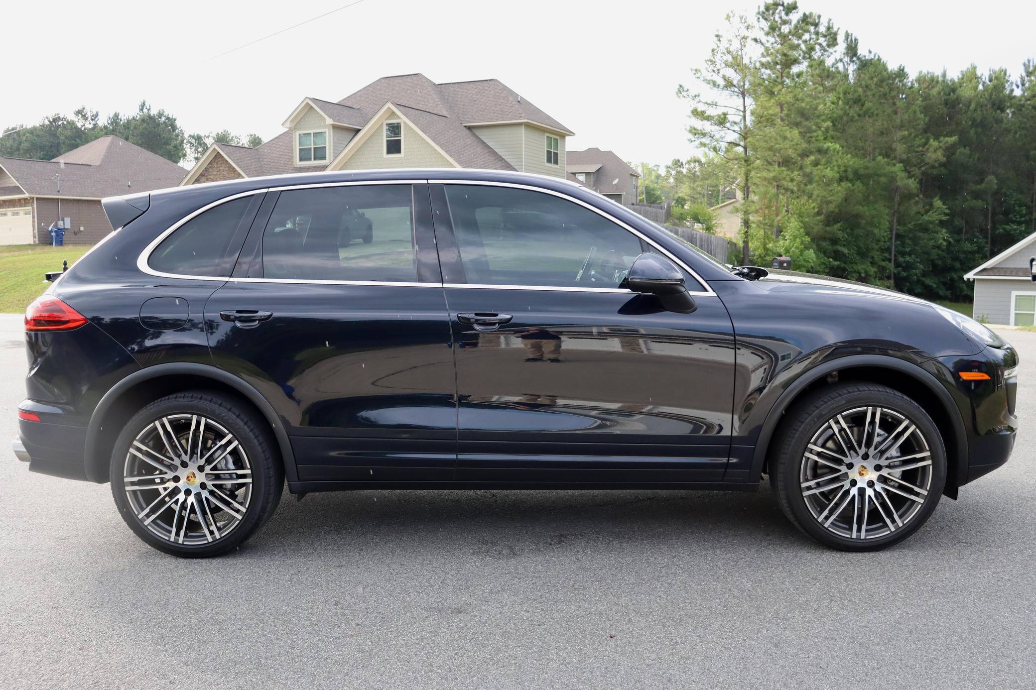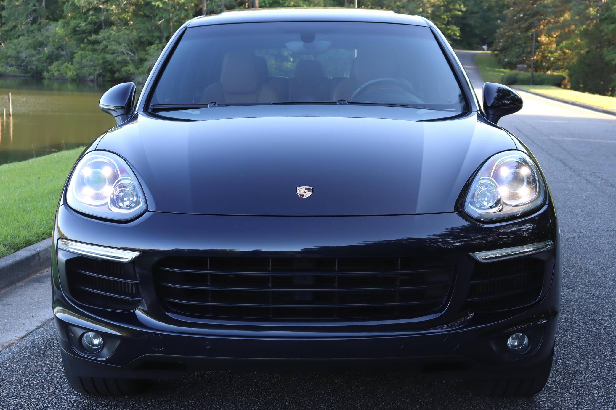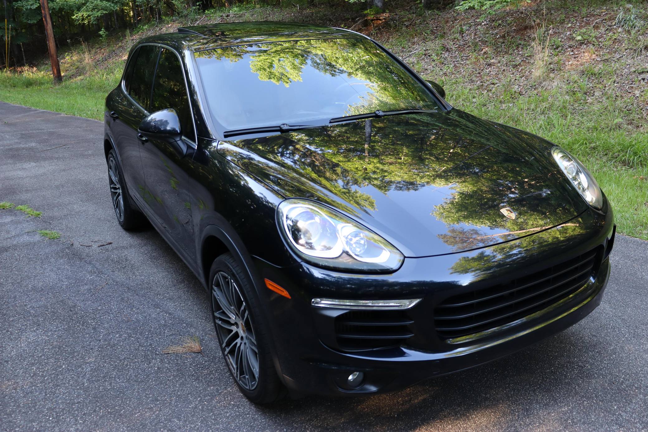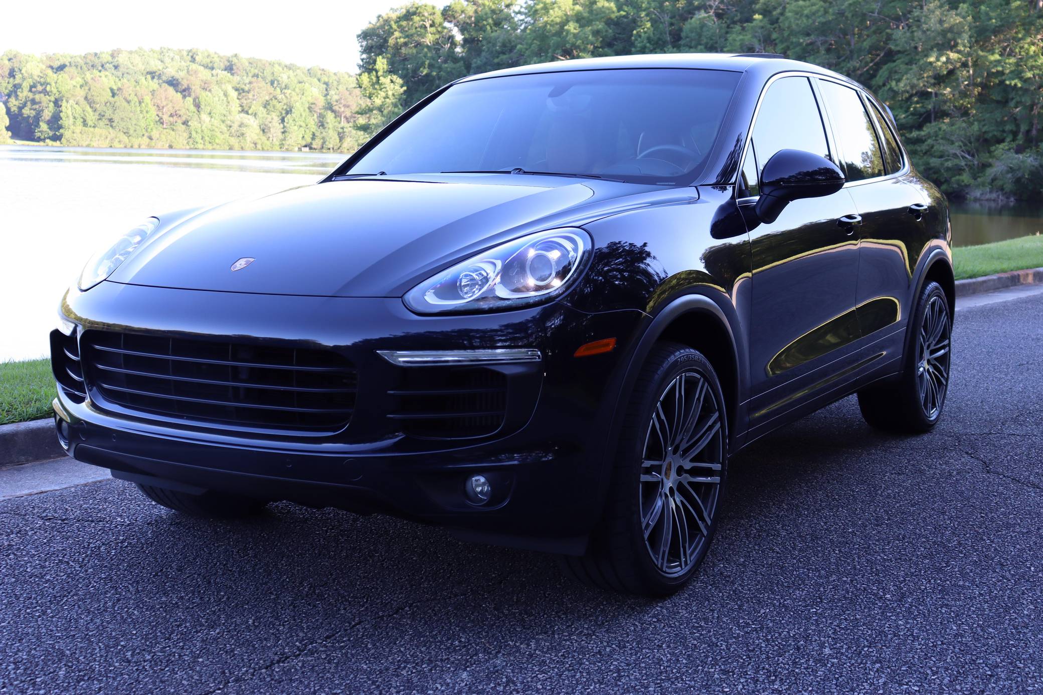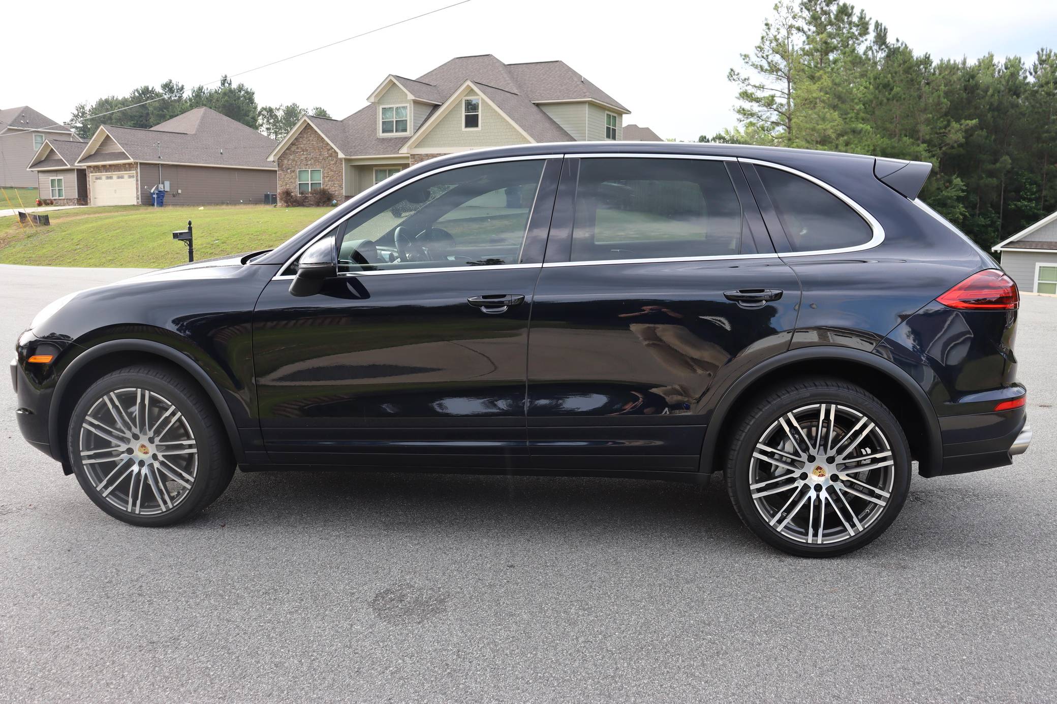 2016 Porsche Cayenne S, finished in Moonlight Blue Metallic with an Espresso and Cognac interior. Factory equipment includes the Premium Package (Power Steering Plus, panoramic roof, auto-dimming exterior and interior mirrors, comfort lighting package, 14-way power-adjustable front seats with memory function, heated and ventilated front seats, front and rear ParkAssist with reversing camera), 21-inch Turbo Design wheels, two-tone leather upholstery, dual-zone automatic climate control, a Porsche Communication Management (PCM) infotainment system, and Lane Change Assist. Modifications reported by the seller are limited to tinted windows. Released for the 2011 model year, the second-generation Cayenne (called "958" internally) was slightly bigger and significantly lighter than its predecessor. It offered a smoother ride thanks to additional technology and luxury features, it was just as capable off-road, and critics agreed it was noticeably sportier than the first-generation model. Production ended in 2017. Power comes from a 3. 6-liter twin-turbocharged V6 engine, rated at 420 horsepower and 406 lb-ft of torque. Output is sent to all four wheels via an 8-speed automatic transmission.