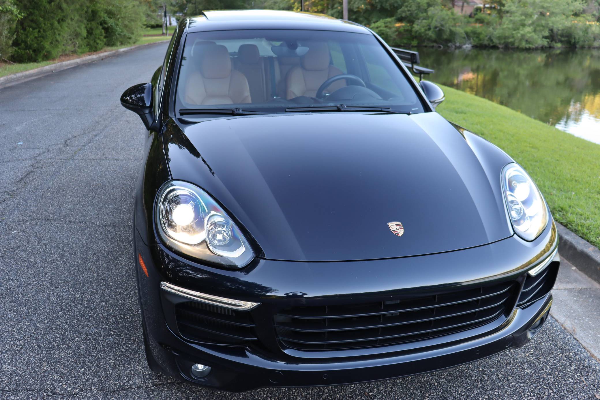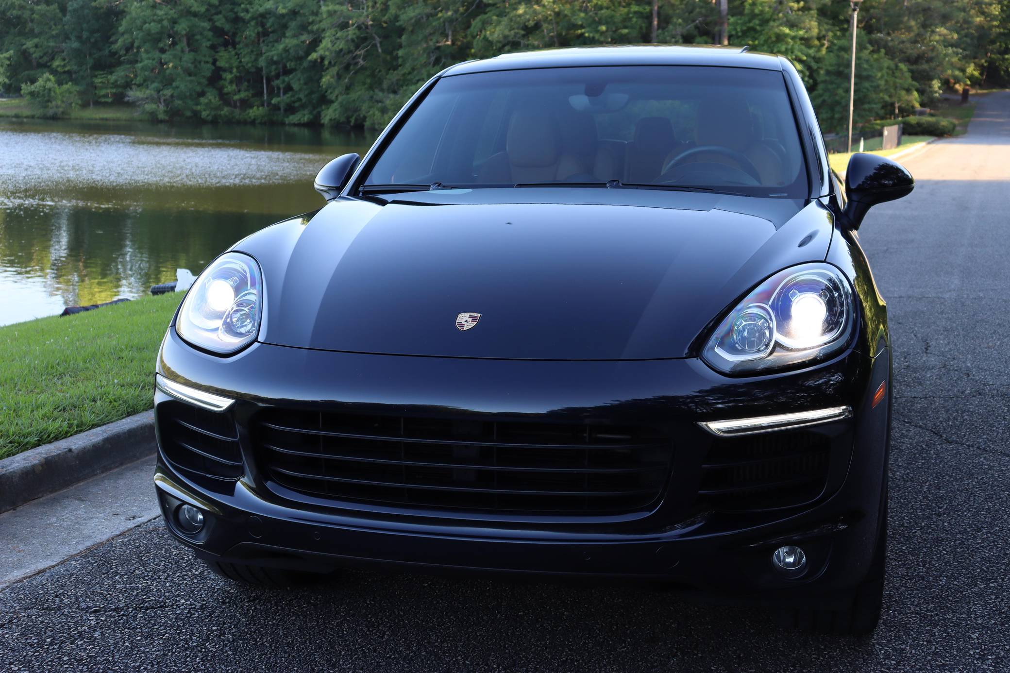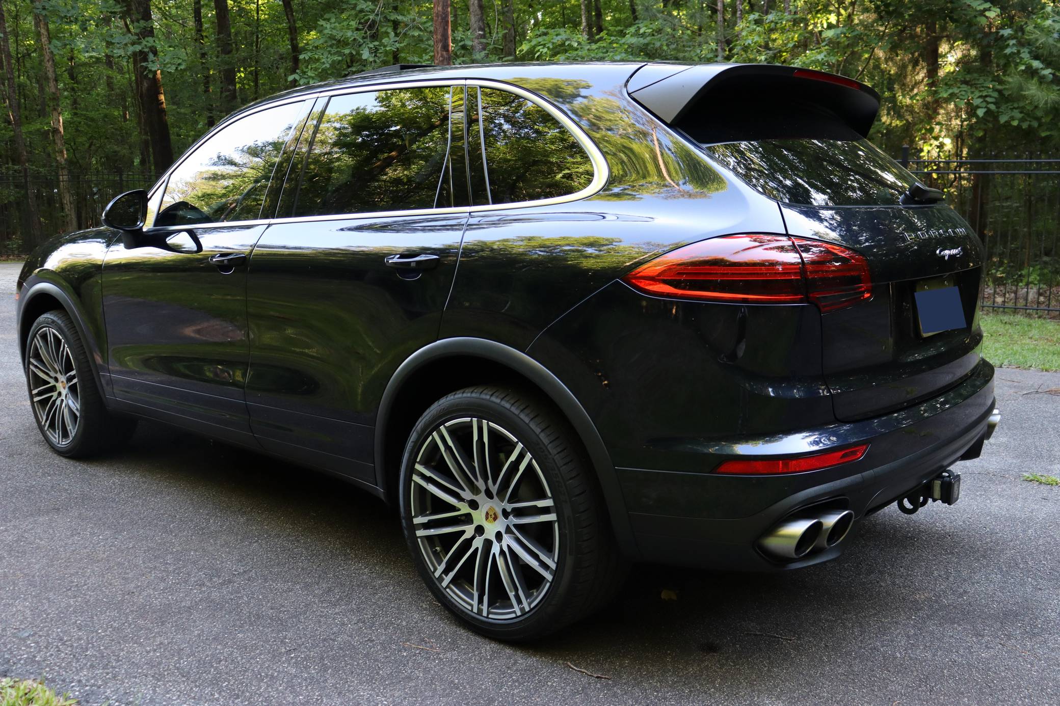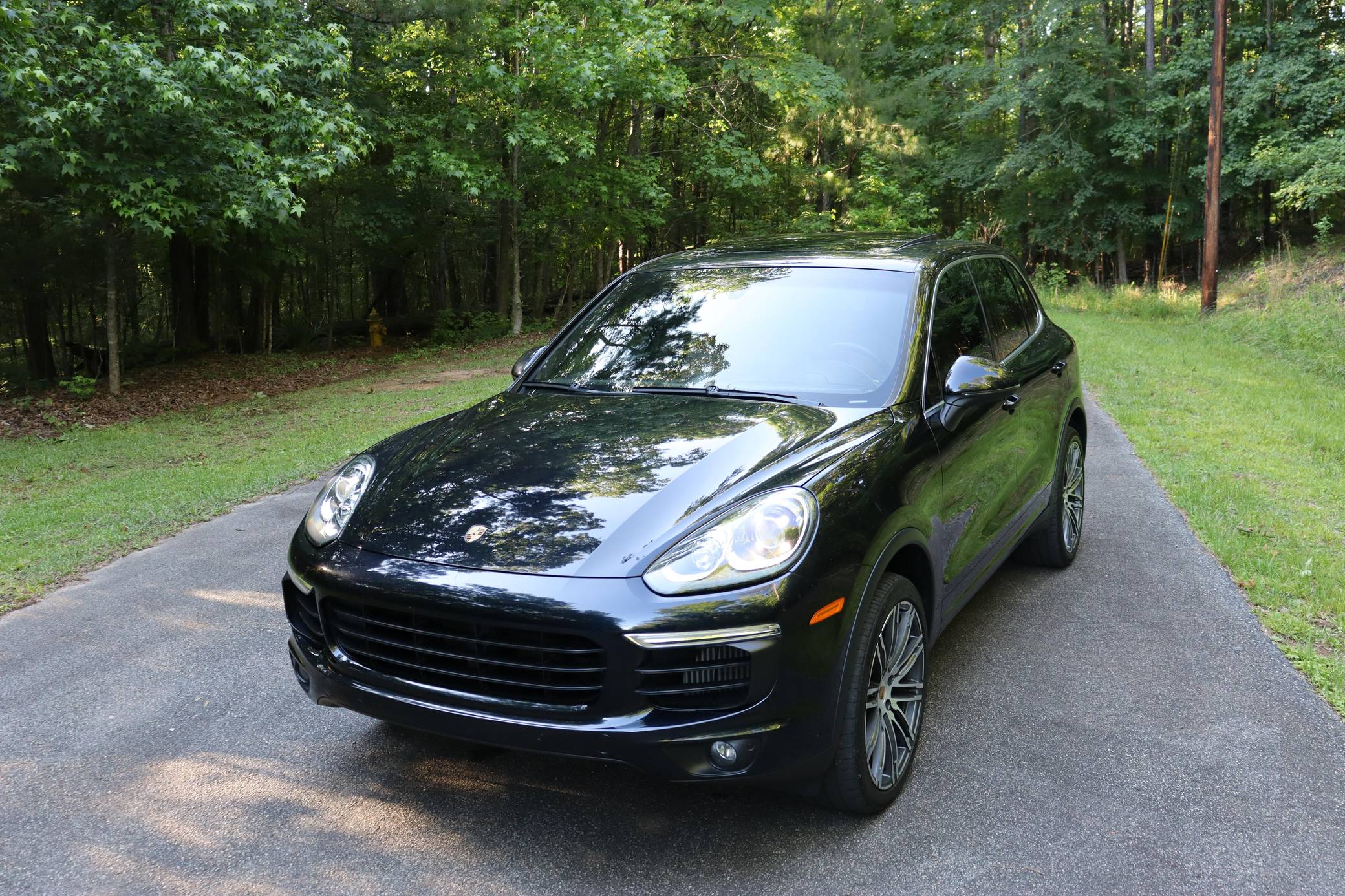 2016 Porsche Cayenne S, finished in Moonlight Blue Metallic with an Espresso and Cognac interior. Factory equipment includes the Premium Package (Power Steering Plus, panoramic roof, auto-dimming exterior and interior mirrors, comfort lighting package, 14-way power-adjustable front seats with memory function, heated and ventilated front seats, front and rear ParkAssist with reversing camera), 21-inch Turbo Design wheels, two-tone leather upholstery, dual-zone automatic climate control, a Porsche Communication Management (PCM) infotainment system, and Lane Change Assist. Modifications reported by the seller are limited to tinted windows. Released for the 2011 model year, the second-generation Cayenne (called "958" internally) was slightly bigger and significantly lighter than its predecessor. It offered a smoother ride thanks to additional technology and luxury features, it was just as capable off-road, and critics agreed it was noticeably sportier than the first-generation model. Production ended in 2017. Power comes from a 3. 6-liter twin-turbocharged V6 engine, rated at 420 horsepower and 406 lb-ft of torque. Output is sent to all four wheels via an 8-speed automatic transmission.