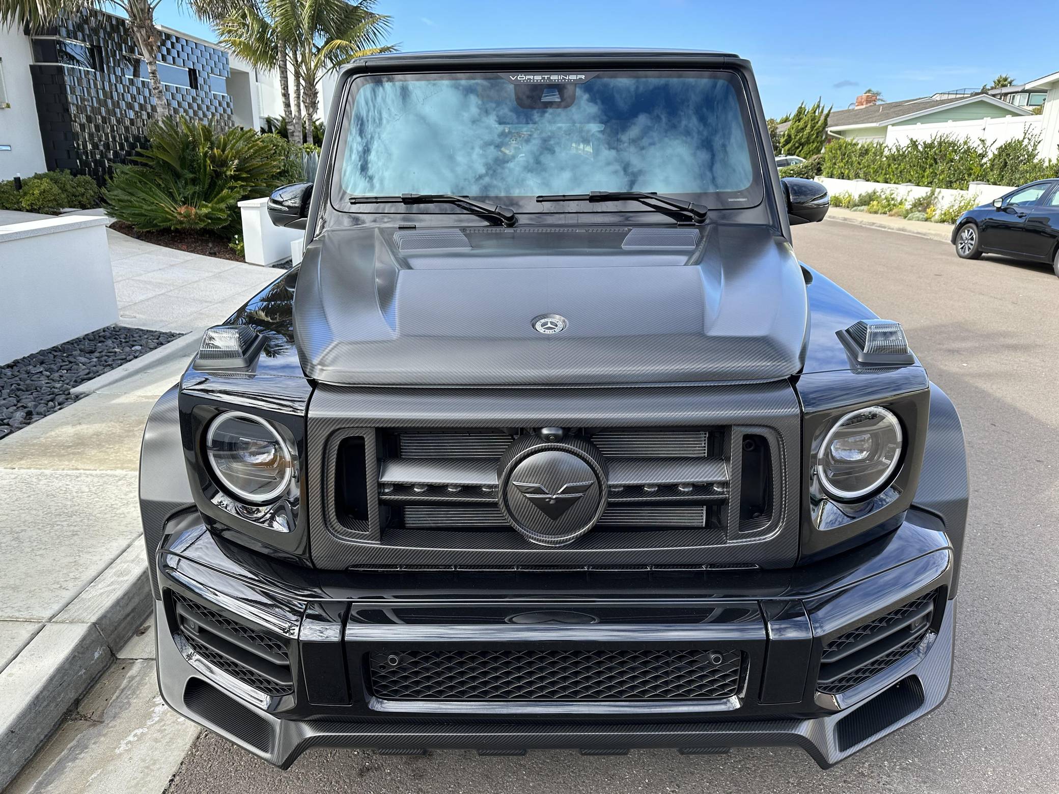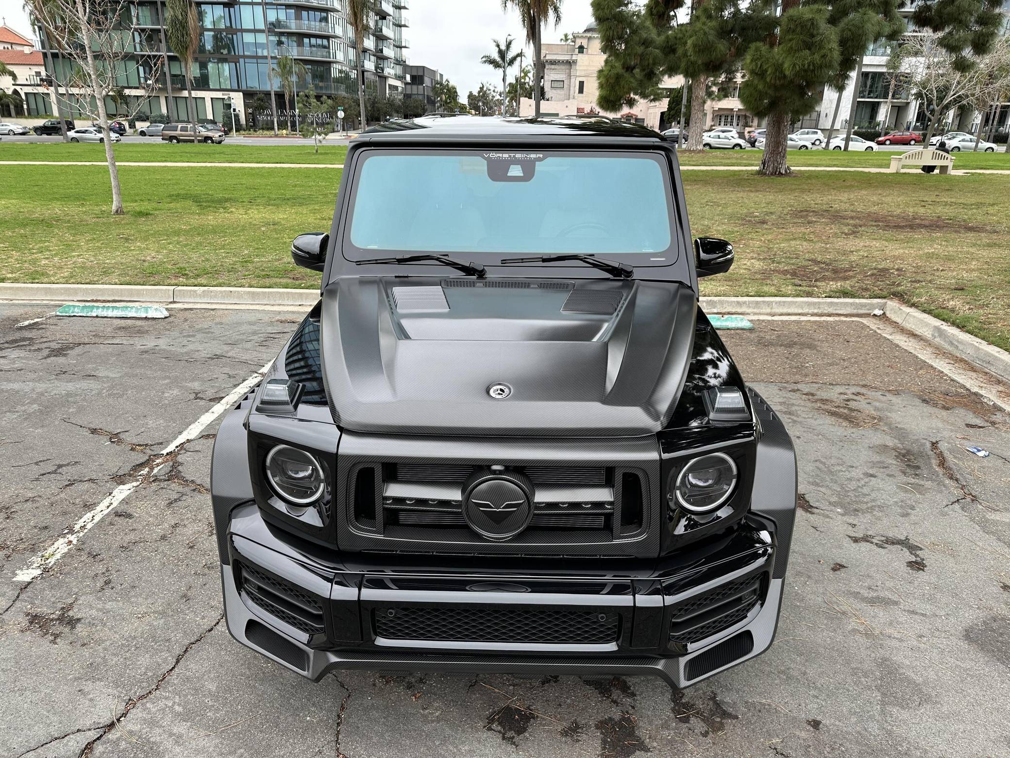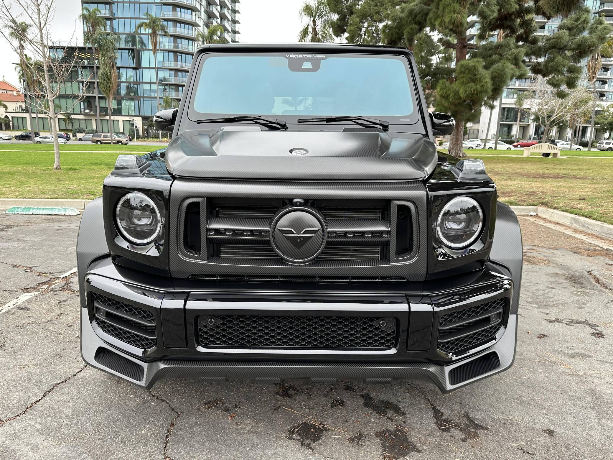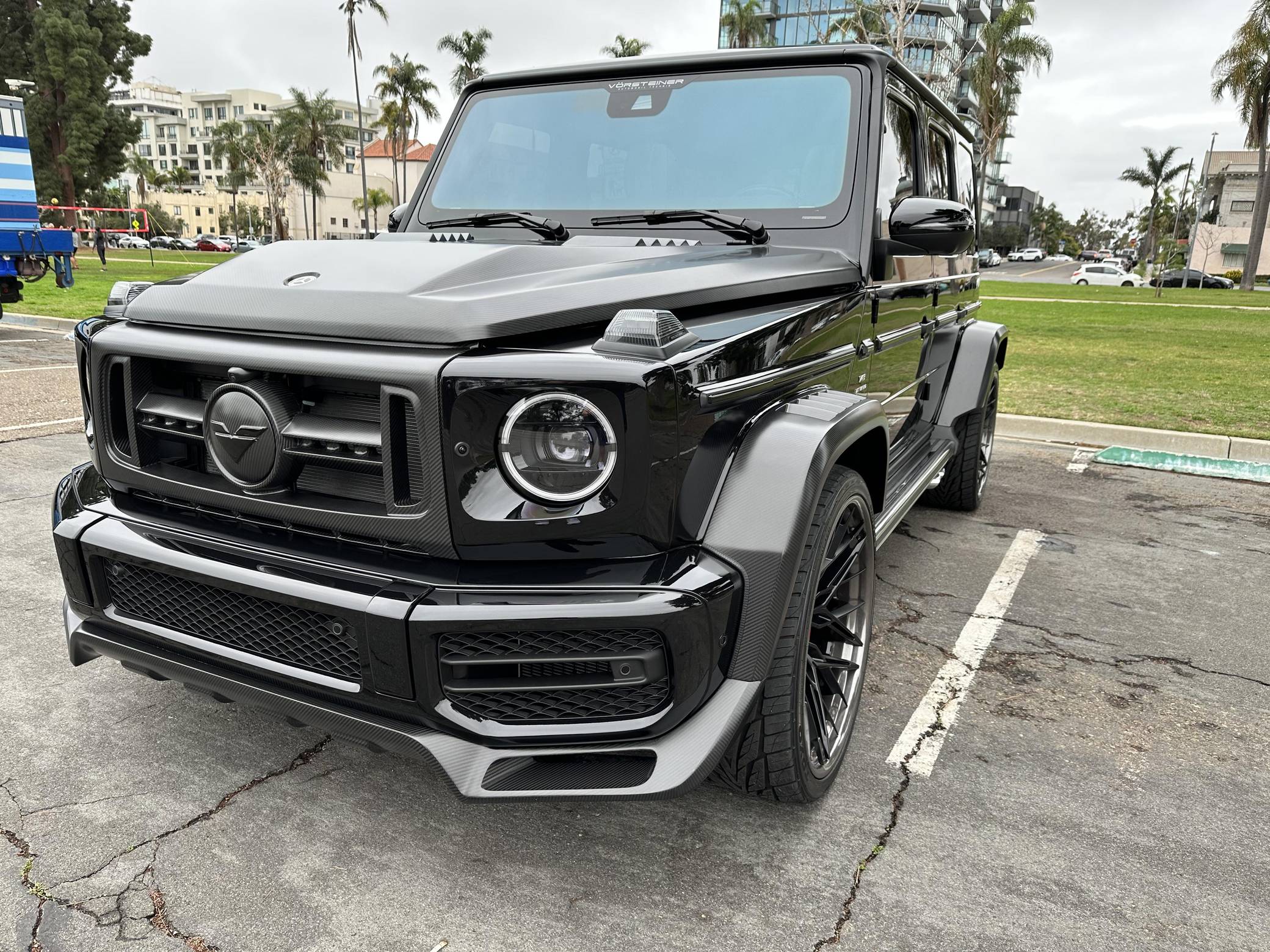 THIS. . . is a 2021 Mercedes-AMG G63, finished in Obsidian Black Metallic with a Platinum White interior. Modifications reported by the seller include a Vorsteiner wide-body kit with exclusive 24-inch Vorsteiner VMP 308 wheels, and tinted windows. Mercedes-Benz gave the emblematic G-Class its first complete overhaul for the 2019 model year. Still built in Graz, Austria, the off-roader wore an evolutionary exterior design but it was entirely new beneath the sheet metal; the exterior door handles were one of the three components carried over from the old to the new G. Mercedes-Benz notably redesigned the frame and the steering system, and it stuffed more tech features into the cabin, but it kept the three locking differentials. Power comes from an "M177" 4. 0-liter twin-turbocharged V8, rated at 577 horsepower and 627 lb-ft of torque. Output is sent to all four wheels through a 9-speed automatic transmission and a 2-speed transfer case.