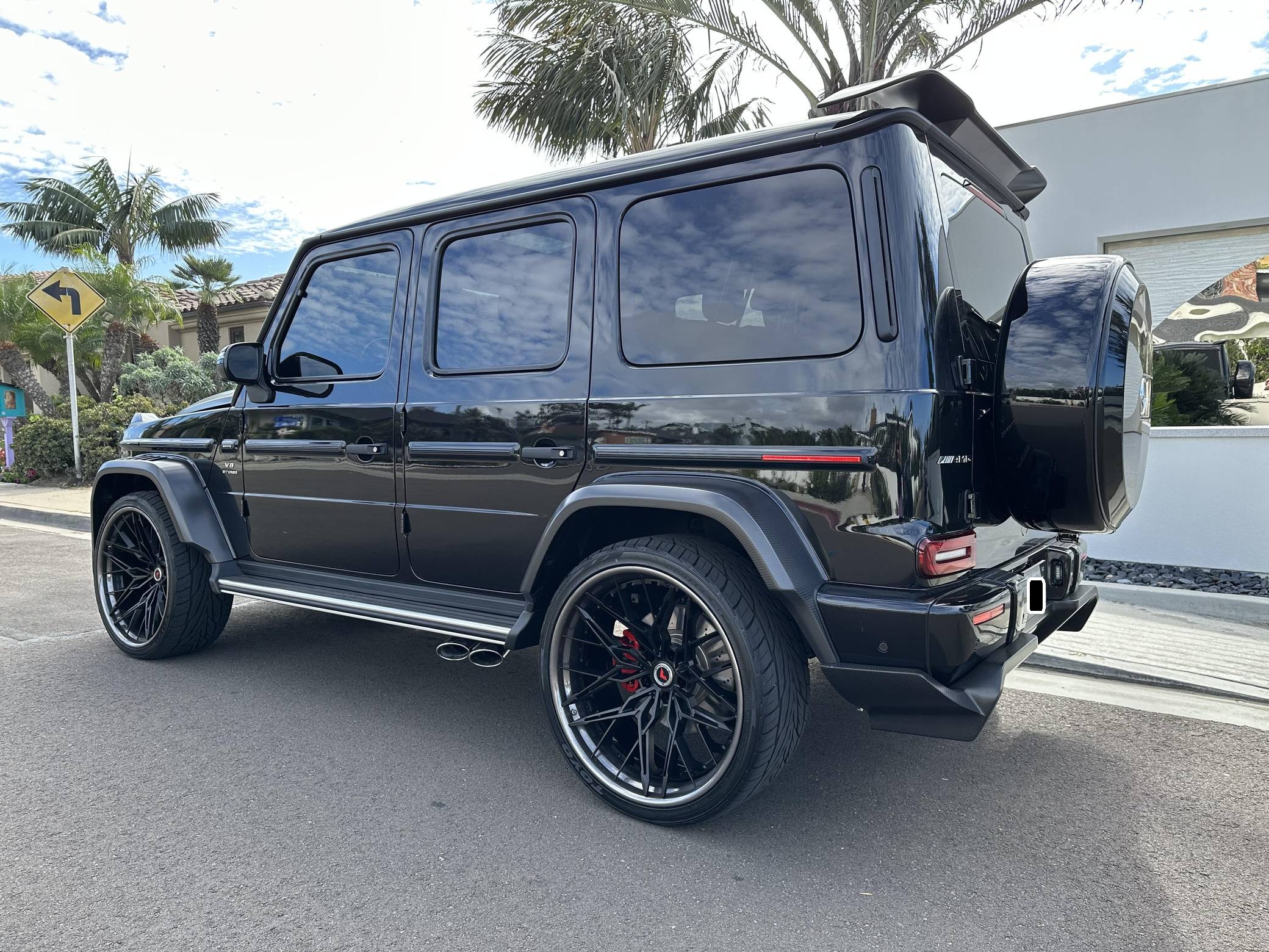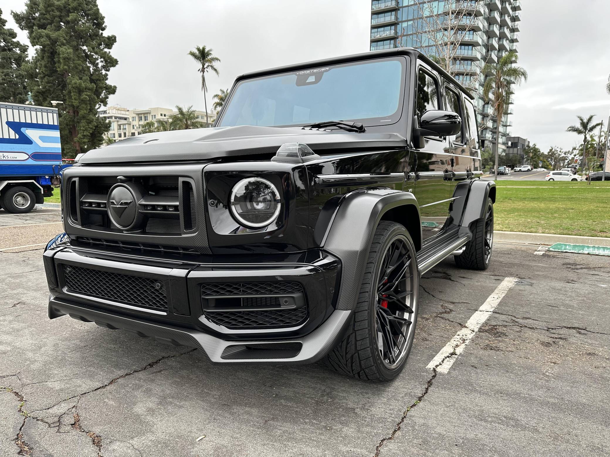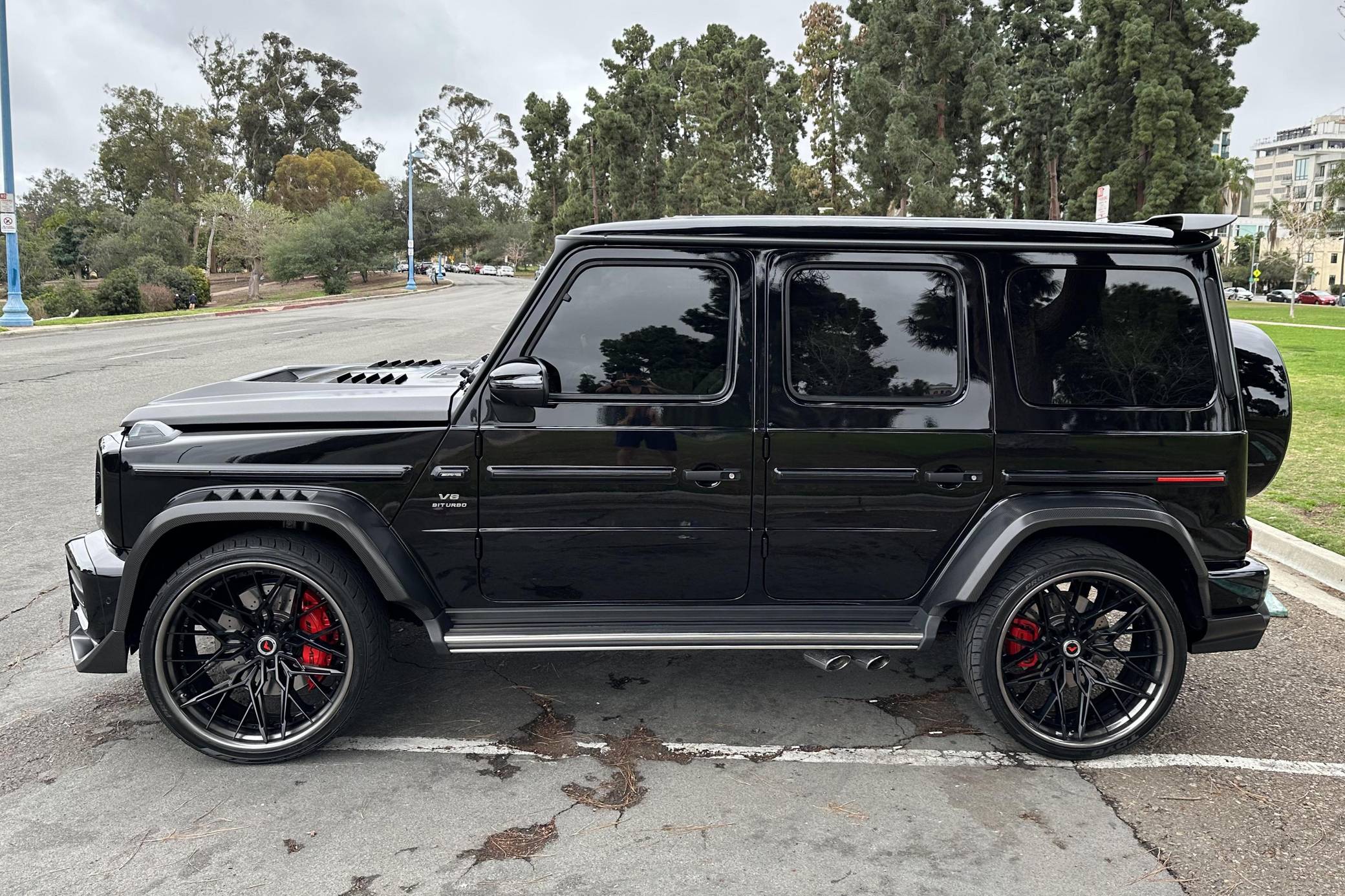 THIS. . . is a 2021 Mercedes-AMG G63, finished in Obsidian Black Metallic with a Platinum White interior. Modifications reported by the seller include a Vorsteiner wide-body kit with exclusive 24-inch Vorsteiner VMP 308 wheels, and tinted windows. Mercedes-Benz gave the emblematic G-Class its first complete overhaul for the 2019 model year. Still built in Graz, Austria, the off-roader wore an evolutionary exterior design but it was entirely new beneath the sheet metal; the exterior door handles were one of the three components carried over from the old to the new G. Mercedes-Benz notably redesigned the frame and the steering system, and it stuffed more tech features into the cabin, but it kept the three locking differentials. Power comes from an "M177" 4. 0-liter twin-turbocharged V8, rated at 577 horsepower and 627 lb-ft of torque. Output is sent to all four wheels through a 9-speed automatic transmission and a 2-speed transfer case.