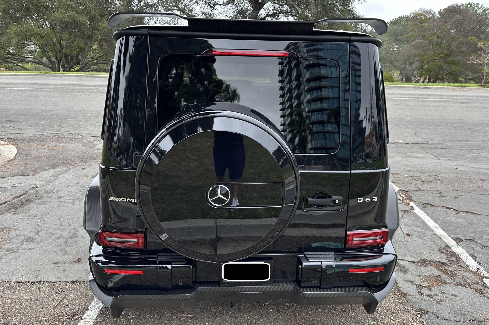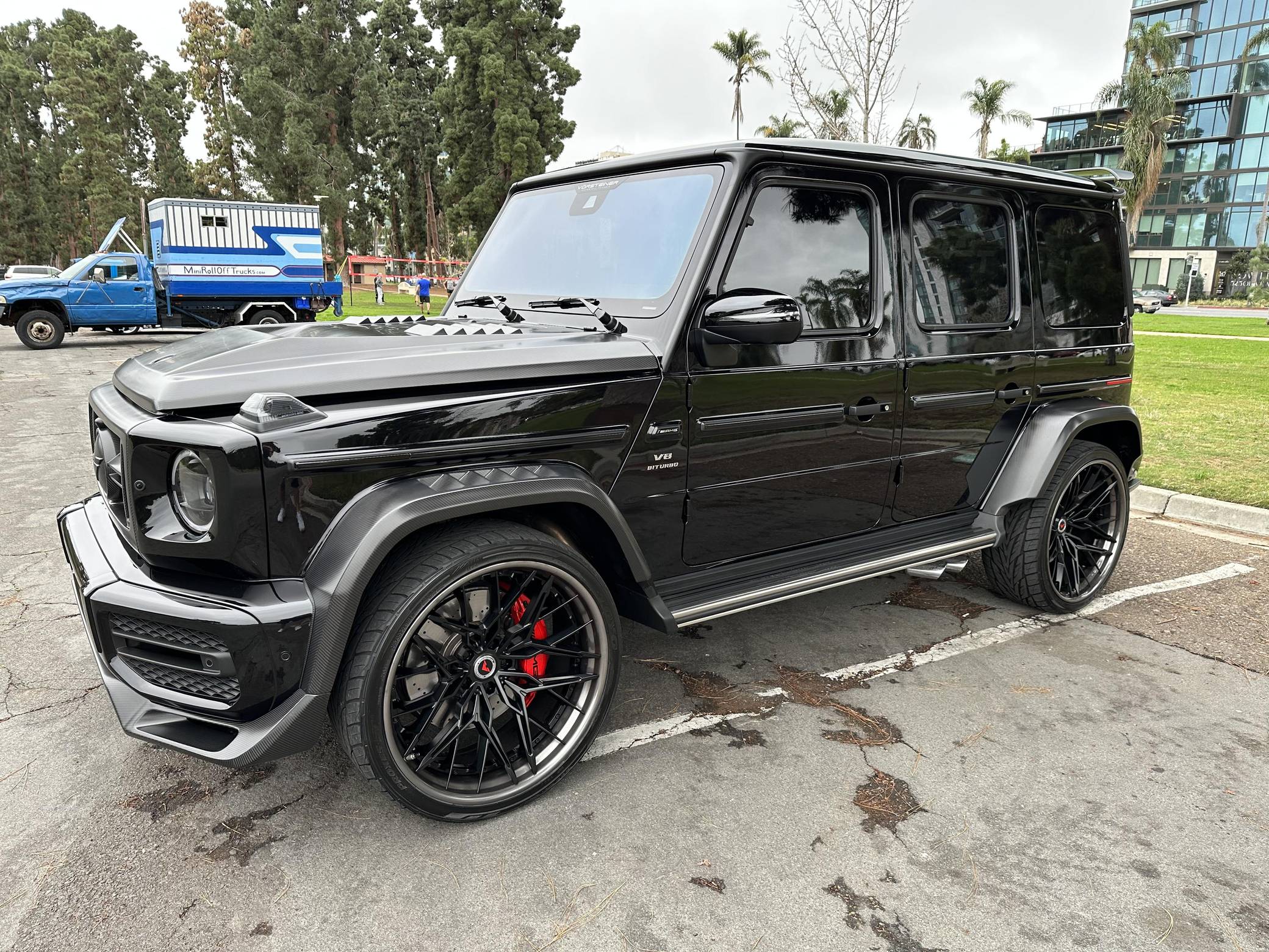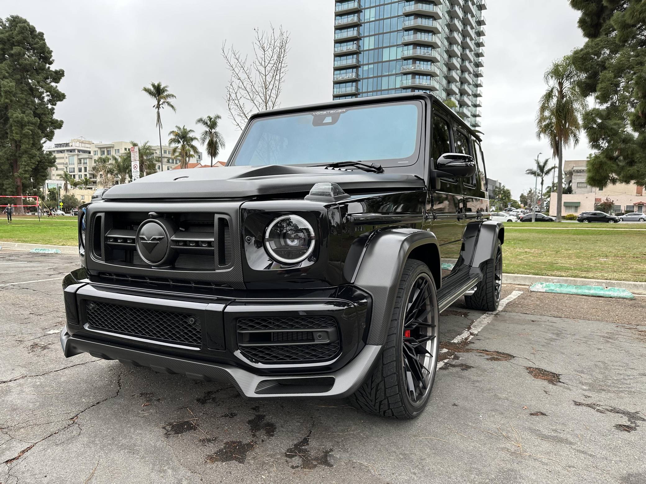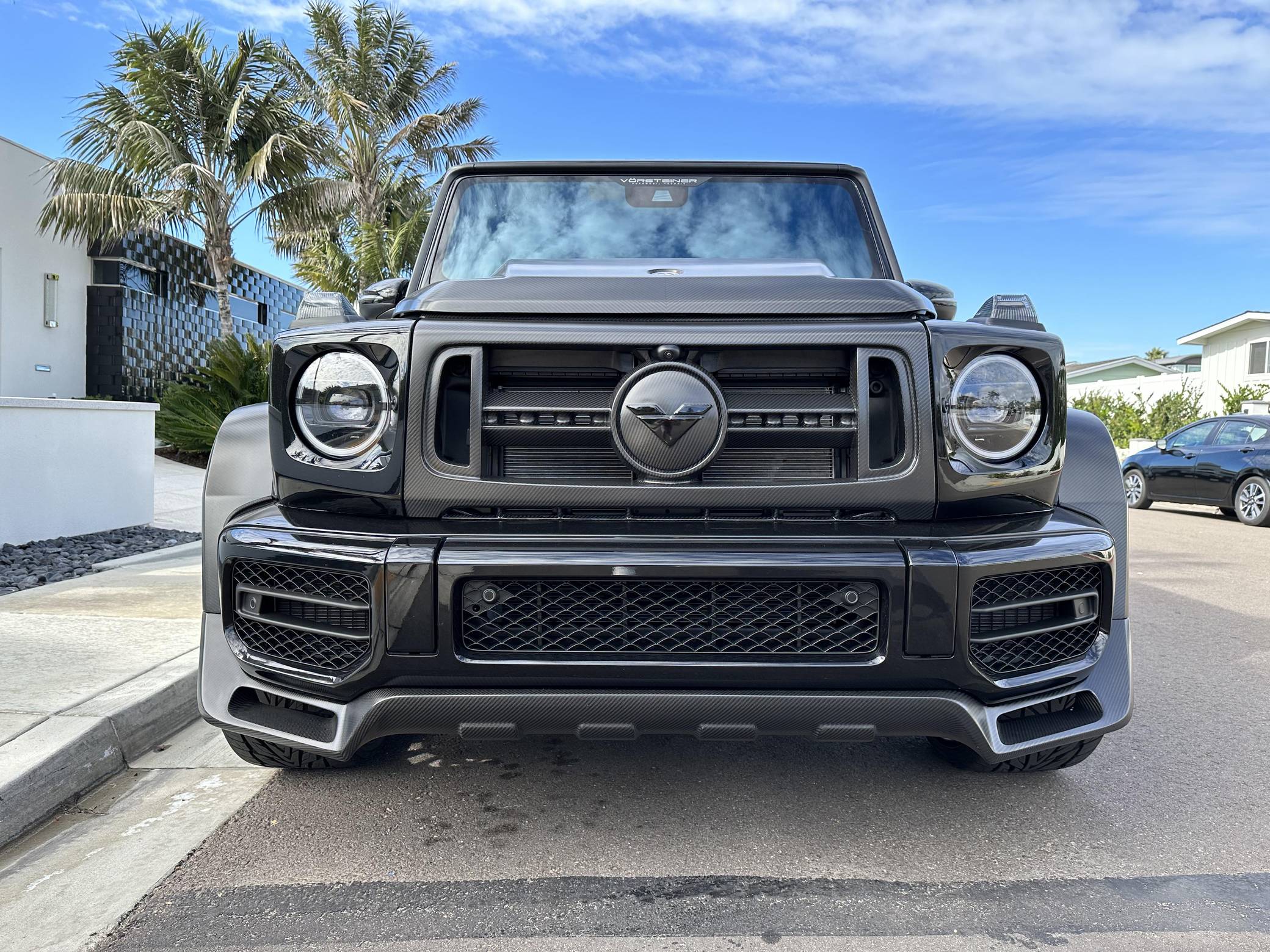 THIS. . . is a 2021 Mercedes-AMG G63, finished in Obsidian Black Metallic with a Platinum White interior. Modifications reported by the seller include a Vorsteiner wide-body kit with exclusive 24-inch Vorsteiner VMP 308 wheels, and tinted windows. Mercedes-Benz gave the emblematic G-Class its first complete overhaul for the 2019 model year. Still built in Graz, Austria, the off-roader wore an evolutionary exterior design but it was entirely new beneath the sheet metal; the exterior door handles were one of the three components carried over from the old to the new G. Mercedes-Benz notably redesigned the frame and the steering system, and it stuffed more tech features into the cabin, but it kept the three locking differentials. Power comes from an "M177" 4. 0-liter twin-turbocharged V8, rated at 577 horsepower and 627 lb-ft of torque. Output is sent to all four wheels through a 9-speed automatic transmission and a 2-speed transfer case.
