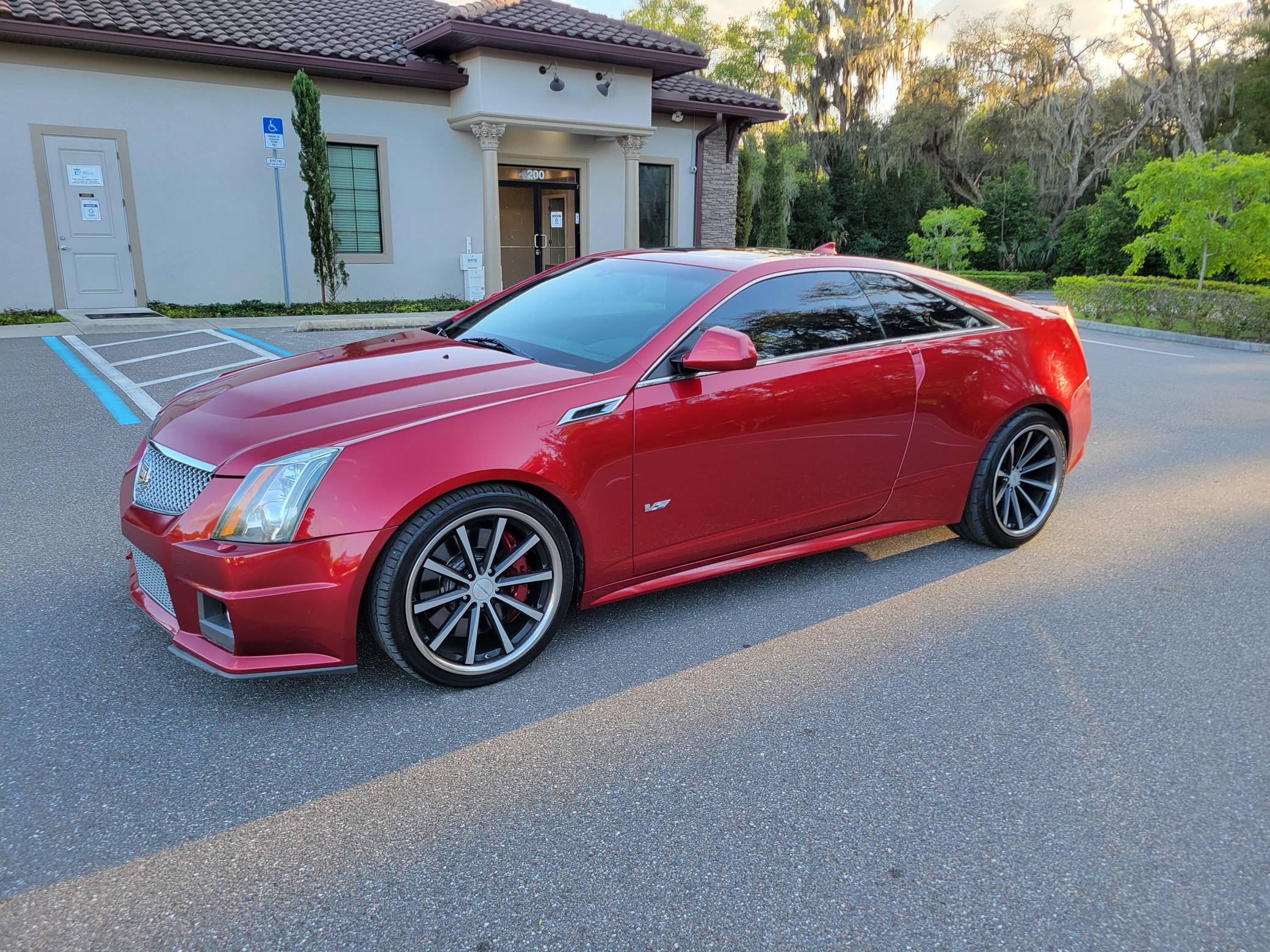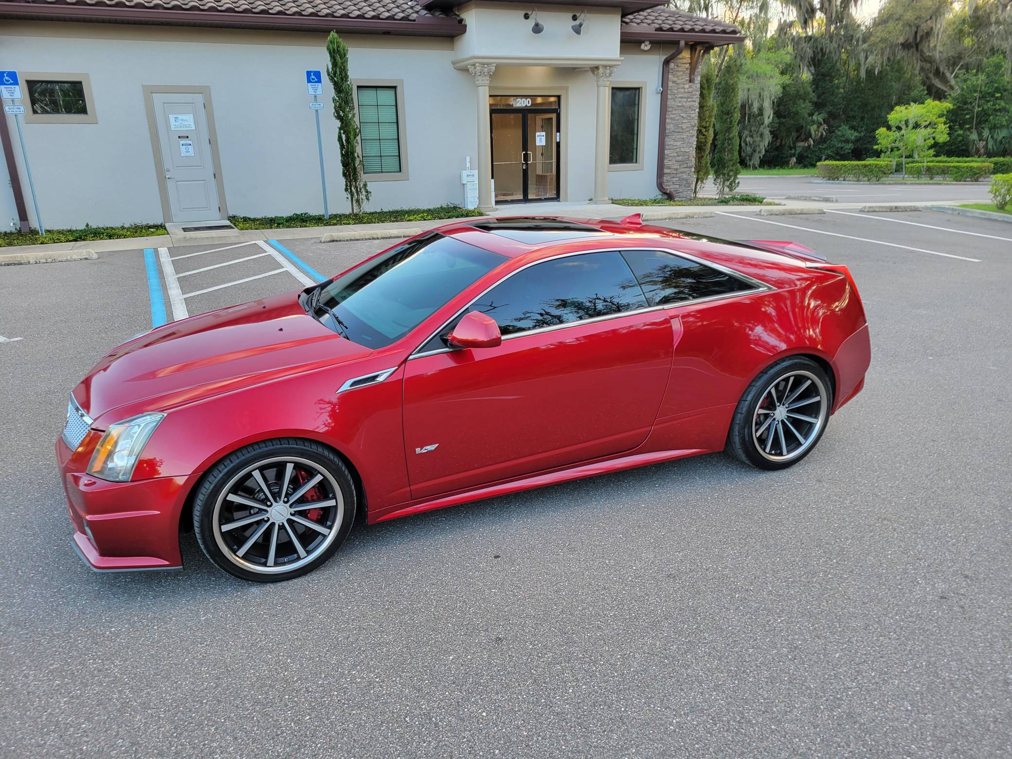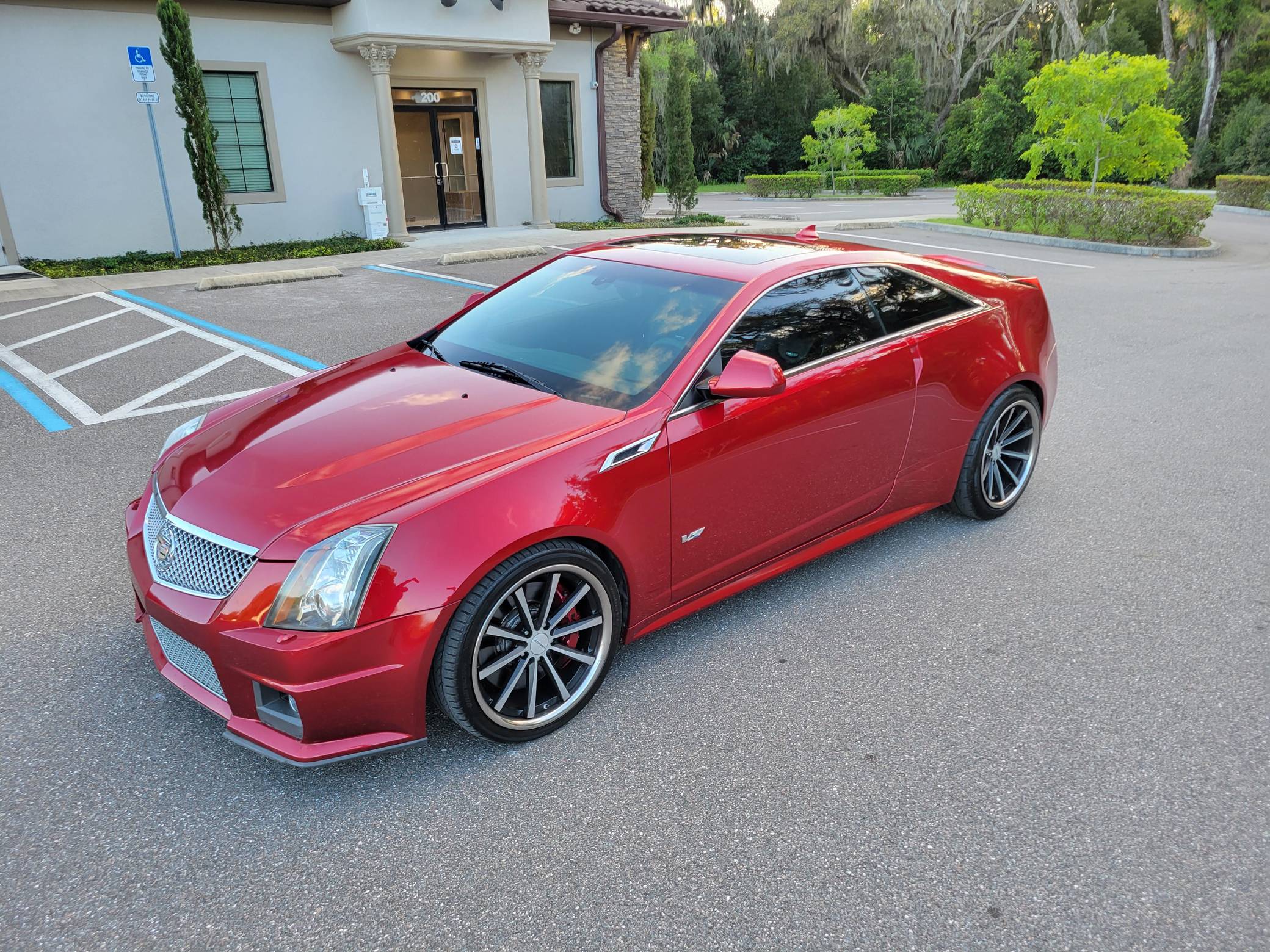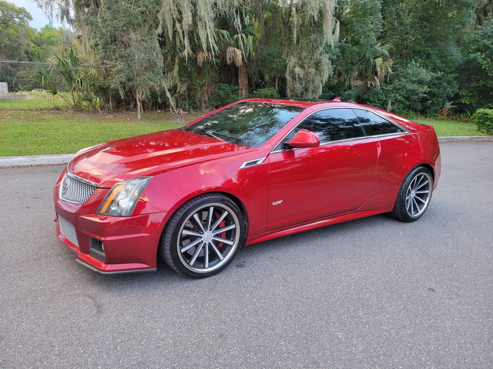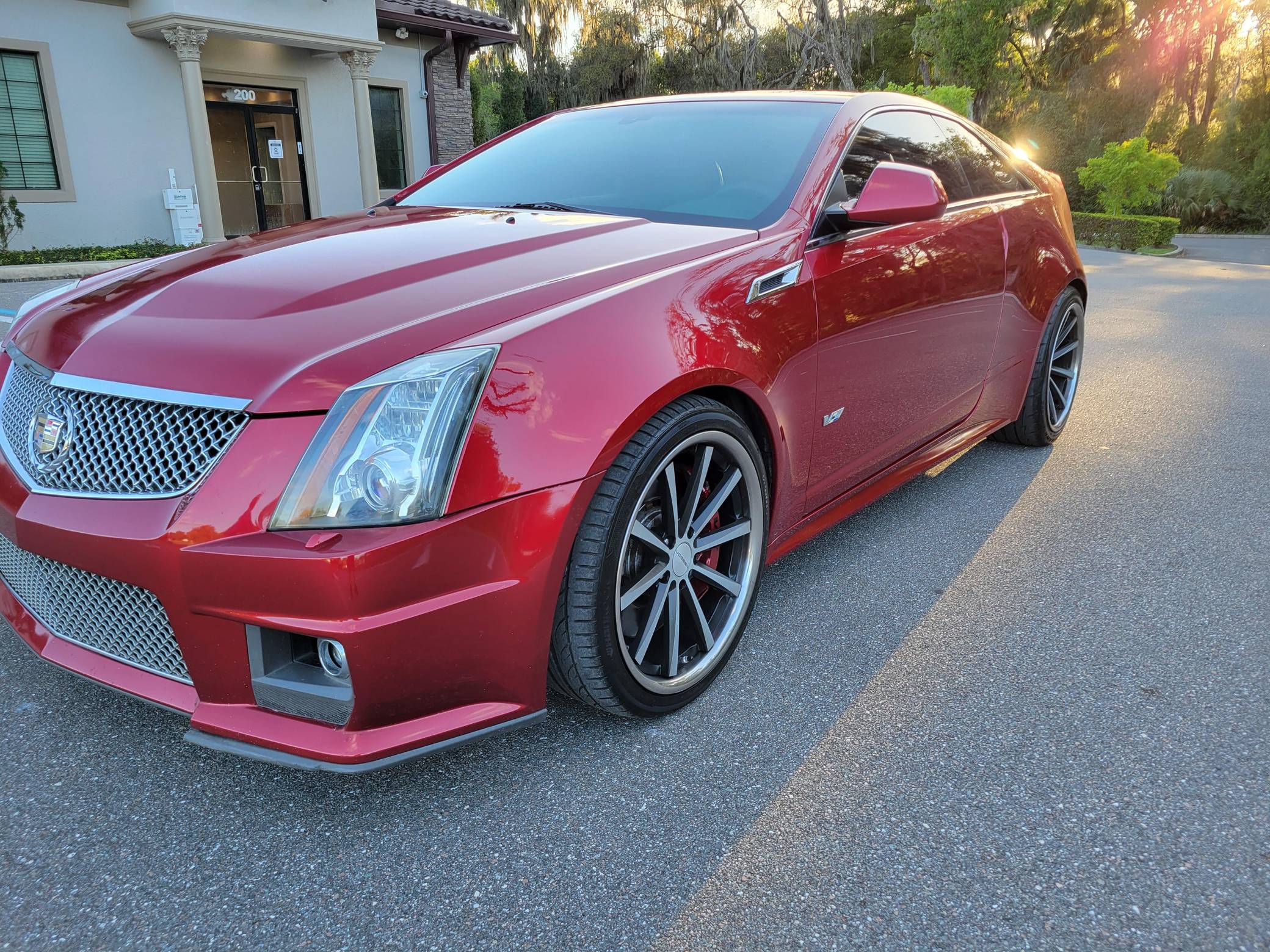 THIS. . . is a 2012 Cadillac CTS-V Coupe, finished in Crystal Red with an Ebony interior. Factory equipment includes leather seats with sueded microfiber inserts, a performance-tuned suspension with Magnetic Ride Control, Brembo brakes, a navigation system, and more. Modifications to this CTS-V include Vossen 20-inch wheels, an Airaid intake, and tinted windows. New for the 2009 model year, the second-generation "V2" CTS-V used a supercharged version of the Corvette's "LSA" V8 plus Magnetic Ride Control, Brembo brakes, and a suspension tuned at Germany's famed Nürburgring. The coupe was introduced for the 2011 model year and remained in production after the V2 sedan and wagon models were retired, finally exiting the market as Cadillac's last-ever V8-powered coupe in 2015. Power comes from the "LSA" 6. 2-liter supercharged V8 engine, which is rated at 556 horsepower and 551 lb-ft of torque. Output is sent to the rear wheels via a 6-speed automatic transmission.