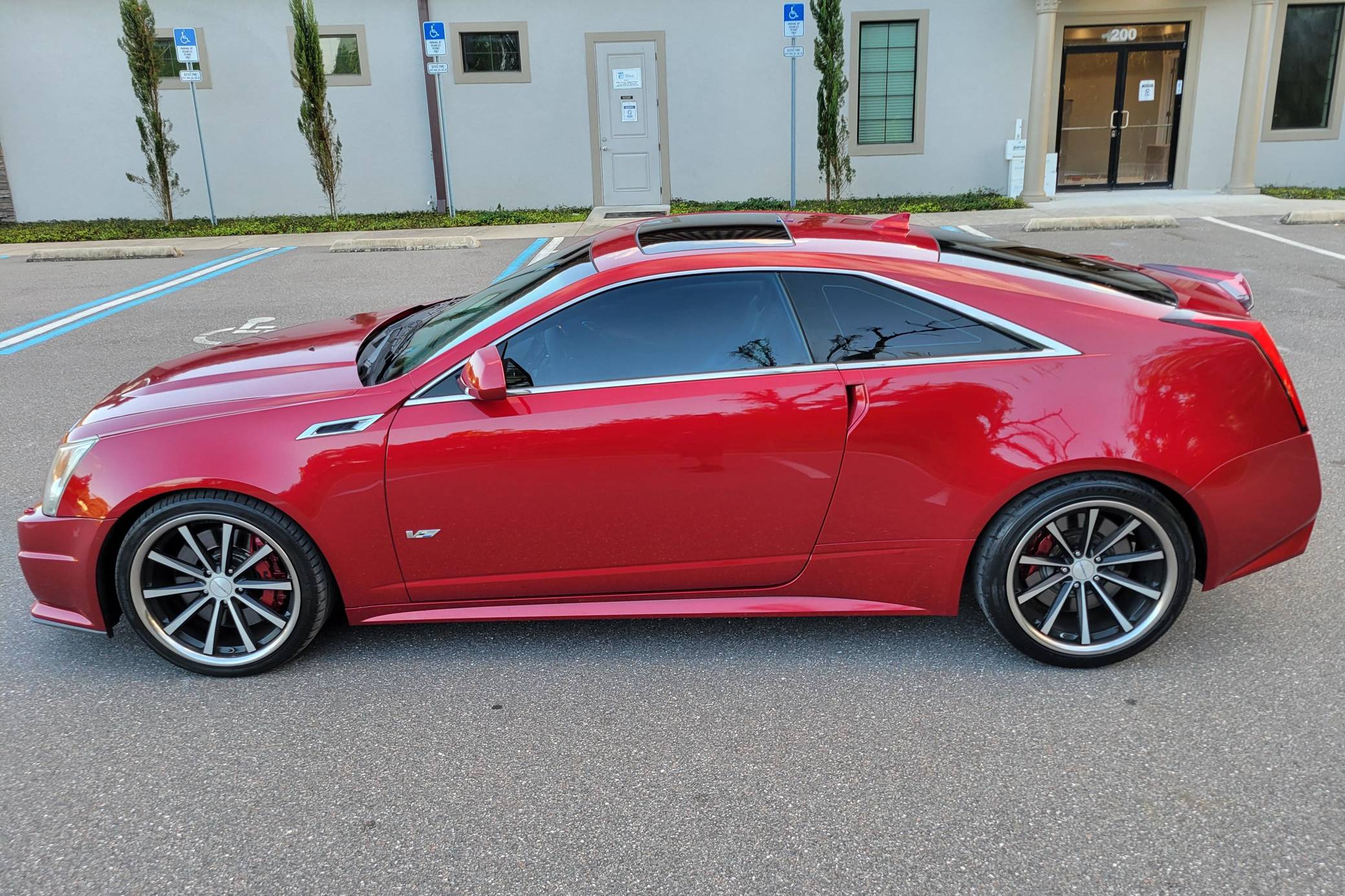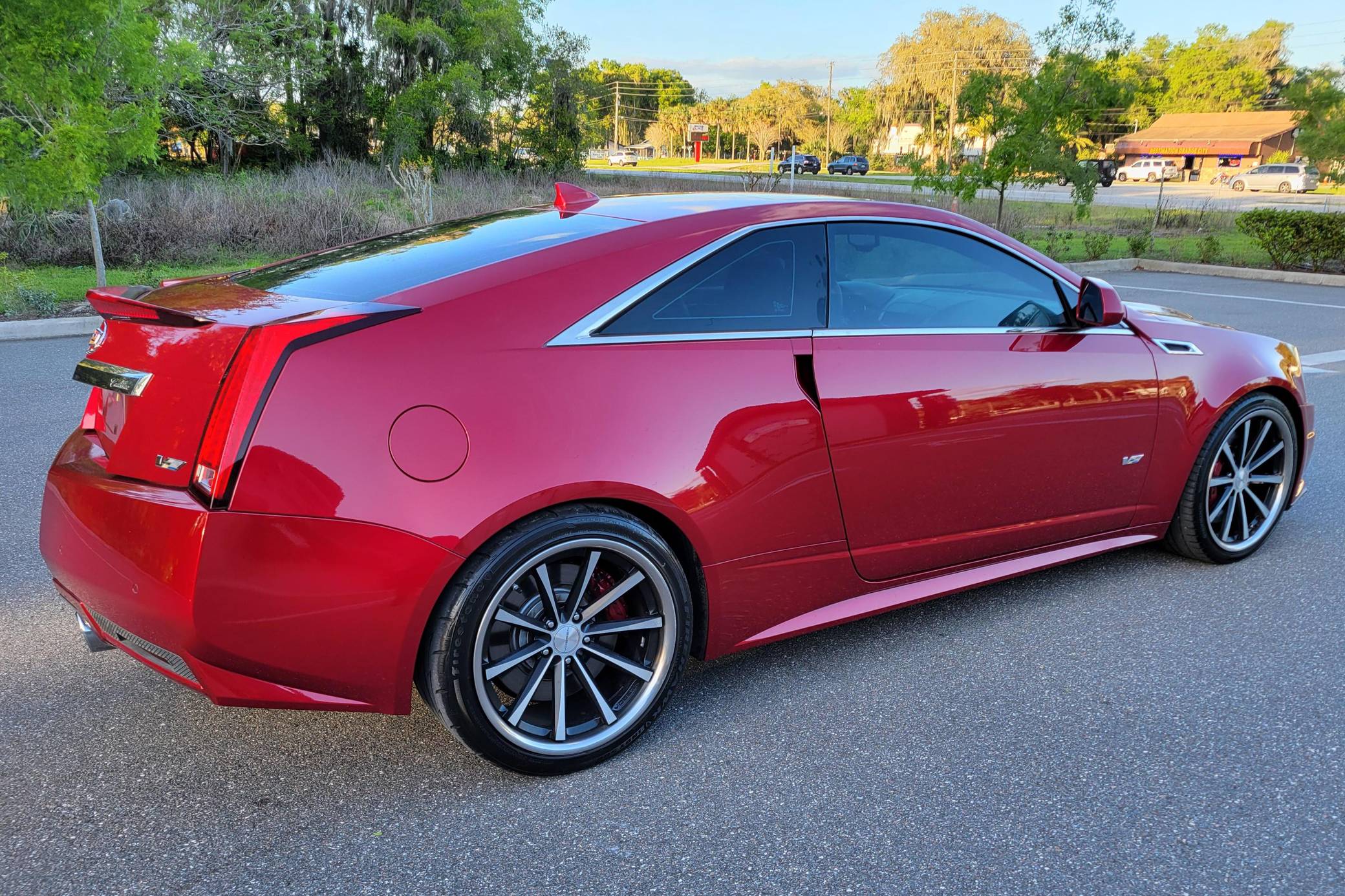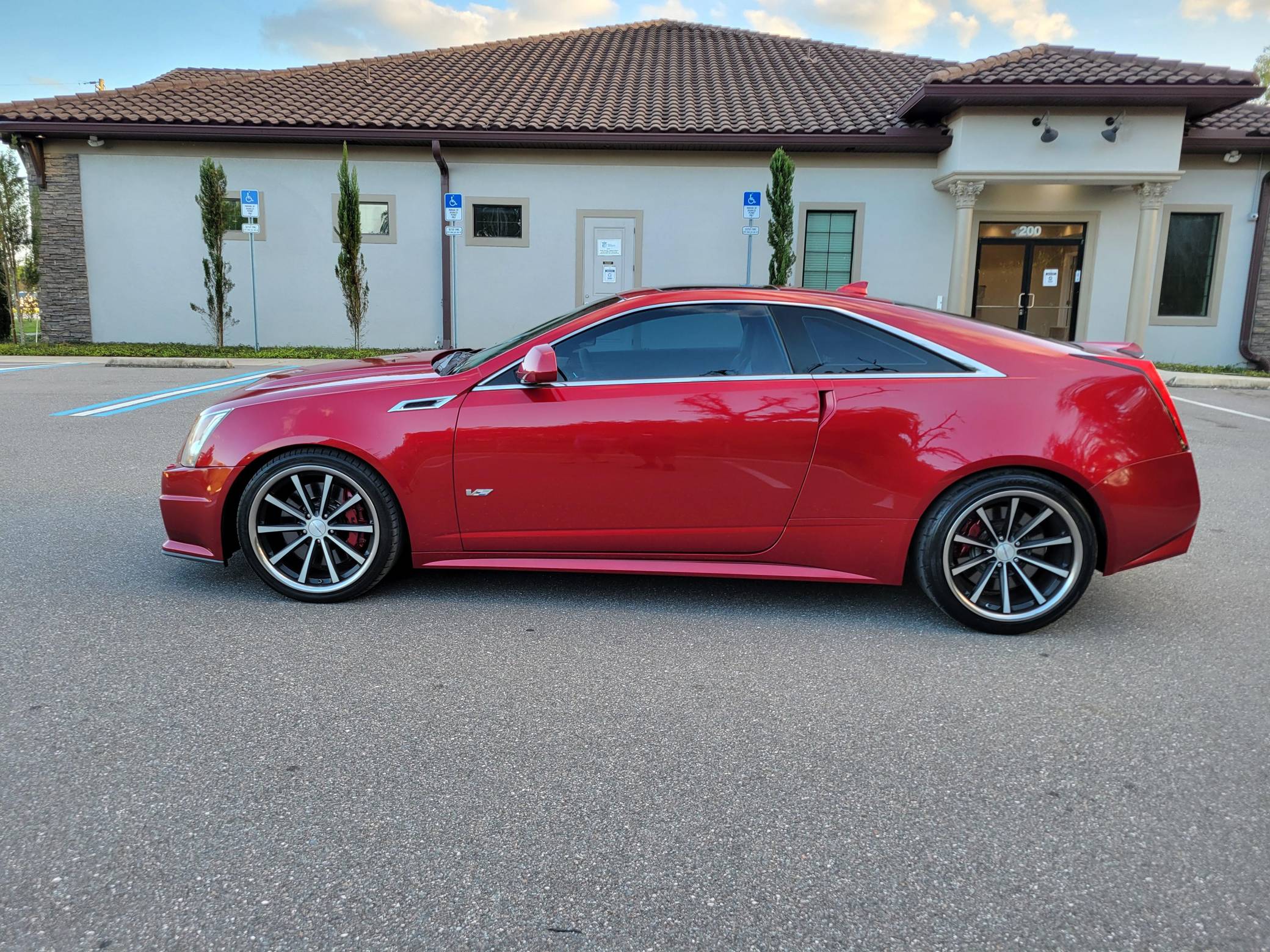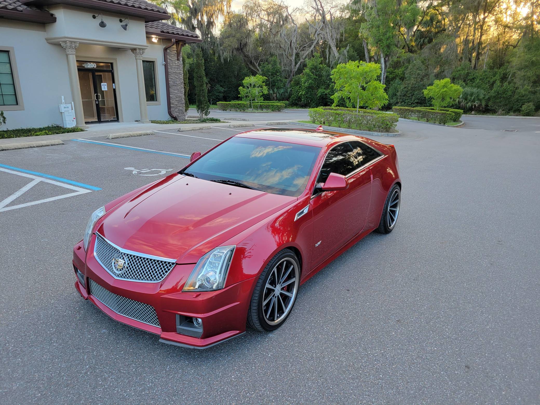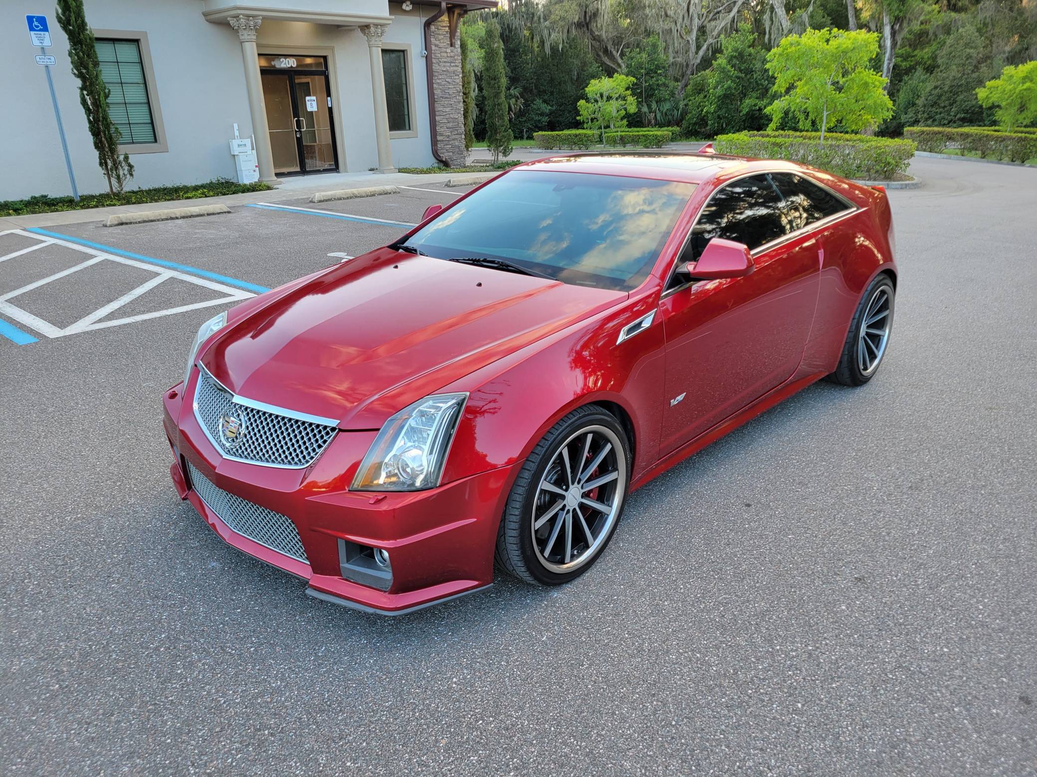 THIS. . . is a 2012 Cadillac CTS-V Coupe, finished in Crystal Red with an Ebony interior. Factory equipment includes leather seats with sueded microfiber inserts, a performance-tuned suspension with Magnetic Ride Control, Brembo brakes, a navigation system, and more. Modifications to this CTS-V include Vossen 20-inch wheels, an Airaid intake, and tinted windows. New for the 2009 model year, the second-generation "V2" CTS-V used a supercharged version of the Corvette's "LSA" V8 plus Magnetic Ride Control, Brembo brakes, and a suspension tuned at Germany's famed Nürburgring. The coupe was introduced for the 2011 model year and remained in production after the V2 sedan and wagon models were retired, finally exiting the market as Cadillac's last-ever V8-powered coupe in 2015. Power comes from the "LSA" 6. 2-liter supercharged V8 engine, which is rated at 556 horsepower and 551 lb-ft of torque. Output is sent to the rear wheels via a 6-speed automatic transmission.