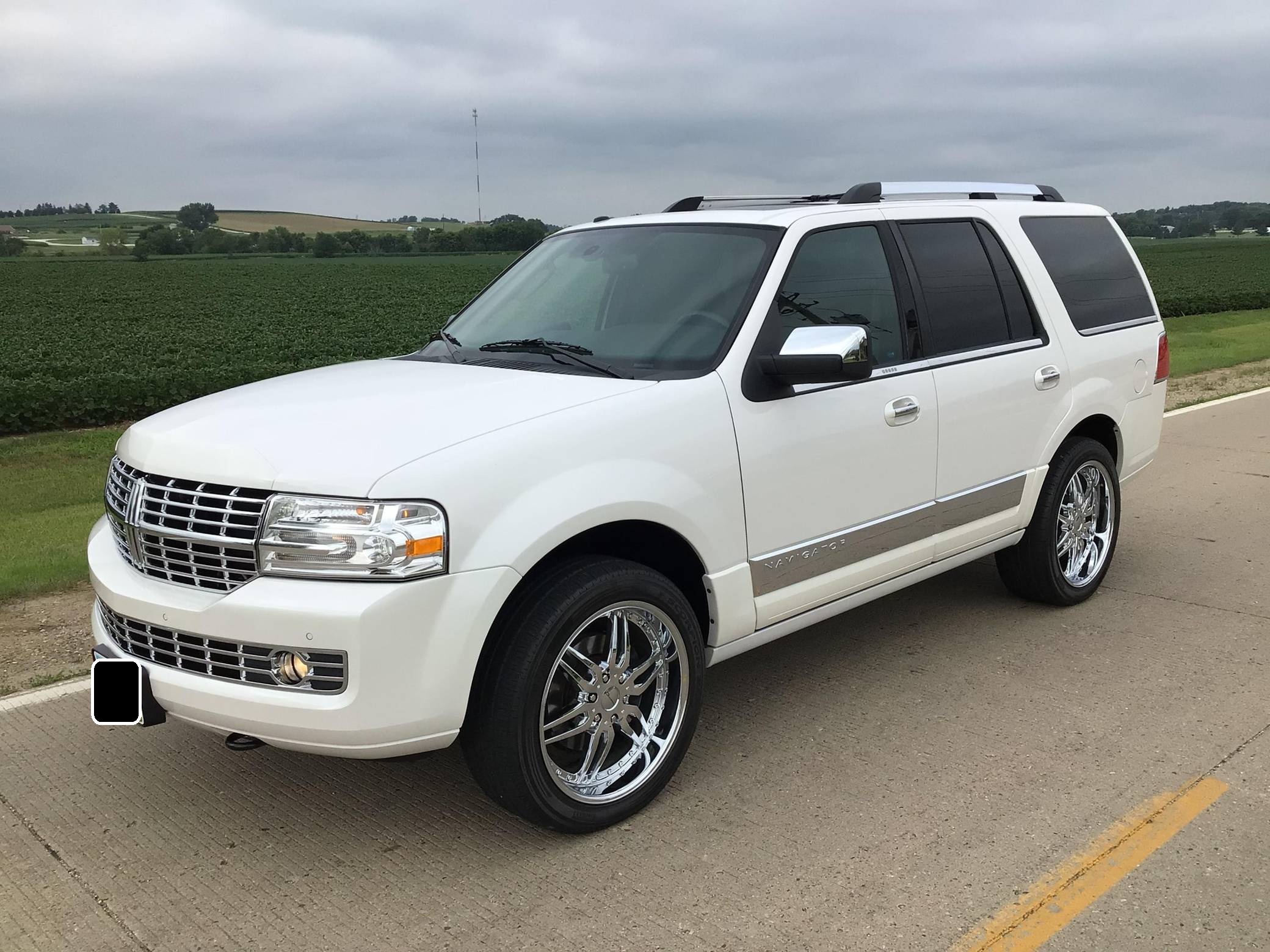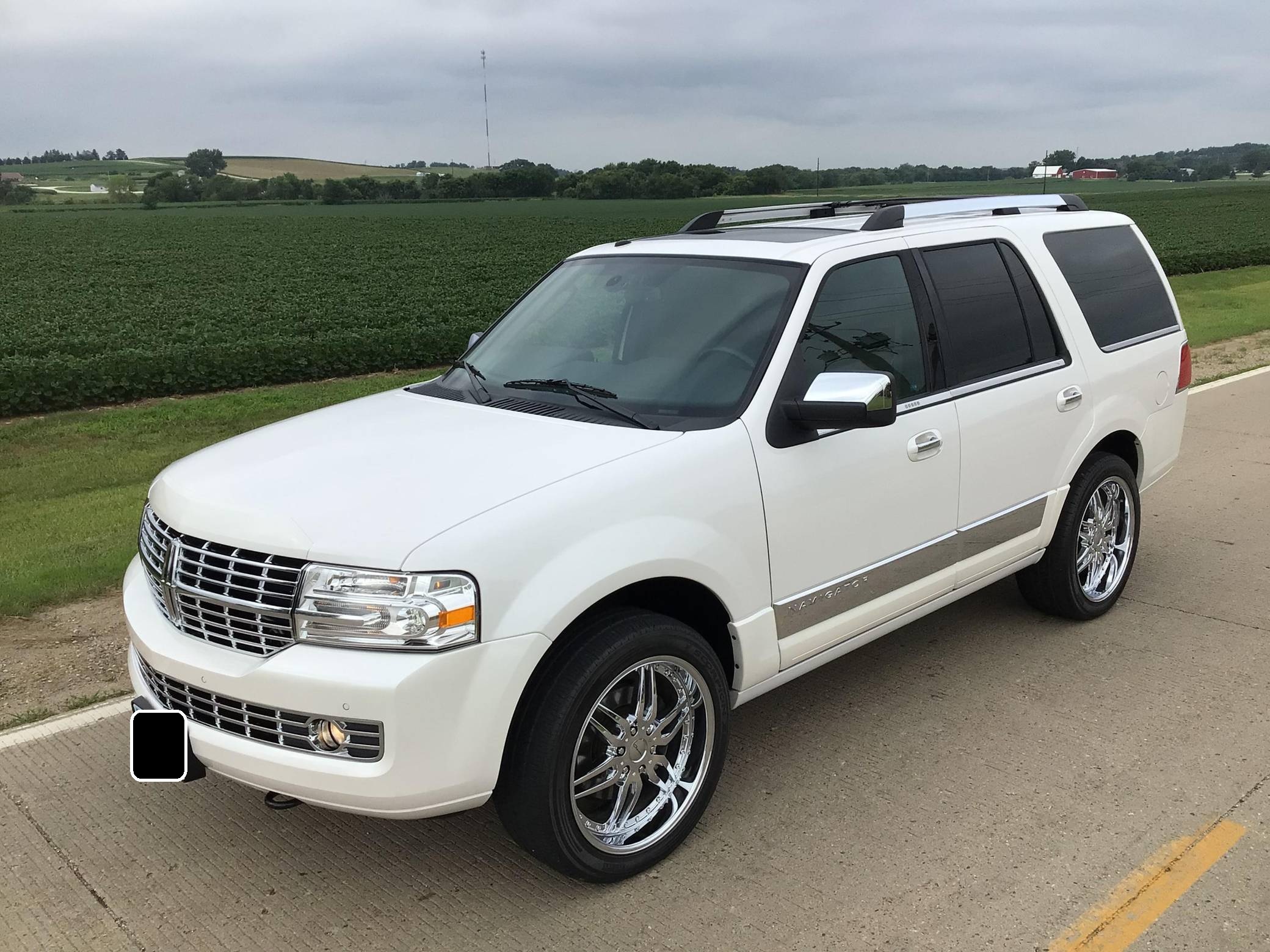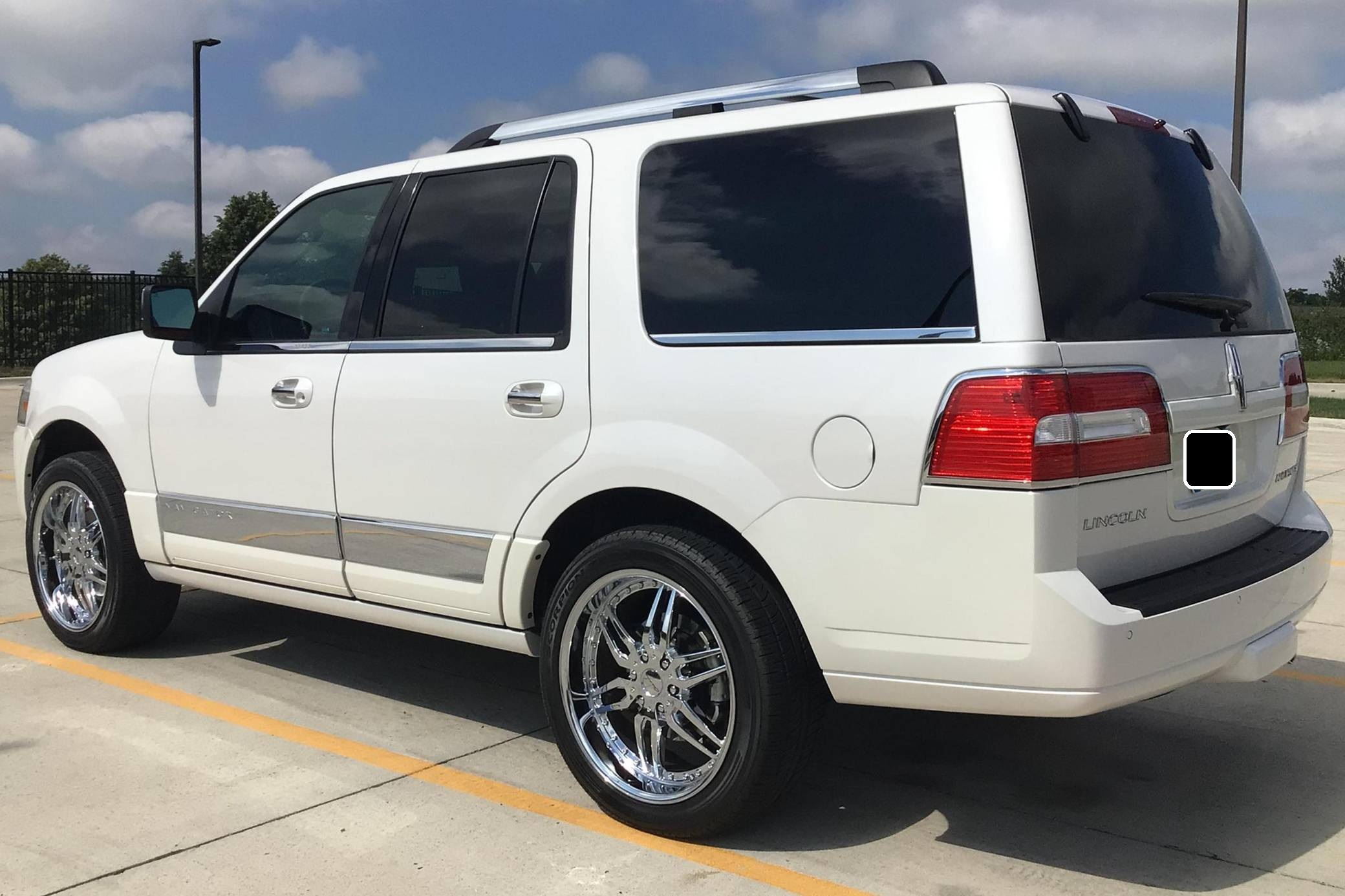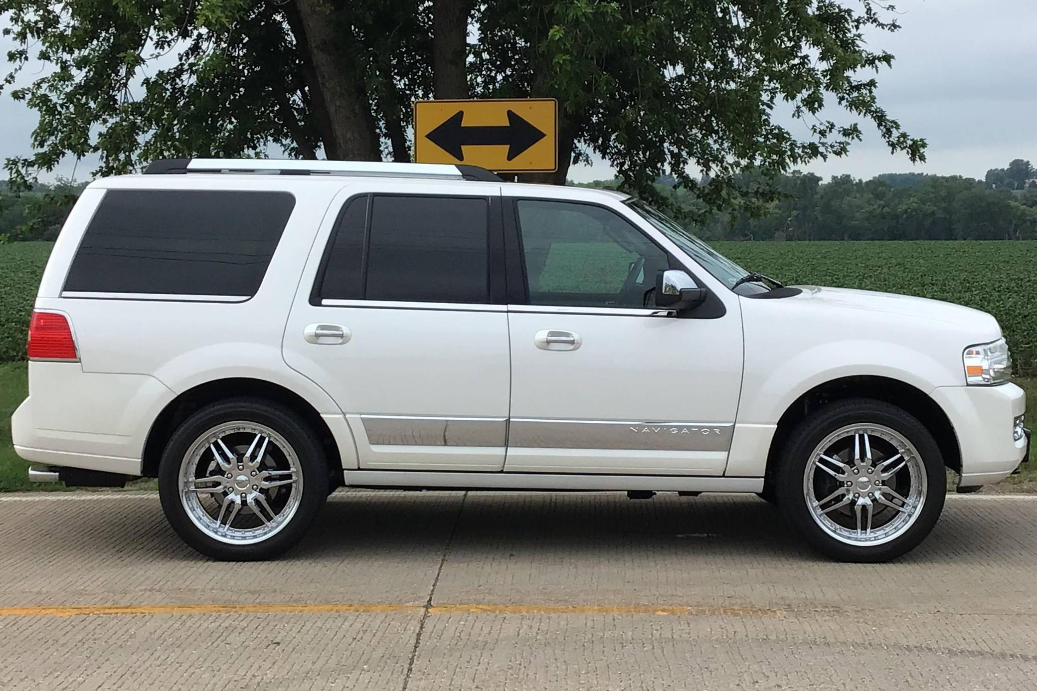 2011 Lincoln Navigator, finished in White Platinum Metallic Tri-Coat with a Charcoal Black interior. The odometer on this Navigator indicates about 6,100 miles. A partial list of notable equipment includes leather upholstery, heated and cooled front seats, heated second-row seats, power-folding third-row seats, a power moonroof, power-deployable running boards, and a THX II 14-speaker audio system. The sole modification to this Navigator is a set of Giovanna 22-inch wheels. Pre-dating the Cadillac Escalade, the Ford Expedition-based Lincoln Navigator kicked off the full-size luxury SUV craze when it launched for the 1998 model year. It entered its third generation in 2007 with front-end styling inspired by early Continental models and a more luxurious interior than its predecessors. This was the final iteration of the Navigator with a V8 engine before it switched to an EcoBoost V6 in 2015. Power comes from a "Triton" 5. 4-liter V8, rated at 310 horsepower and 365 lb-ft of torque. Output is sent to the rear or all four wheels via a 6-speed automatic transmission.