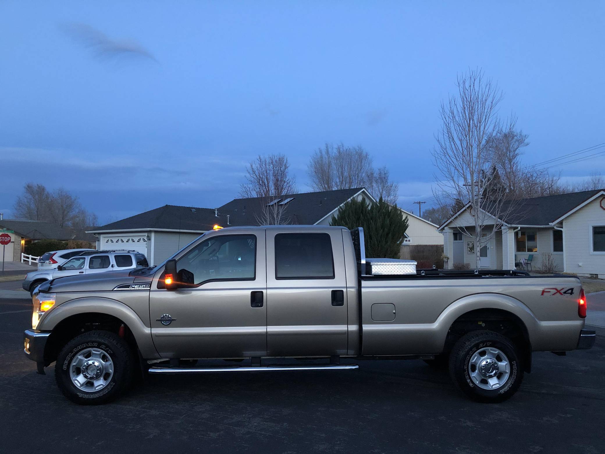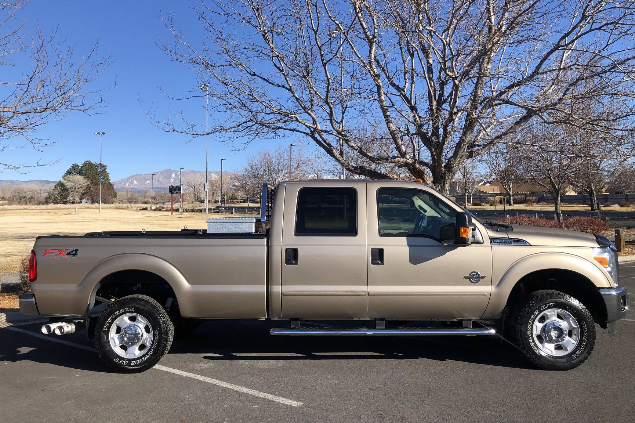 THIS. . . is a 2012 Ford F-350 Super Duty 4x4, finished in Pale Adobe Metallic with a Beige/Steel interior. This F-350's odometer currently indicates approximately 39,800 miles. A partial list of notable equipment on this F-350 includes the FX4 Off Road Package, Fifth Wheel/Gooseneck Trailer Tow Prep Package, 17-inch aluminum wheels, a six-passenger seating configuration, power windows and door locks, cloth upholstery, a heated steering wheel, cruise control, and more as detailed below. Modifications reported by the seller include a Reese trailer hitch, Delta in-bed storage chest, an airflow-style tailgate, a rear window guard, and more as detailed below. Ford's third-generation Super Duty truck line-up made its debut for the 2011 model year. It looked a lot like its predecessor, and it remained available in a dizzying number of configurations, but it received a long list of updates (including a new turbodiesel engine and trailer sway control technology) that made it even better suited to towing. Power comes from a 6. 7-liter "Power Stroke" turbodiesel V8, rated at 400 horsepower and 800 lb-ft of torque. It spins all four wheels via a 6-speed automatic transmission and a 2-speed transfer case. Towing capacity with a fifth wheel/gooseneck hitch is 15,700 pounds.