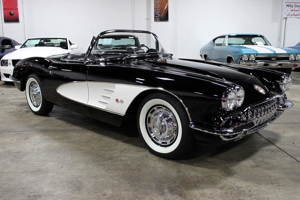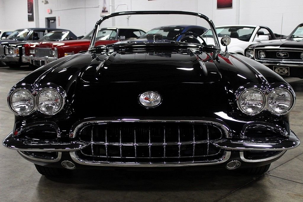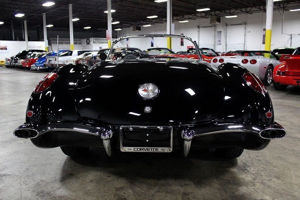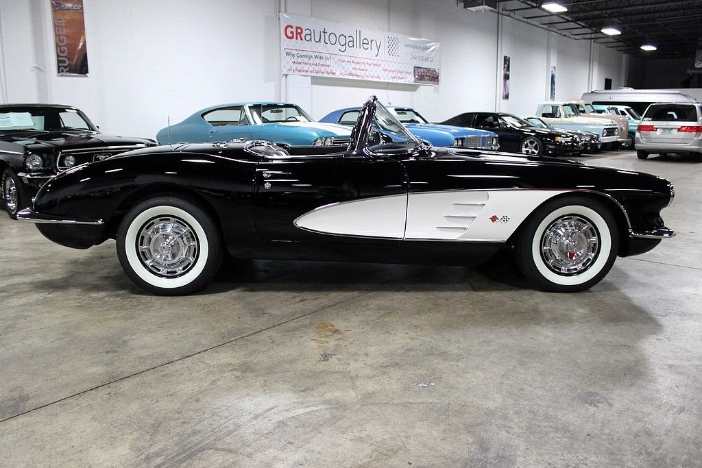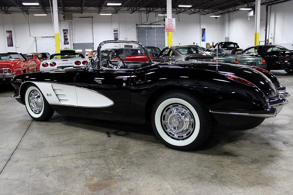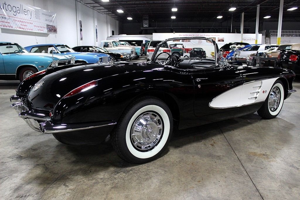 This classic Vette is the recent recipient of a high quality and meticulous rotisserie restoration performed by PSI Motorsports in Sterling Heights, MI. It comes complete with the matching hardtop and looks stunning in black with white coves with a black and white Al Knoch interior complete with leather seats, leather dash, and deluxe leather door panels. The car also features a Jim Meyer front suspension consisting of a rack and pinion with coil over shocks which enables the car to perform much better than suspension technology from 55 years ago. For 1959, the Corvette received minor updates such as the new reverse lockout t-handle on the 4-speed shifter, the seats and door panels were redesigned and a shelf was added under the dash, a new instrument panel with concave instruments to reduce glare was introduced and the tachometer, seat belts, outside rear view mirrors, electric clock and dual exhaust was now standard equipment. Decoding the VIN reveals: • J = Corvette • 59 = 1959 • S = St. Louis, Missouri Assembly • 101063 = 1,063rd in production sequence Decoding the Cowl Tag reveals: • The Cowl Tag is no longer present but it is believed to have been originally Inca Silver with a Red interior. It has 3,157 miles on the clock since its immaculate concourse-level rotisserie restoration. The 283ci V8 is non-numbers matching from a 1957 Corvette with a Carter carburetor matted to a 4-speed manual. The car features power steering with the Jim Meyer front suspension as mentioned, rear shocks, front and rear disc brakes, and heat. It also comes with 2 keys and the original owner's manual. Pictures do not do this car justice as its presentation is astonishing and it performs even better than it looks! Being a Corvette with less than 10,000 produced in this model year is a key indicator that these vehicles will only continue to increase in value. Being one in this pristine of condition offers up a superb investment opportunity.