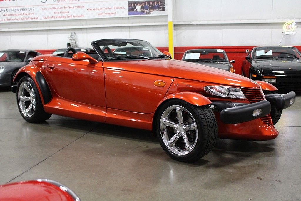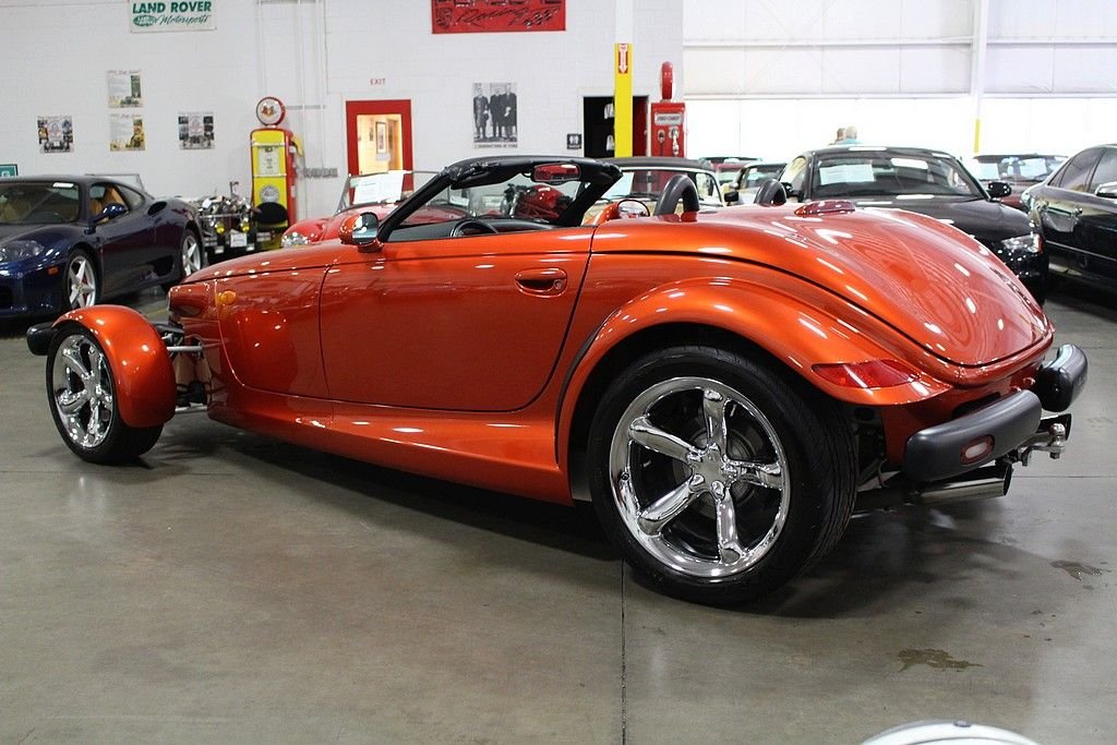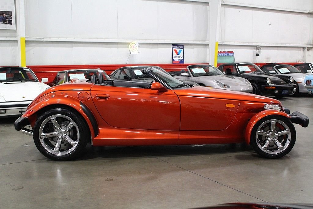 The Plymouth Prowler had to be officially called a Chrysler Prowler in 2001 & 2002 after the Plymouth marque was discontinued. The design of the Prowler was the result of Chrysler engineers given free rein to create whatever they wanted in a hot rod type vehicle. Using retro styling and Indy-racing type open front wheels the Prowler became one the most bold designs of an American production car in decades. The car is a front engine, rear-wheel drive car with the transmission in the rear of the vehicle giving the car a desirable 50/50 weight distribution. Like most exotic cars, this really cool retro design doesn't allow for much trunk space. Chrysler dealers offered a trailer as a $5,000 option. The trailers resemble the back end of the Prowler with smaller versions of the 5-spoke wheels and matching factory paint to the car. This is an excellent low mileage version of the Prowler in near pristine condition. This car has always been well maintained and stored inside. This top down modern street rod offers a one of a kind motoring experience. It is powered by the original 3.5L V6 with a powerful aluminum block paired with a 4-speed automatic transmission. This is a low mileage stock beauty that is an awesome turn-key ready cruiser for those perfect weather days. These cars are also future classics with very unique styling and low production numbers.