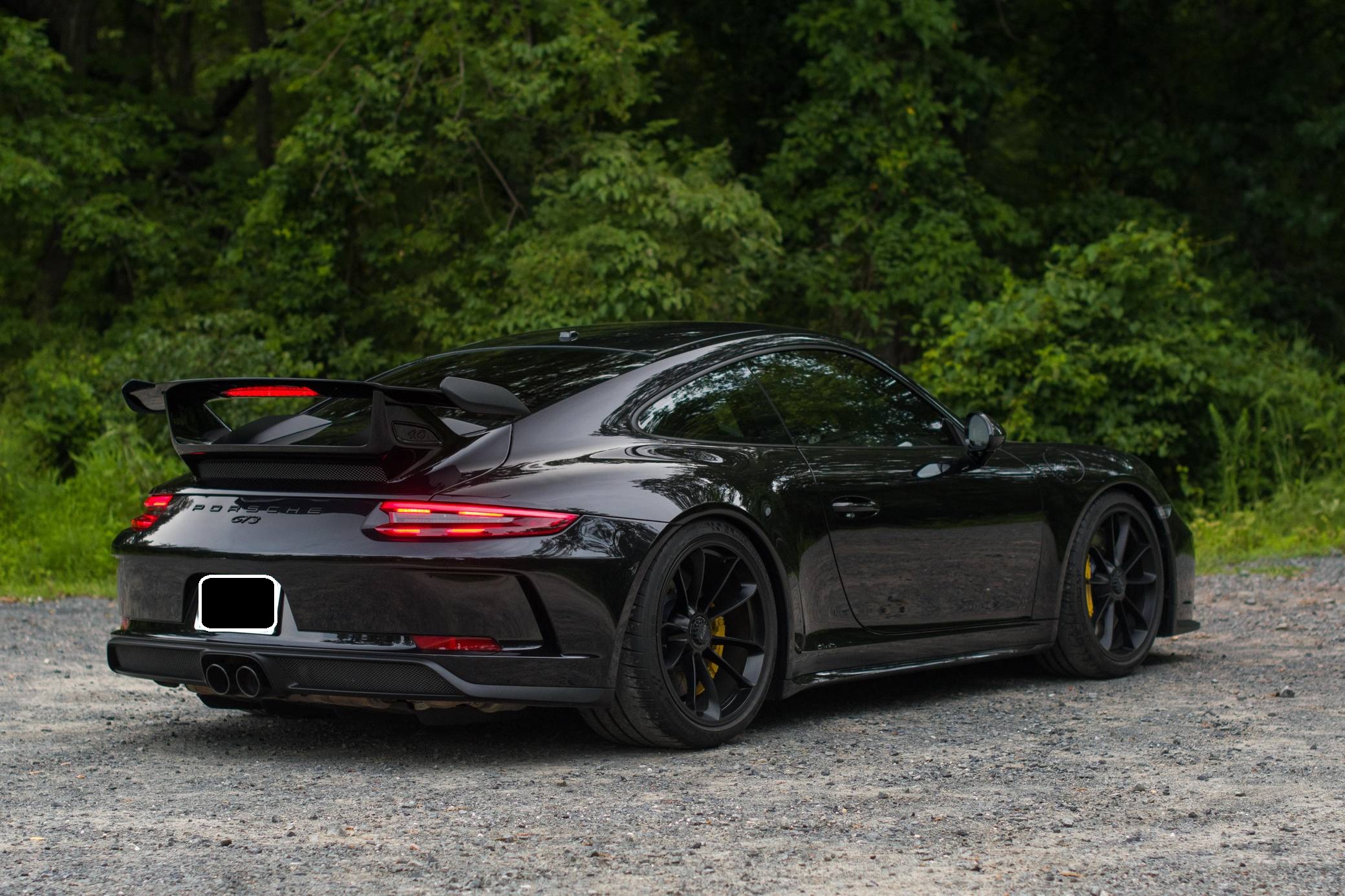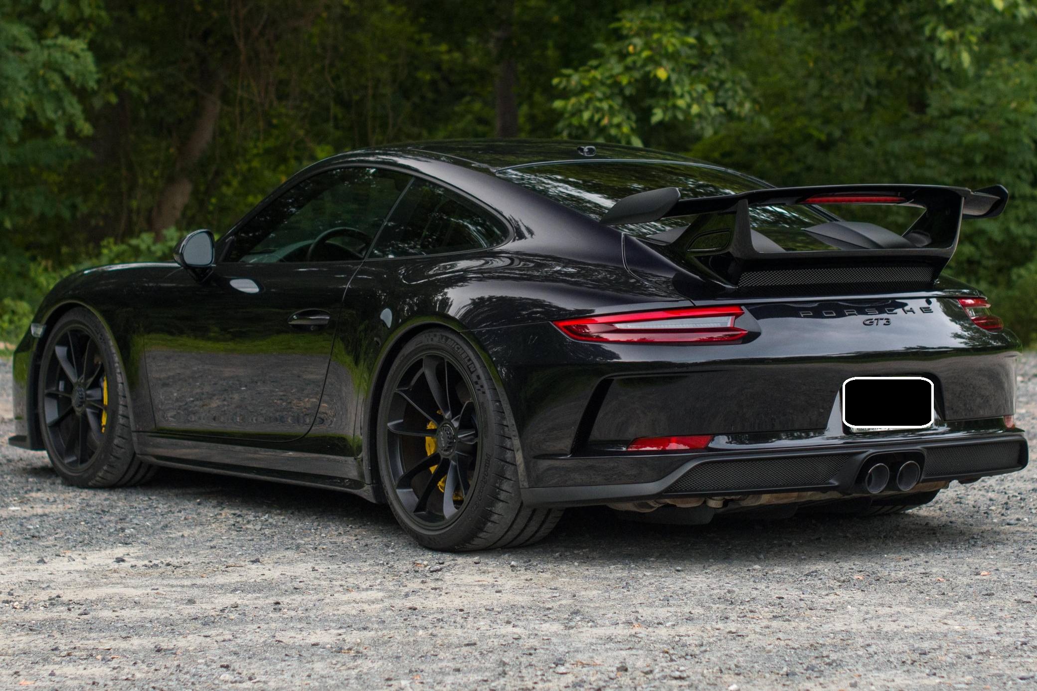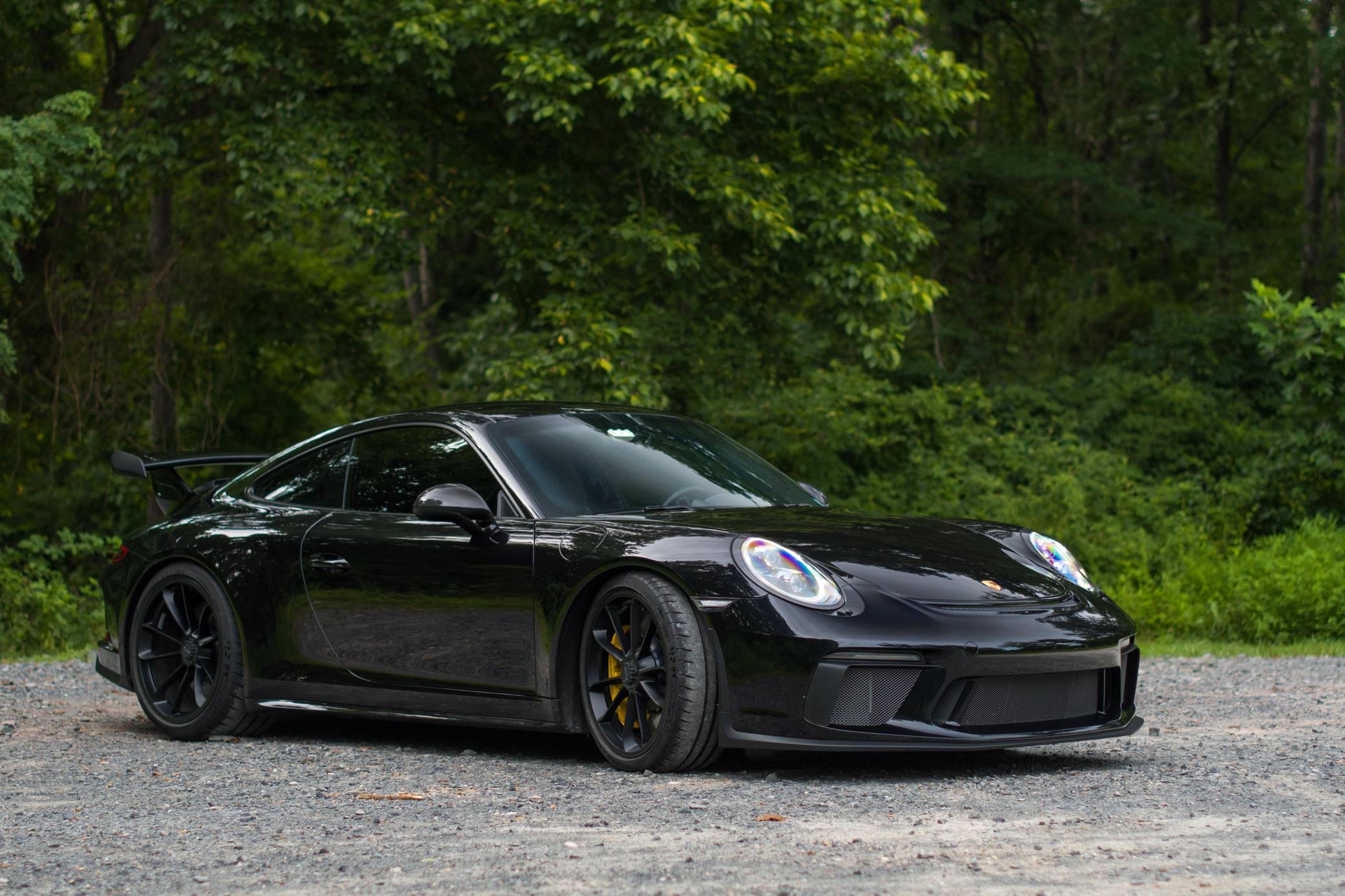 2018 Porsche 911 GT3, finished in Jet Black Metallic with a black interior. This GT3 is equipped with the desirable 6-speed manual transmission, and its odometer displays about 9,900 miles. According to the build sheet provided in the gallery, factory equipment includes the Sport Chrono, Leather/Alcantara Interior, Carbon Fiber Interior, and Light Design packages, a front axle lift system, and a Bose surround sound system. Modifications reported by the seller include STEK Automotive paint protection film, GiroDisc brake rotors and Hawk Performance brake pads, a Competition Motorsport half cage, and a SCHROTH Safety Products racing harnesses. More details about the aftermarket parts installed on this car are provided below, and the removed factory Porsche Ceramic Composite Brake (PCCB) system parts are included in the sale. The results of a pre-purchase inspection performed in July 2022 are pictured in the gallery. The 991-generation Porsche 911 featured a longer wheelbase and new transaxle, which was developed to move the engine forward, allowing for better weight distribution and cornering performance. The improved handling, increased power, and refined interior have gone on to make this generation of 911 a perennial favorite among enthusiasts. The GT3 and GT3 RS are the most track-oriented Porsches in the 911 lineup, with more downforce and a naturally-aspirated engine that spins to 9,000 RPM. Porsche released the updated "991. 2" GT3 in 2018. The new GT3 received a more powerful 4. 0-liter engine, and was once again available with a manual transmission; something that Porsche had taken away with the introduction of the 991 GT3 in 2014. Power comes from a 4. 0-liter flat-6, rated at 500 horsepower and 339 lb-ft of torque. Output is sent to the rear wheels via a 6-speed manual transmission.