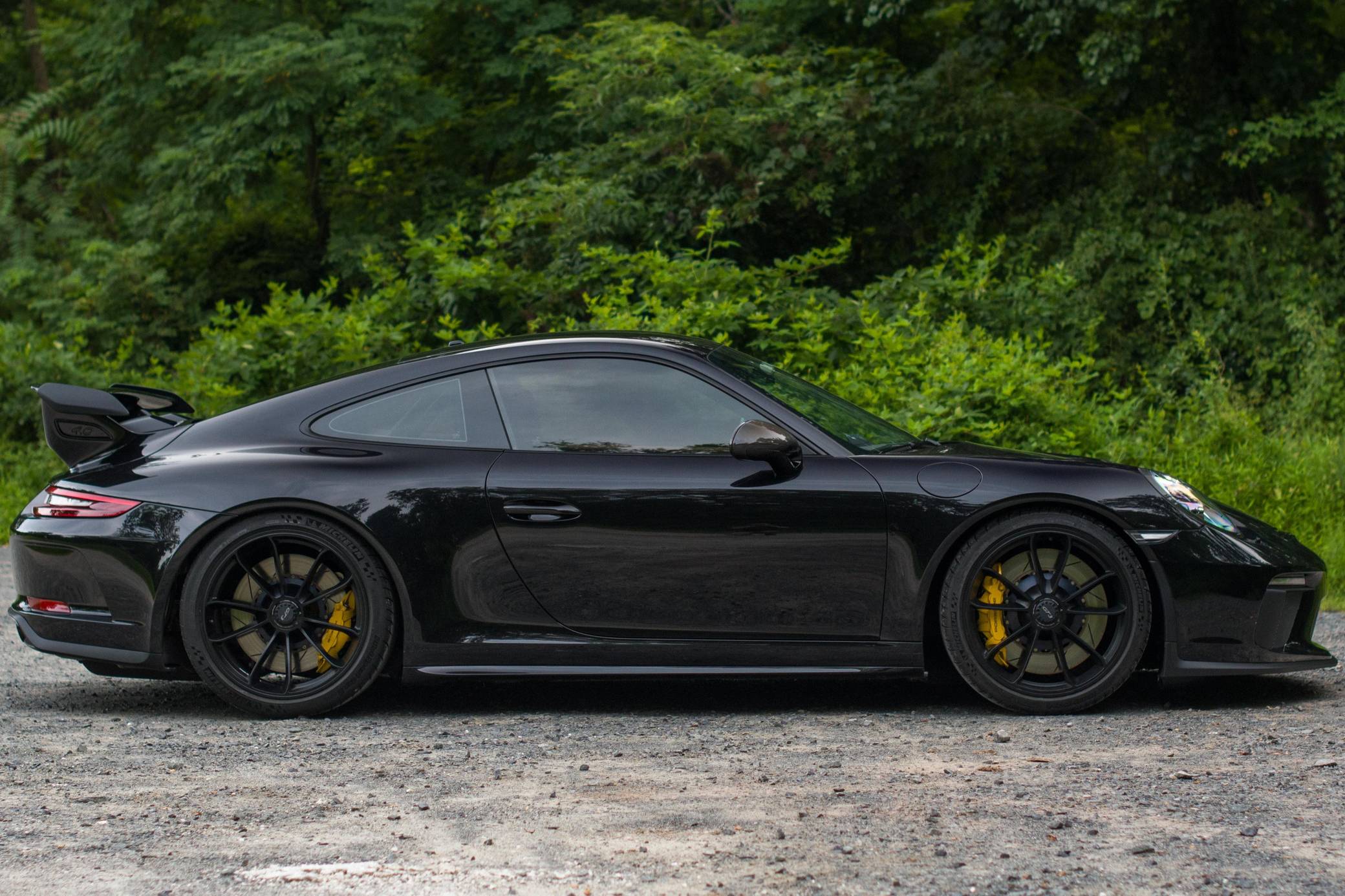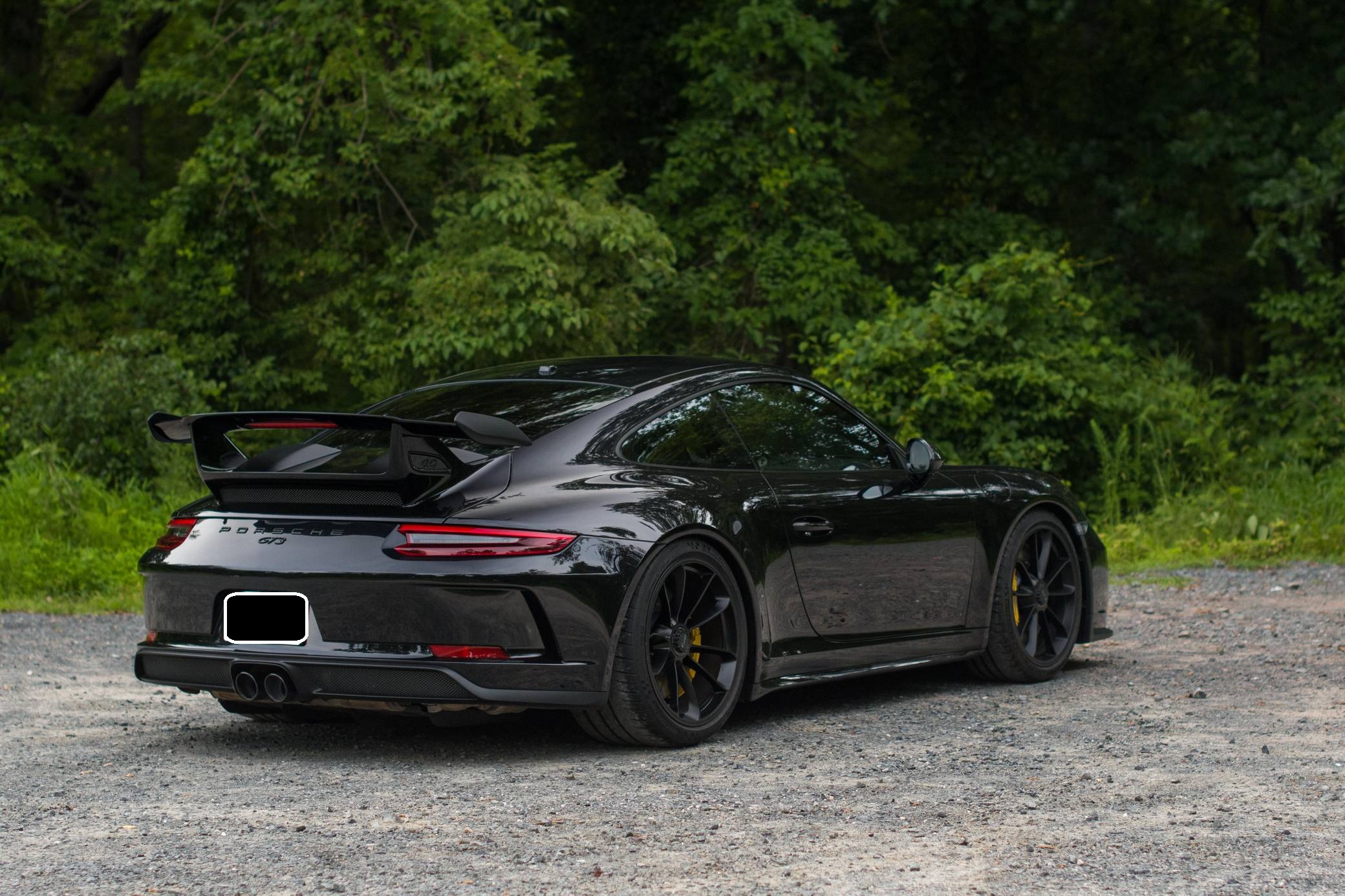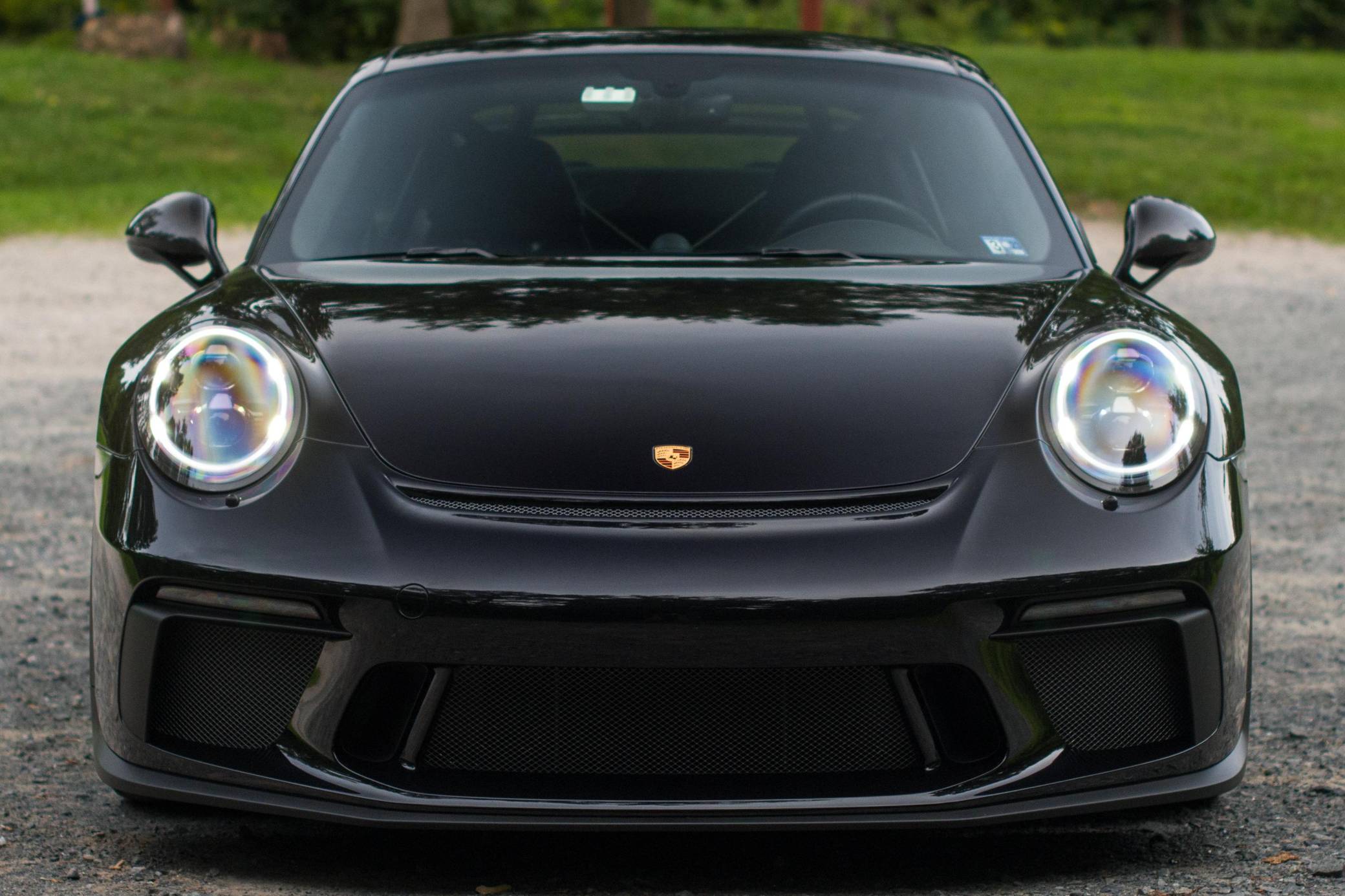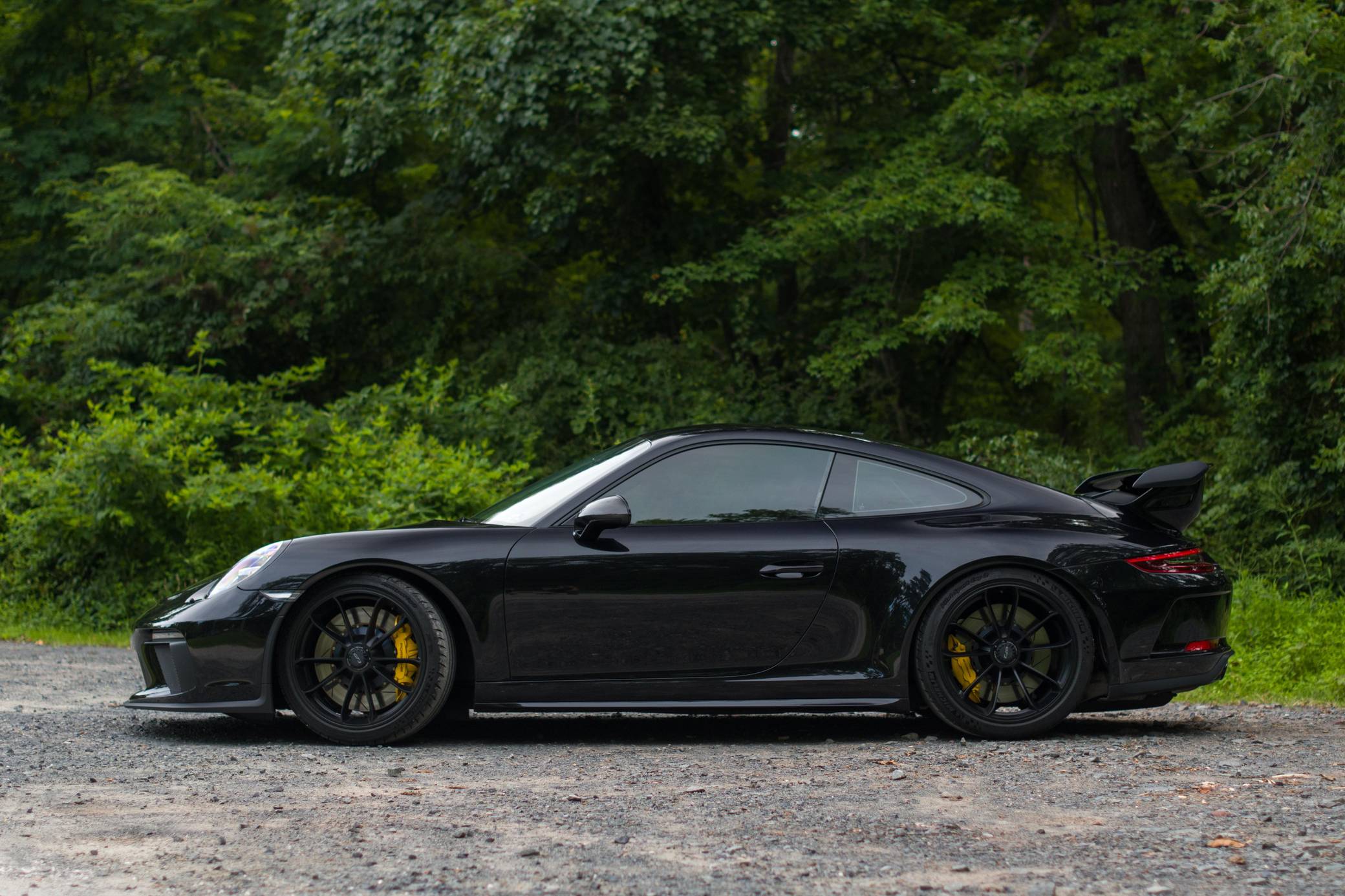2018 Porsche 911 GT3, finished in Jet Black Metallic with a black interior. This GT3 is equipped with the desirable 6-speed manual transmission, and its odometer displays about 9,900 miles. According to the build sheet provided in the gallery, factory equipment includes the Sport Chrono, Leather/Alcantara Interior, Carbon Fiber Interior, and Light Design packages, a front axle lift system, and a Bose surround sound system. Modifications reported by the seller include STEK Automotive paint protection film, GiroDisc brake rotors and Hawk Performance brake pads, a Competition Motorsport half cage, and a SCHROTH Safety Products racing harnesses. More details about the aftermarket parts installed on this car are provided below, and the removed factory Porsche Ceramic Composite Brake (PCCB) system parts are included in the sale. The results of a pre-purchase inspection performed in July 2022 are pictured in the gallery. The 991-generation Porsche 911 featured a longer wheelbase and new transaxle, which was developed to move the engine forward, allowing for better weight distribution and cornering performance. The improved handling, increased power, and refined interior have gone on to make this generation of 911 a perennial favorite among enthusiasts. The GT3 and GT3 RS are the most track-oriented Porsches in the 911 lineup, with more downforce and a naturally-aspirated engine that spins to 9,000 RPM. Porsche released the updated "991. 2" GT3 in 2018. The new GT3 received a more powerful 4. 0-liter engine, and was once again available with a manual transmission; something that Porsche had taken away with the introduction of the 991 GT3 in 2014. Power comes from a 4. 0-liter flat-6, rated at 500 horsepower and 339 lb-ft of torque. Output is sent to the rear wheels via a 6-speed manual transmission.