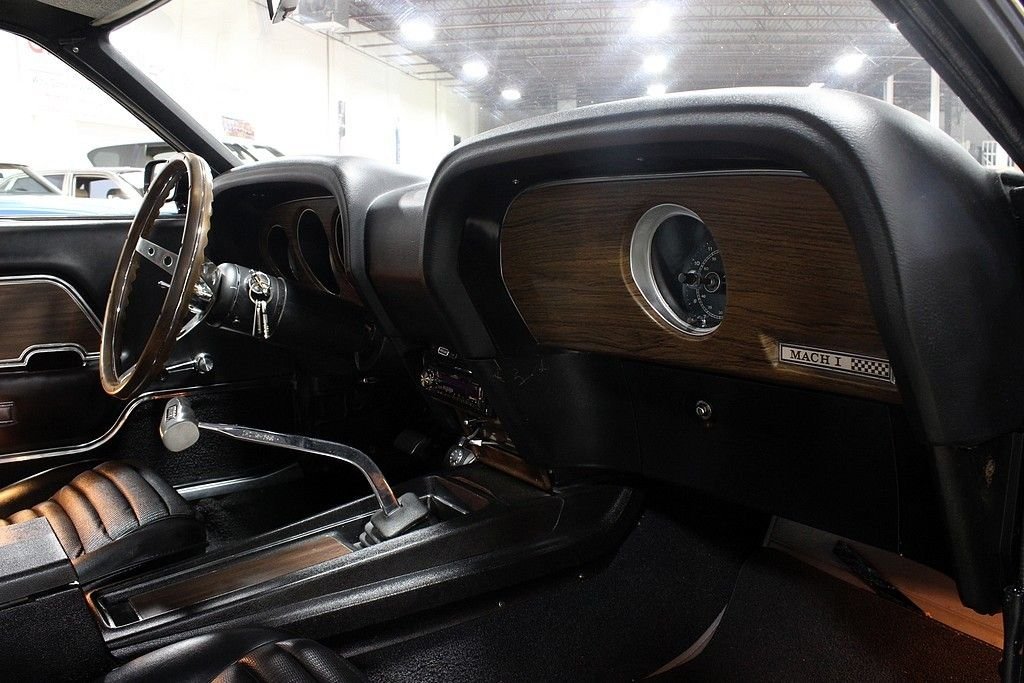 “Ford unveiled another restyle in 1969, but it was lost in the shadows of three new models: the Mach 1, Boss 302 and Boss 429. Various competition-style appearance items and the GT-handling suspension were standard for the Mach 1, with engine options including the 351-cid small-block, 390 big-block or 428 Cobra Jet. Two race-ready Boss V-8s, the 302-cid small block and 429-cid big block were predictably the hearts of other two hot-to-trot pony cars. The Boss 302 produced 290 horsepower, and its 429 cube big brother made 375 horses. Handling was the main strength of the Boss 302, which was created to race Chevrolet's Z/28 Camaro on SCCA Trans-Am road courses.” This sharp looking ride offers a great deal of originality but with a few upgrades to ensure this is not only good looking, but fun to drive. Reading off the Marti Report which is provided in this sale we find out that this was originally a Bright Gold Metallic model which has since had a more desirable paint scheme added, came with an automatic transmission which has been replaced with a new 5-speed manual transmission to add to the enjoyment of the car and otherwise was a 351 Windsor motor which still resides underneath the hood. From the factory it also had power front disc brakes, came with the power steering and finished being built in September of 1969. This example was a barn find that was left in good condition over the years but brought back to life and fully restored about four years ago. Of the many things completed to get it to its excellent condition the bigger items replaced was the entire wiring harness, leaf springs, clutch fan and kit, flywheel bellhousing was replaced, new mechanical lifters, roller rockers installed, competition camshaft, radiator and fan, control arms, a set of LED lights and 650 Holley carburetor. Many of the receipts were kept by the owner and will be included in the sale along with the official Marti Report.