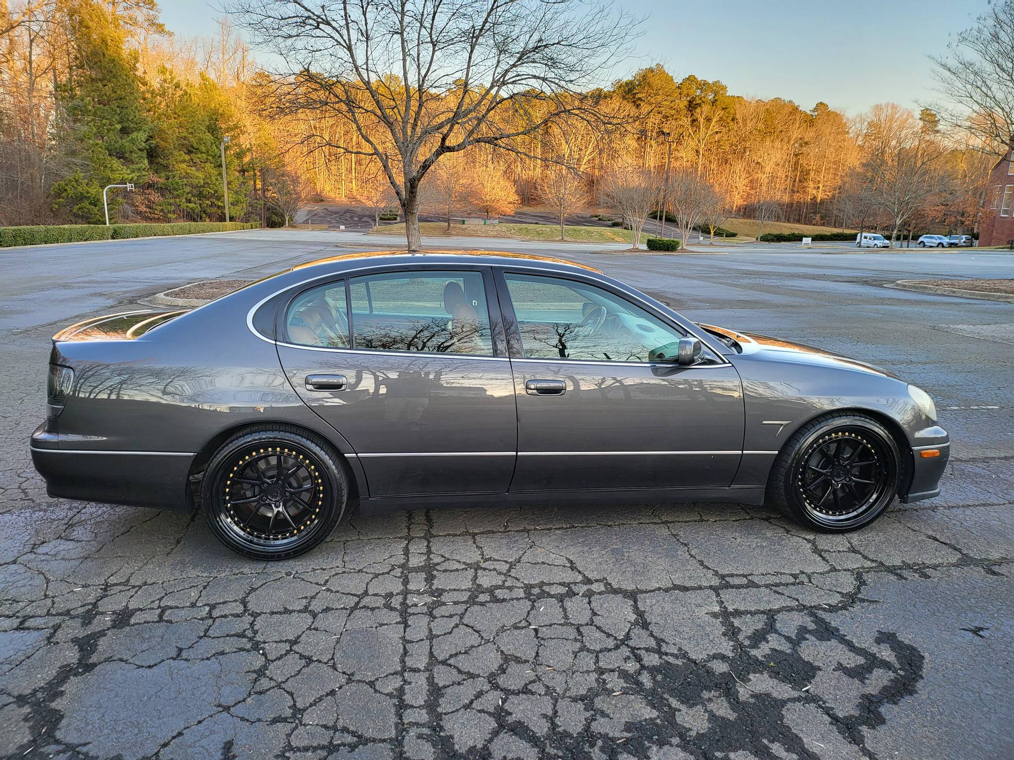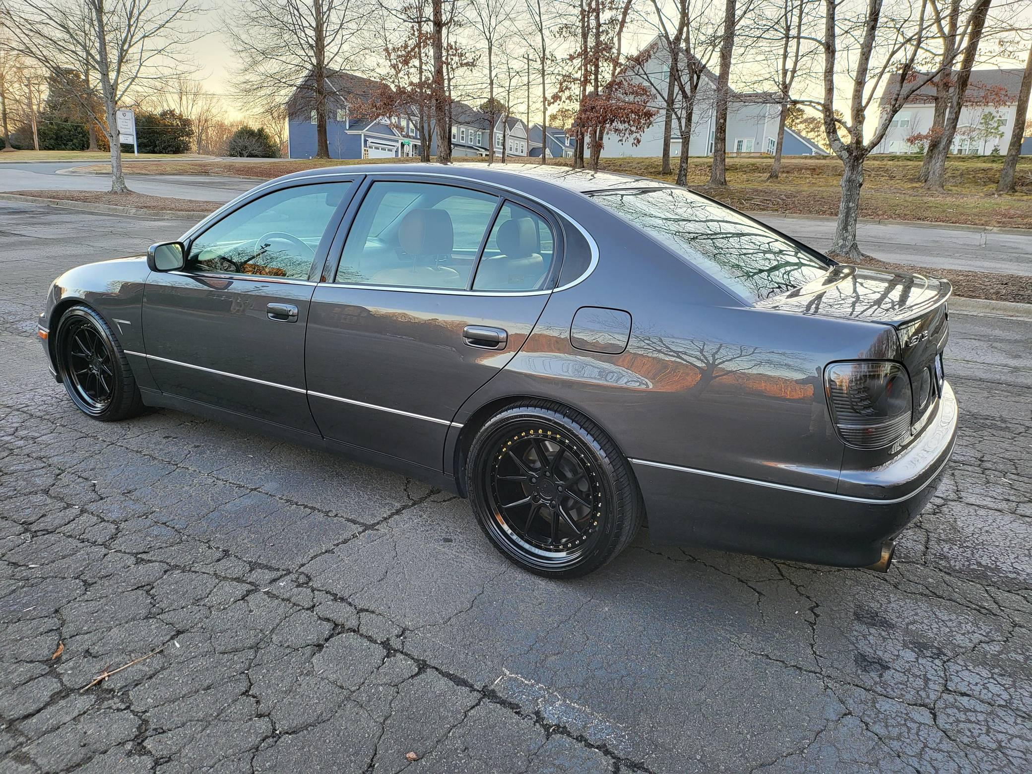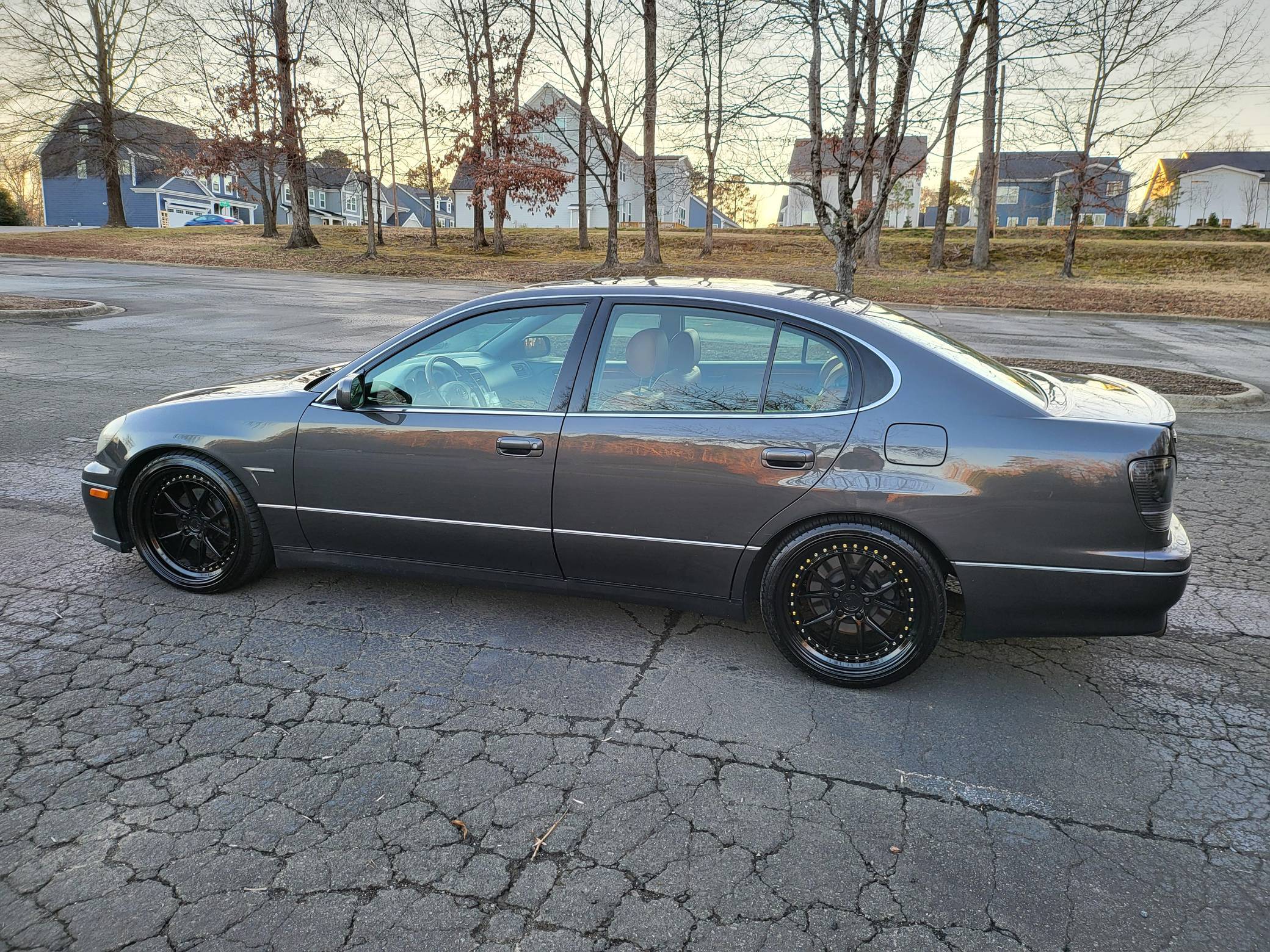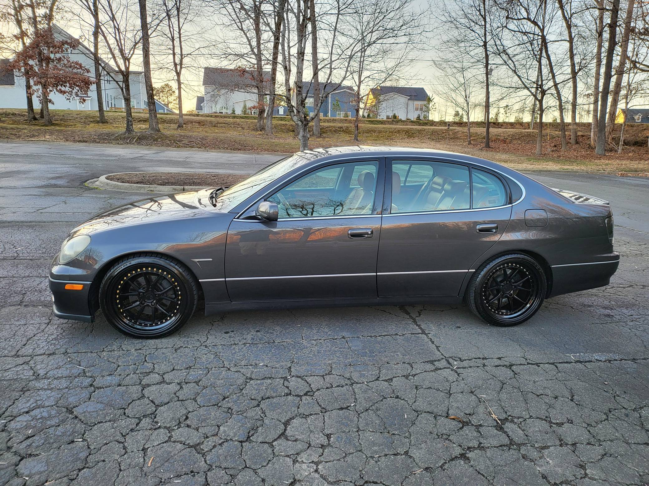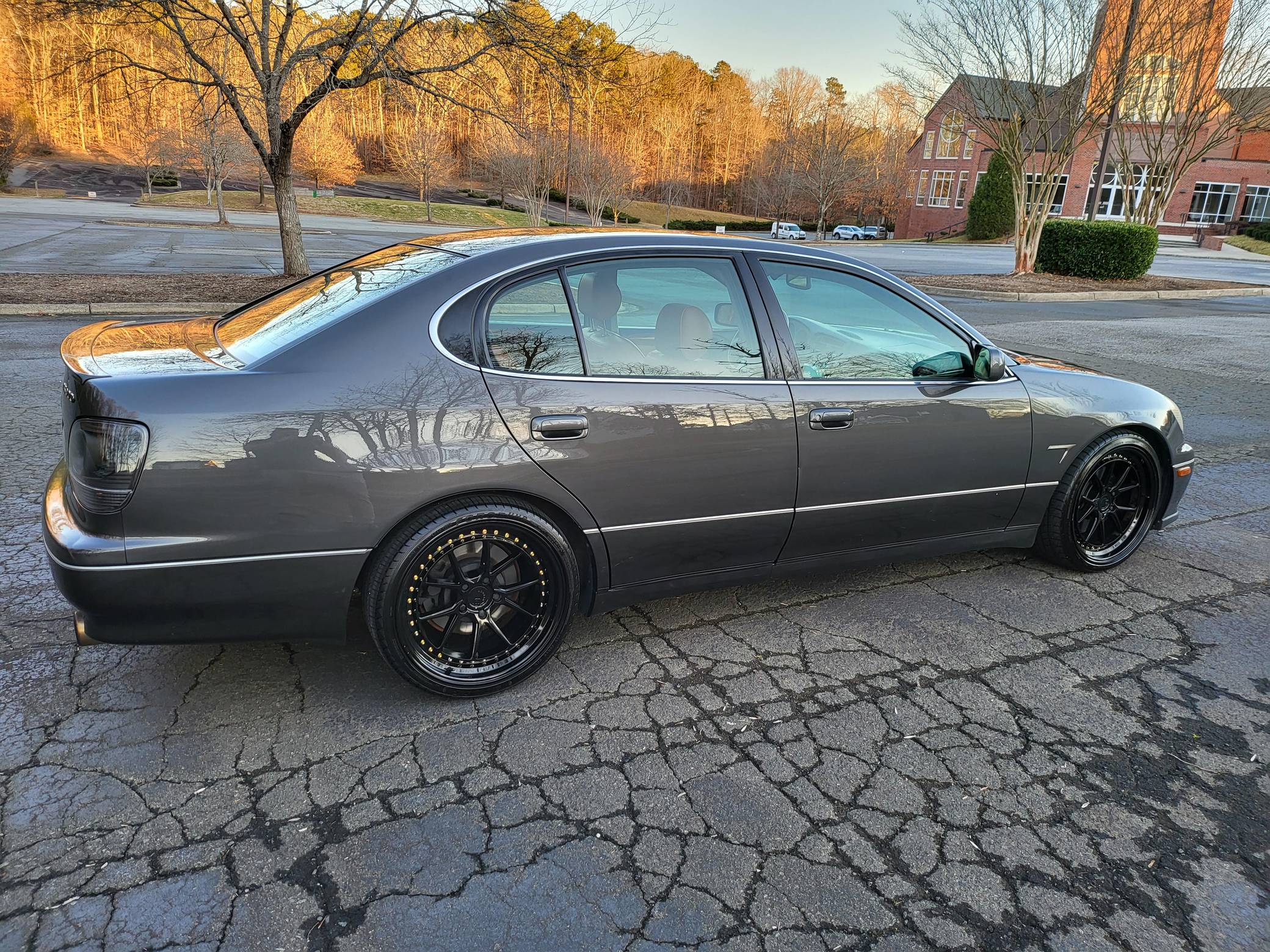 2003 Lexus GS 300, finished in Graphite Grey Pearl with a Saddle Brown interior. Factory equipment on this Lexus includes the Sport Design Package, automatic climate control, a power sunroof, leather upholstery, HID headlights, heated front seats, and more. Modifications to this GS 300 are extensive, and the full list is detailed below. include a Toyota 5-speed manual "R154" transmission, 19-inch Aodhan DS08 wheels, ACT heavy-duty clutch, TEIN coil-overs, a 62mm PTE 6266 turbo, and a Powerhouse Racing street exhaust. The Lexus GS was a rear-wheel-drive mid-size luxury sedan that competed against the Mercedes-Benz E-Class and BMW 5 Series. The second-generation Lexus GS was introduced for the 1998 model year and facelifted in 2001. The GS was offered as the 6-cylinder GS300 and the V8 GS430. Power comes from a swapped-in 3. 0-liter "2JZ-GTE" inline-6 that the seller sourced from a JDM Toyota Aristo (GS series). A dyno graph included in the photo gallery shows that this GS 300 makes about 470 horsepower and 460 lb-ft of torque at the wheels. Power is sent to the rear wheels through an R154 5-speed manual transmission.