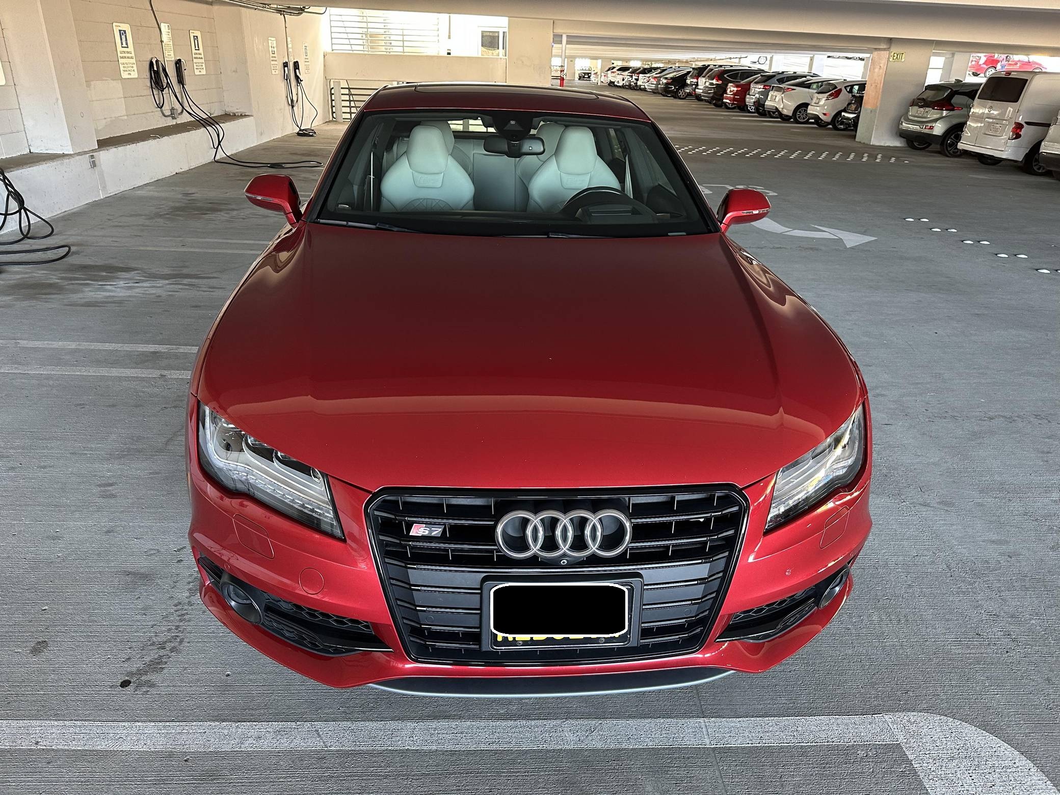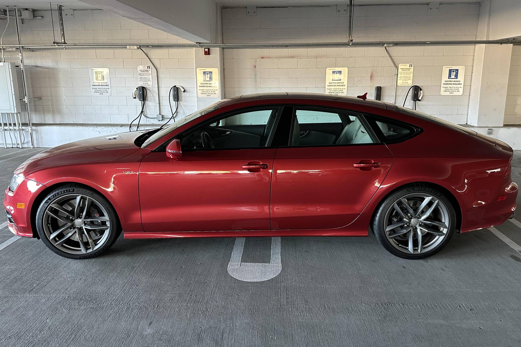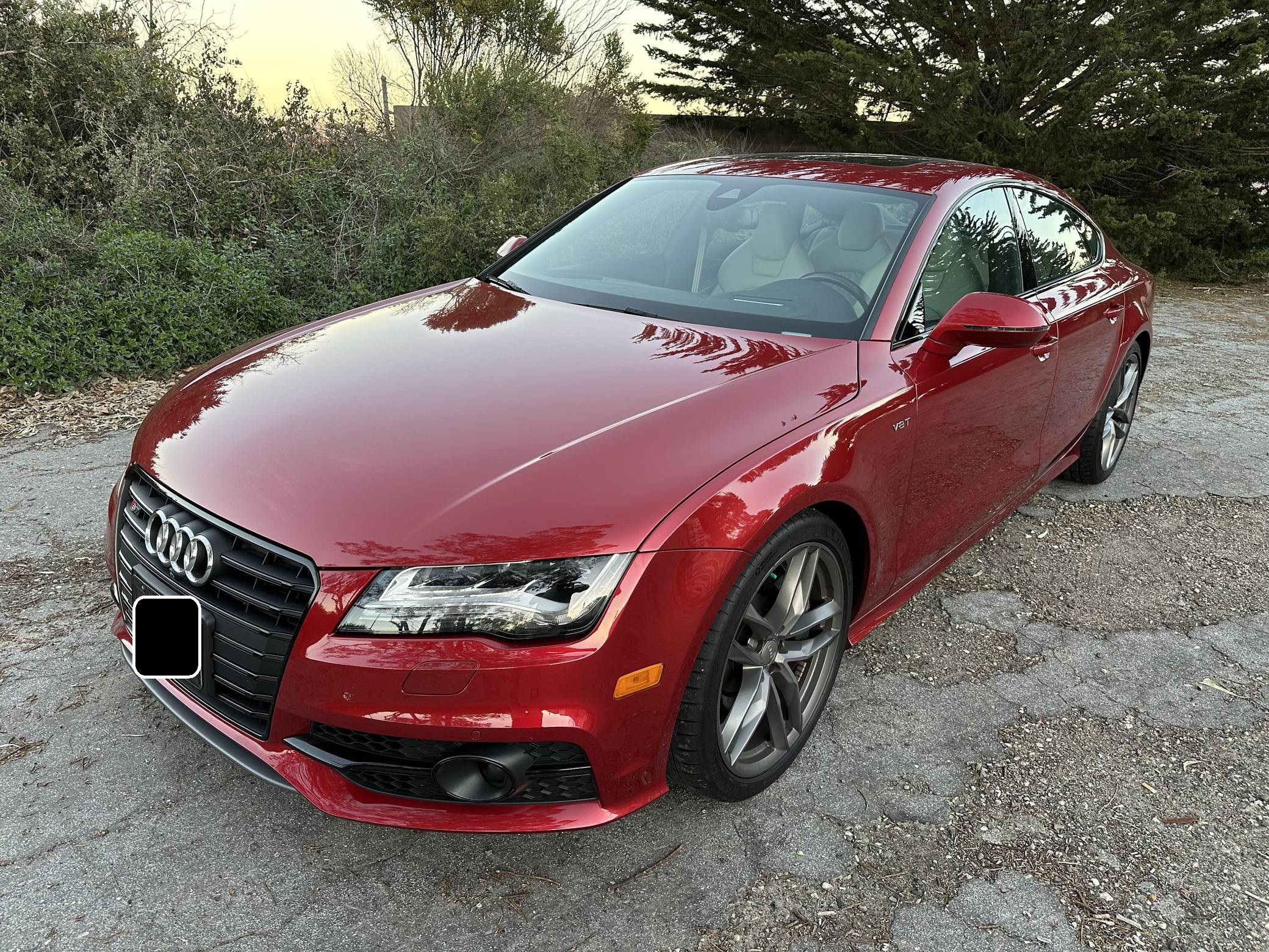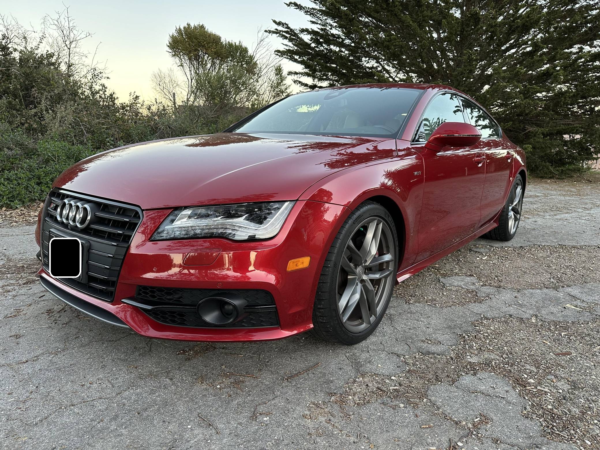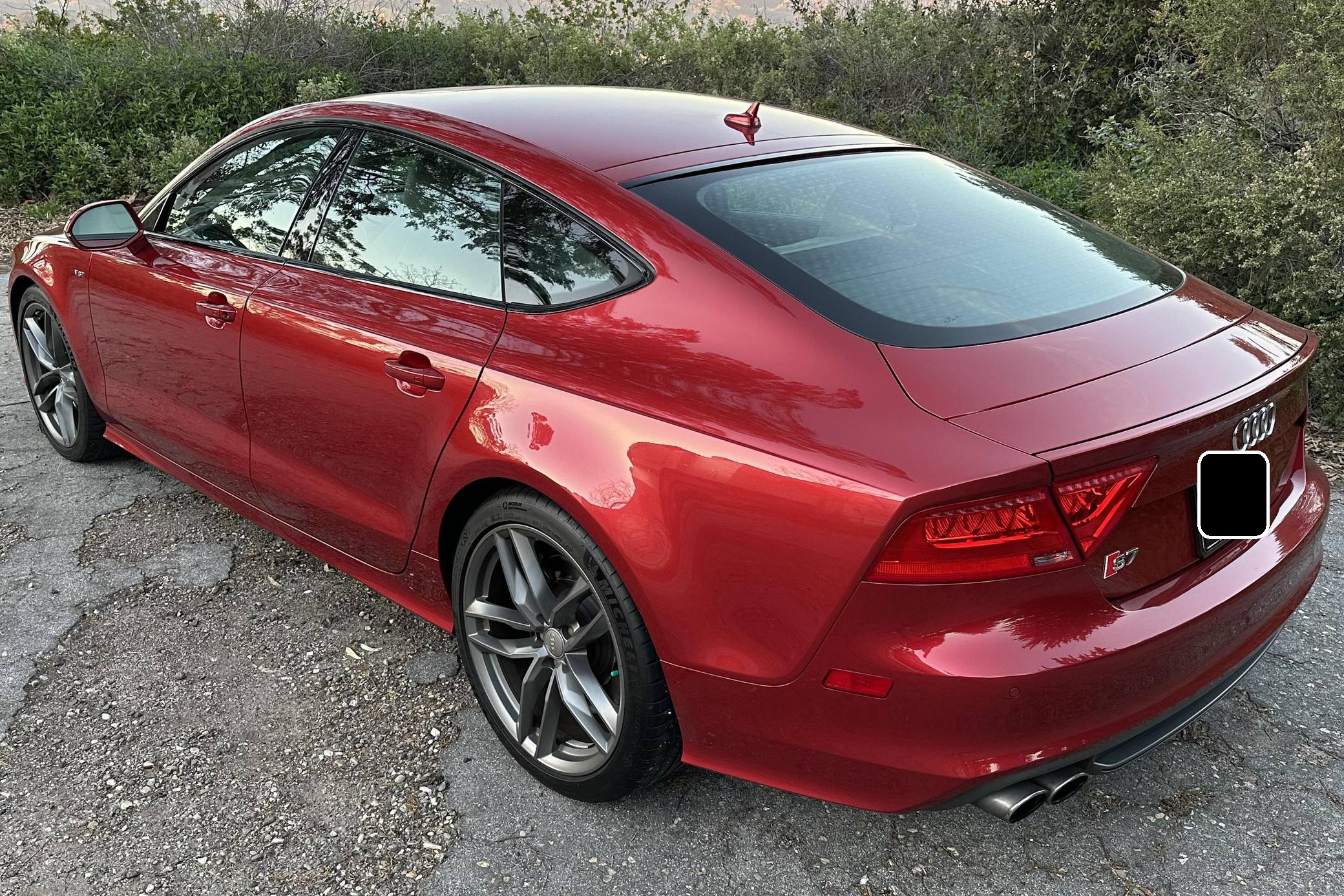 THIS. . . is a 2015 Audi S7, finished in Garnet Red Pearl Effect with a black and Lunar Silver interior. This Audi's odometer currently displays about 33,900 miles. The seller reports no modifications. Audi launched the first-generation A7 for the 2012 model year as its style icon, and it expanded the range with the V8-powered S7 for 2013. Both were related to the A6 under the sheet metal, but they stood out with a gorgeous design and surprising practicality thanks to a large hatch. Power comes from a 4. 0-liter twin-turbocharged V8 engine, rated at 420 horsepower and 406 lb-ft of torque. Output is sent to all four wheels via a 7-speed automatic transmission and Audi's Quattro all-wheel drive system.