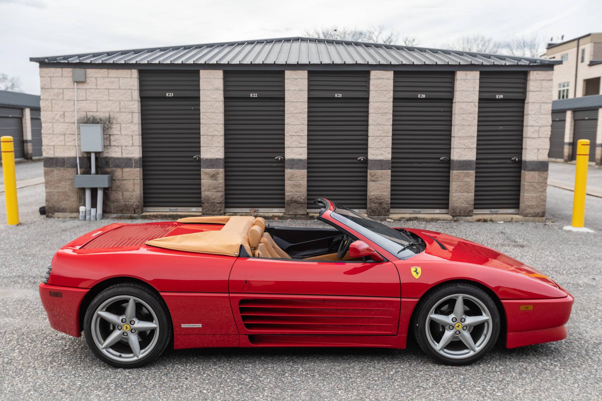 THIS. . . is a 1994 Ferrari 348 Spider, finished in Rosso Corsa with a black soft top and a beige interior. Factory equipment includes pop-up headlights, fog lights, Connolly leather upholstery, power-operated windows, mirrors, and locks, among others listed below. Modifications reported by the seller include 18-inch wheels from a Ferrari 360, a Larini Systems exhaust system, and Scuderia fender shields. The Ferrari 348 was built between 1989 and 1995 as the successor to Ferrari's long-running rear-mid-engine line. Major updates over the 328 that preceded it included updated exterior styling, a longitudinally-mounted engine design, and a more powerful "Tipo F119" V8. Power comes from a 3. 4-liter V8 engine, rated at 312 horsepower and 228 lb-ft of torque. Mid-mounted, it spins the rear wheels via a gated 5-speed manual transmission.