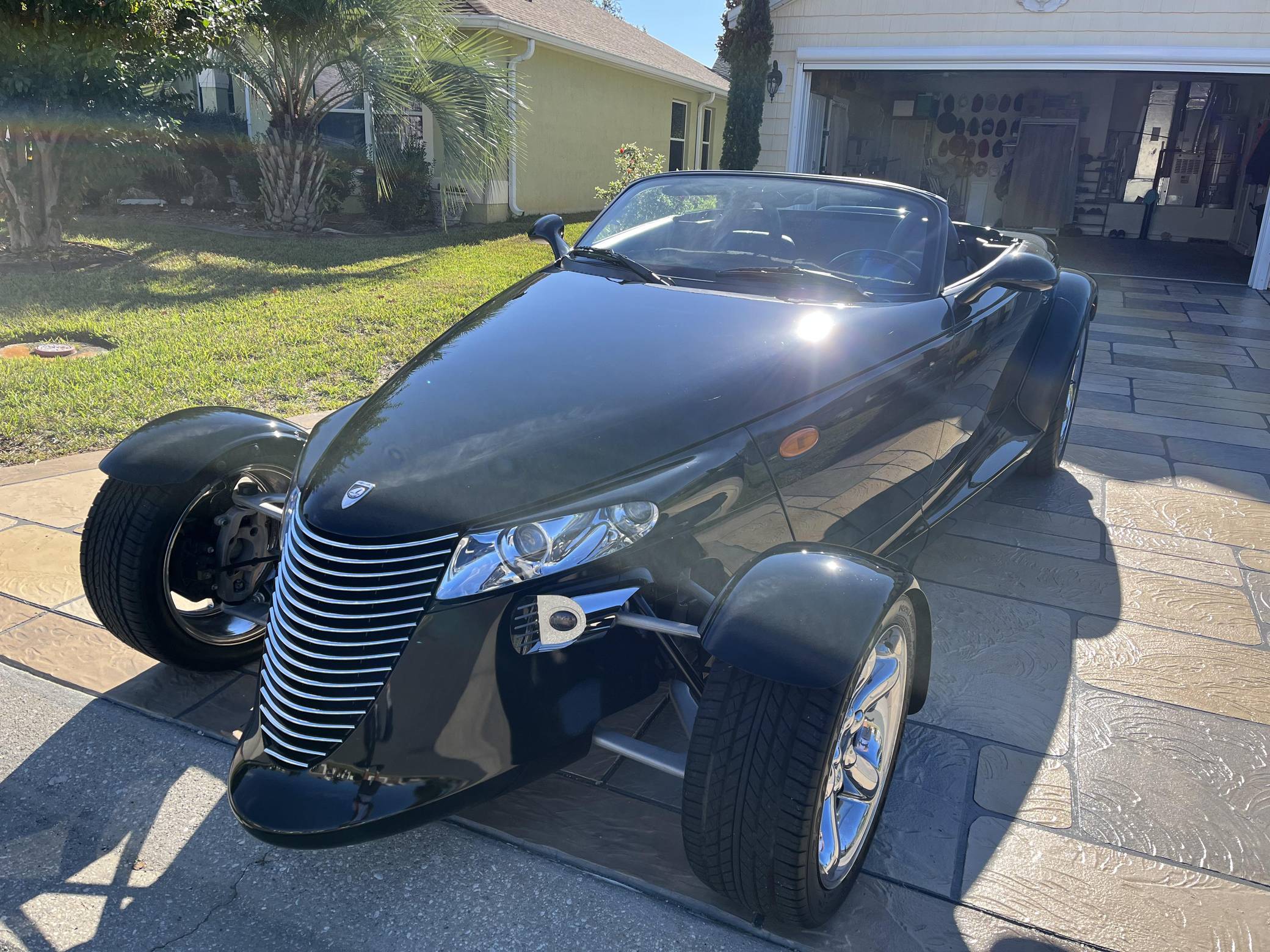 THIS. . . is a 2000 Plymouth Prowler, finished in Prowler Black with a gray interior. Factory equipment includes 17-inch front, and 20-inch rear wheels, a removable soft top, power mirrors, leather upholstery, an Autostick shifter, air conditioning, and cruise control. Modifications reported by the seller are limited to a front bumper delete and a Pioneer head unit. Launched unexpectedly for the 1997 model year, the Plymouth Prowler channeled the spirit of 1930s hot rods with a head-turning design that wouldn't look out of place in a Hot Wheels catalog. It was introduced as a Plymouth and given to Chrysler after the Plymouth brand was discontinued. 11,702 units were assembled mainly by hand at the Conner Avenue plant in Detroit, including 3,170 Chrysler-badged models. Production ended in 2002 and the Prowler was not replaced. Power comes from an "EGG" 3. 5-liter V6, rated at 253 horsepower and 255 lb-ft of torque. Output is sent to the rear wheels via a 4-speed automatic transmission.