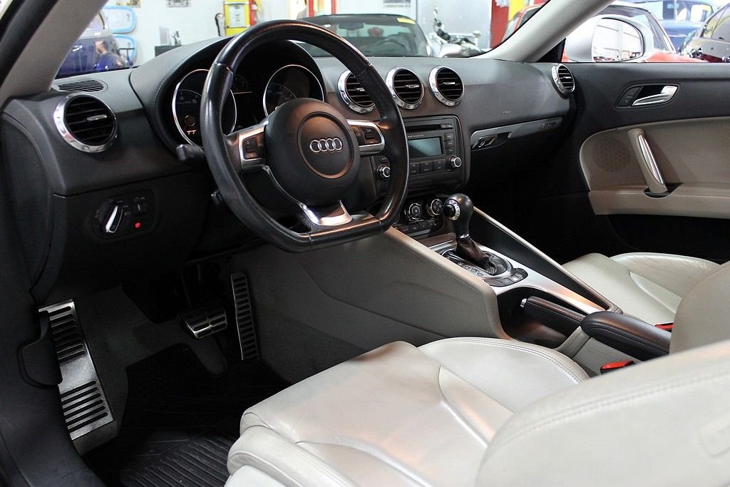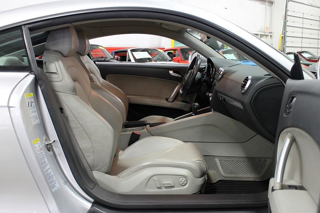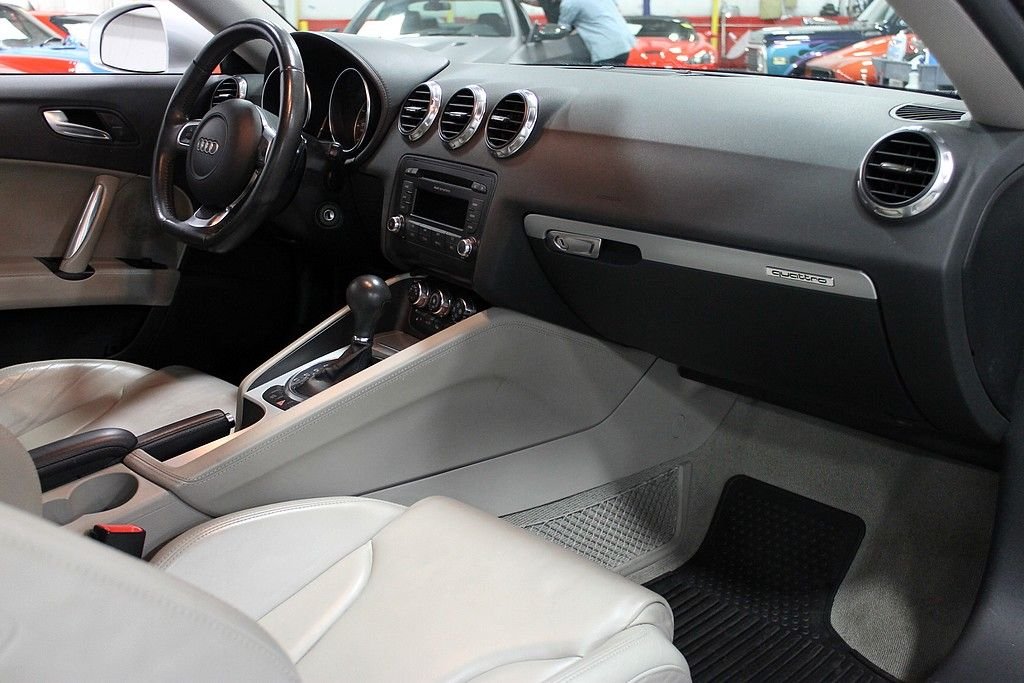 The Audi TT line went major changes in its 2nd generation remake. It went from inexpensive toy to road carving thrill ride while maintaining the signature style. The most radical change is that it uses a combination of a unit body and aluminum space-frame construction with 69% of the structure being aluminum. The weight is better distributed for more control at high speeds and a retractable spoiler is integrated in to the trunklid that raises at 75 mph (also can be controlled by a switch on the dash). All TT's have strut-front and multi-link rear suspensions giving this car a very comfortable, quick, and agile driver. This TT Coupe is a Quattro version with 4-wheel drive. It has the original 3.2 V6 engine paired with the 6-speed S tronic transmission. This is essentially an automatic, but can be shifted by the driver when desired. This car also features a 6-disc CD changer, alloy wheels, power & heated seats, cruise control, tilt steering wheel, traction control, climate control, tire pressure monitor, and leather seats. This car has never been in an accident and is in excellent condition.