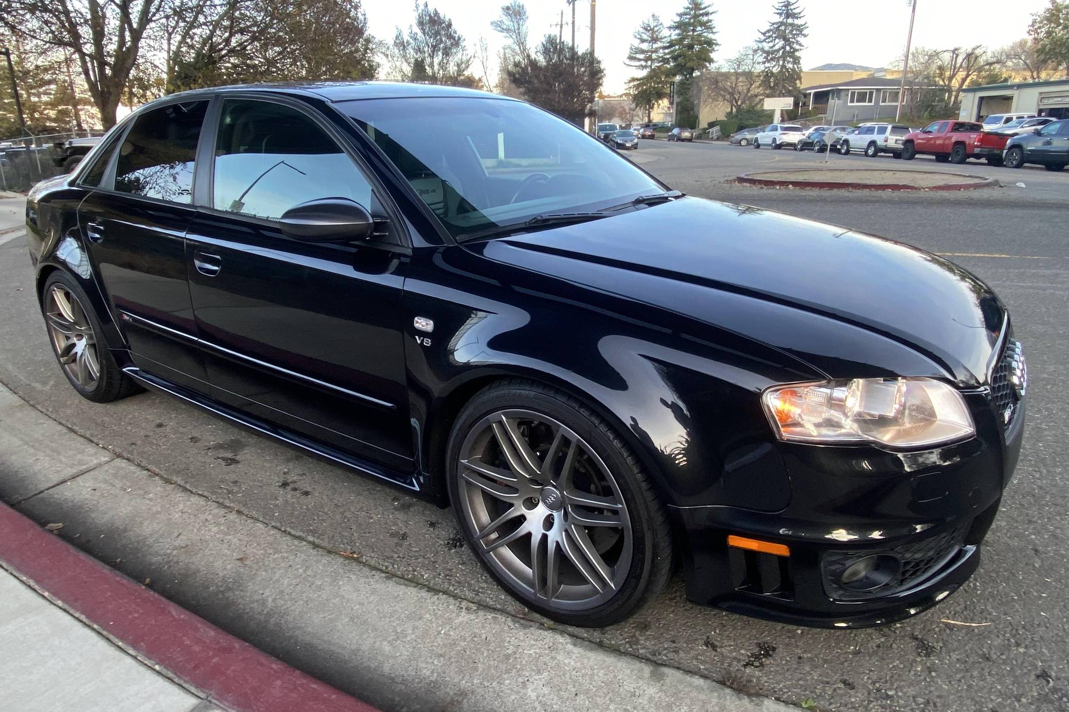 THIS. . . is a 2008 Audi RS4, finished in Phantom Black Pearl, with a black interior. Service documentation for this RS4 is extensive, and numerous records are pictured in the gallery. Highlight services include installation of Bilstein PSS9 coilovers, intake manifold gasket replacement, intake position sensor replacement, replacement of both valve cover gaskets, an intake valve carbon cleaning, replacement of both motor mounts, and more in October 2020 at 104,639 miles. The clutch kit was also replaced in February 2020 at 101,251 miles. According to the build sheet provided in the gallery, factory equipment includes Quattro all-wheel-drive, heated Recaro sport seats, a 10-speaker Bose sound system, 19-inch alloy wheels, rear parking sensors, rear window shades, and more. The seller reports modifying this RS4 with a set of Bilstein PSS9 coilovers, a double-din touchscreen Alpine radio, window tint, and some Manual Gearbox Preservation Society stickers. Audi sold the "B7" generation RS4 in the United States during the 2007 and 2008 model years. It was offered as a sedan and as a convertible, and both body styles were exclusively equipped with a 6-speed manual transmission. Audi hasn't made another RS4 available in America since, largely because the next two generations were only made as station wagons. Power comes from a 4. 2-liter “FSI” V8, rated at 420 horsepower and 317 lb-ft of torque. Output is sent to all four wheels through a 6-speed manual transmission and Audi’s Quattro all-wheel-drive system.