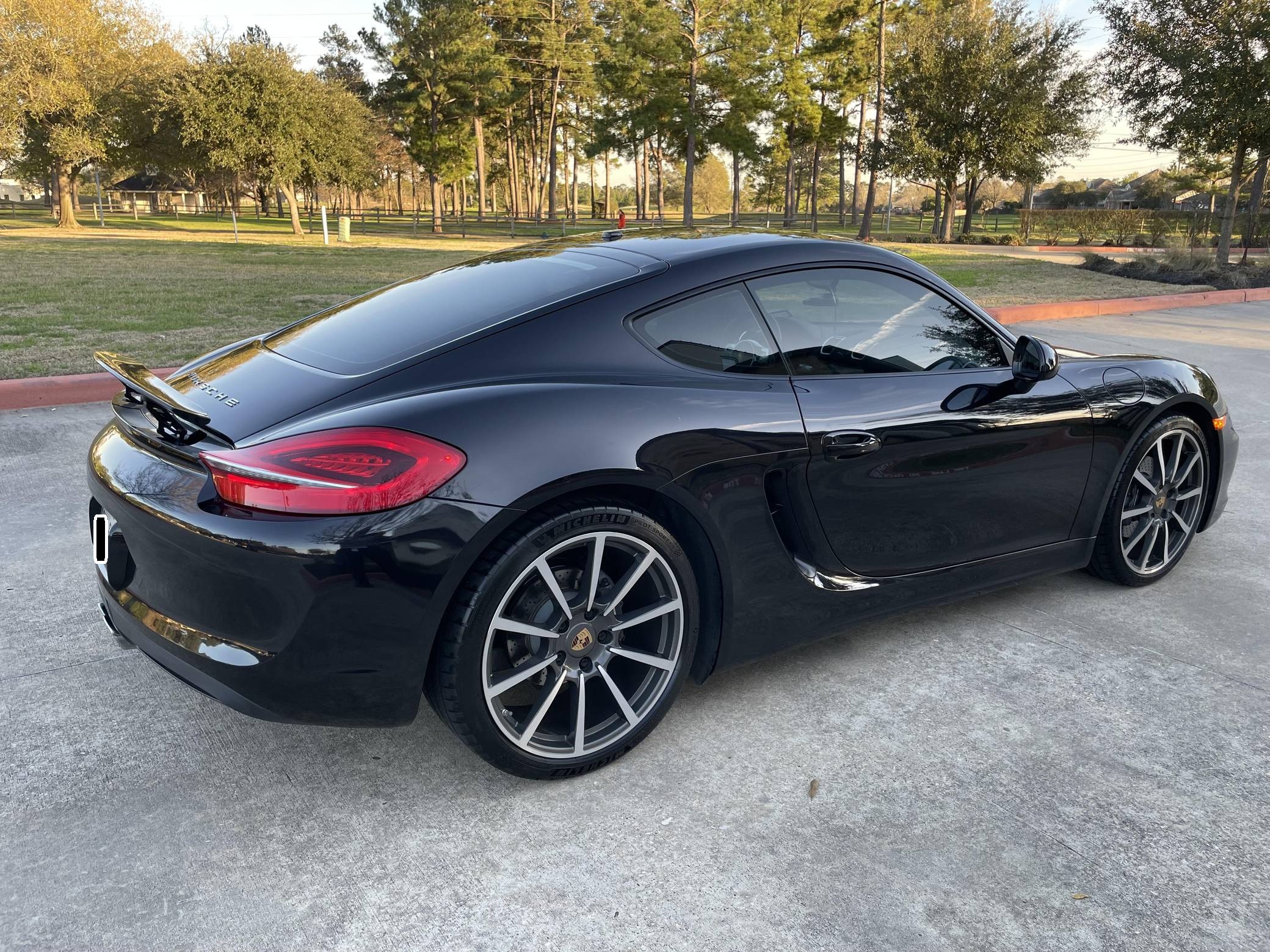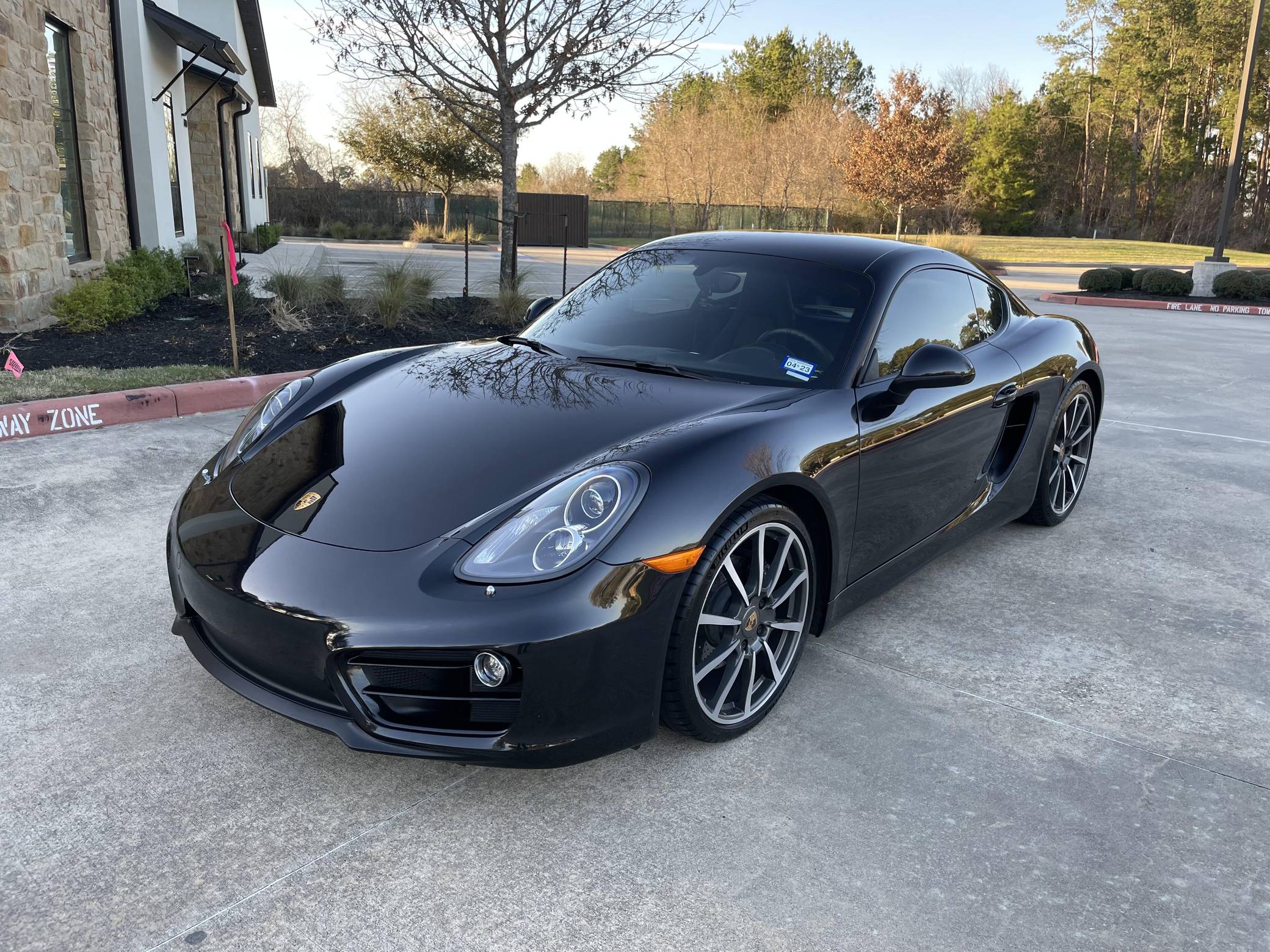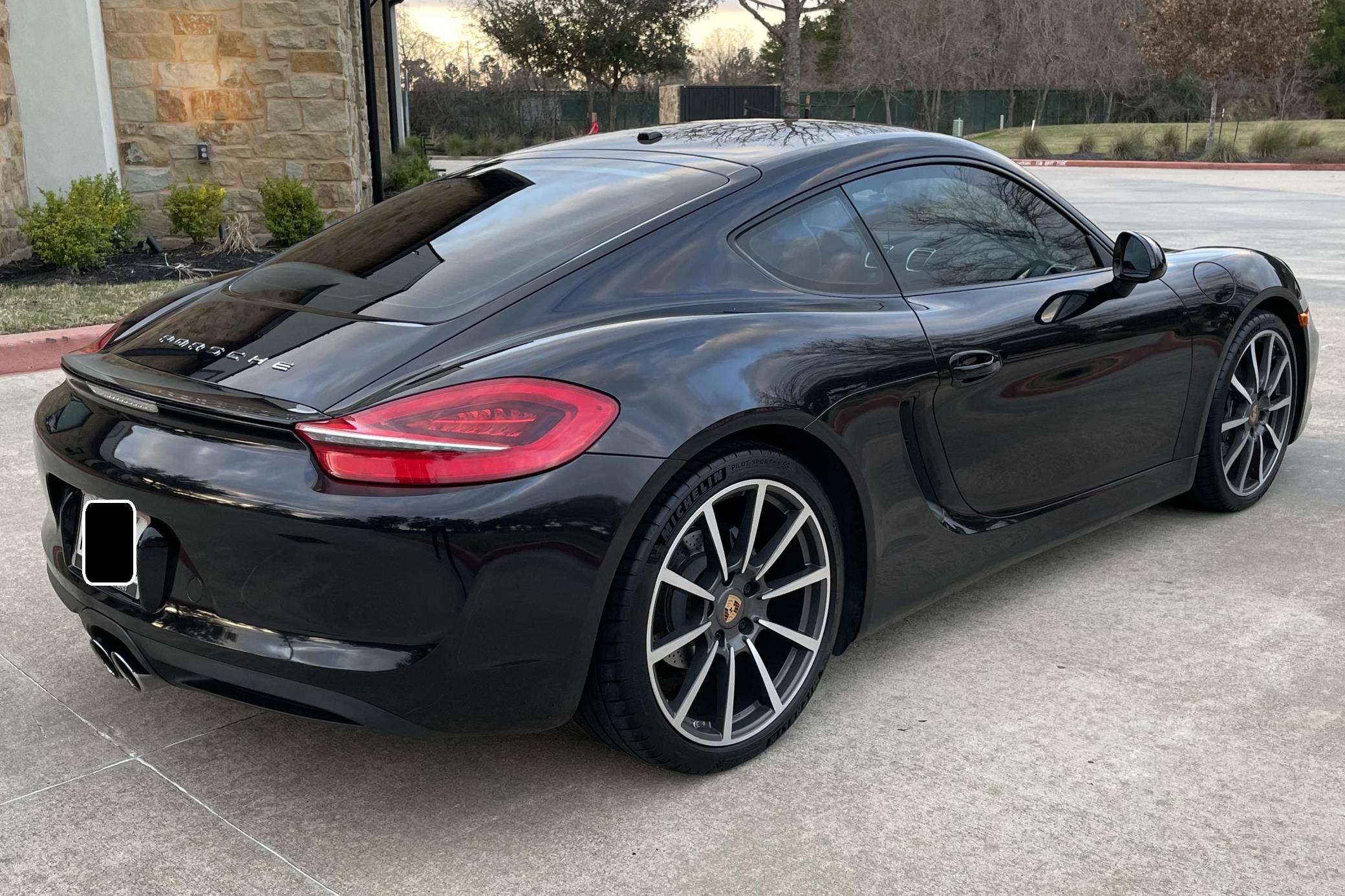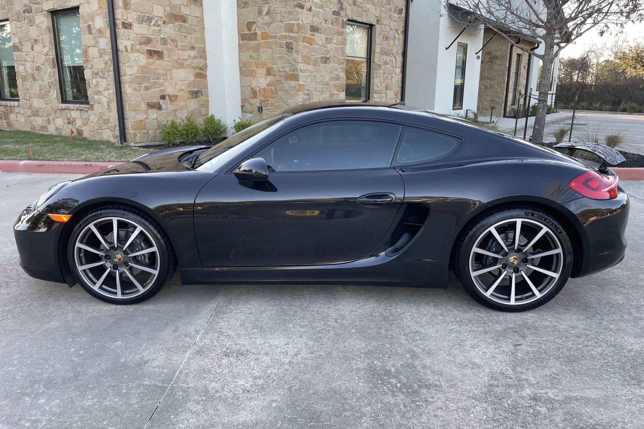 THIS… is a 2014 Porsche Cayman, finished in Basalt Black Metallic with a black interior. The odometer on this Cayman currently displays approximately 37,500 miles. According to the build sheet provided in the gallery, this Cayman carried an MSRP of $72,635 when new, including $19,085 in options. Factory equipment includes the Infotainment and Premium packages, 20-inch Carrera Classic wheels, Porsche Dynamic Light System (PDLS), sport tailpipes, leather upholstery, a SportDesign steering wheel, and Power Steering Plus. The seller reports modifications are limited to window tint and paint protection film on the mirror housings. Produced from 2012 to 2016, the second-generation "981" Cayman was the coupe alternative to the third-generation Boxster. The 981 was lauded as one of the best-handling sports cars available in its day, largely due to its mid-engine configuration. It was more rigid and lighter than the outgoing 987 Cayman, and it featured a new body, redesigned interior, a wider front track, and a longer wheelbase. Power comes from a 2. 7-liter flat-6, rated at 275 horsepower and 213 lb-ft of torque. Output is sent to the rear wheels via a 7-speed PDK automatic transmission.