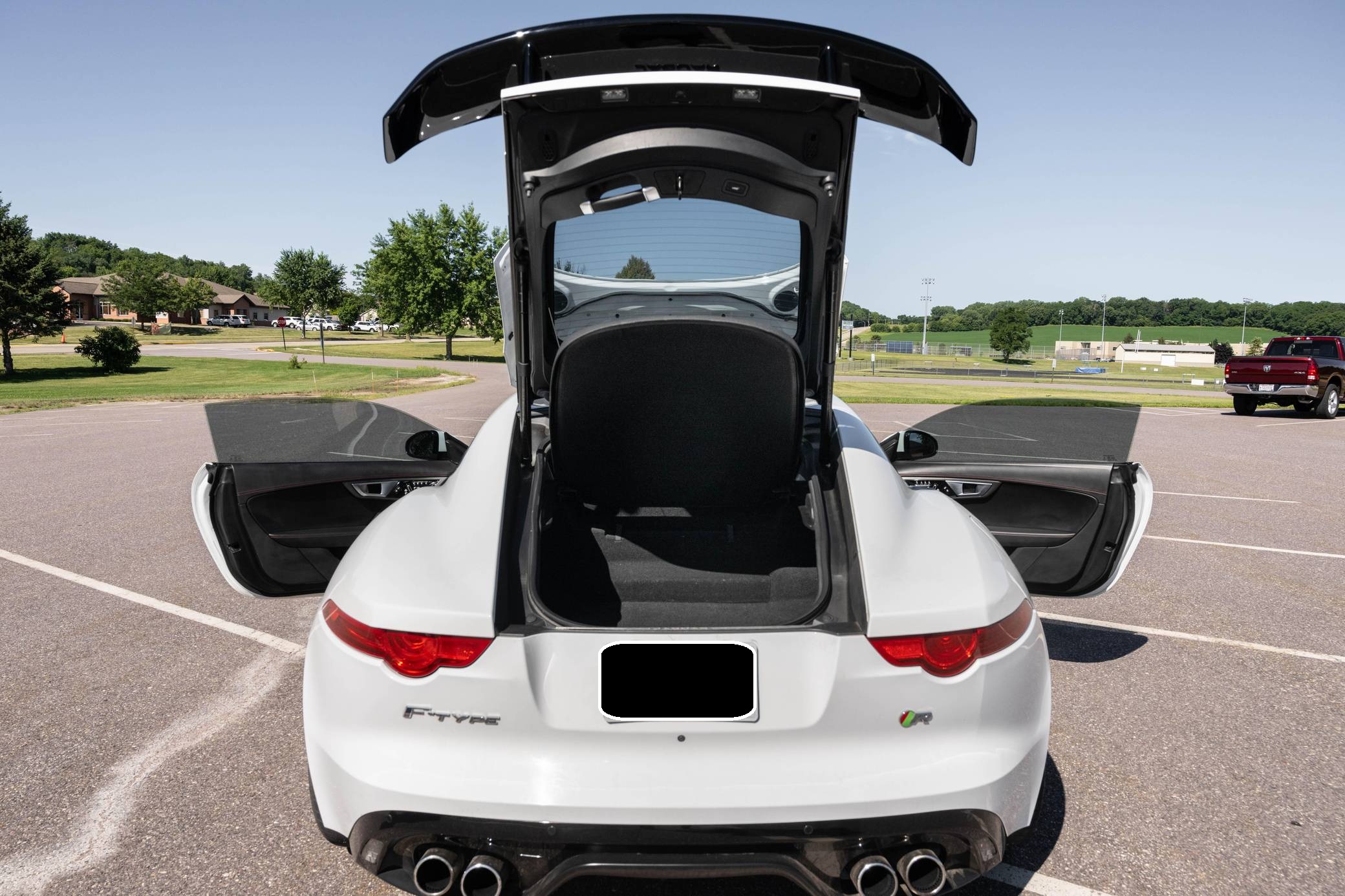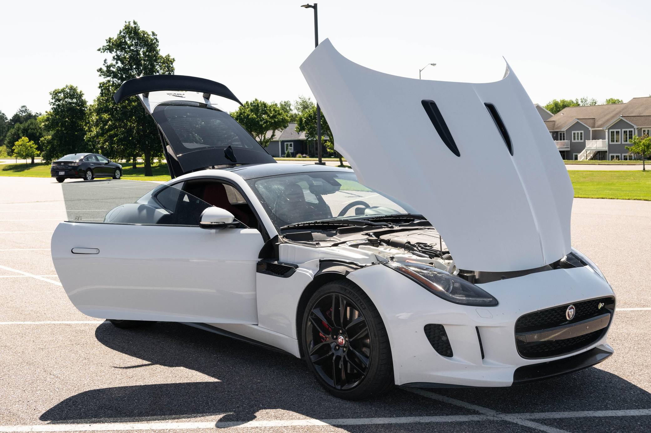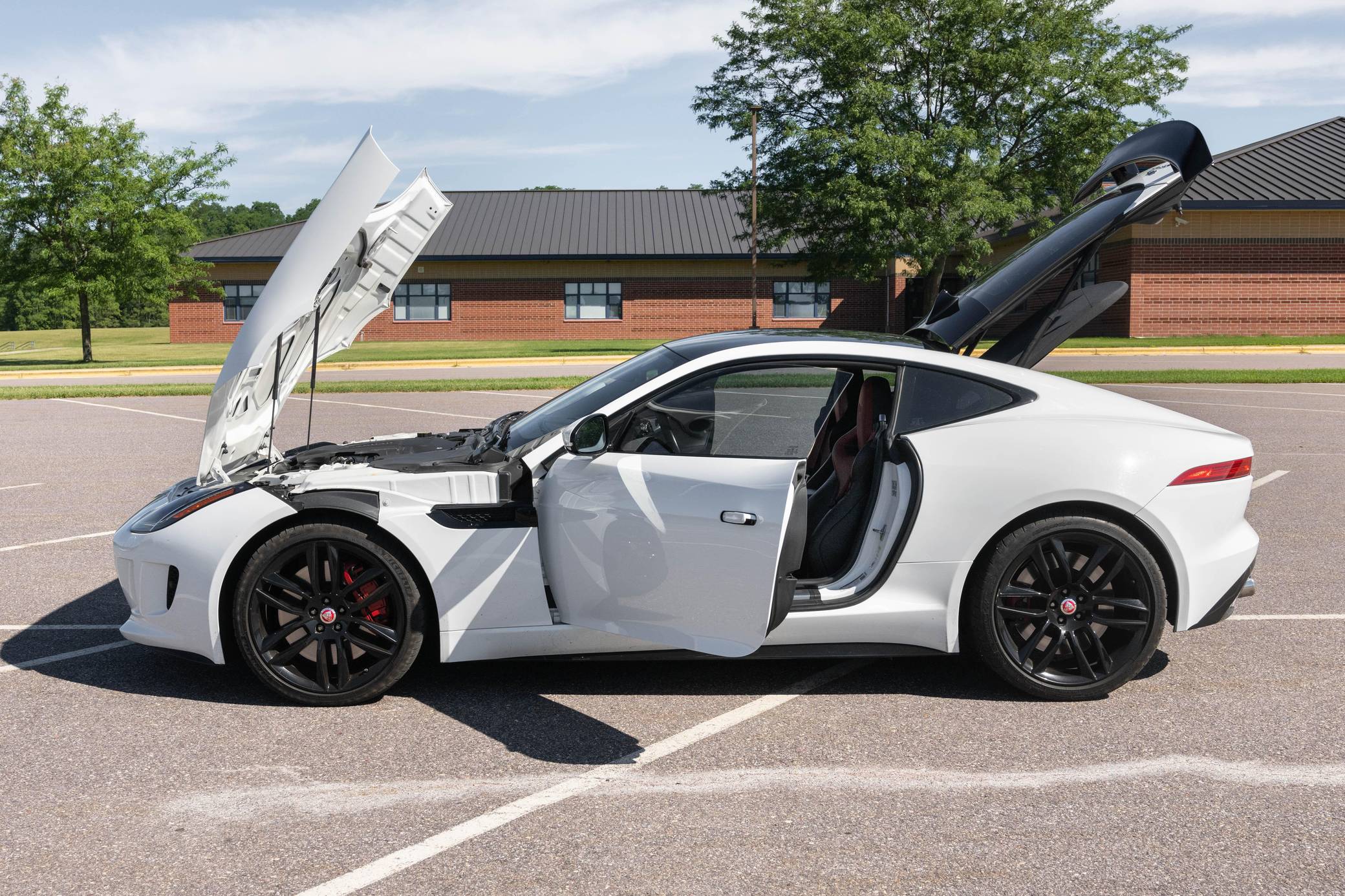 2015 Jaguar F-Type R Coupe, finished in Polaris White with a Redzone interior. The seller reports no modifications. Based on the C-X16 concept from 2011, Jaguar unveiled the hotly-anticipated F-Type for the 2014 model year. Offered as a coupe and as a convertible, the F-Type was presented as the E-Type's spiritual successor, and as an alternative to sports cars like the Porsche 911. The R model was a supercharged V8 variant of the F-Type with a top speed of 186 mph and a 0-to-60 mph time of 3. 9 seconds. It was available from 2014 until 2019. Power comes from a 5. 0-liter supercharged V8, rated at 550 horsepower and 502 lb-ft of torque. Output is sent to the rear wheels via an 8-speed automatic transmission.