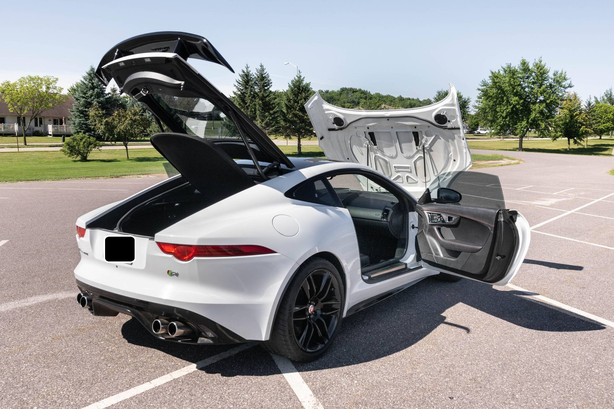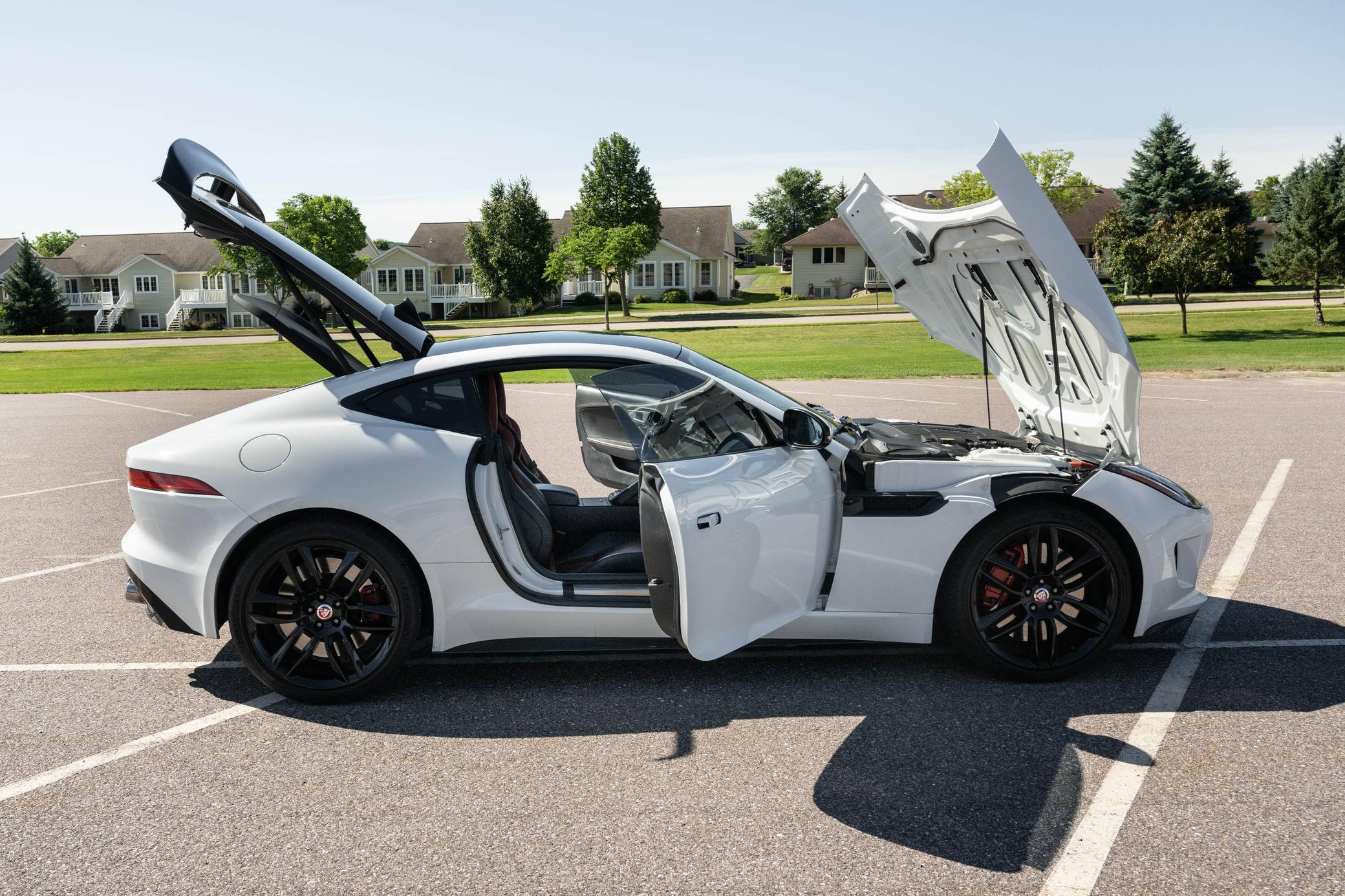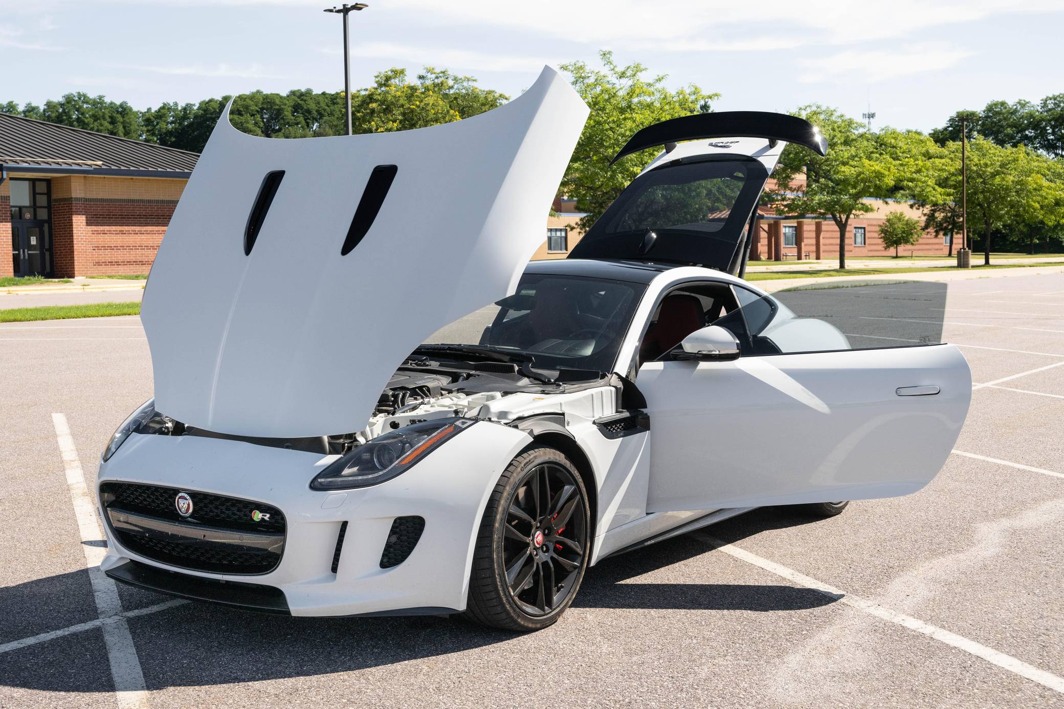 2015 Jaguar F-Type R Coupe, finished in Polaris White with a Redzone interior. The seller reports no modifications. Based on the C-X16 concept from 2011, Jaguar unveiled the hotly-anticipated F-Type for the 2014 model year. Offered as a coupe and as a convertible, the F-Type was presented as the E-Type's spiritual successor, and as an alternative to sports cars like the Porsche 911. The R model was a supercharged V8 variant of the F-Type with a top speed of 186 mph and a 0-to-60 mph time of 3. 9 seconds. It was available from 2014 until 2019. Power comes from a 5. 0-liter supercharged V8, rated at 550 horsepower and 502 lb-ft of torque. Output is sent to the rear wheels via an 8-speed automatic transmission.
