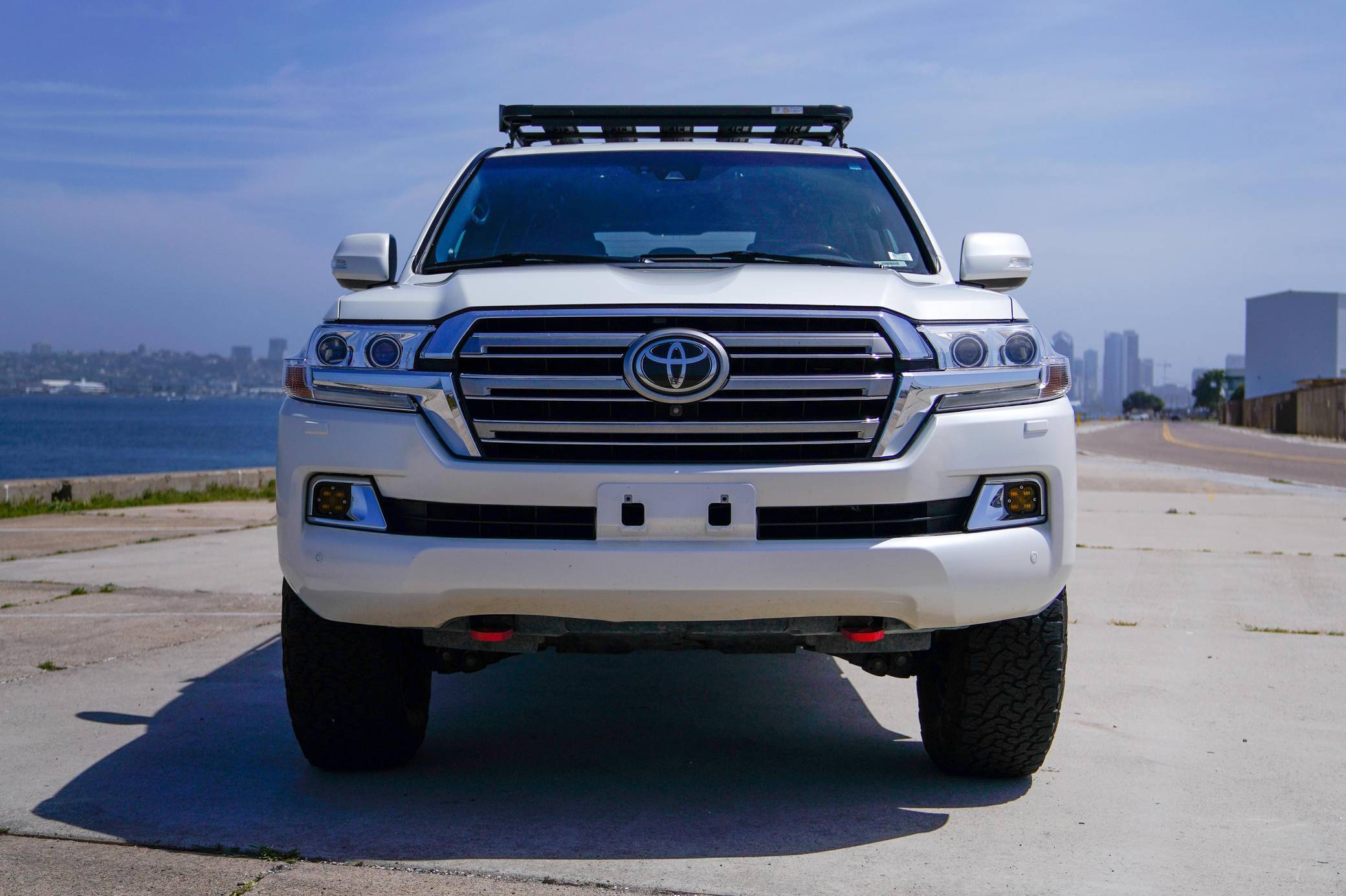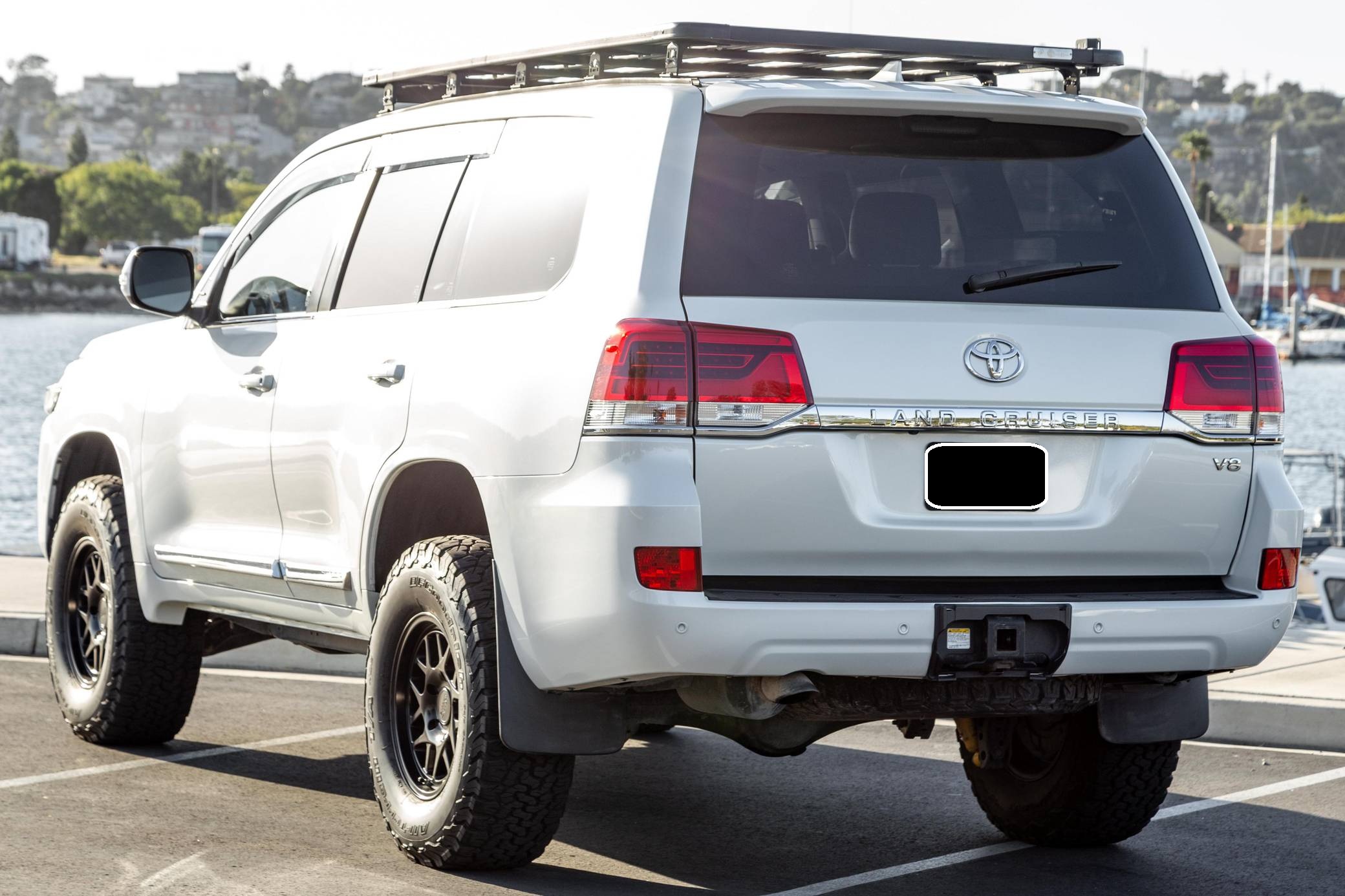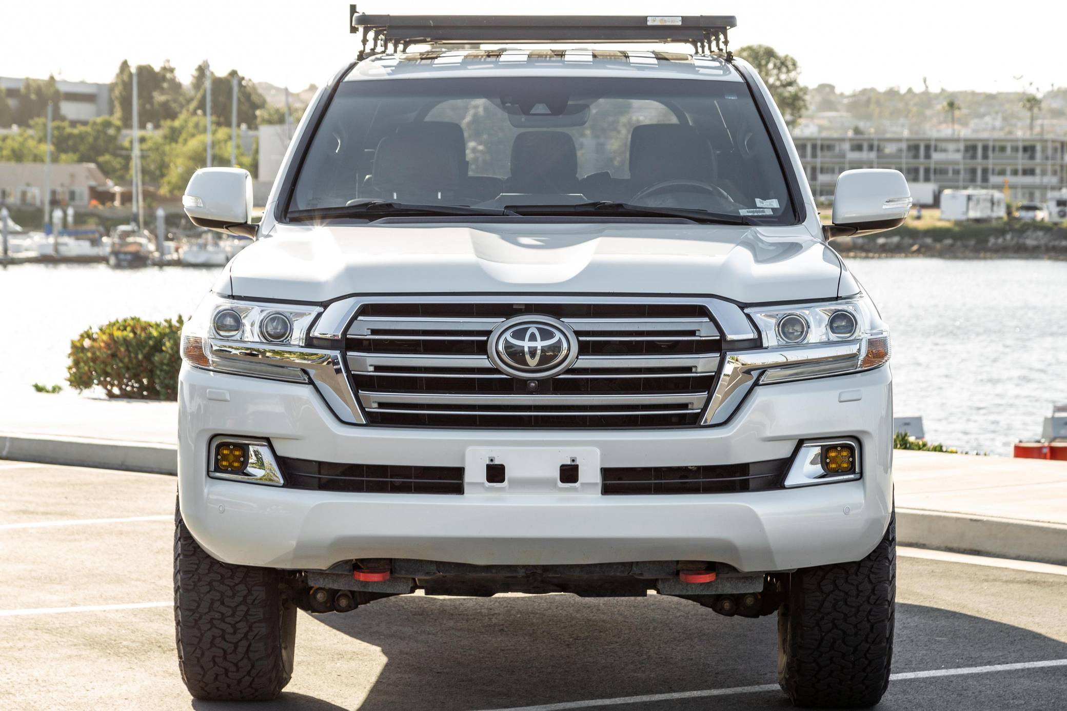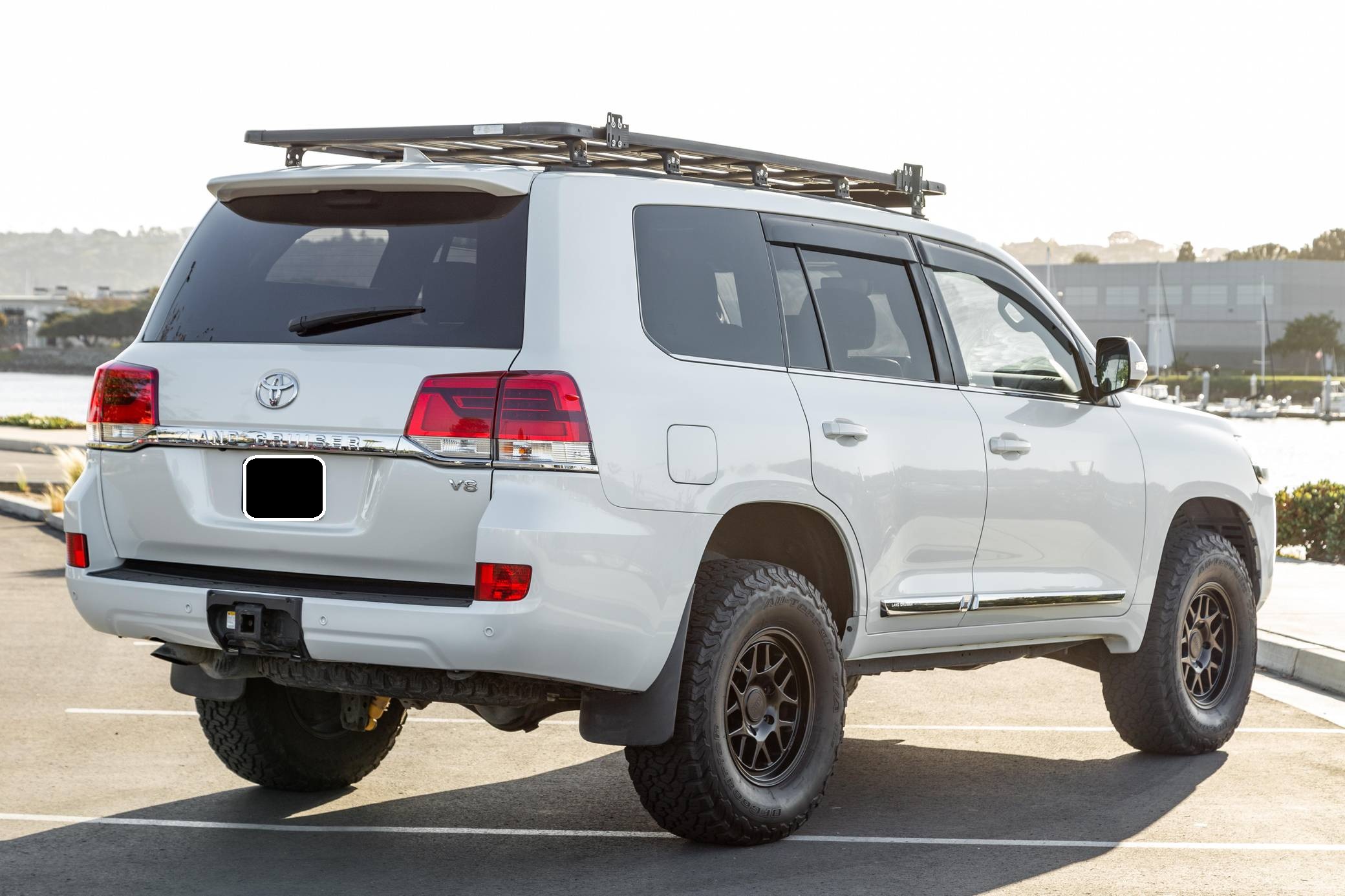 2016 Toyota Land Cruiser, finished in Blizzard Pearl with a Terra interior. Factory equipment includes 18-inch alloy wheels, a locking center differential, the Kinetic Dynamic Suspension System, heated and ventilated power-adjustable front seats, heated rear seats, a heated steering wheel, a center cooler box, an Entune JBL 14-speaker premium audio system, a center touchscreen display with navigation capabilities, the Toyota Safety Sense-P system, and more as detailed below. Modifications reported by the seller include an Old Man Emu 2-inch lift kit and front upper control arms, 17-inch KMC Bully OL wheels, and an Eezi-Awn K9 roof rack. The full list of modifications can be seen below. Introduced for the 2008 model year, the 200-Series Land Cruiser is notable for maintaining its reputation for off-road prowess while further increasing the luxury aspects of the truck. In 2016 the 200-Series was refreshed with an updated interior and exterior, new 18-inch alloy wheels, larger front disc brakes, a new 8-speed electronically-controlled automatic transmission, among other modern convenience updates. Power comes from a "3UR-FE" 5. 7-liter V8, rated at 381 horsepower and 401 lb-ft of torque. The engine spins all four wheels via an 8-speed automatic transmission and 2-speed transfer case.