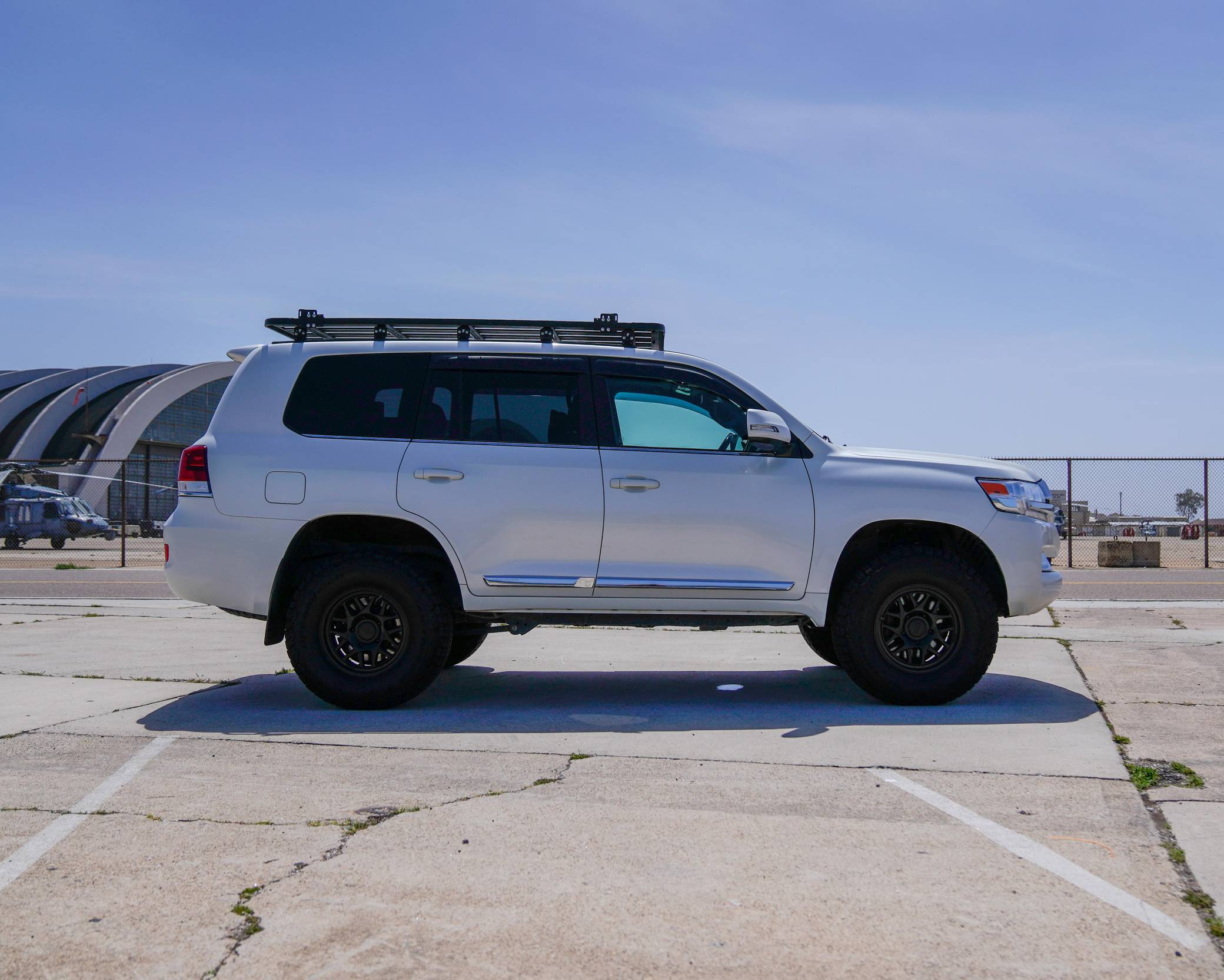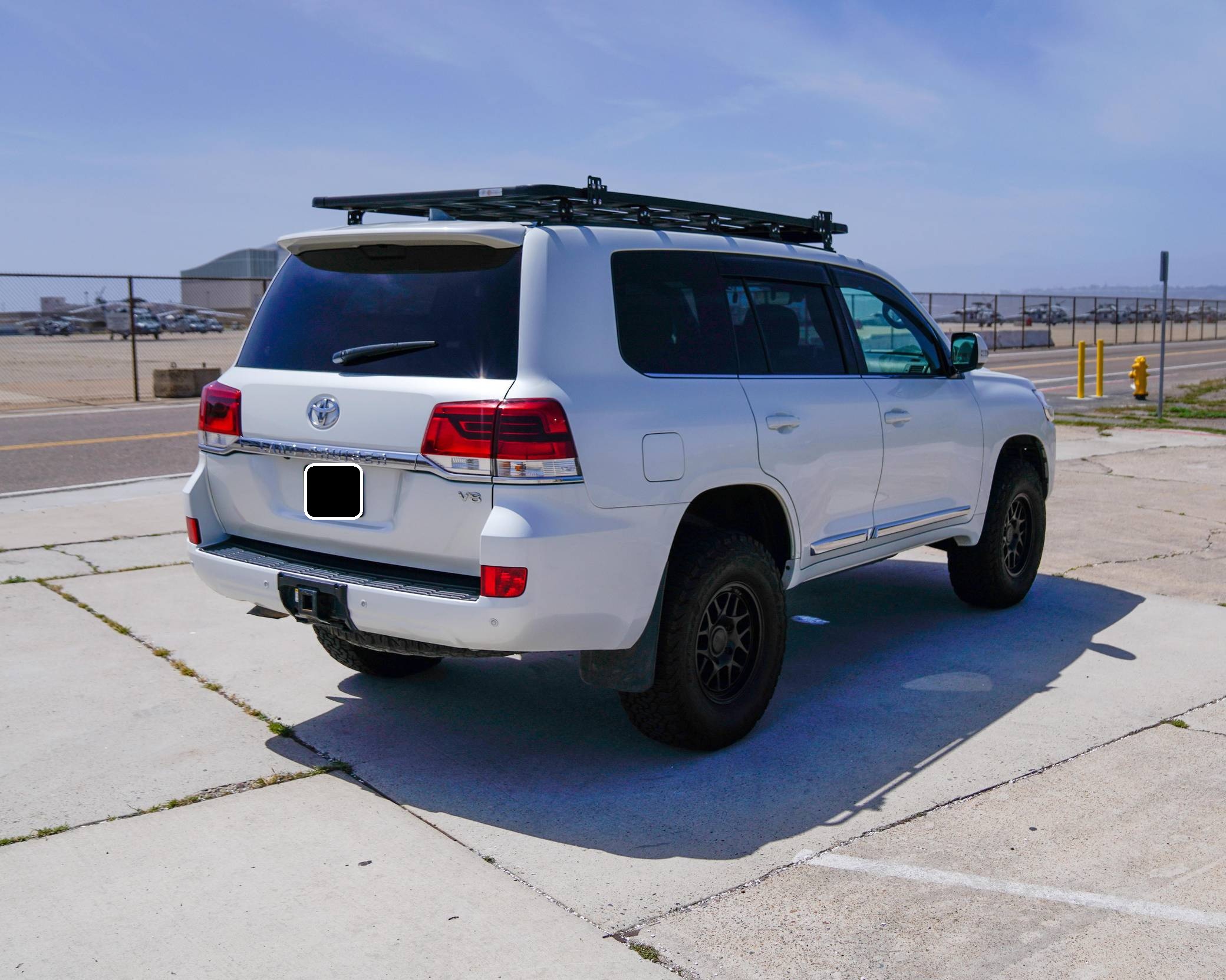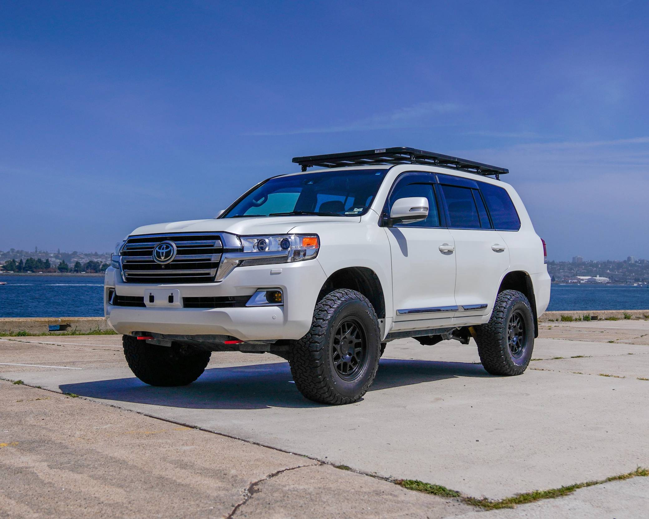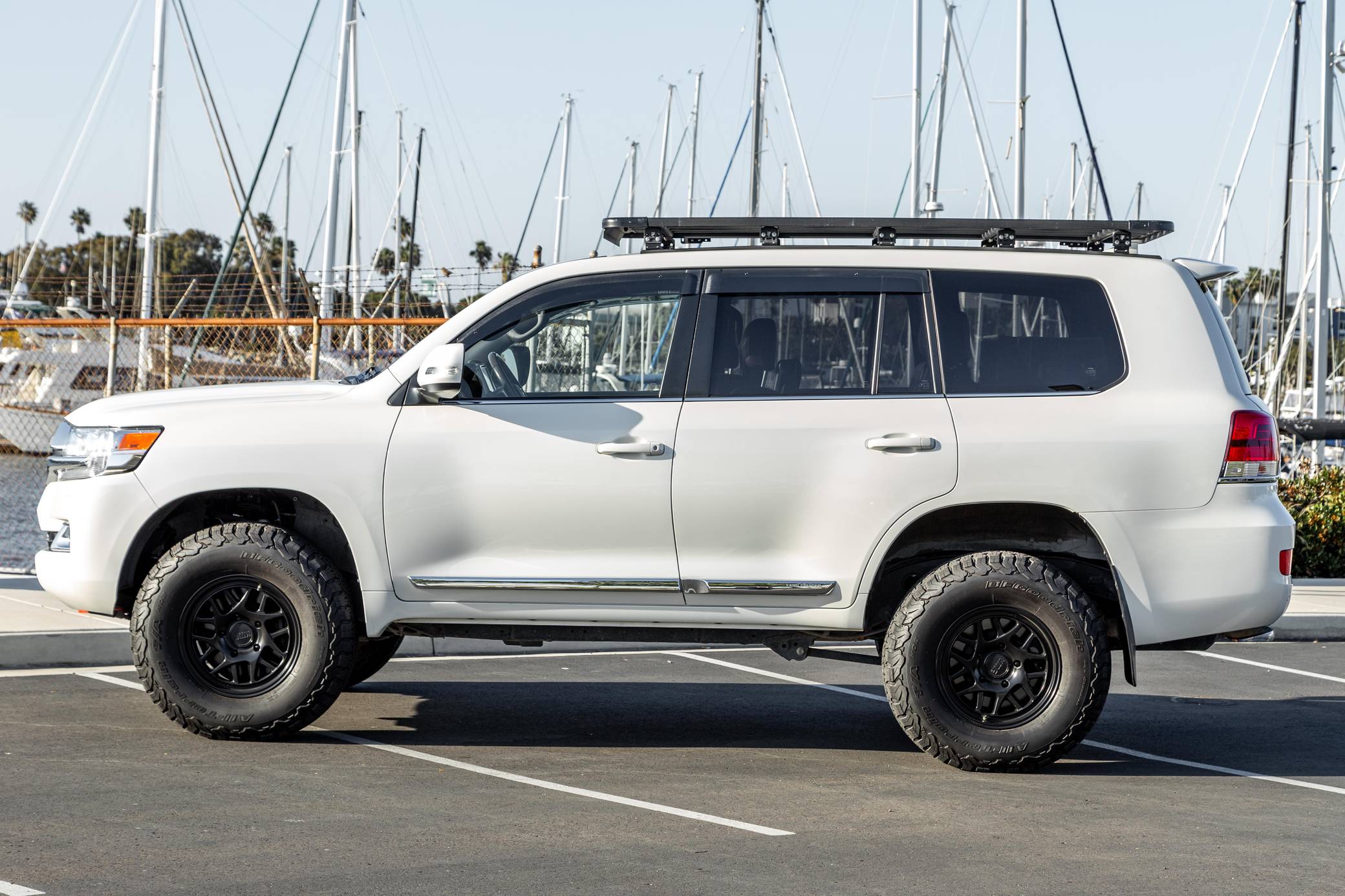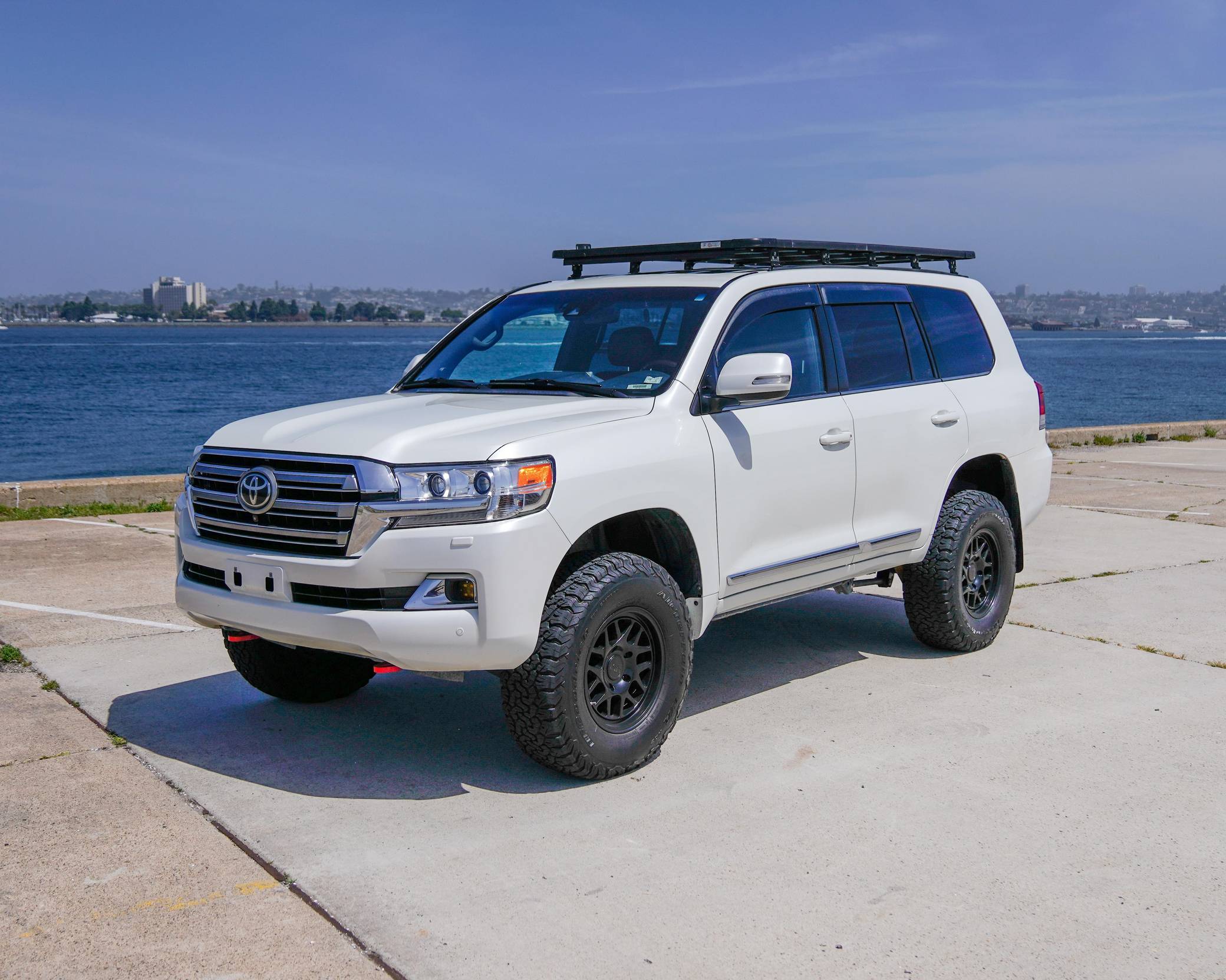 2016 Toyota Land Cruiser, finished in Blizzard Pearl with a Terra interior. Factory equipment includes 18-inch alloy wheels, a locking center differential, the Kinetic Dynamic Suspension System, heated and ventilated power-adjustable front seats, heated rear seats, a heated steering wheel, a center cooler box, an Entune JBL 14-speaker premium audio system, a center touchscreen display with navigation capabilities, the Toyota Safety Sense-P system, and more as detailed below. Modifications reported by the seller include an Old Man Emu 2-inch lift kit and front upper control arms, 17-inch KMC Bully OL wheels, and an Eezi-Awn K9 roof rack. The full list of modifications can be seen below. Introduced for the 2008 model year, the 200-Series Land Cruiser is notable for maintaining its reputation for off-road prowess while further increasing the luxury aspects of the truck. In 2016 the 200-Series was refreshed with an updated interior and exterior, new 18-inch alloy wheels, larger front disc brakes, a new 8-speed electronically-controlled automatic transmission, among other modern convenience updates. Power comes from a "3UR-FE" 5. 7-liter V8, rated at 381 horsepower and 401 lb-ft of torque. The engine spins all four wheels via an 8-speed automatic transmission and 2-speed transfer case.